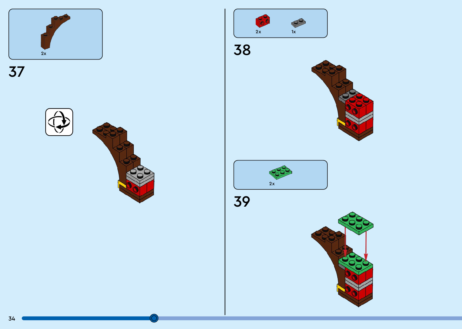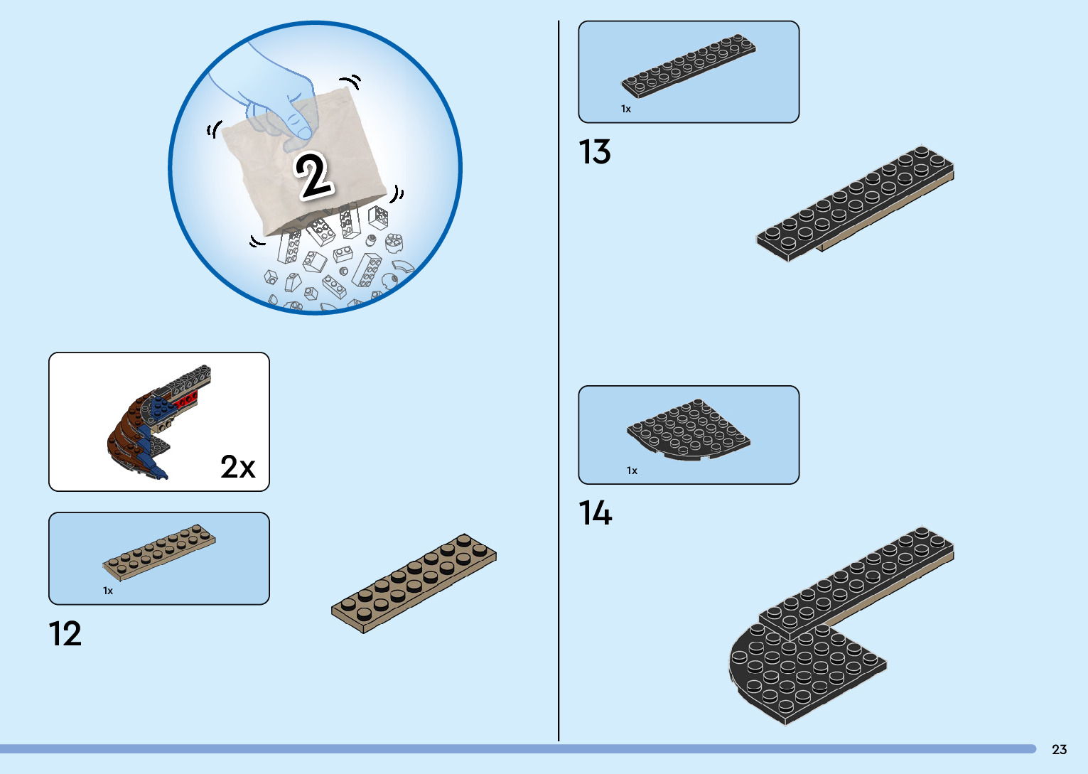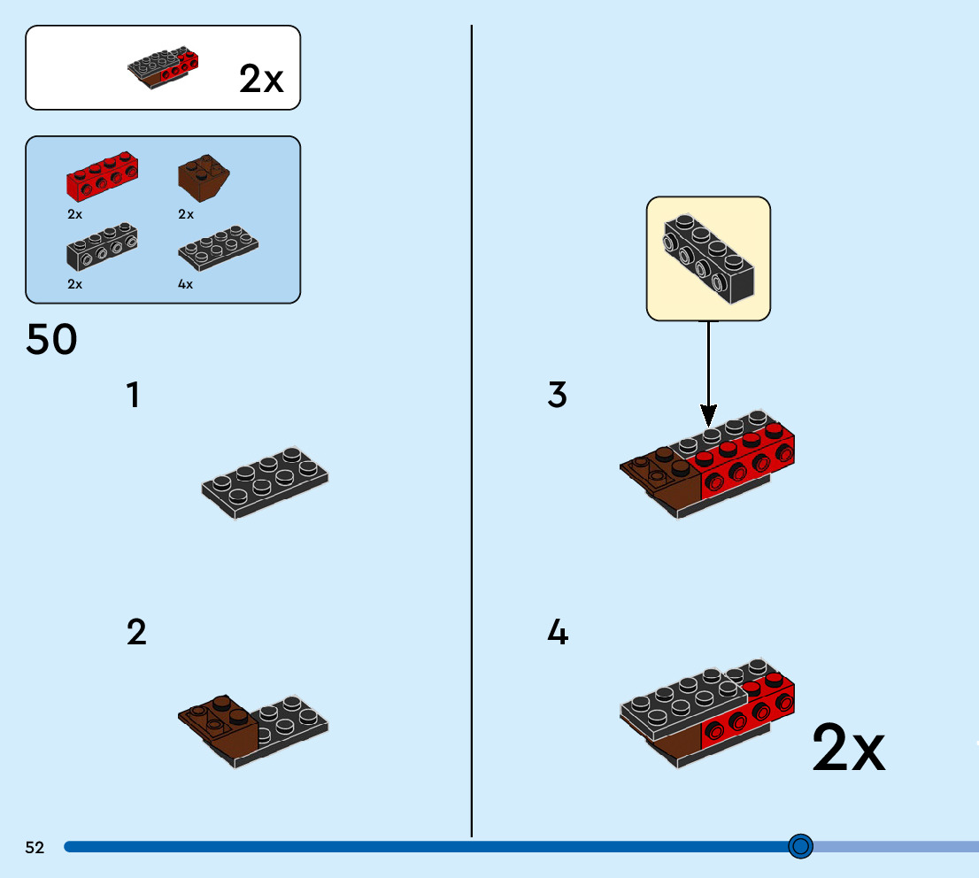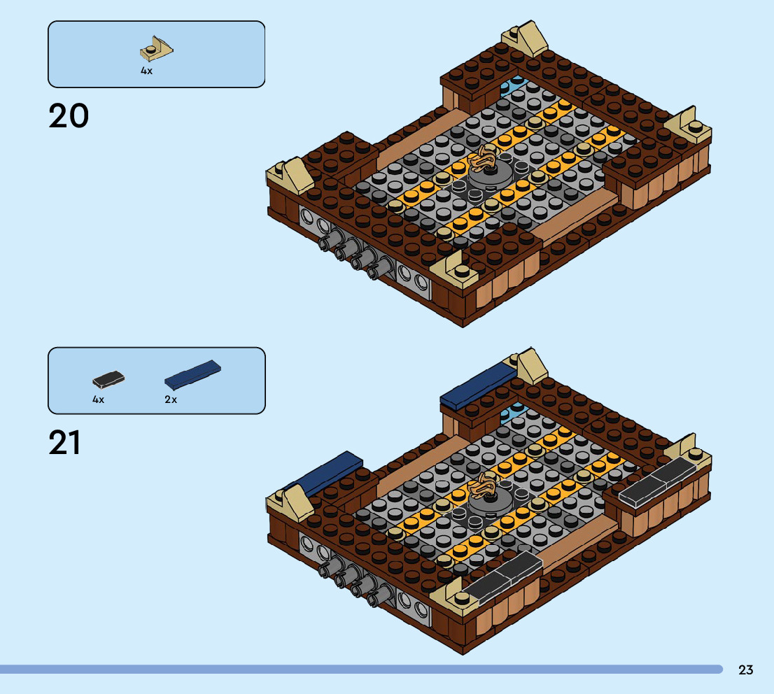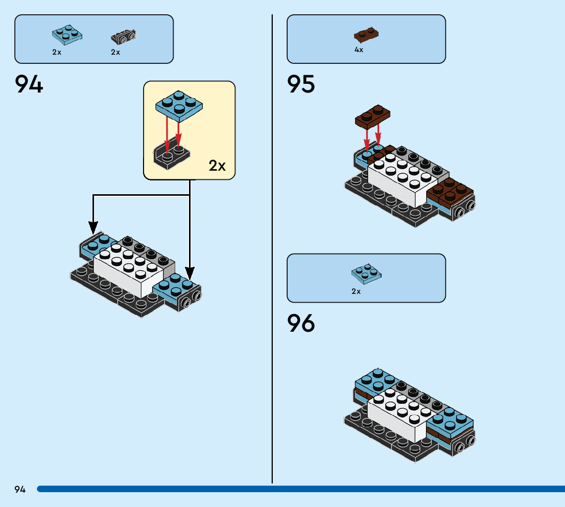 The assembly guide is prepared in a very understandable way for children and adult LEGO enthusiasts. A total of 388 picture galleries are shown, explaining the step-by-step construction stages for 3 different structures.