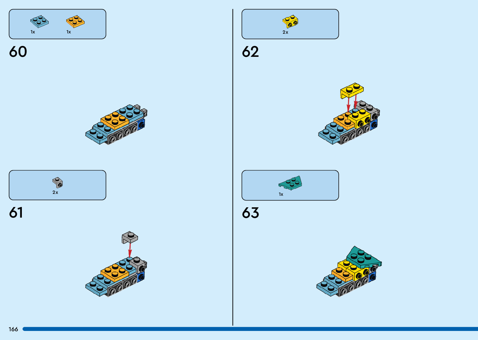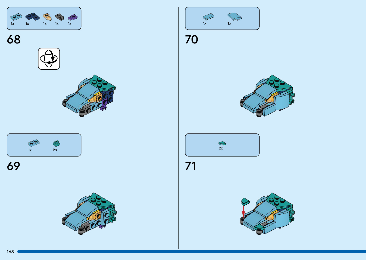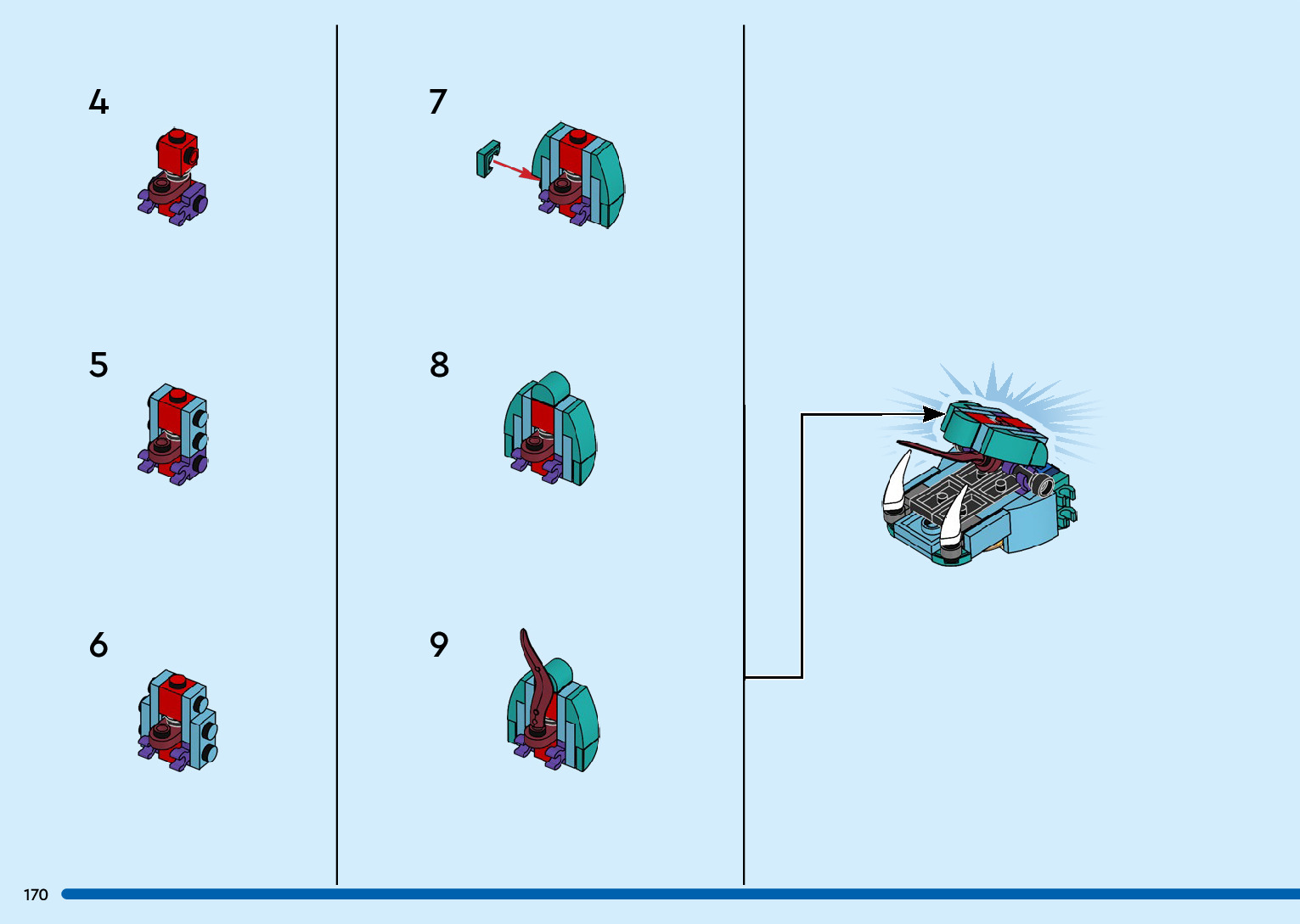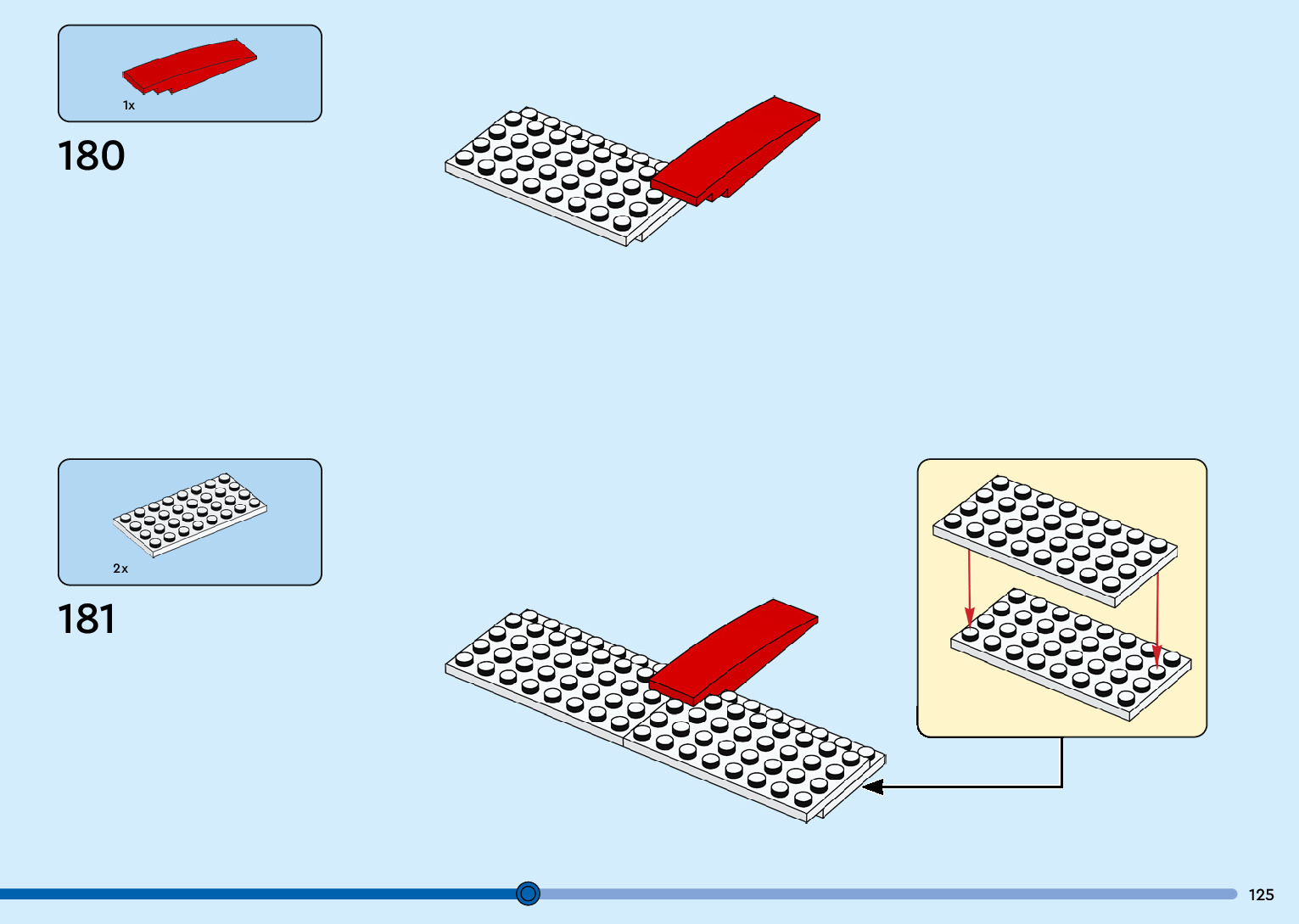 The assembly guide is prepared in a very understandable way for children and adult LEGO enthusiasts. A total of 388 picture galleries are shown, explaining the step-by-step construction stages for 3 different structures.