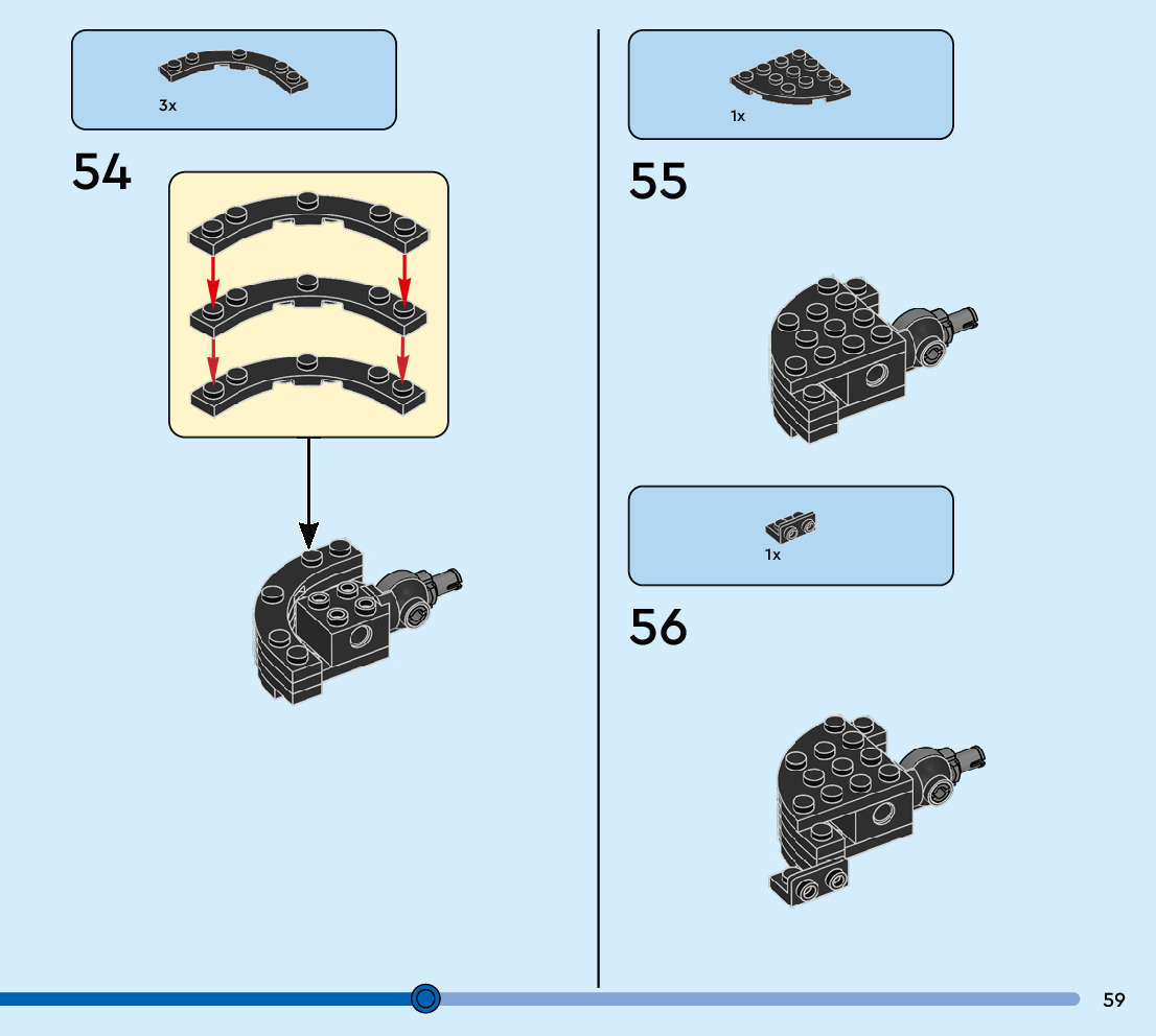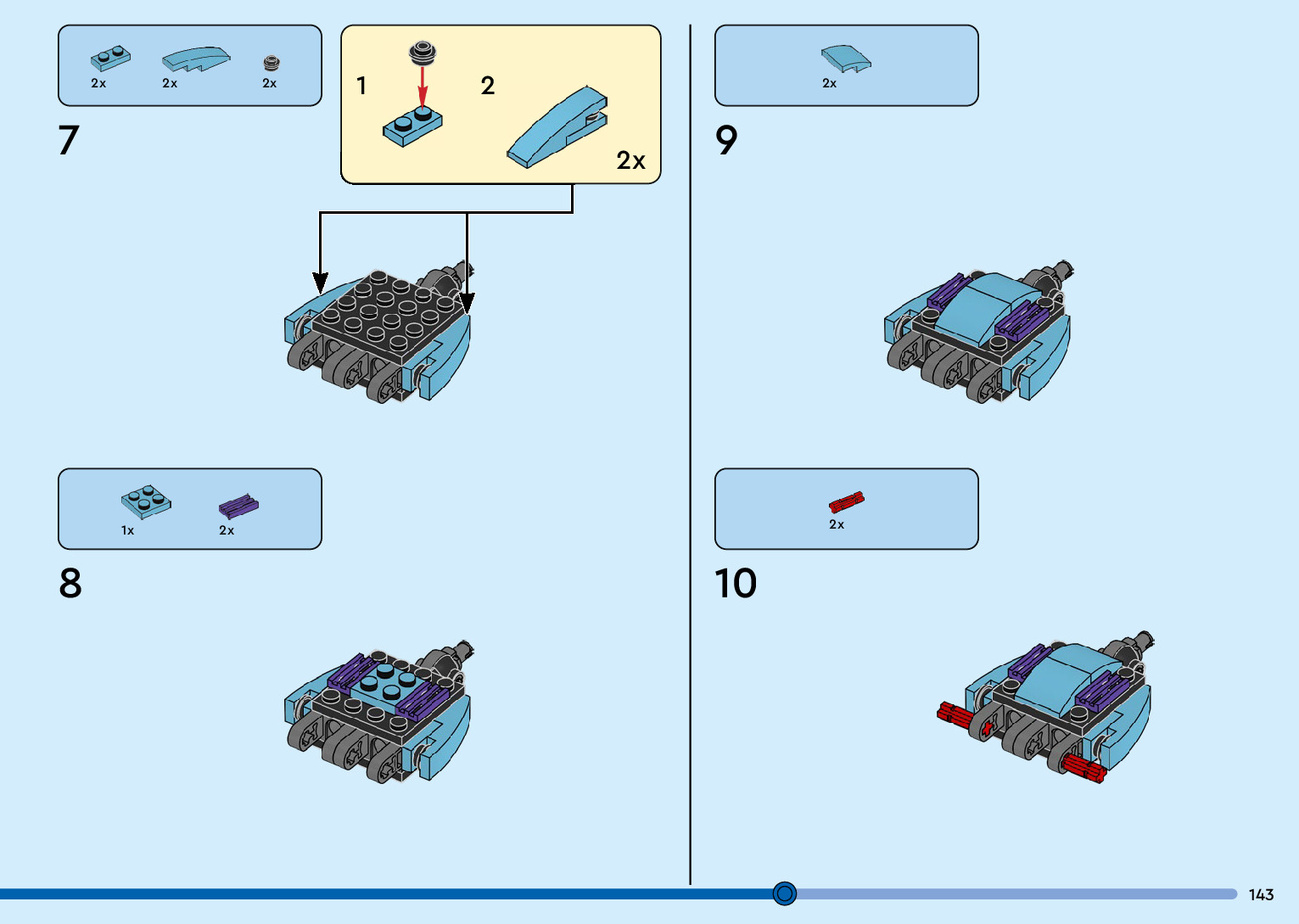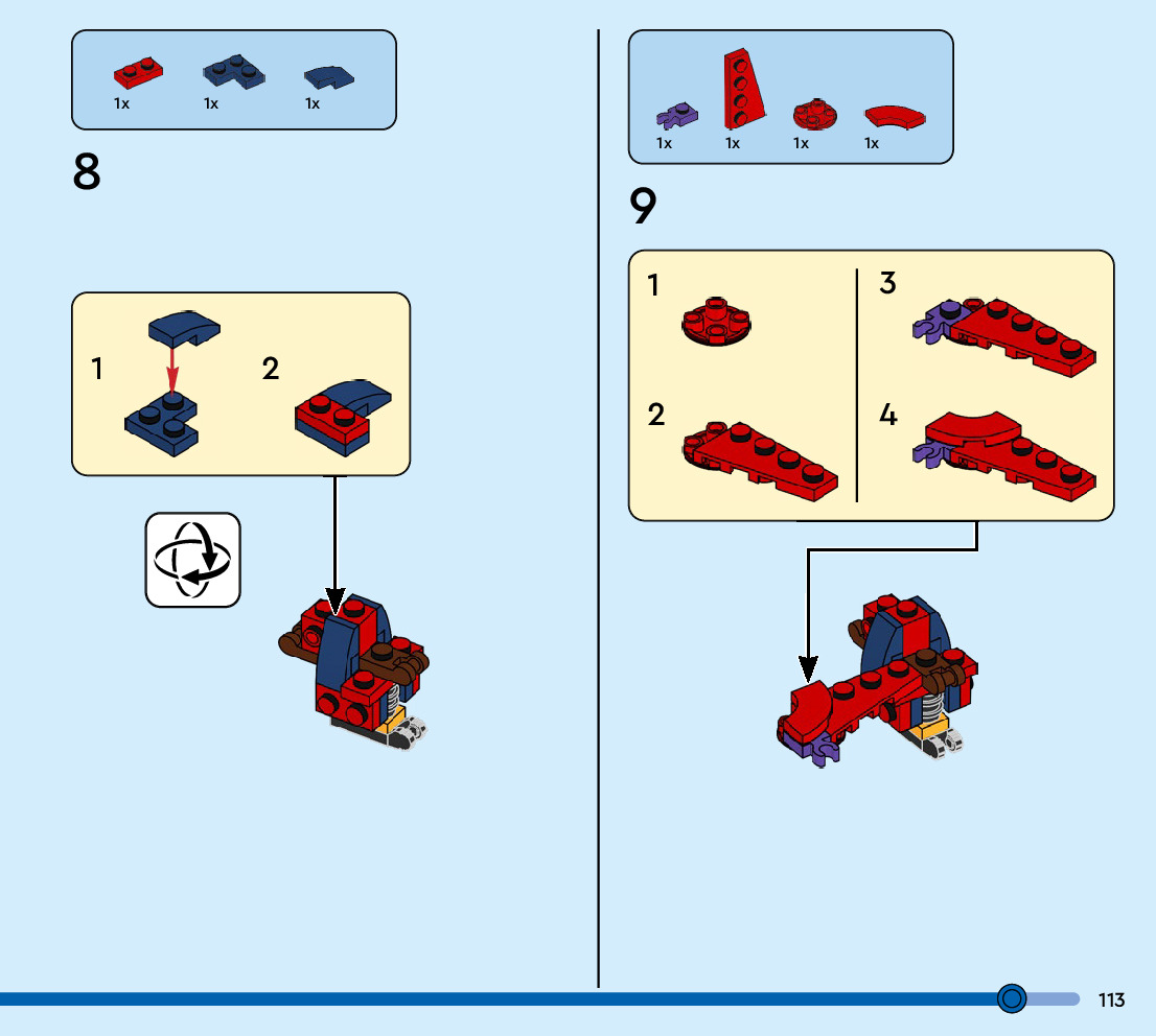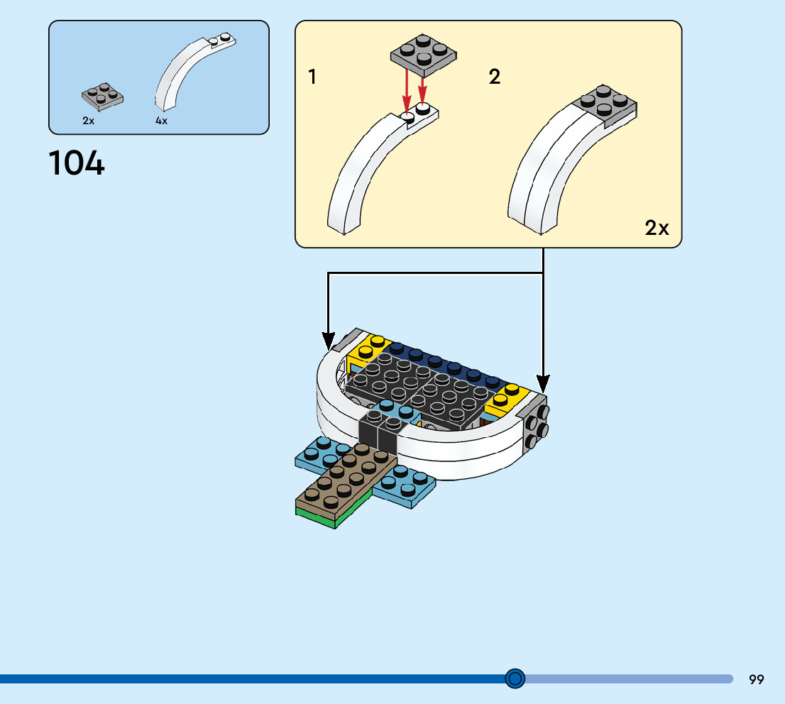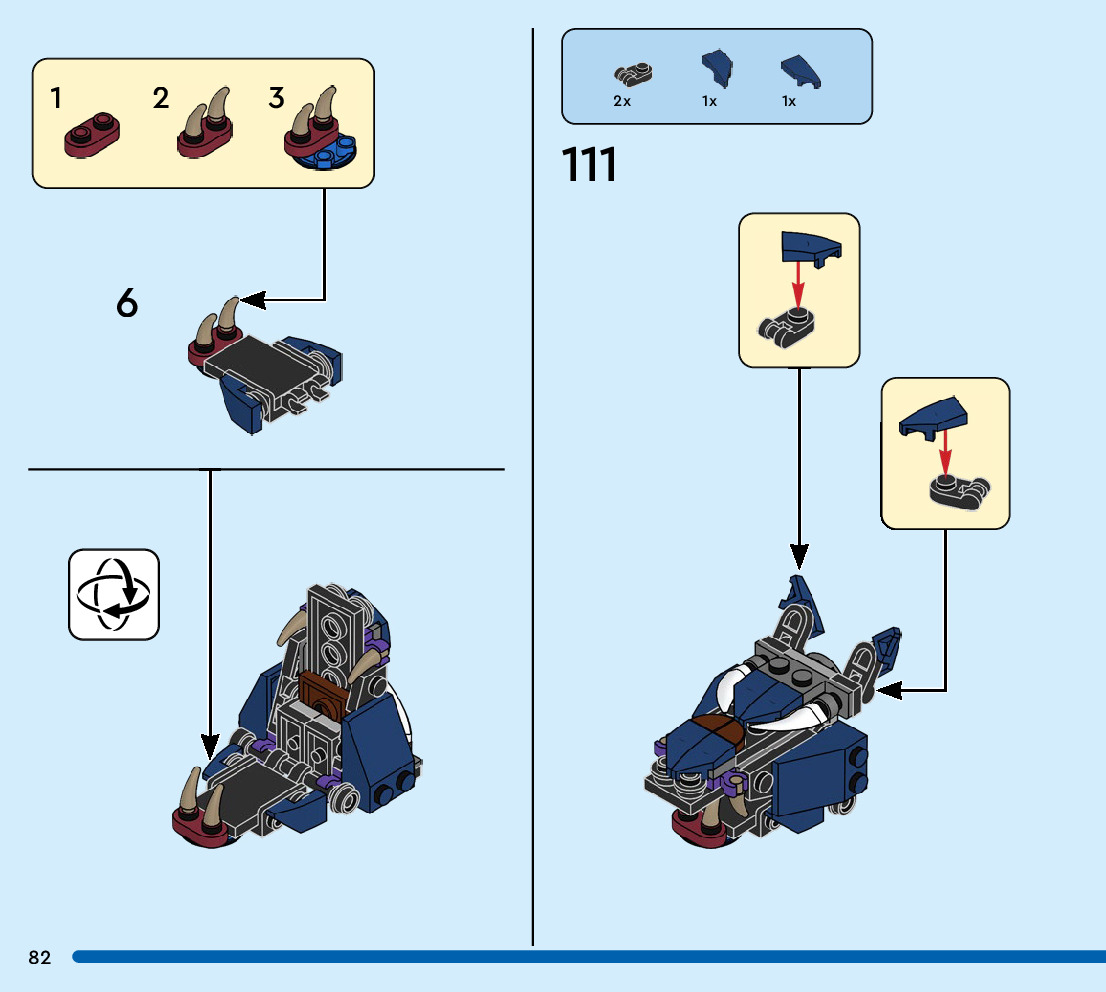 The assembly guide is prepared in a very understandable way for children and adult LEGO enthusiasts. A total of 388 picture galleries are shown, explaining the step-by-step construction stages for 3 different structures.