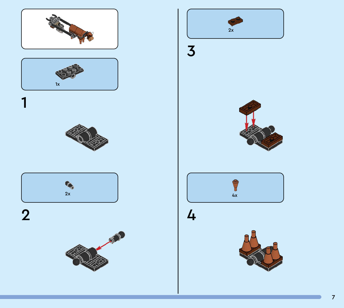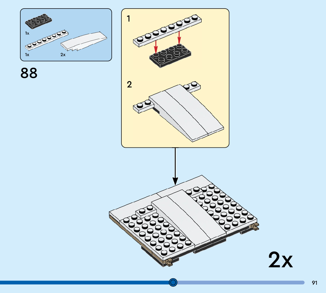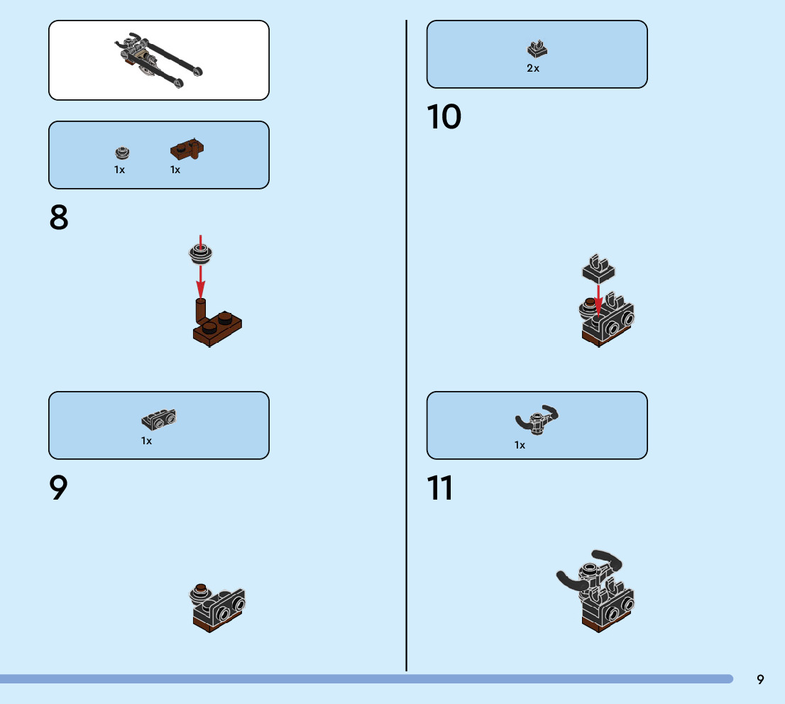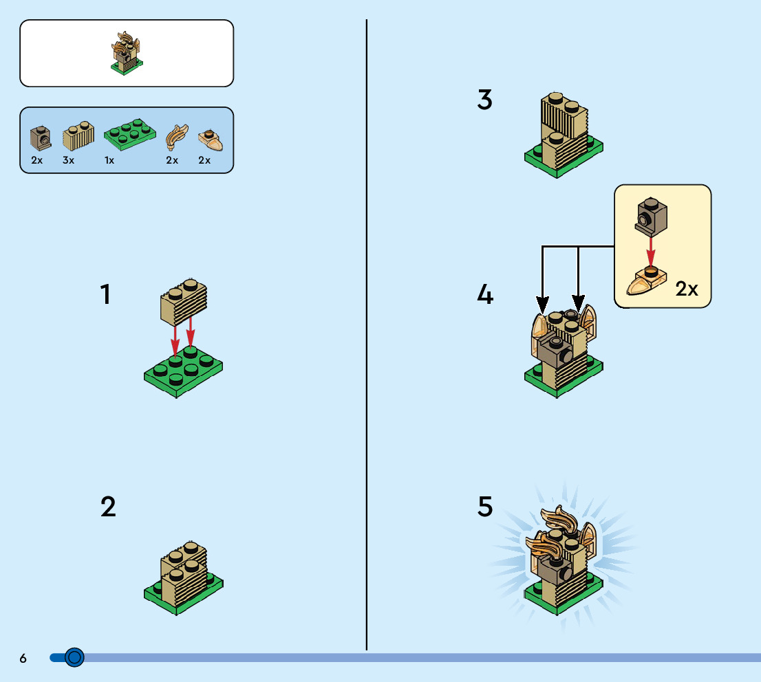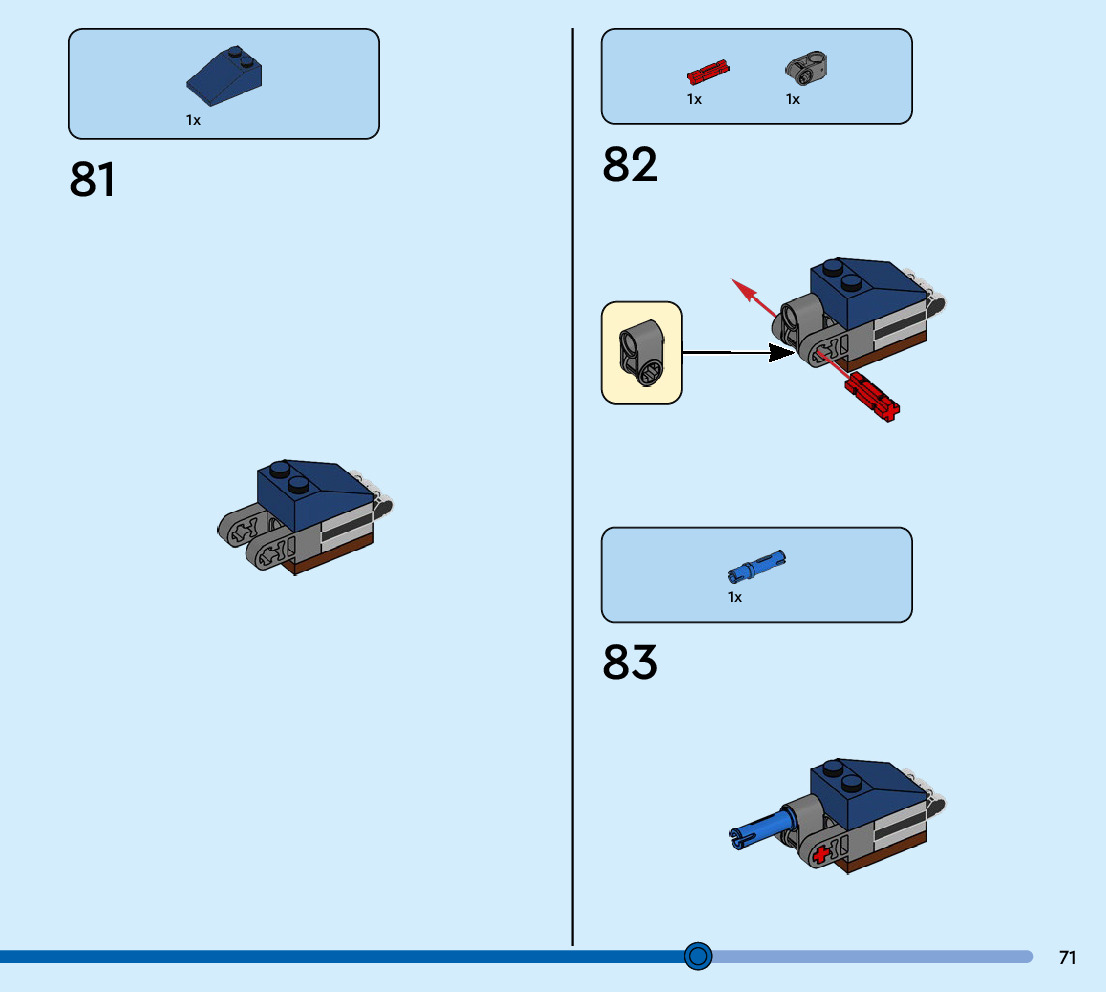 The assembly guide is prepared in a very understandable way for children and adult LEGO enthusiasts. A total of 388 picture galleries are shown, explaining the step-by-step construction stages for 3 different structures.