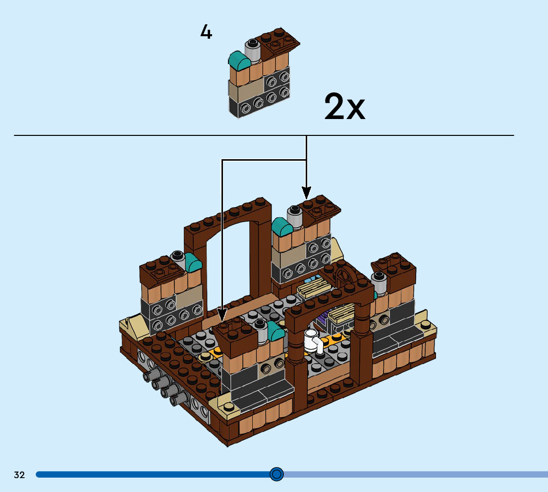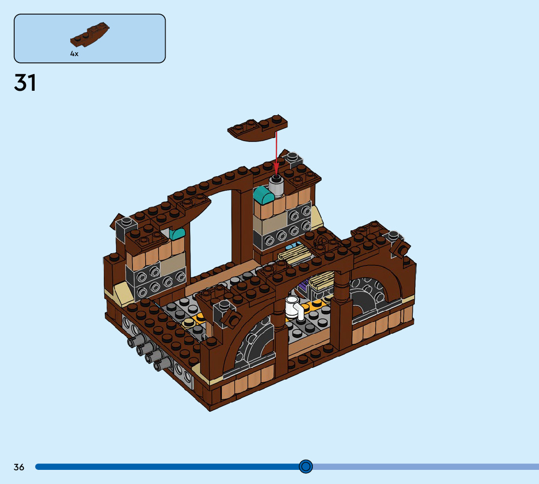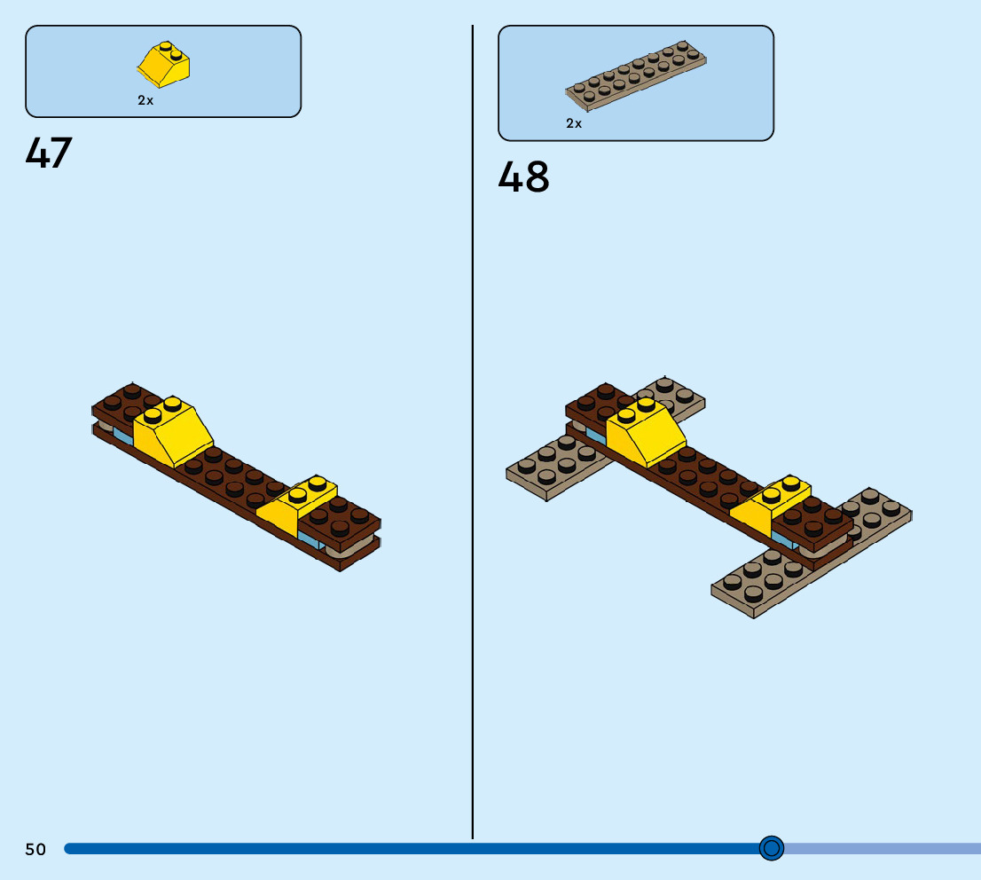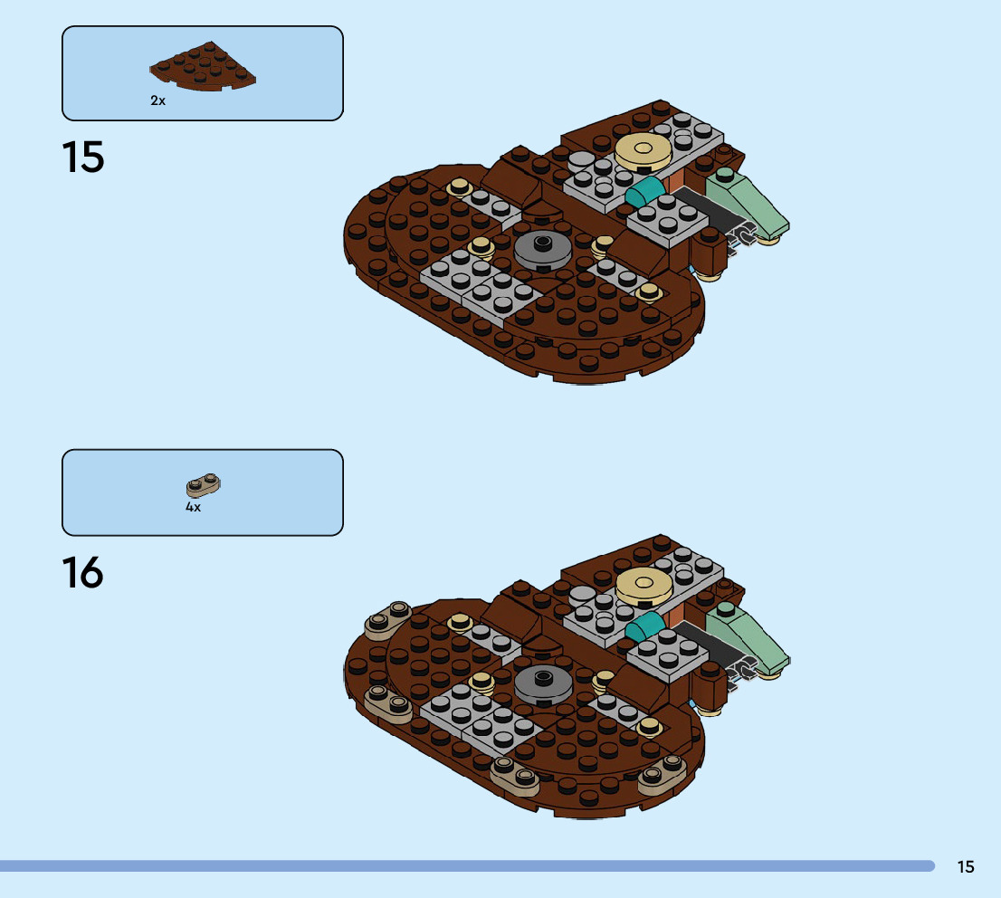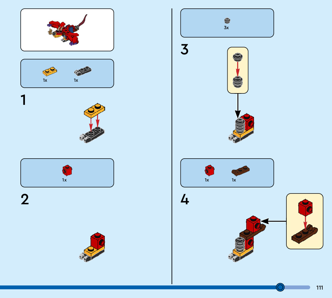 The assembly guide is prepared in a very understandable way for children and adult LEGO enthusiasts. A total of 388 picture galleries are shown, explaining the step-by-step construction stages for 3 different structures.