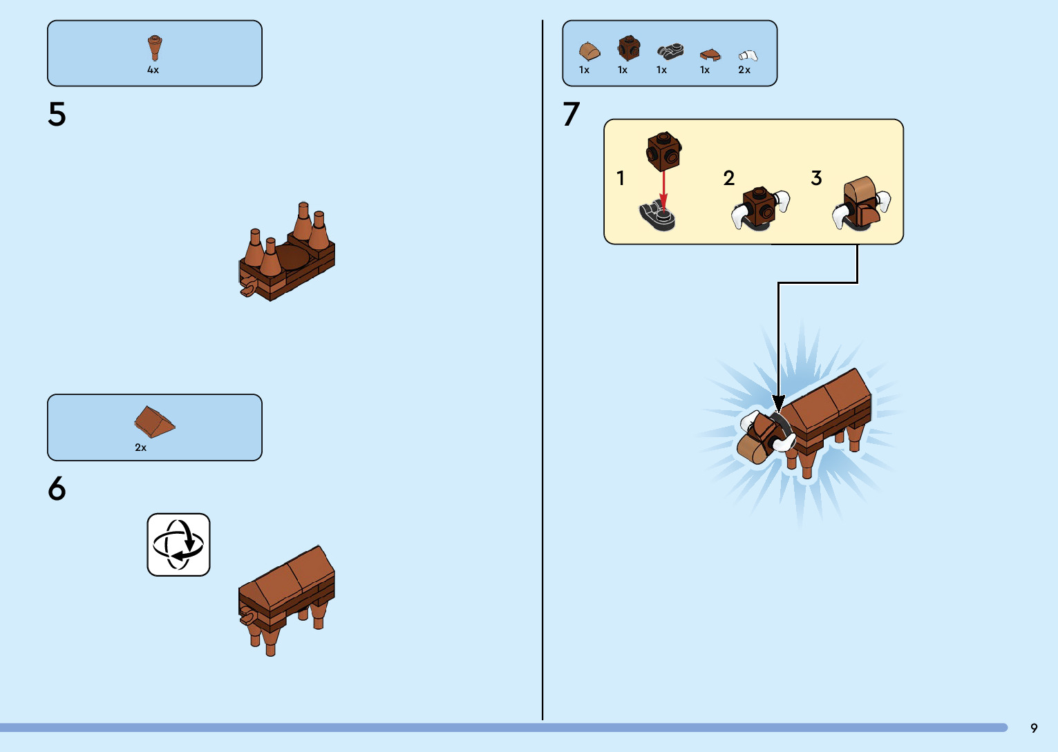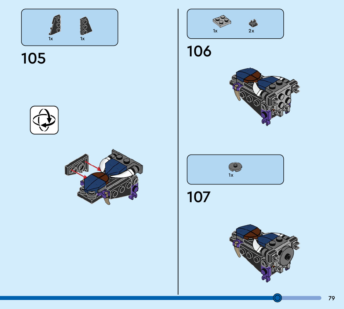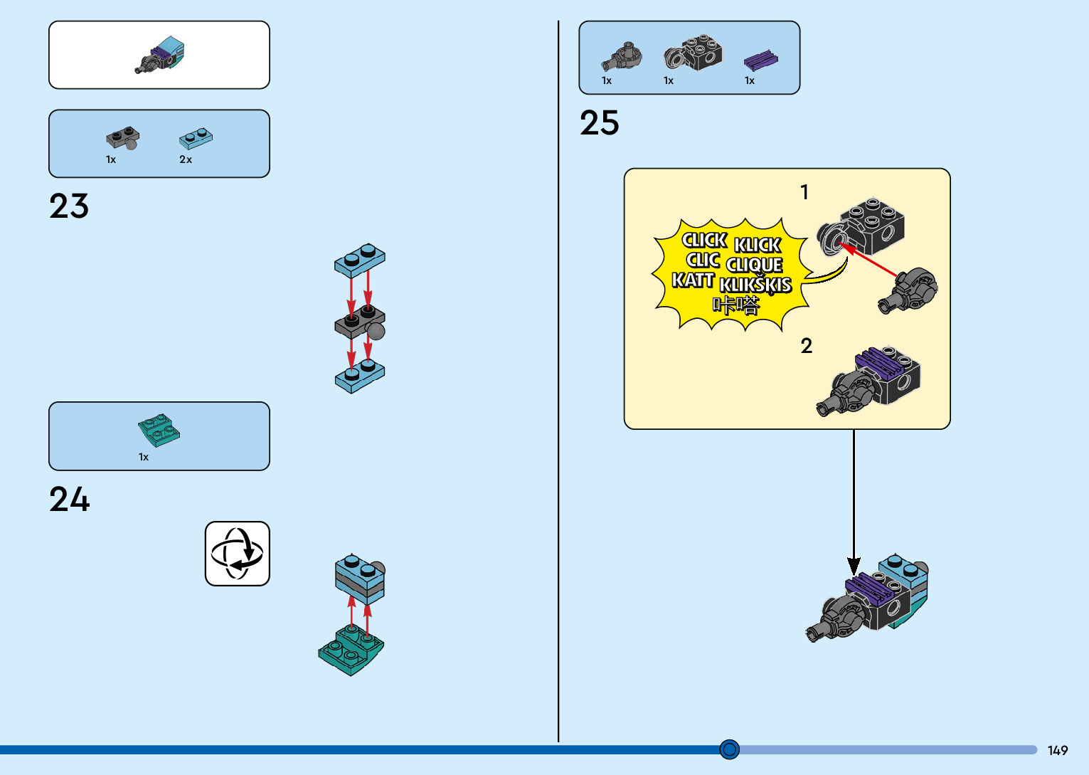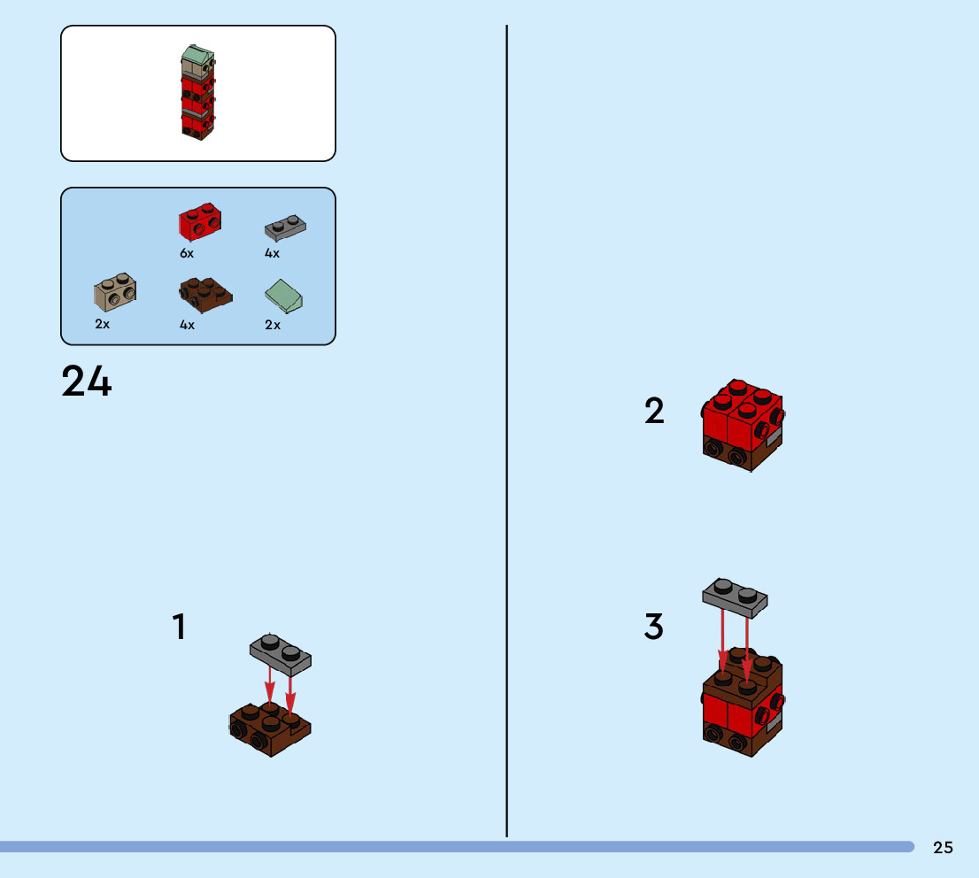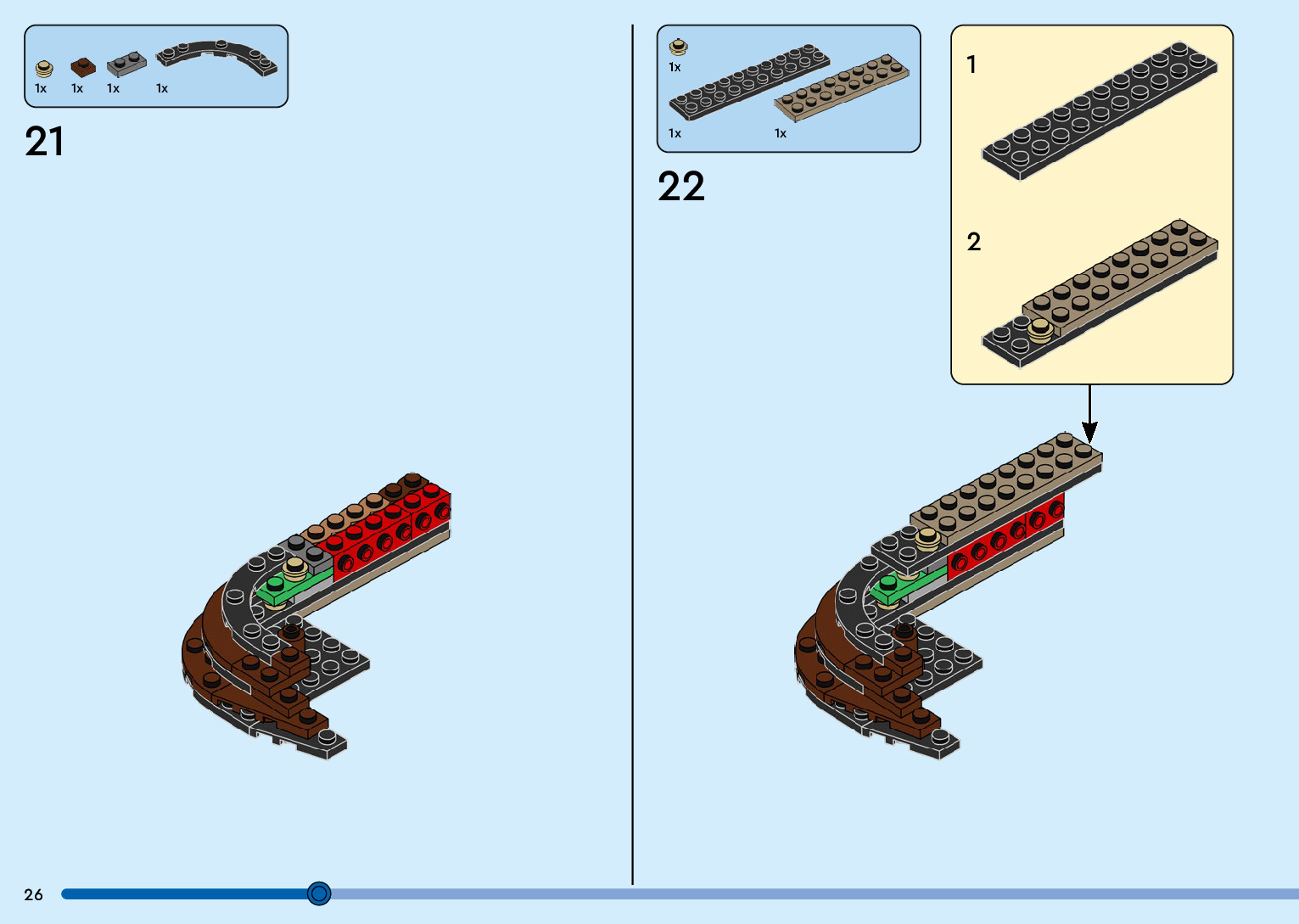 The assembly guide is prepared in a very understandable way for children and adult LEGO enthusiasts. A total of 388 picture galleries are shown, explaining the step-by-step construction stages for 3 different structures.