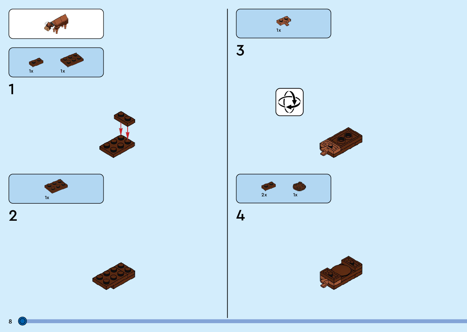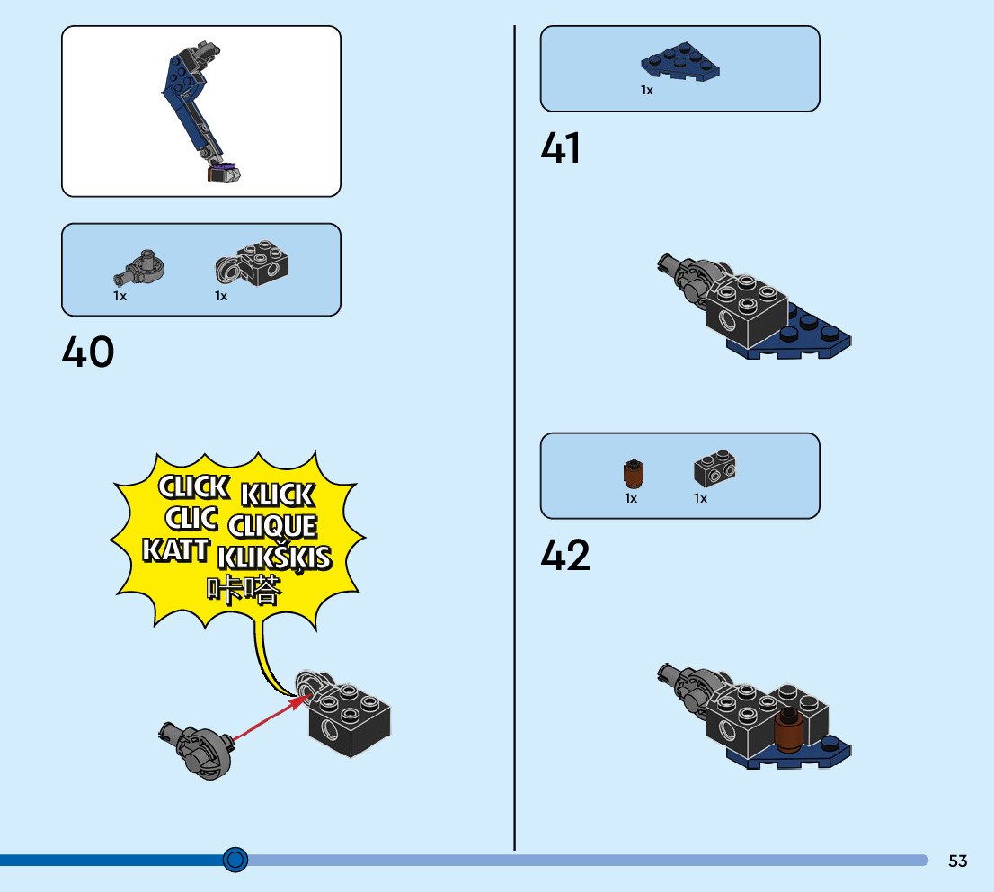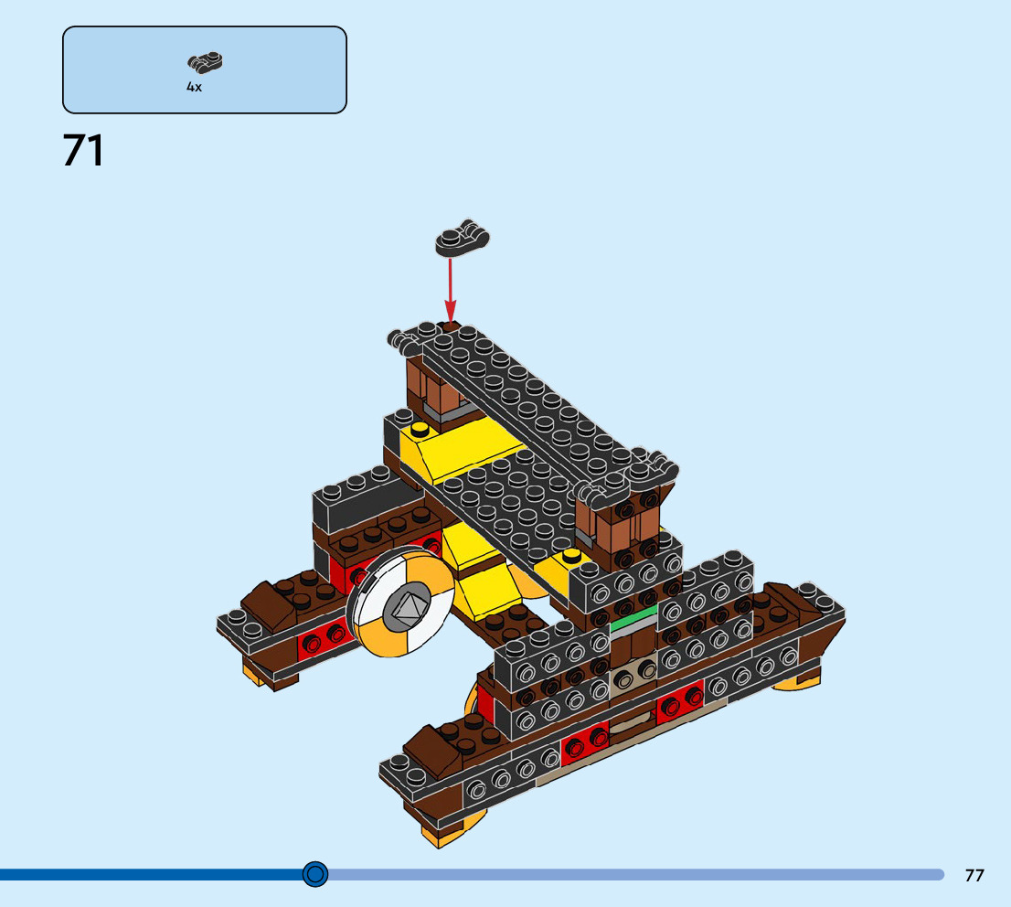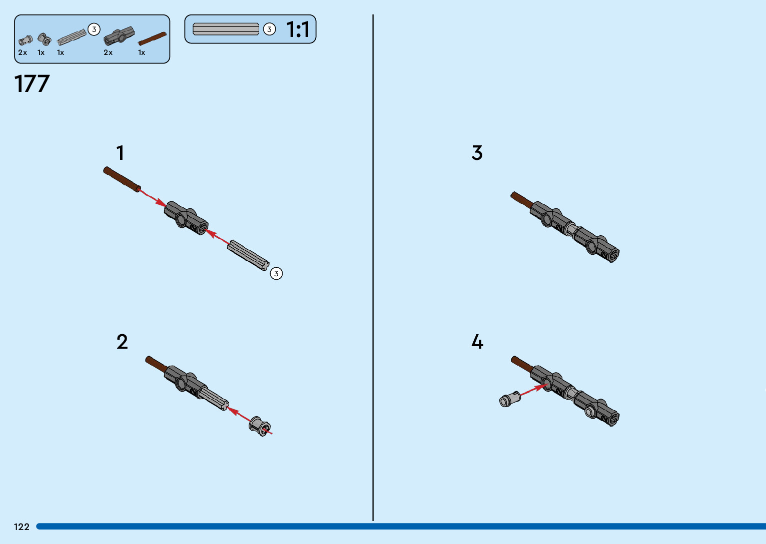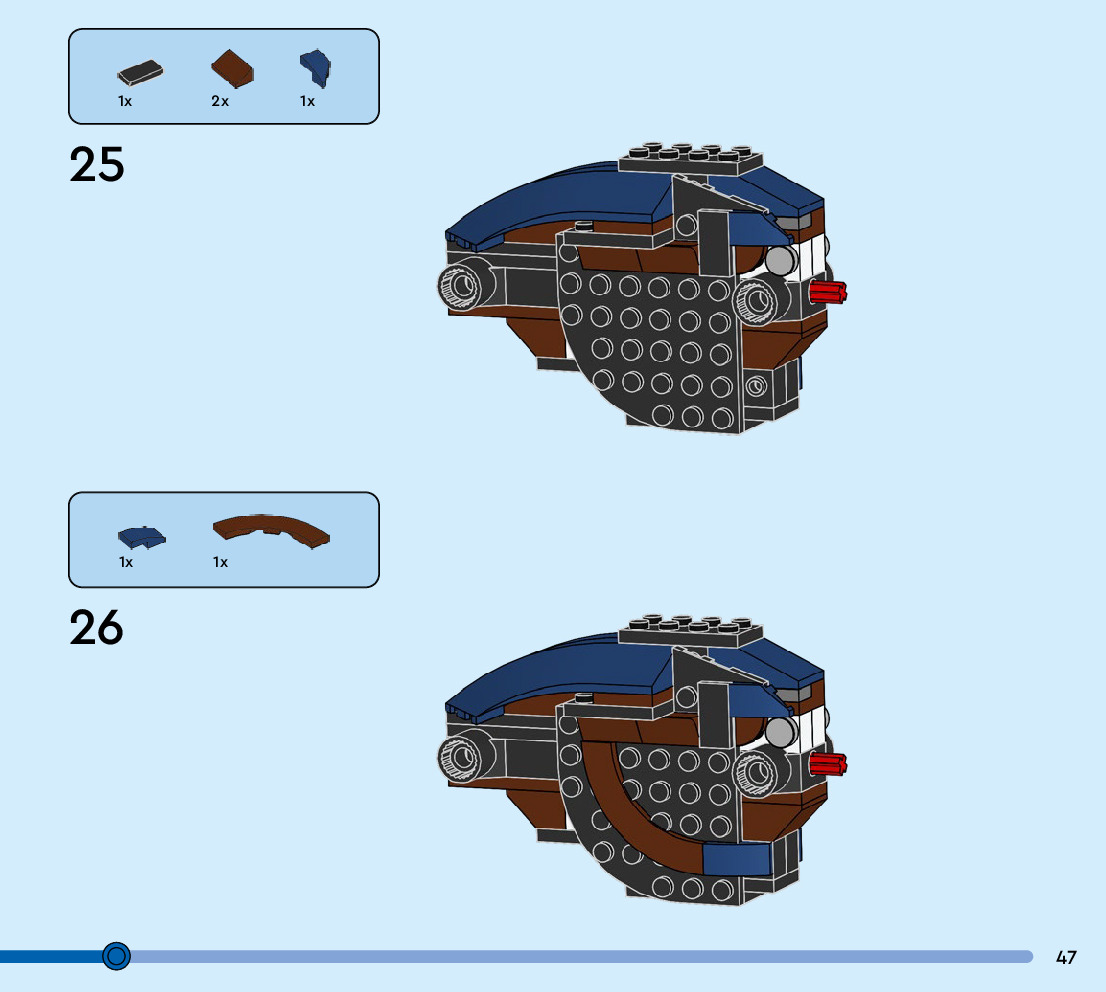 The assembly guide is prepared in a very understandable way for children and adult LEGO enthusiasts. A total of 388 picture galleries are shown, explaining the step-by-step construction stages for 3 different structures.