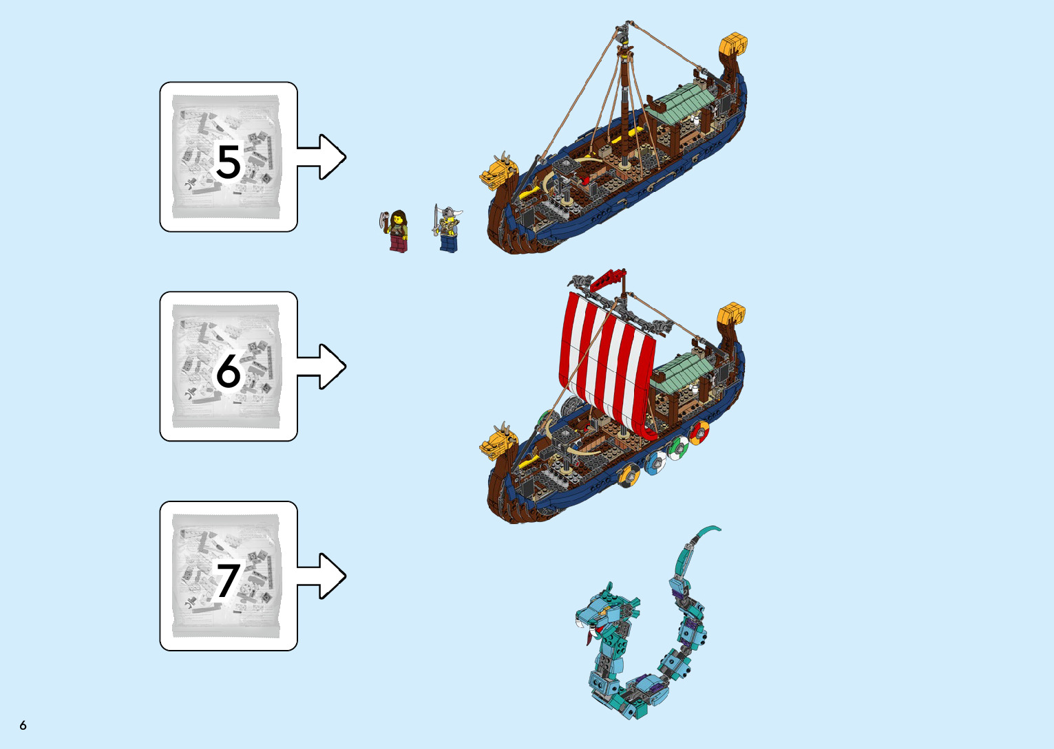 On this page you can find the original construction manual for the LEGO 31132 set. With the assembly manual you can easily learn how to build the 31132 Viking Ship and the Midgard Serpent step by step. The set was released in 2022.