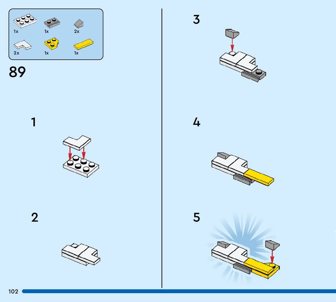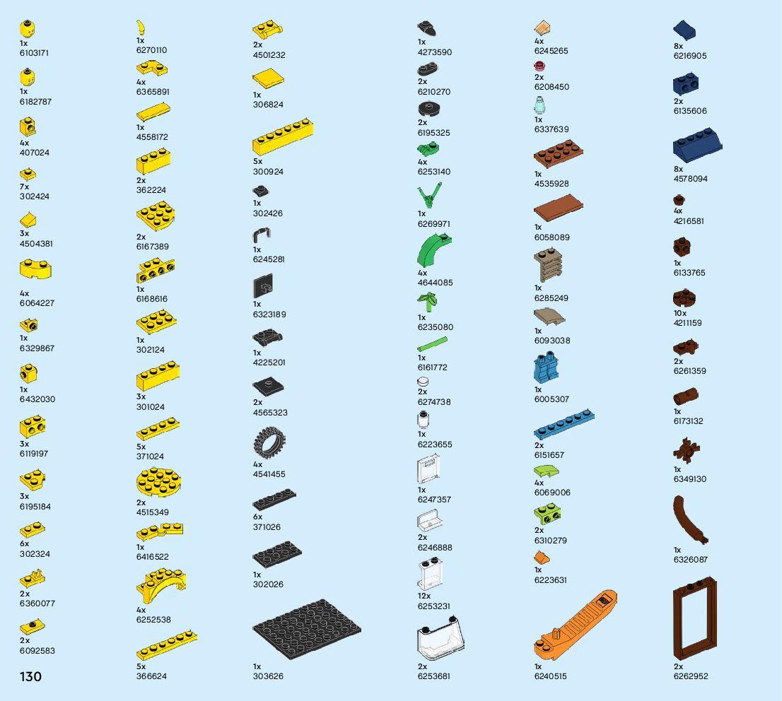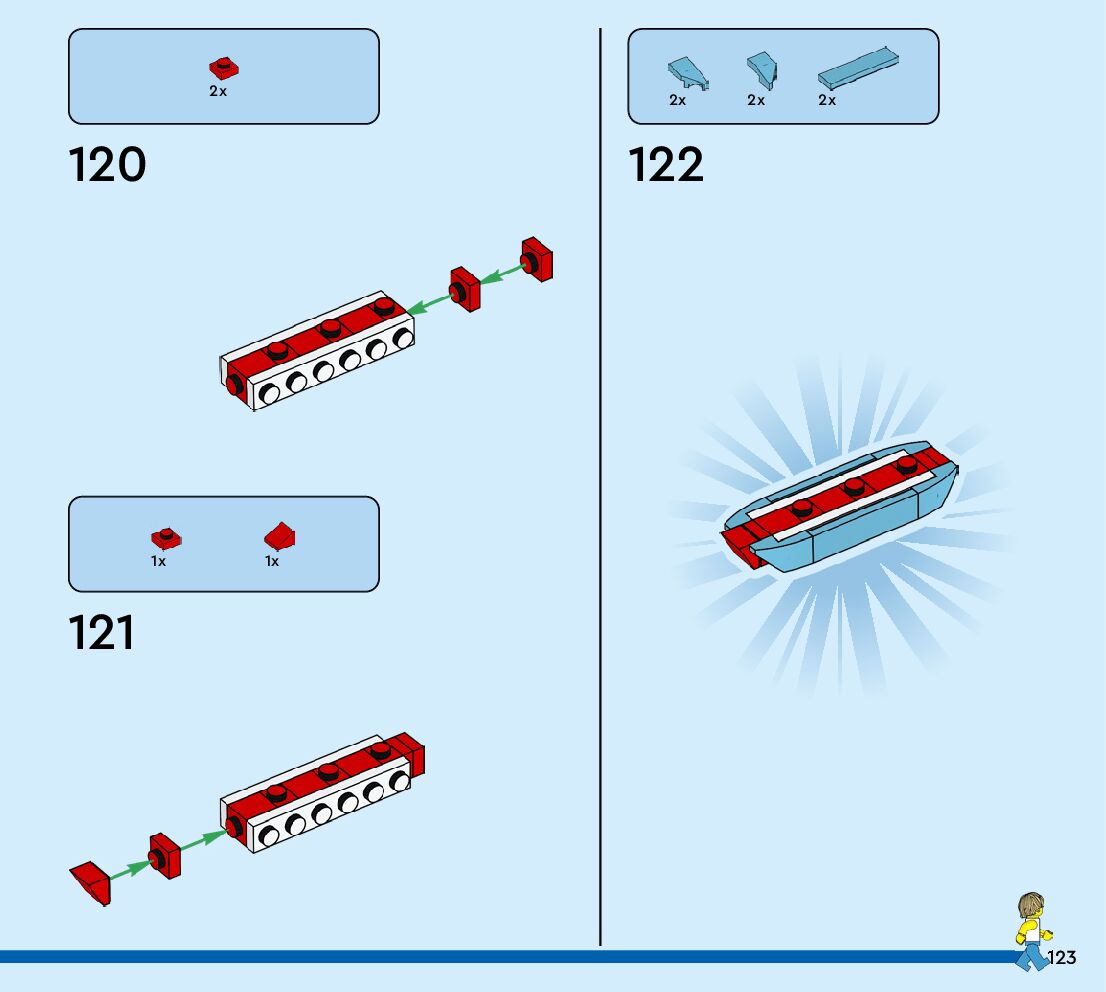 The assembly guide is prepared in a very understandable way for children and adult LEGO enthusiasts. A total of 280 picture galleries are shown, explaining the step-by-step construction stages for 3 different structures.