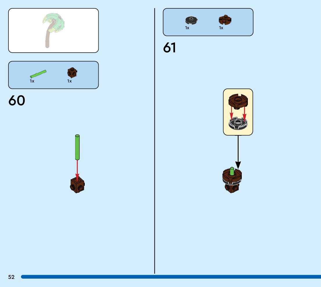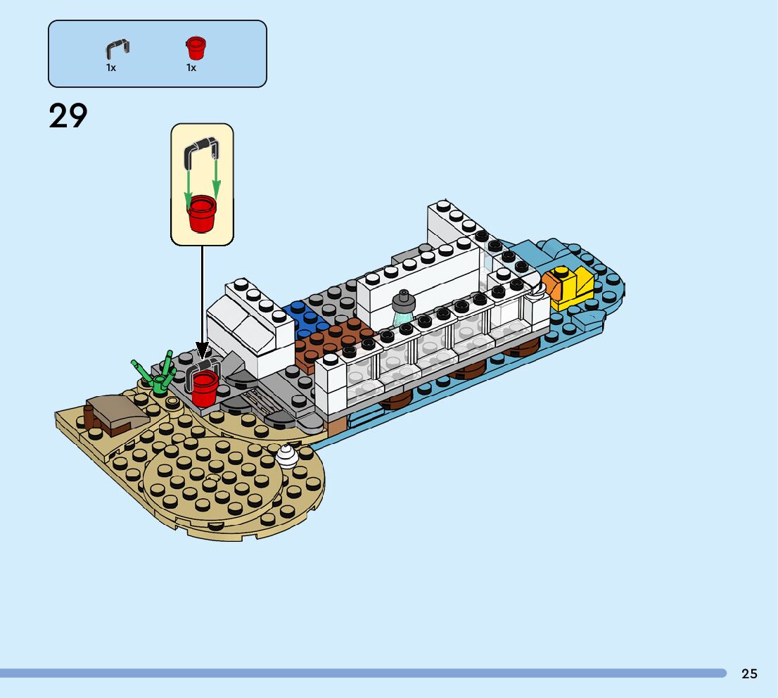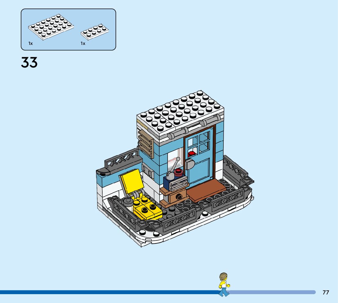 The assembly guide is prepared in a very understandable way for children and adult LEGO enthusiasts. A total of 280 picture galleries are shown, explaining the step-by-step construction stages for 3 different structures.