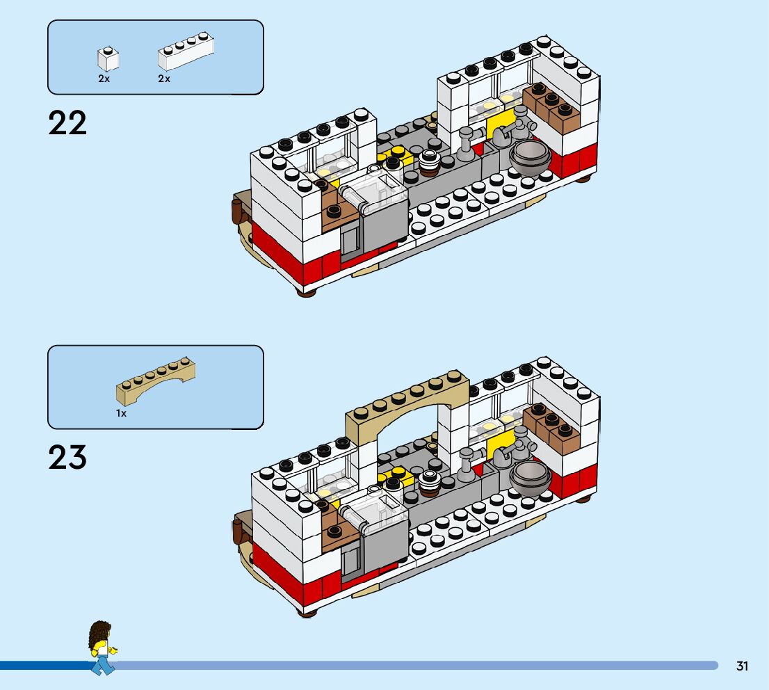 On this page you can find the original construction manual for the LEGO 31138 set. With the assembly manual you can easily learn how to build the 31138 Beach Camper Van step by step. The set was released in 2023.