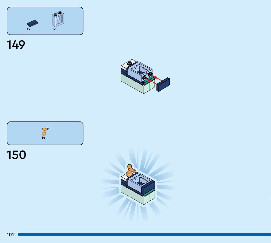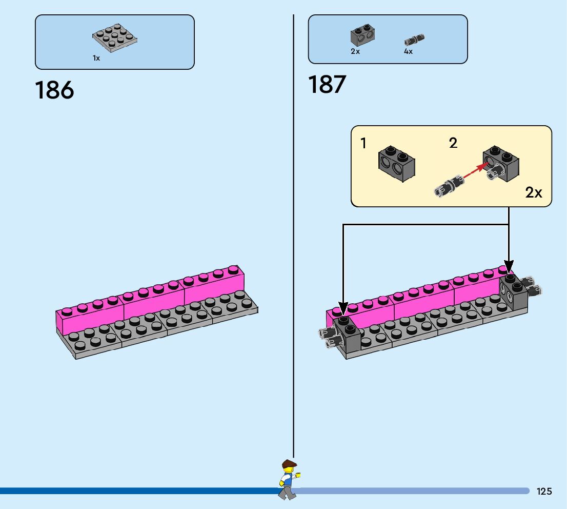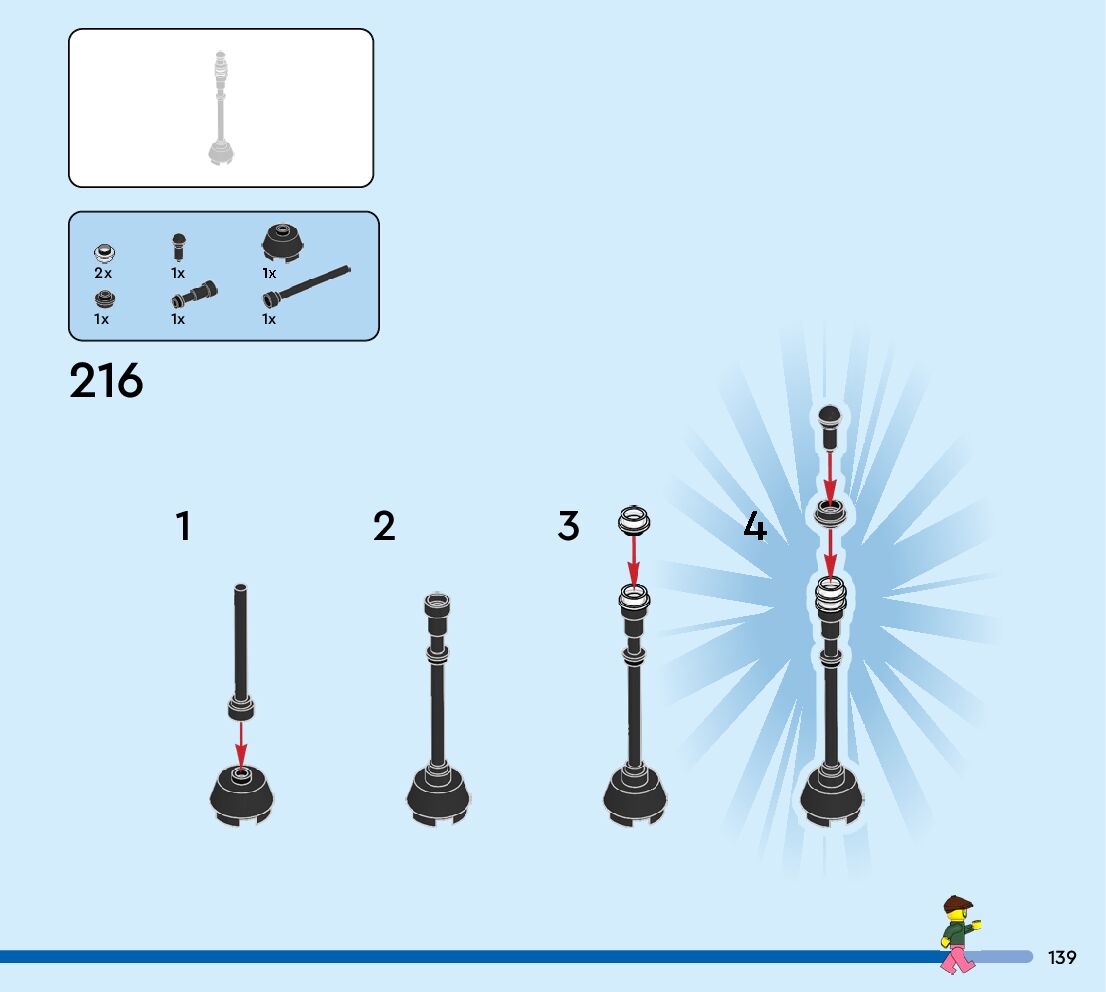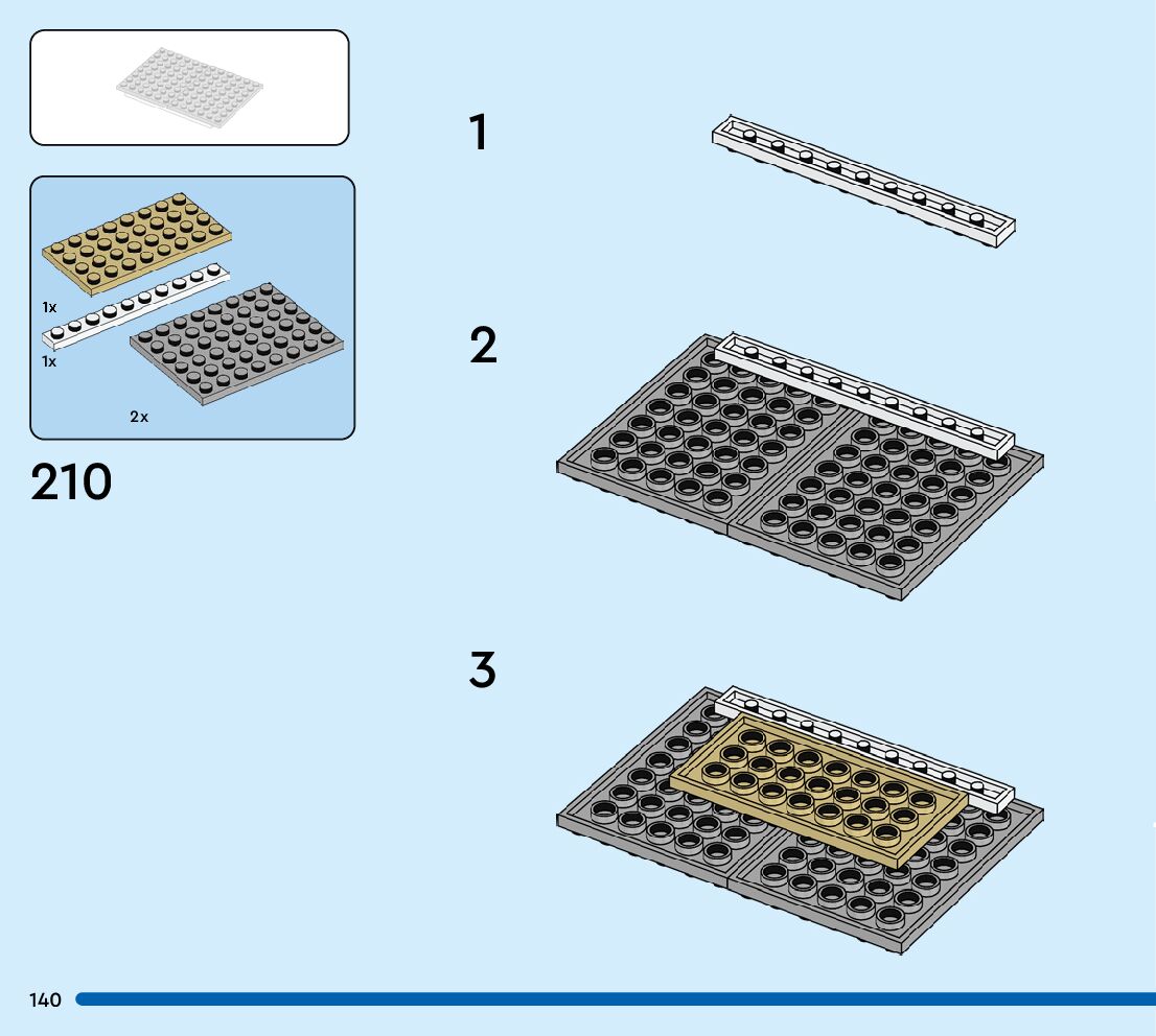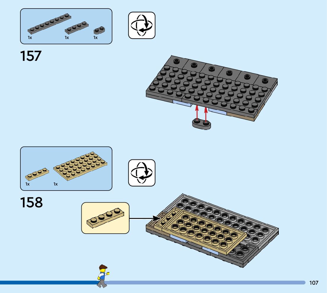 The assembly guide is prepared in a very understandable way for children and adult LEGO enthusiasts. A total of 580 picture galleries are shown, explaining the step-by-step construction stages for 3 different structures.