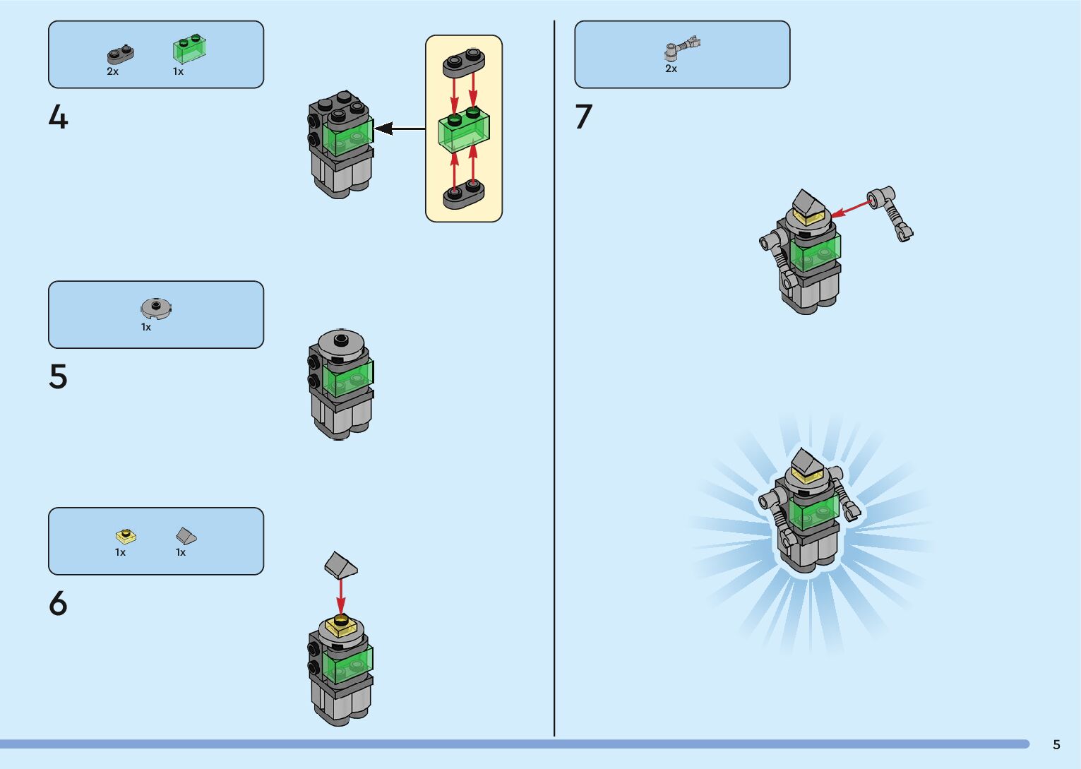 The assembly guide is prepared in a very understandable way for children and adult LEGO enthusiasts. A total of 352 picture galleries are shown, explaining the step-by-step construction stages for 3 different structures.