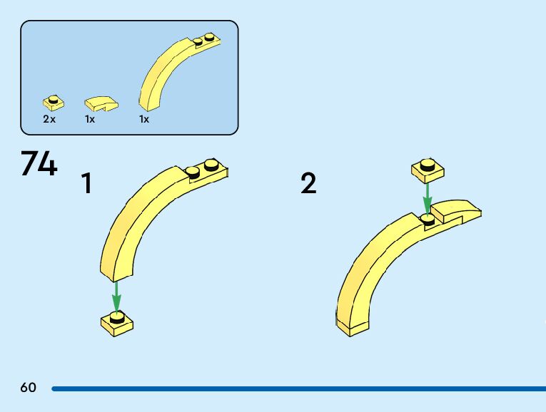 The assembly guide is prepared in a very understandable way for children and adult LEGO enthusiasts. A total of 144 picture galleries are shown, explaining the step-by-step construction stages for 3 different structures.