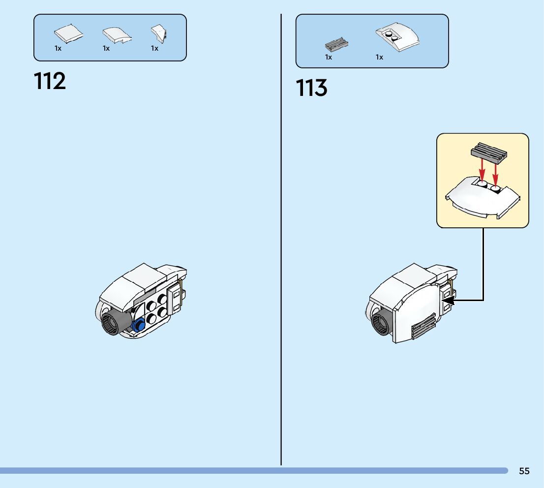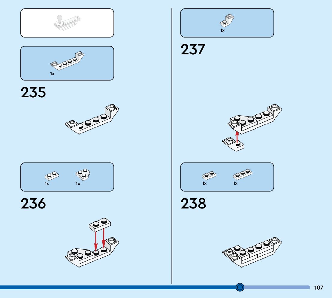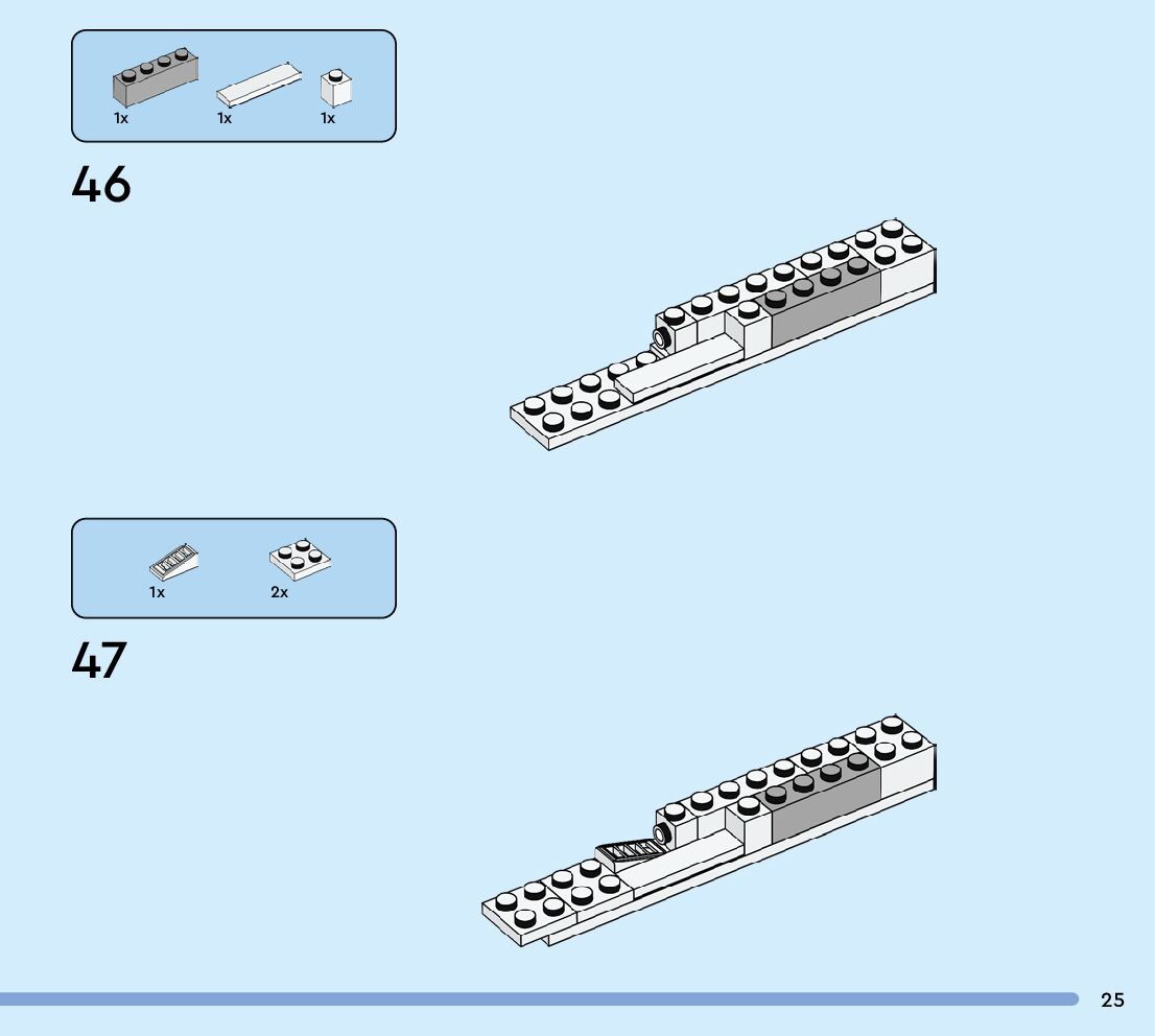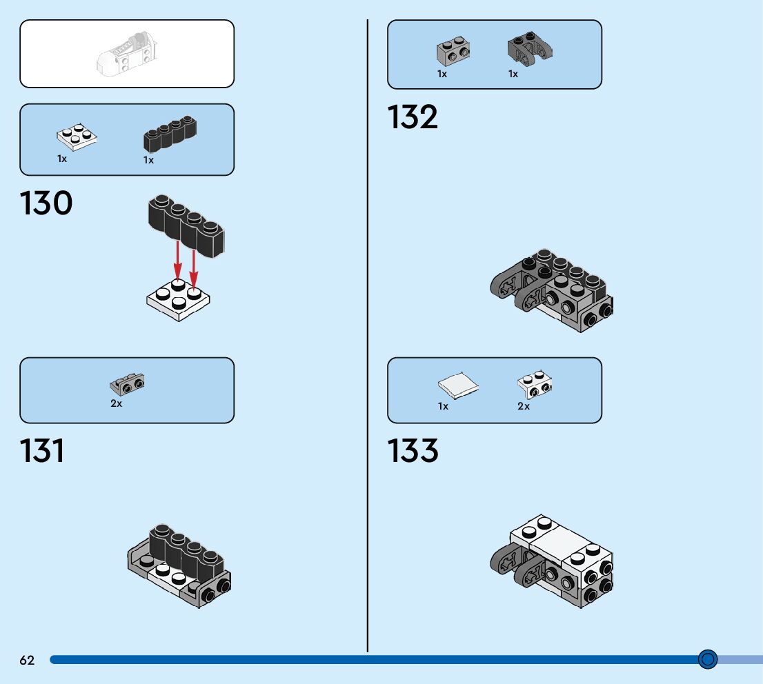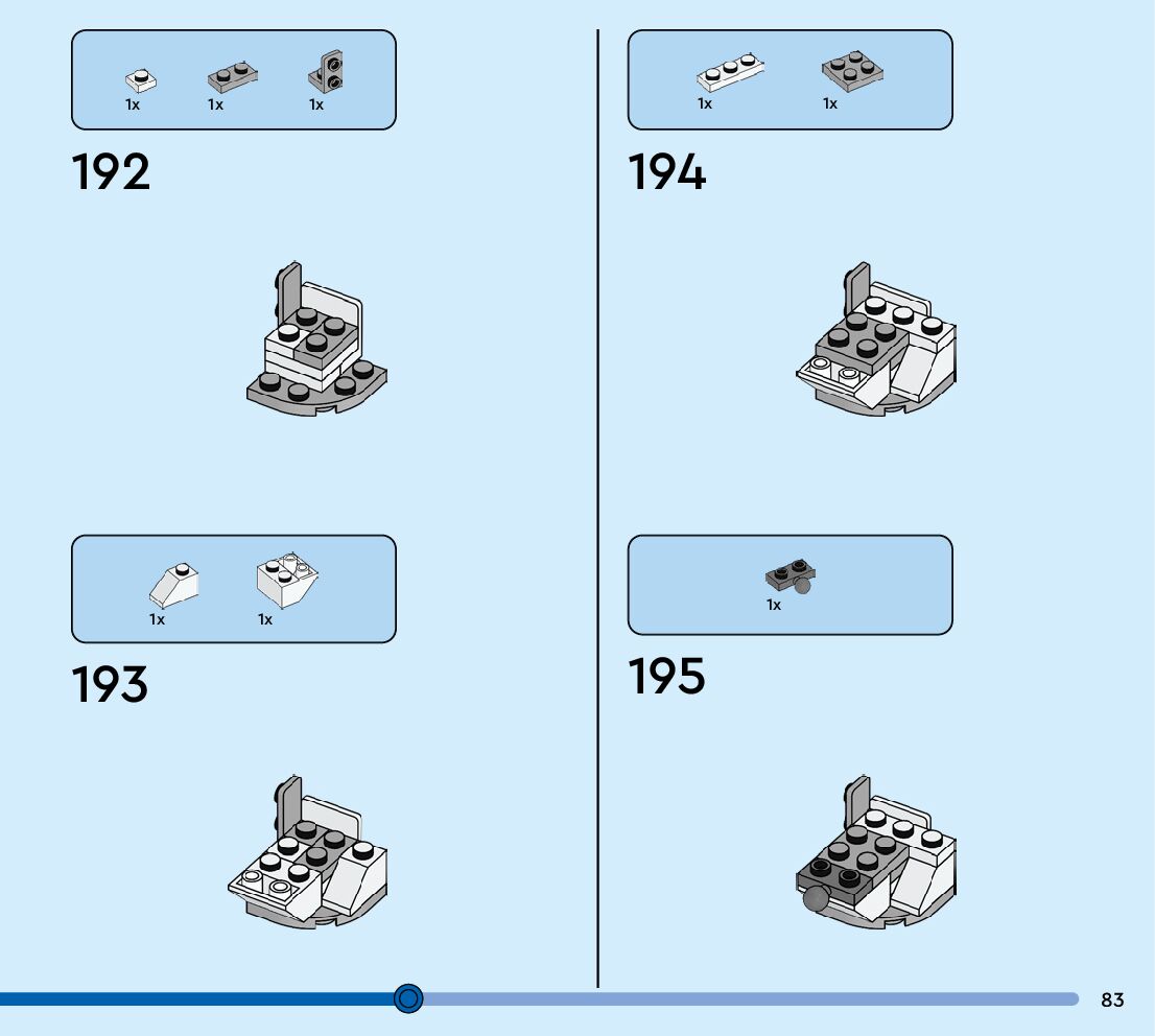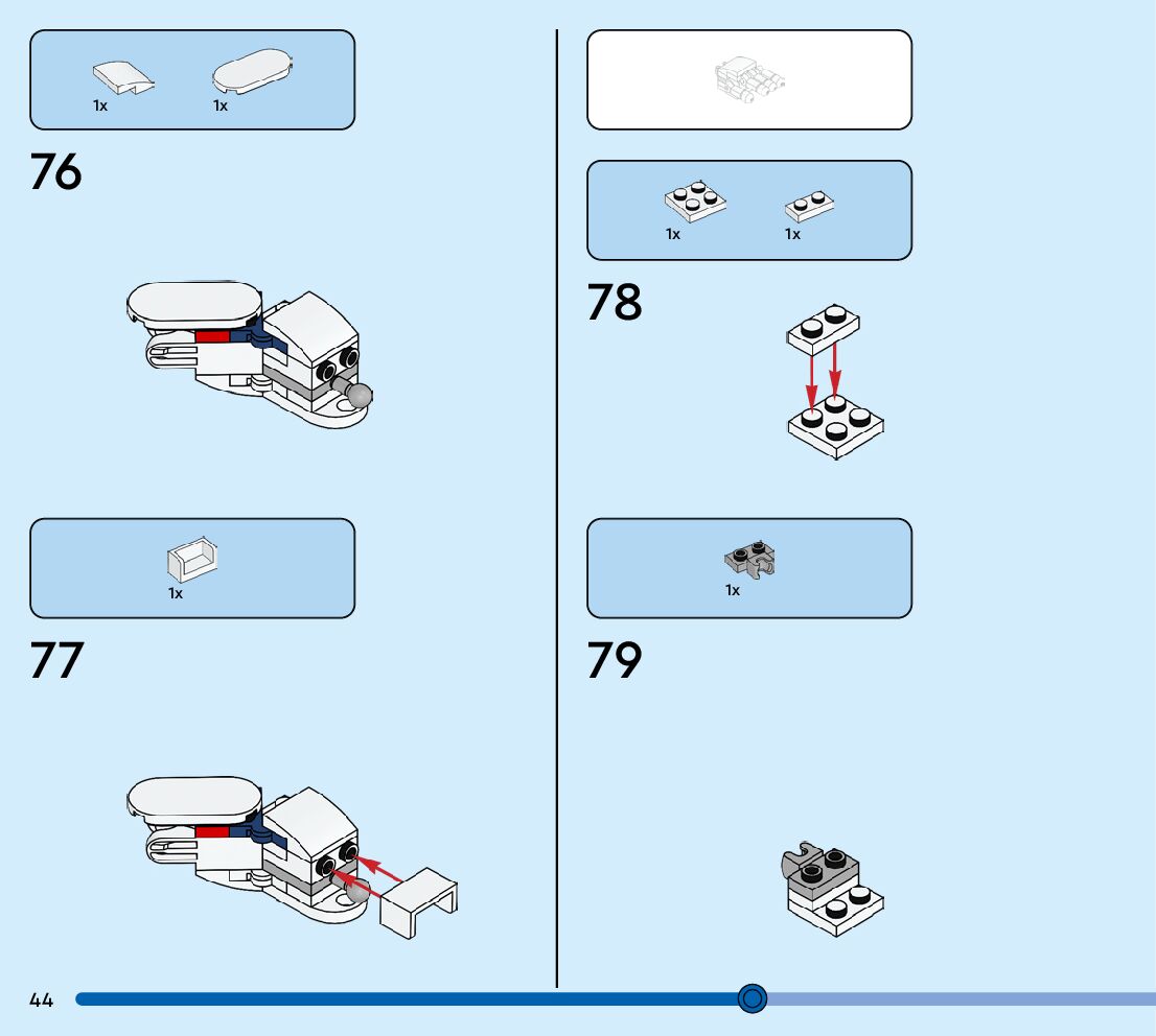 The assembly guide is prepared in a very understandable way for children and adult LEGO enthusiasts. A total of 256 picture galleries are shown, explaining the step-by-step construction stages for 3 different structures.