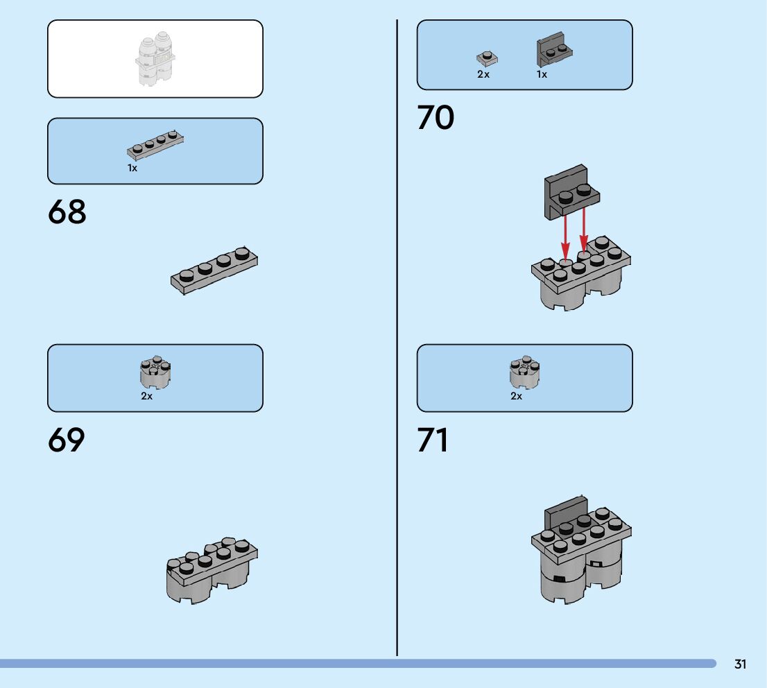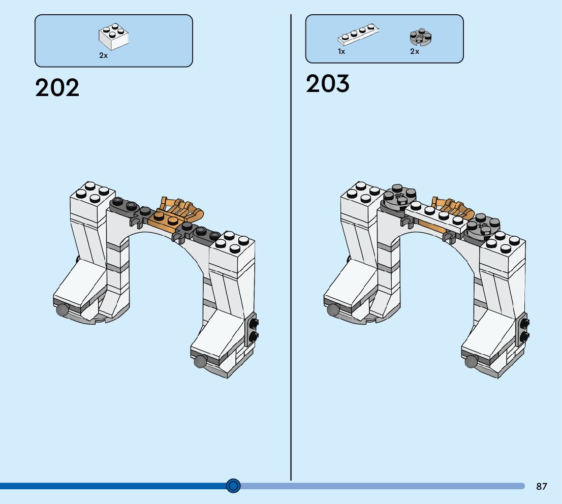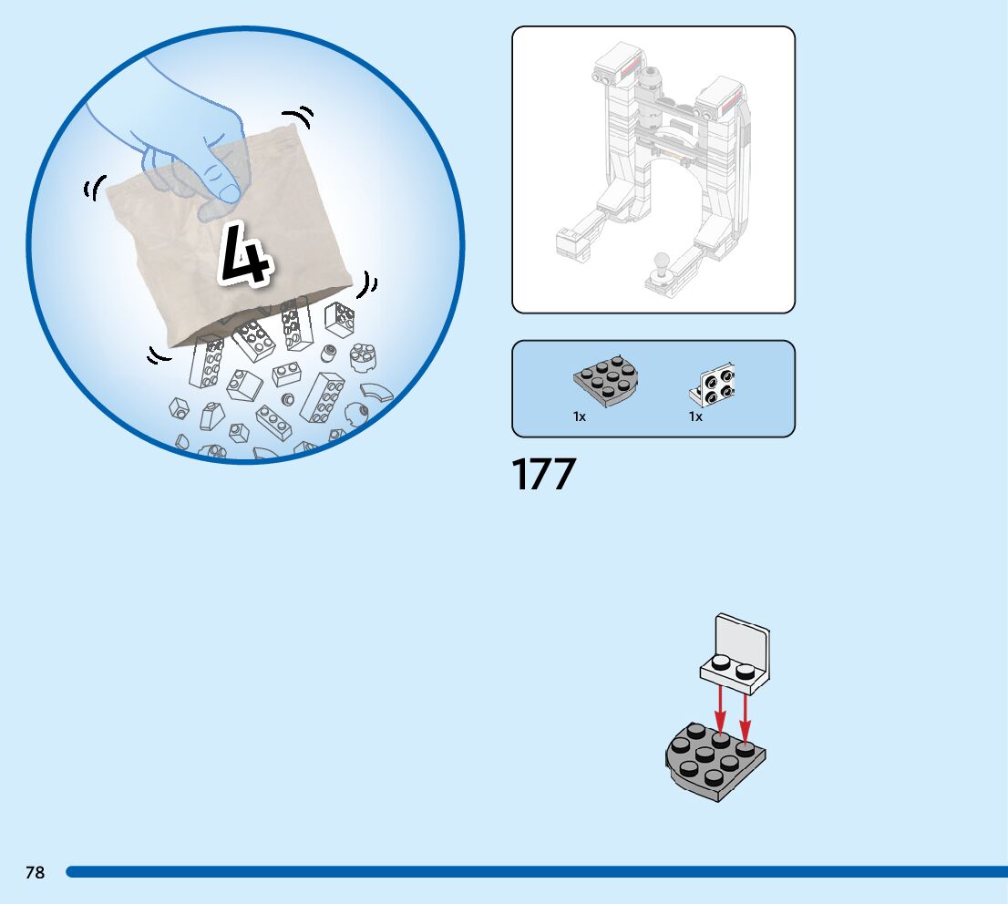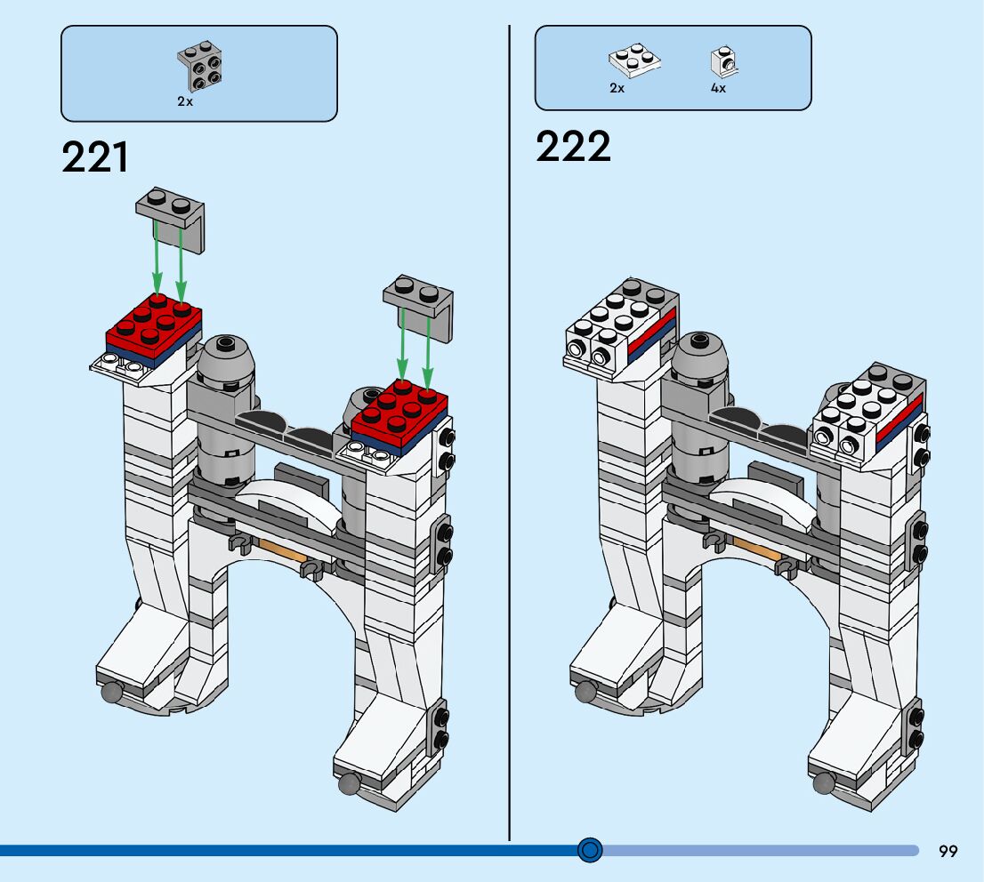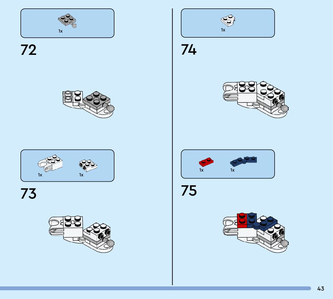 The assembly guide is prepared in a very understandable way for children and adult LEGO enthusiasts. A total of 256 picture galleries are shown, explaining the step-by-step construction stages for 3 different structures.