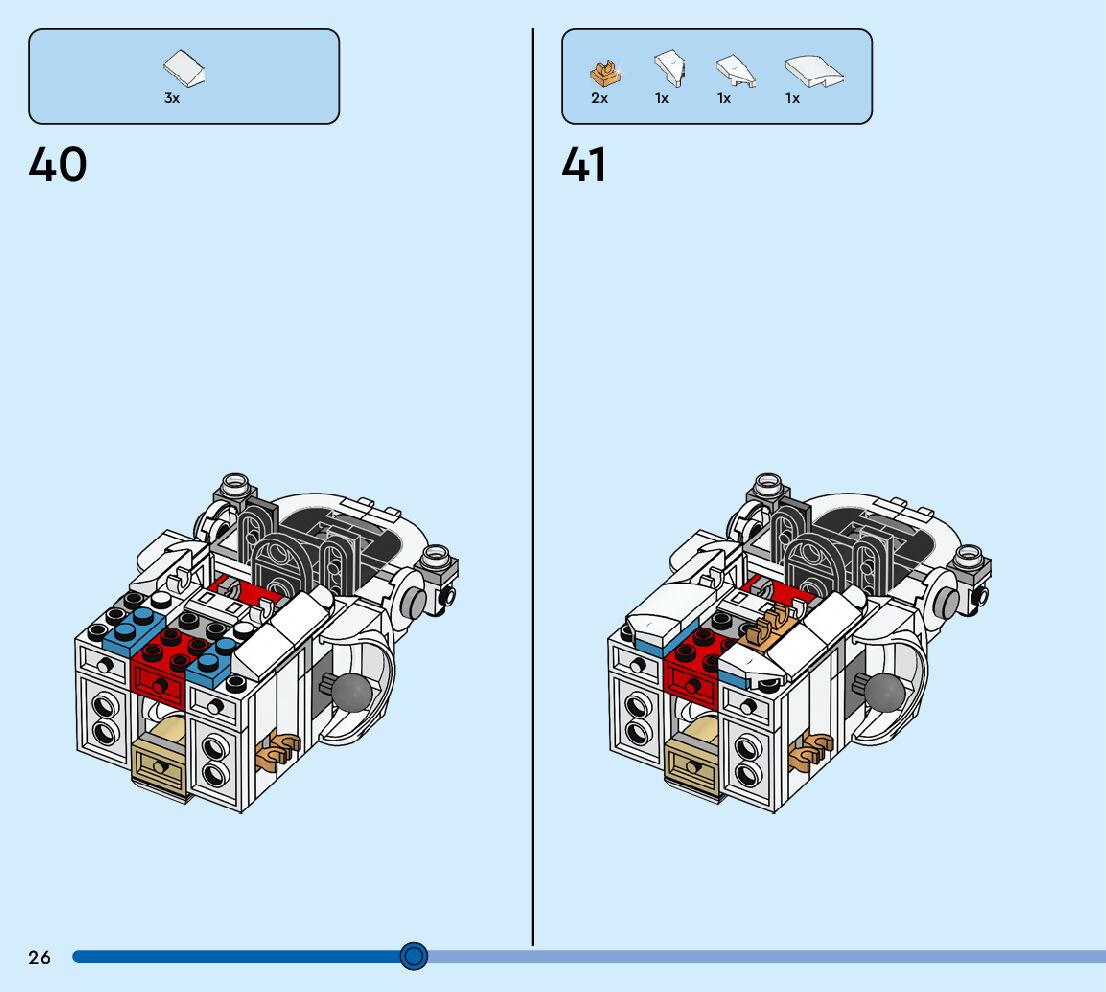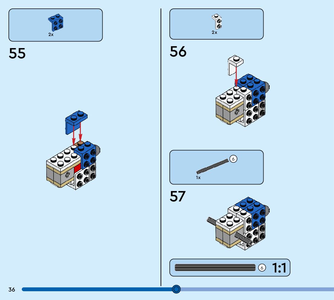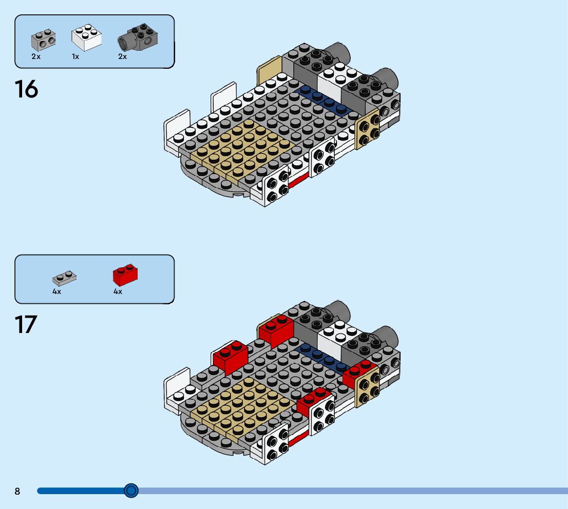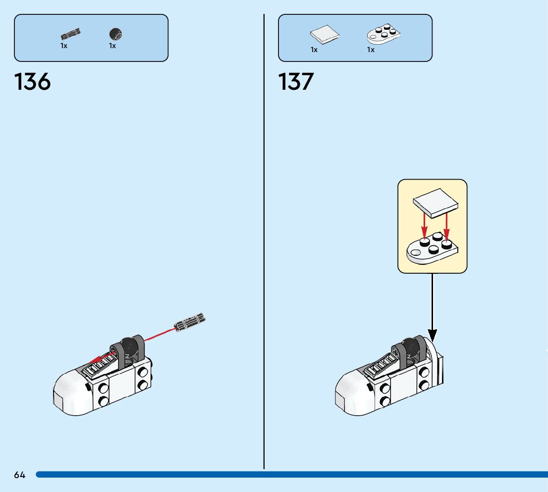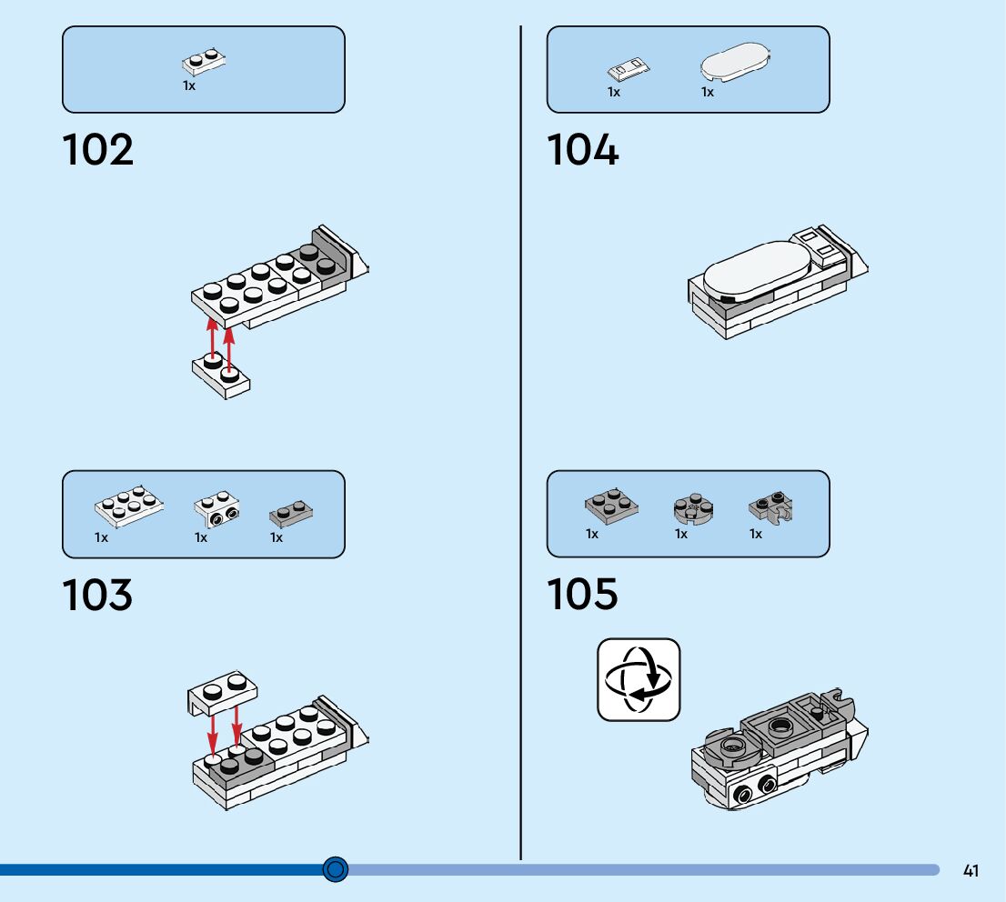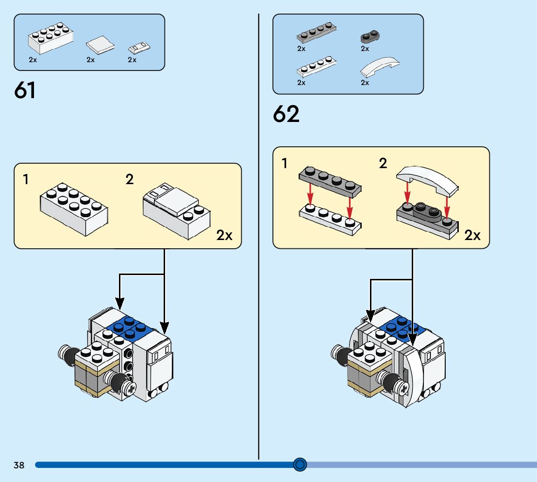 The assembly guide is prepared in a very understandable way for children and adult LEGO enthusiasts. A total of 256 picture galleries are shown, explaining the step-by-step construction stages for 3 different structures.
