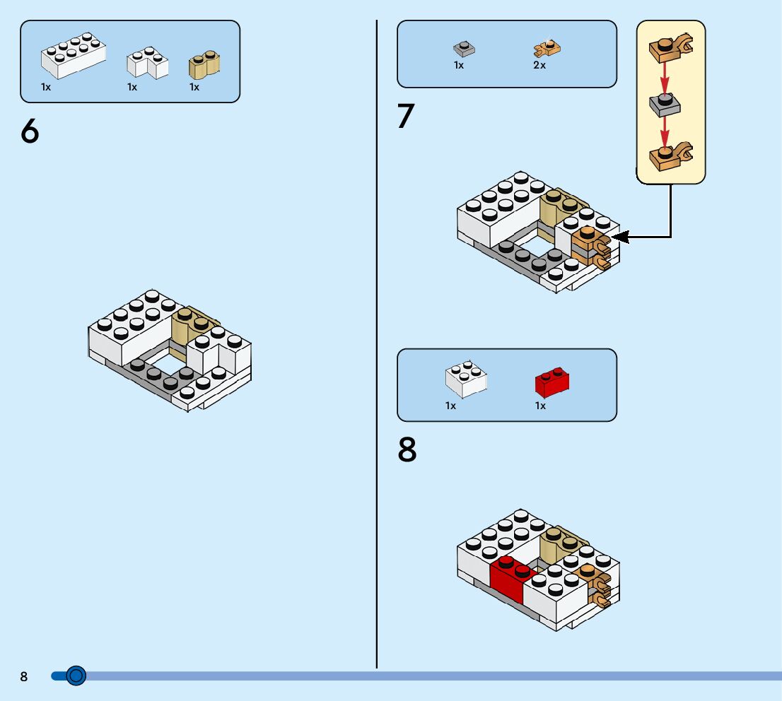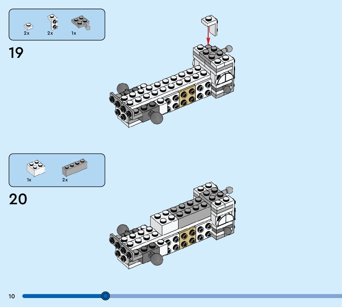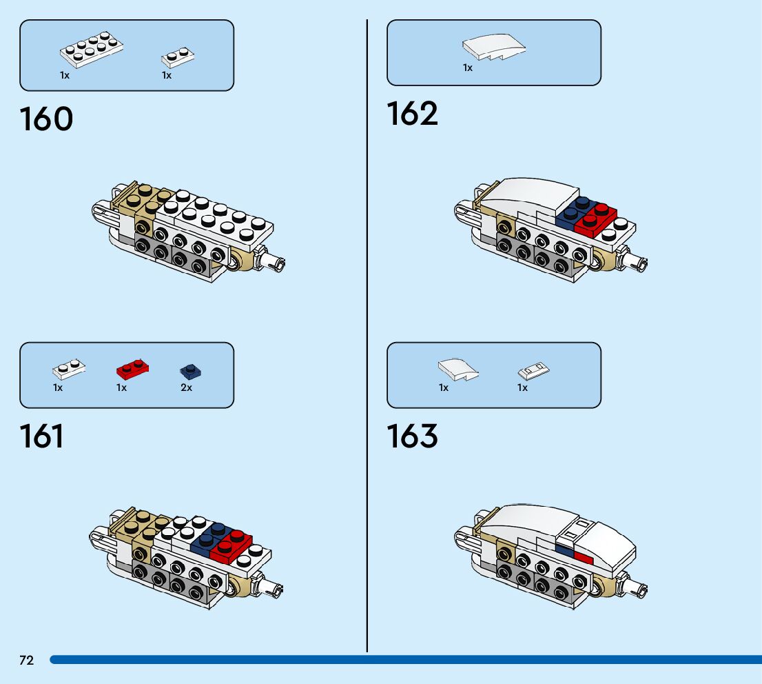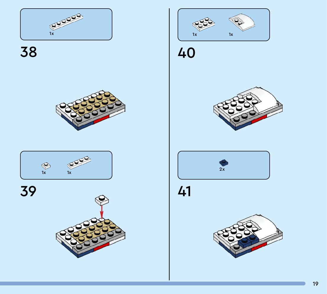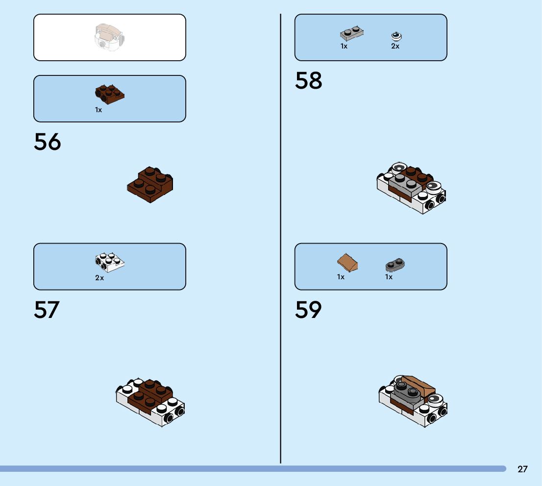 The assembly guide is prepared in a very understandable way for children and adult LEGO enthusiasts. A total of 256 picture galleries are shown, explaining the step-by-step construction stages for 3 different structures.