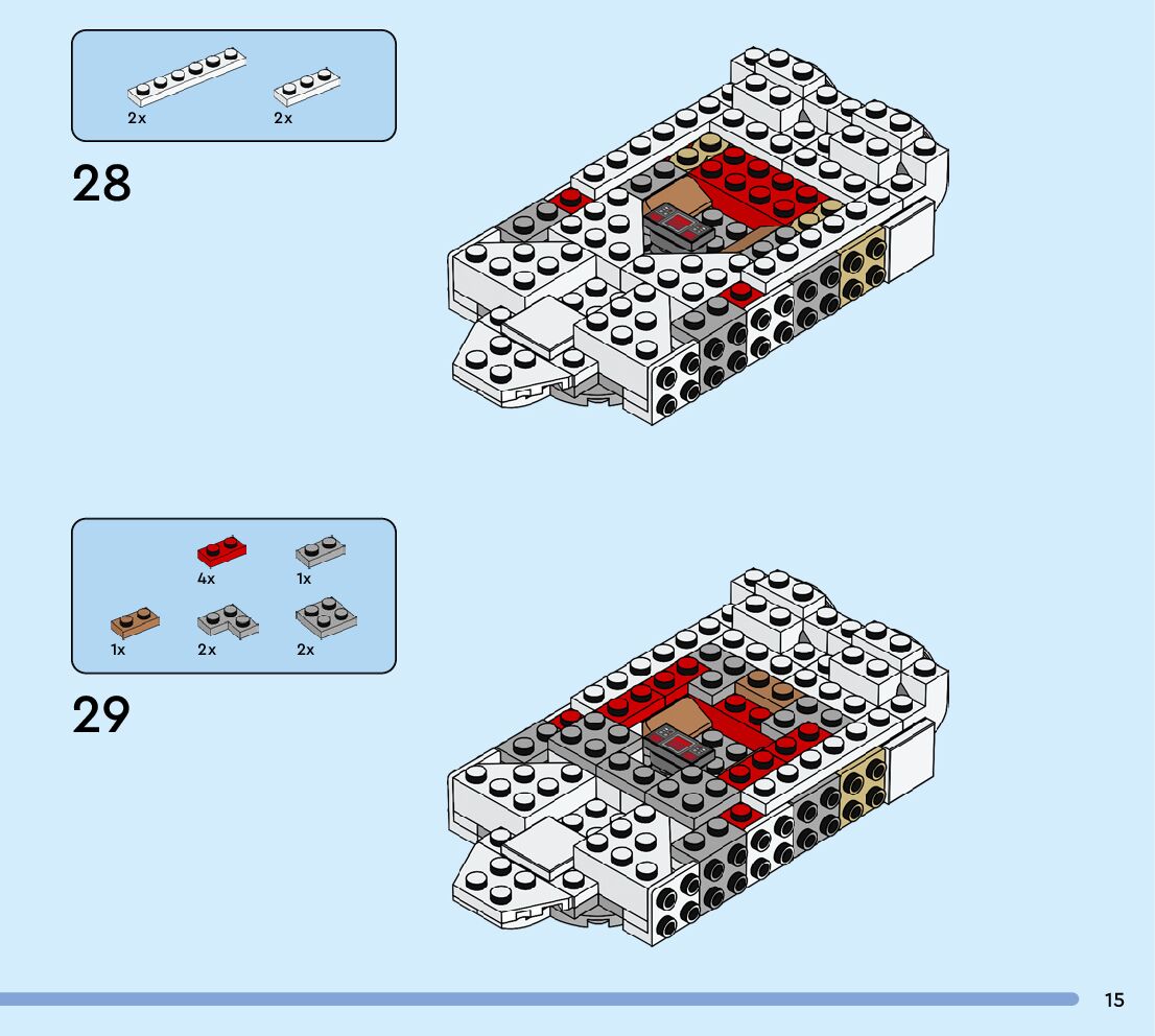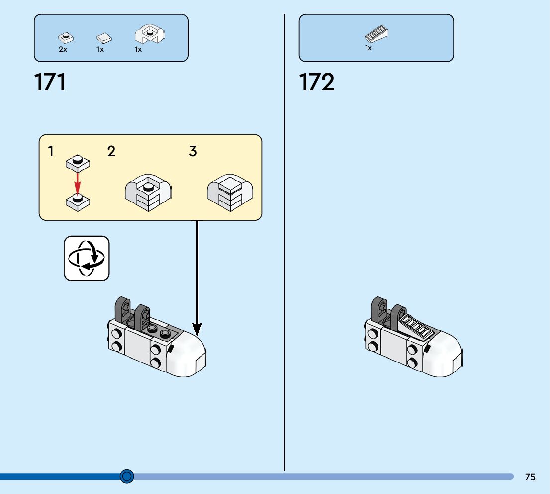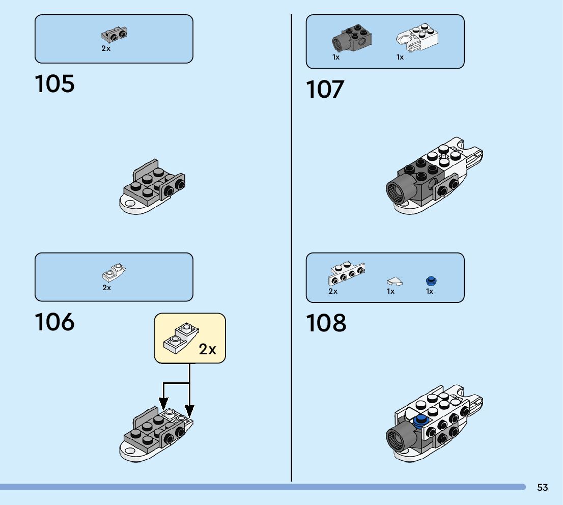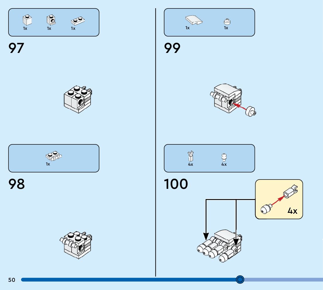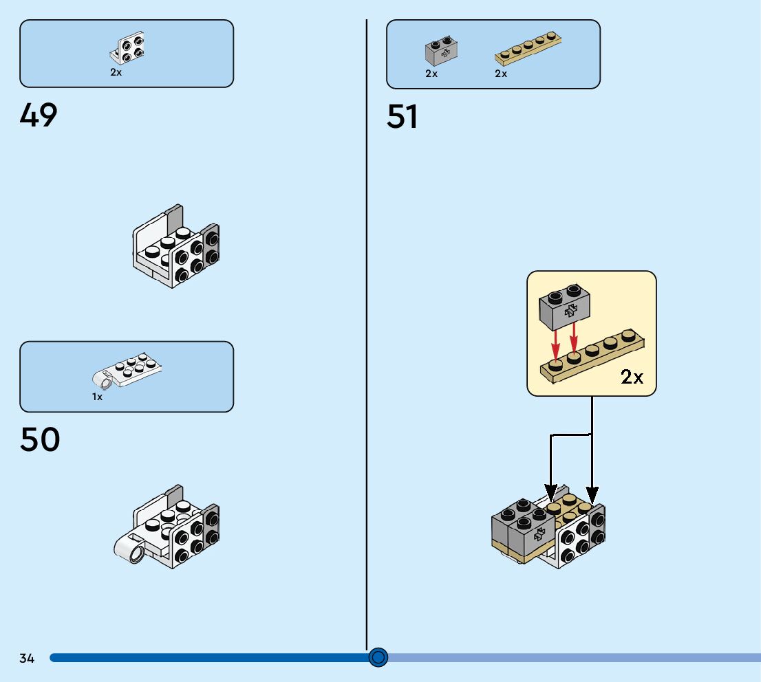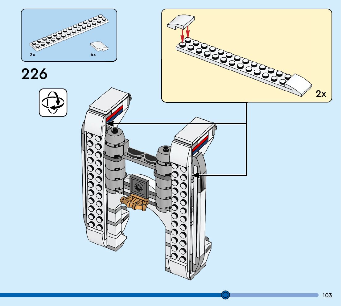 The assembly guide is prepared in a very understandable way for children and adult LEGO enthusiasts. A total of 256 picture galleries are shown, explaining the step-by-step construction stages for 3 different structures.