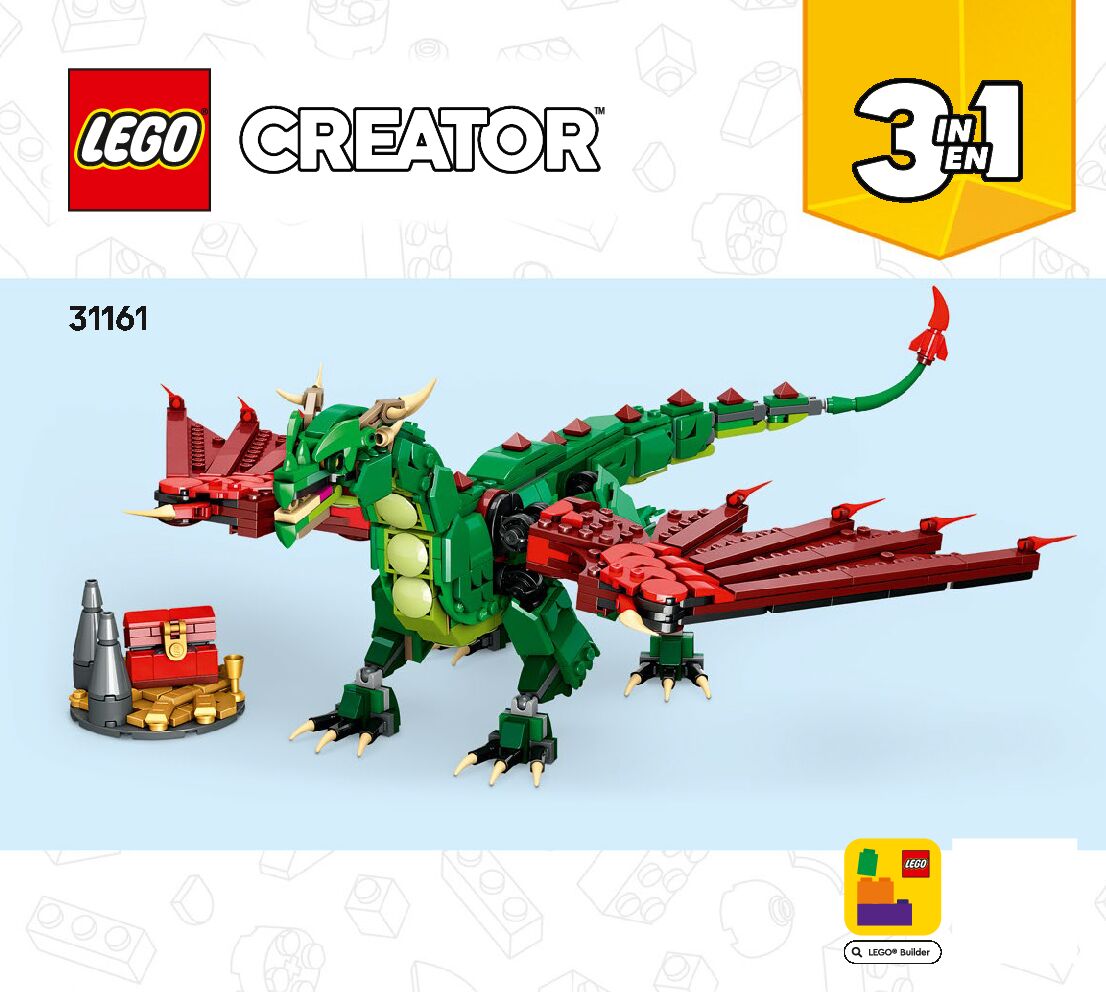 This page shares information about LEGO Medieval Dragon manual, LEGO 31161 PDF instructions, LEGO Medieval Dragon building guide online, How to build Medieval Dragon LEGO.