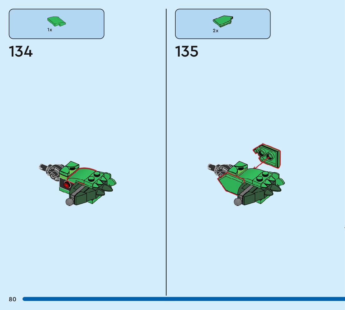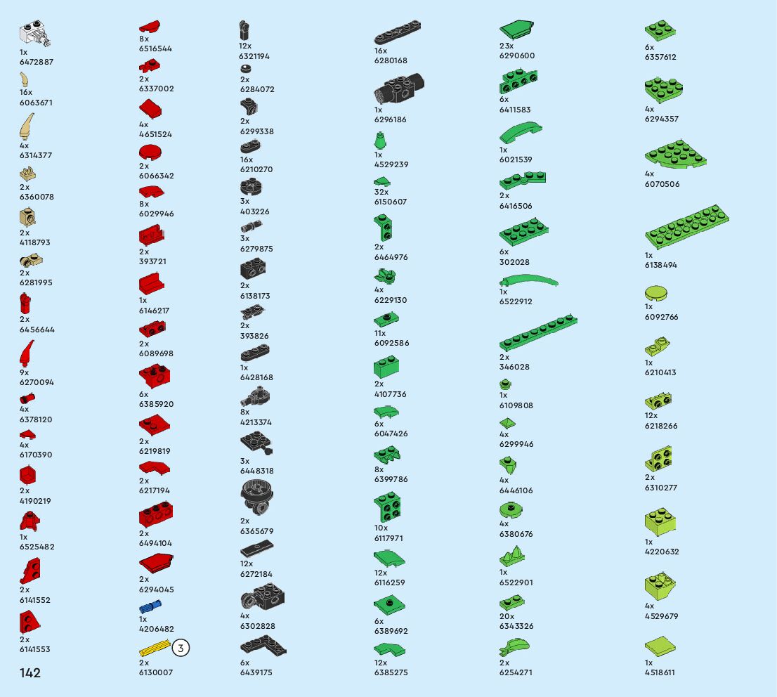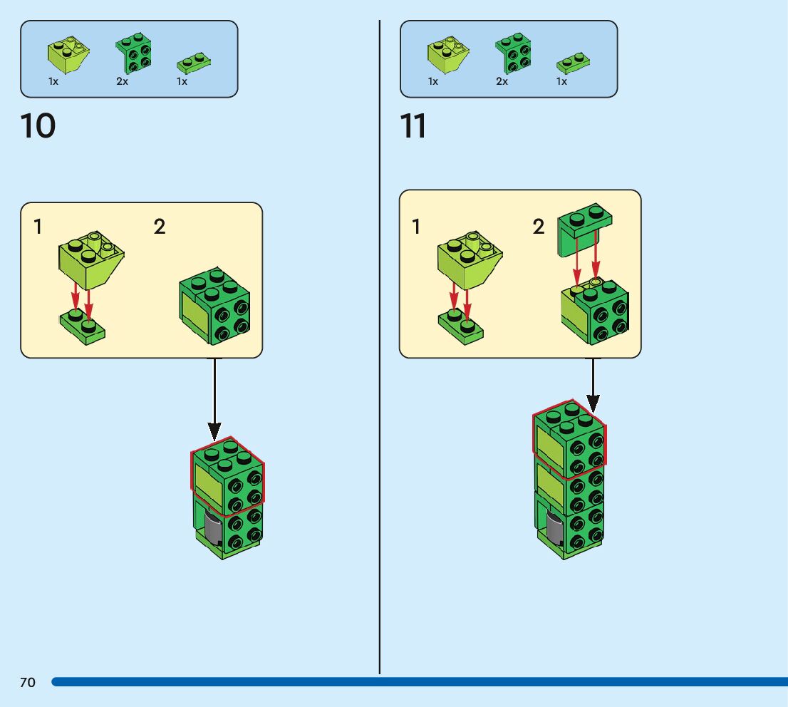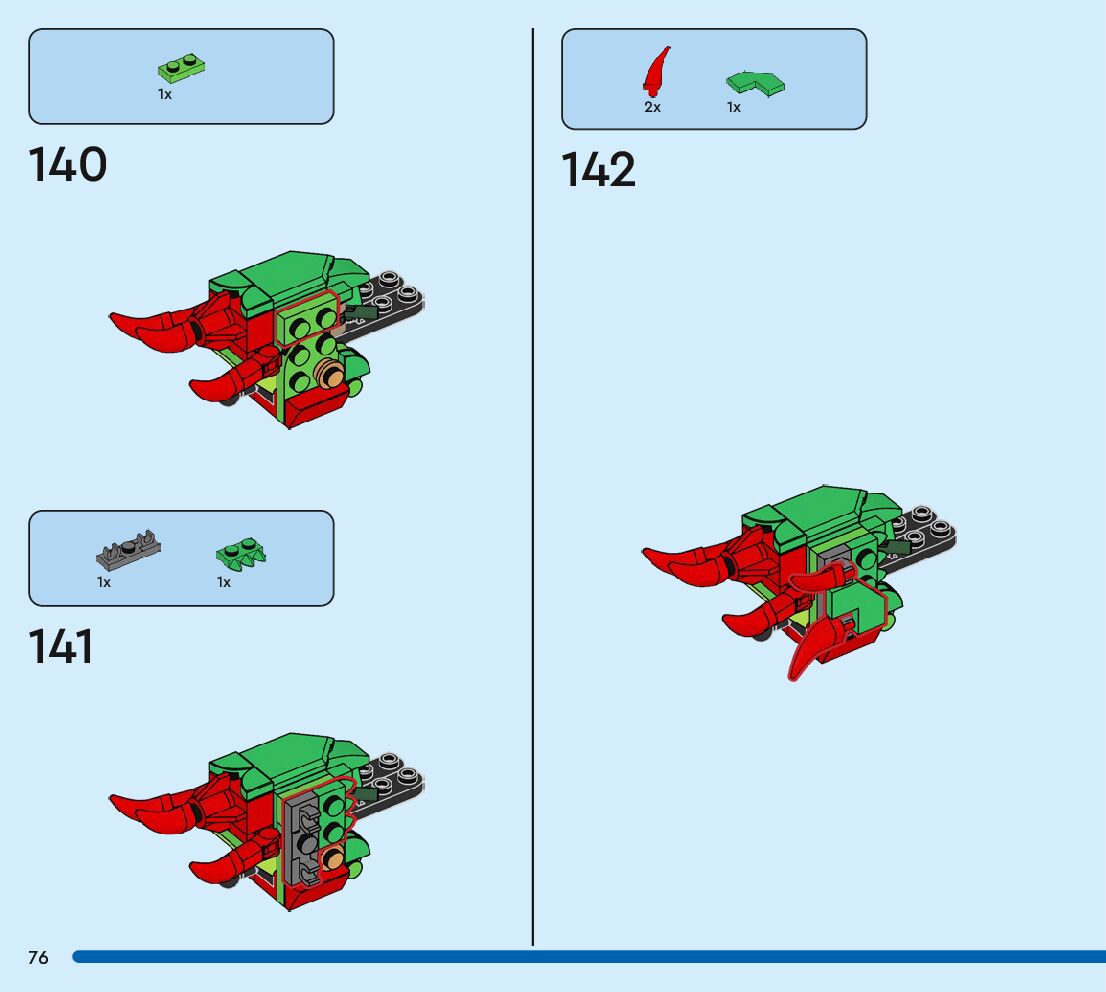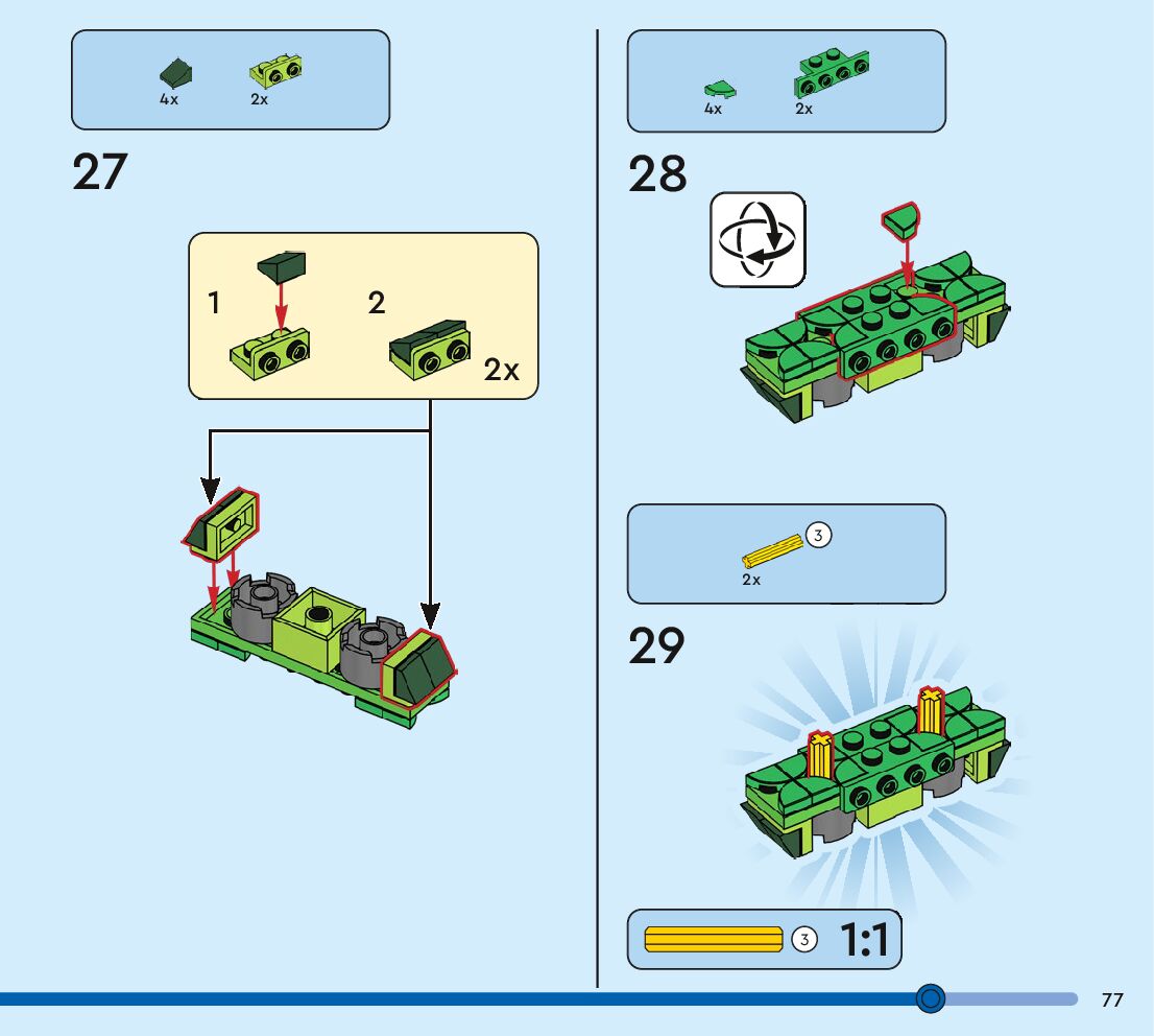The assembly guide is prepared in a very understandable way for children and adult LEGO enthusiasts. A total of 312 picture galleries are shown, explaining the step-by-step construction stages for 3 different structures.