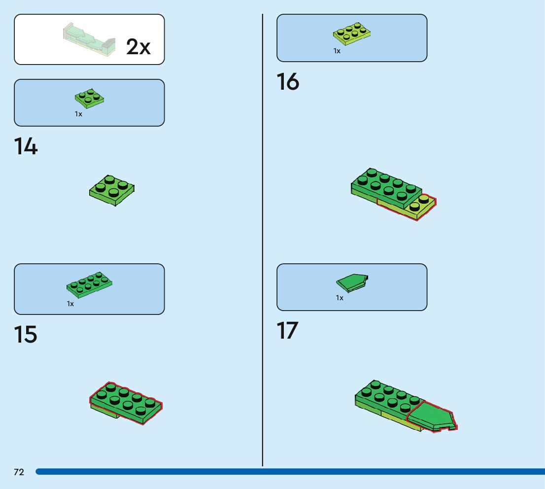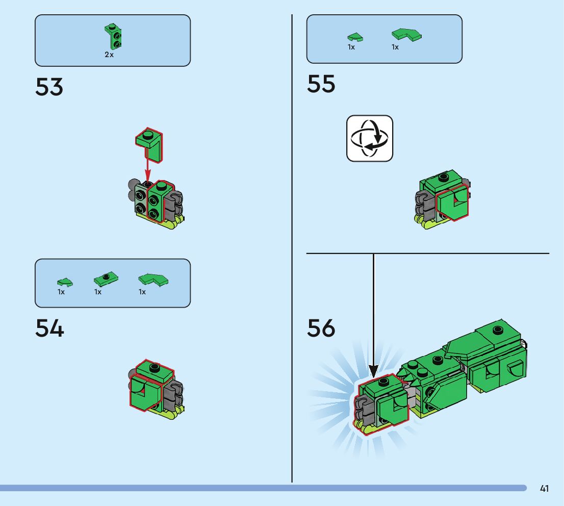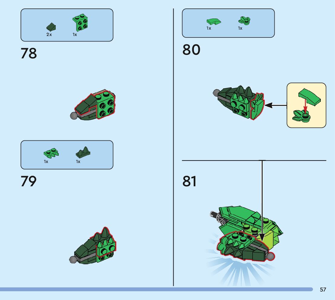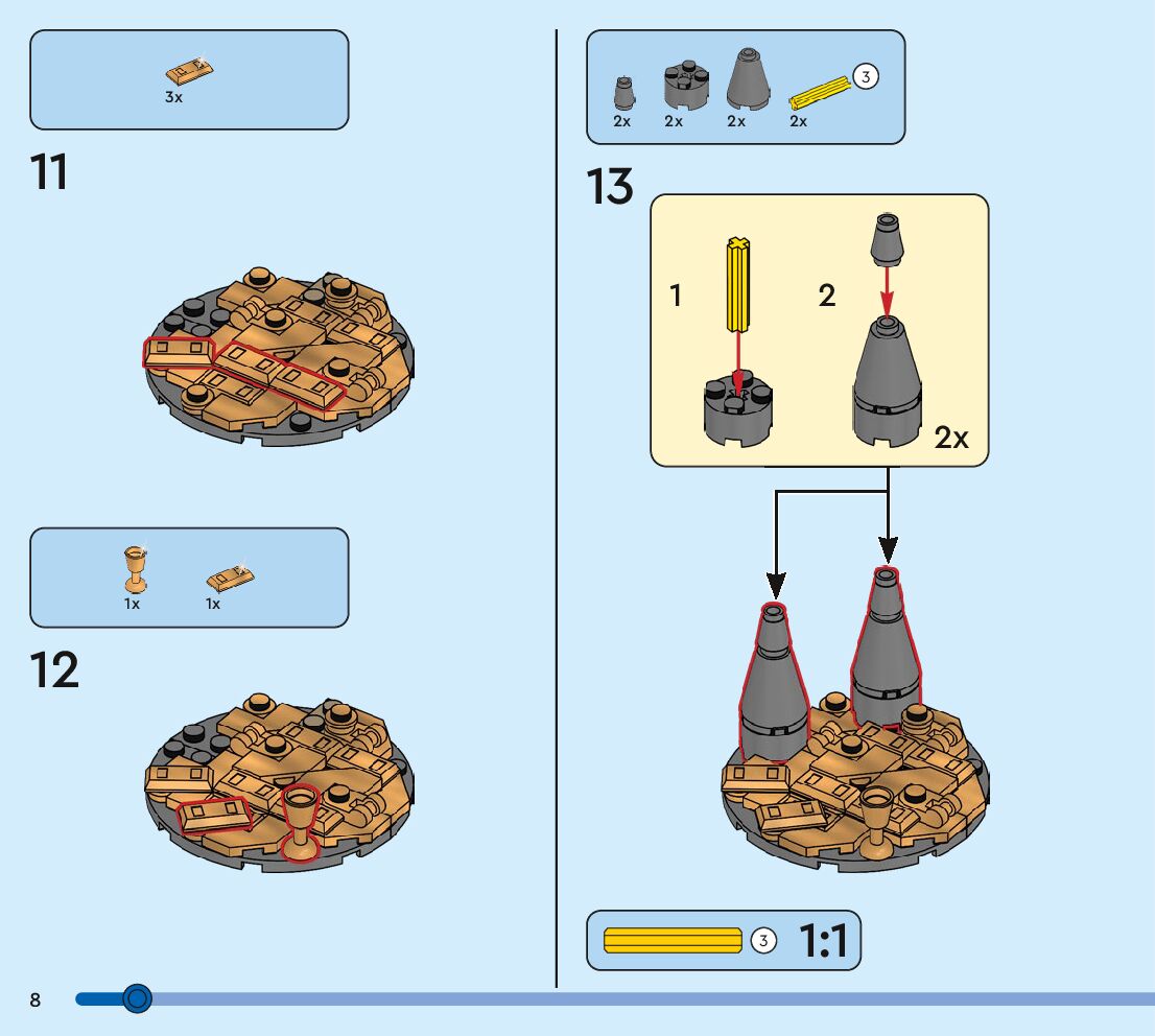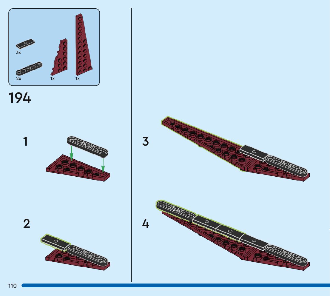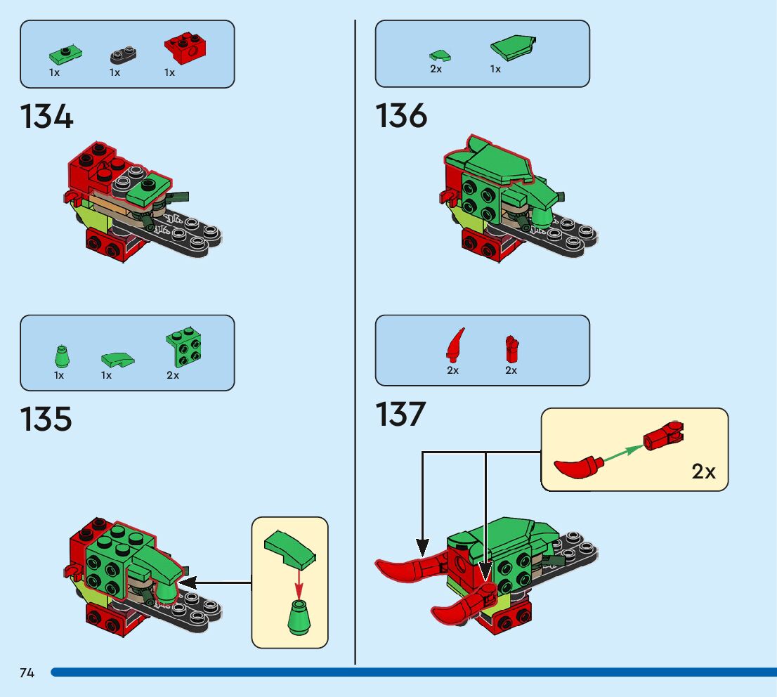 The assembly guide is prepared in a very understandable way for children and adult LEGO enthusiasts. A total of 312 picture galleries are shown, explaining the step-by-step construction stages for 3 different structures.