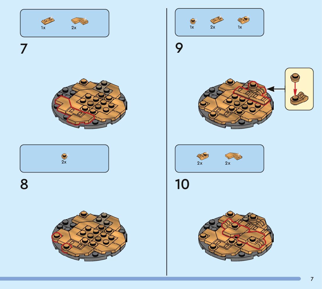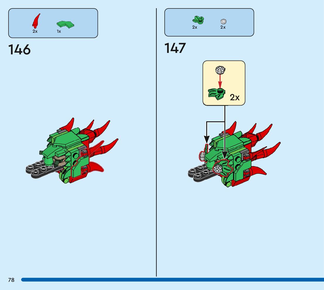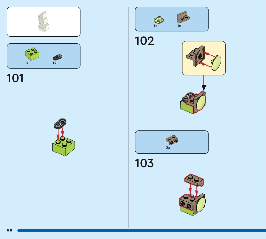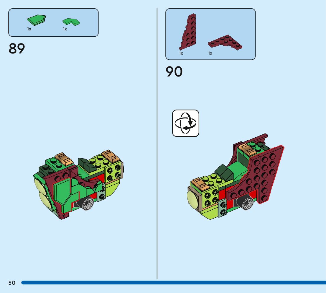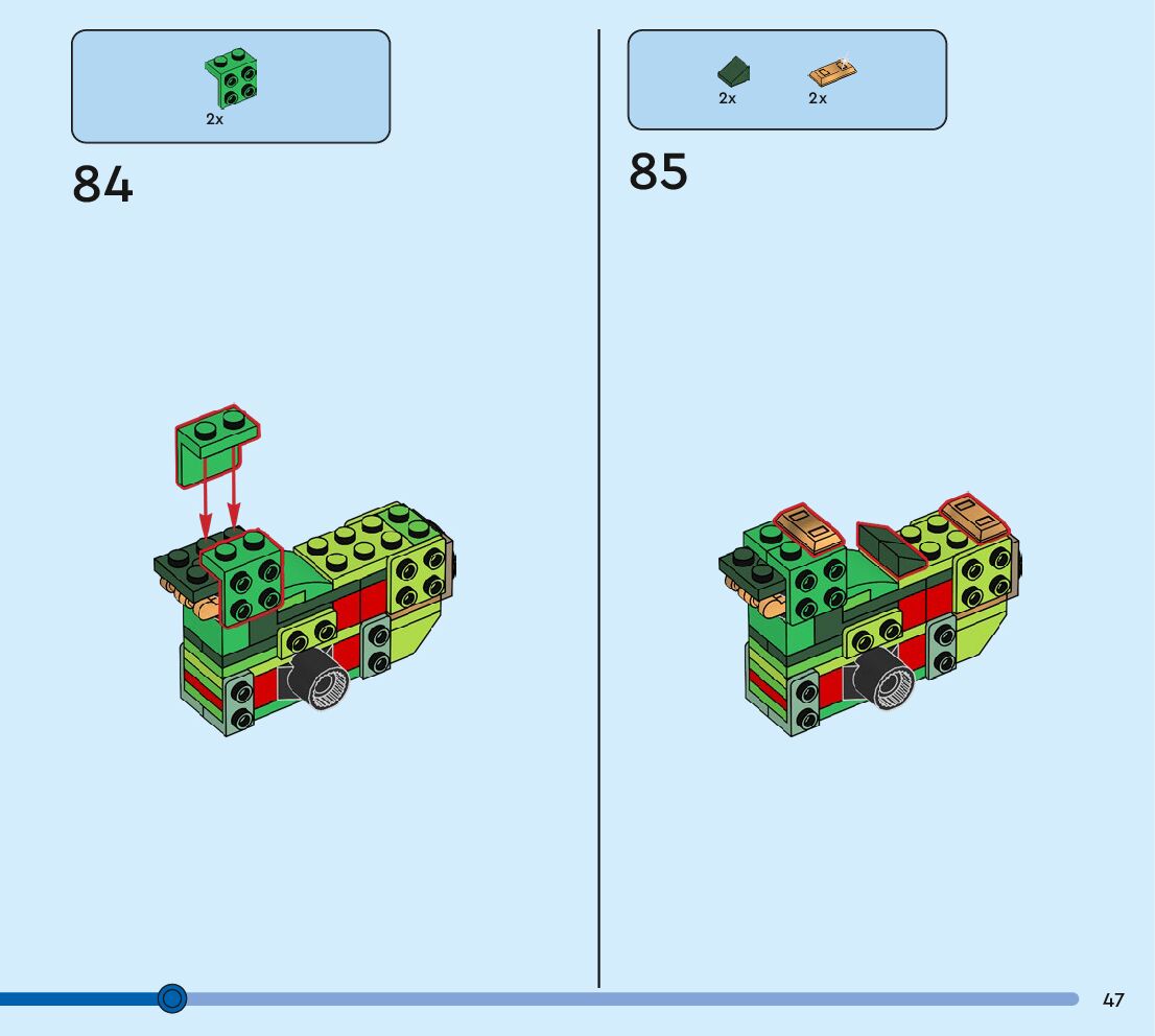 The assembly guide is prepared in a very understandable way for children and adult LEGO enthusiasts. A total of 312 picture galleries are shown, explaining the step-by-step construction stages for 3 different structures.