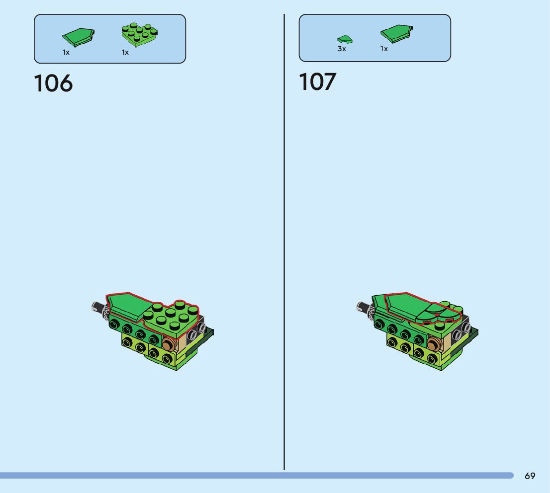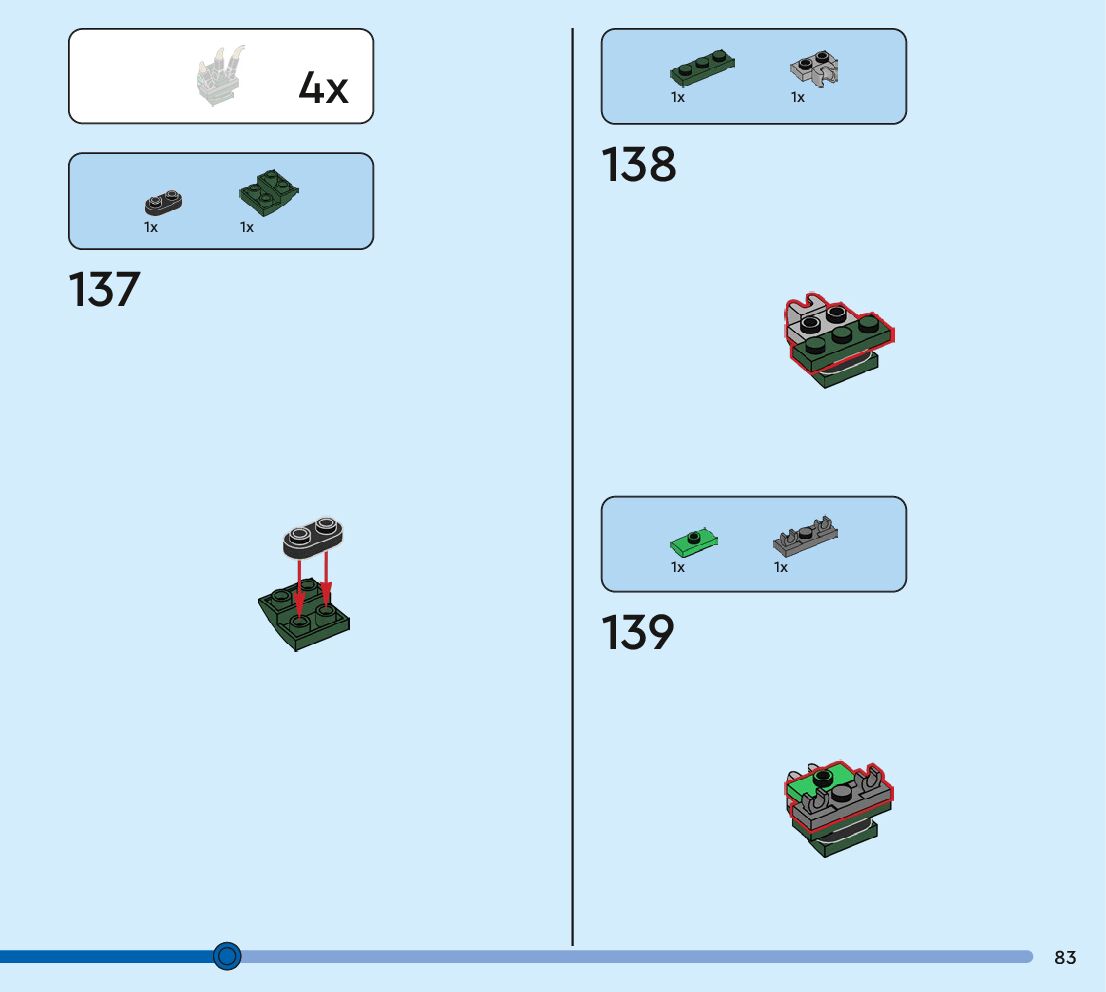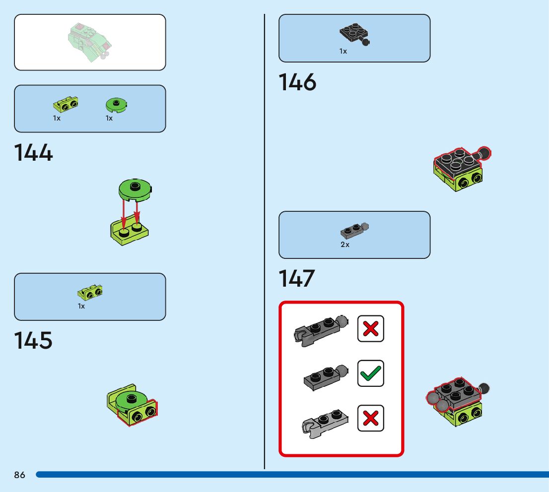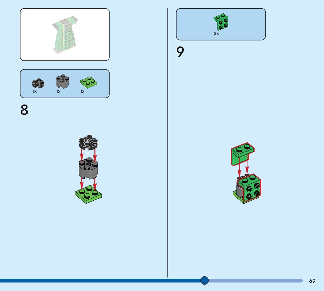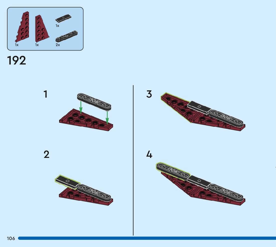 The assembly guide is prepared in a very understandable way for children and adult LEGO enthusiasts. A total of 312 picture galleries are shown, explaining the step-by-step construction stages for 3 different structures.
