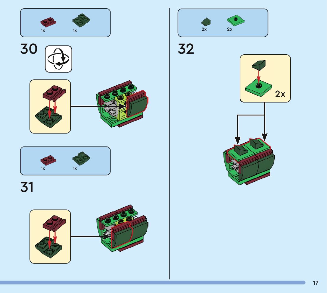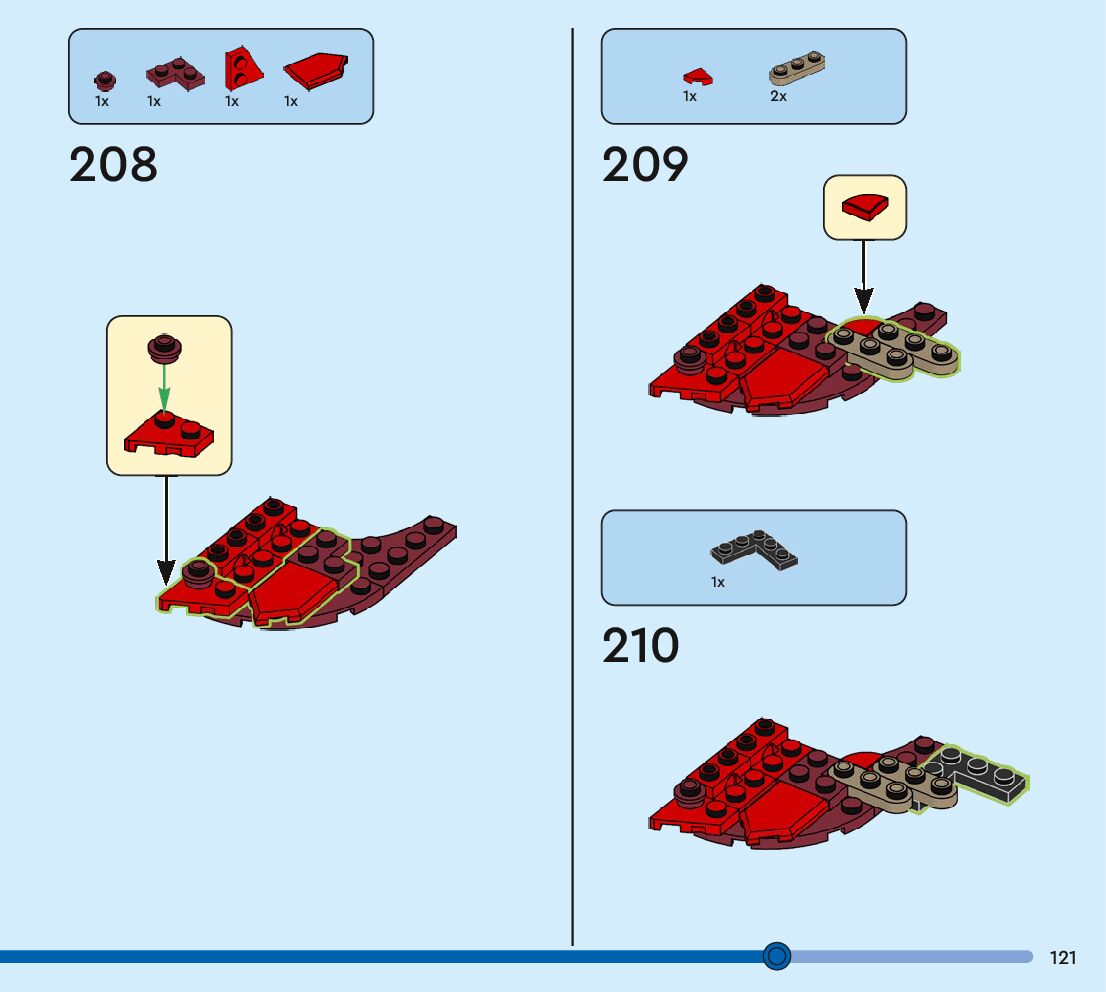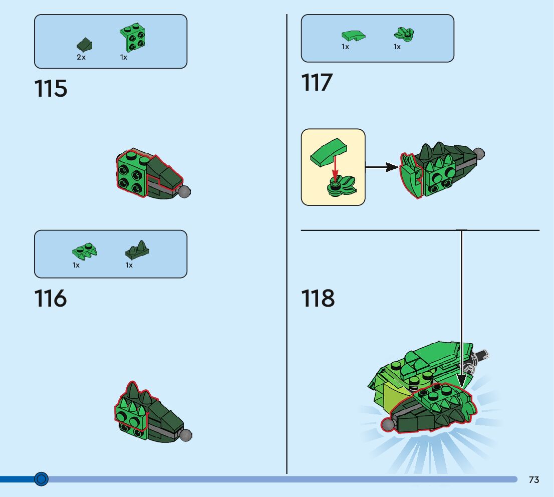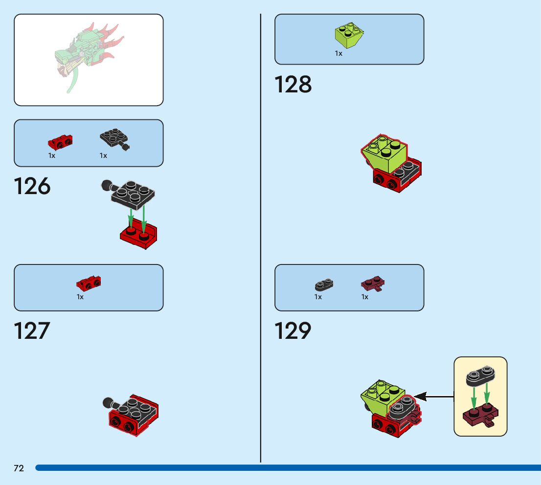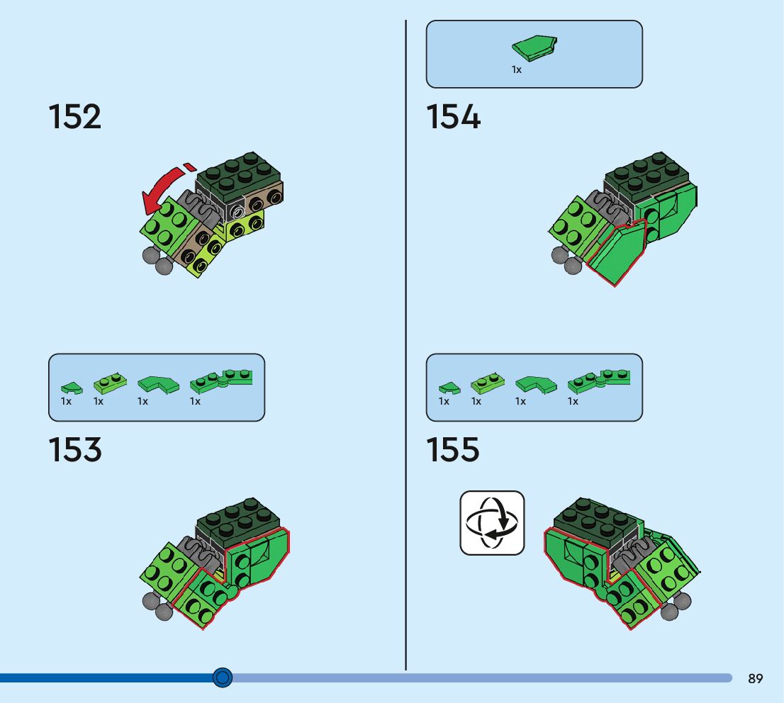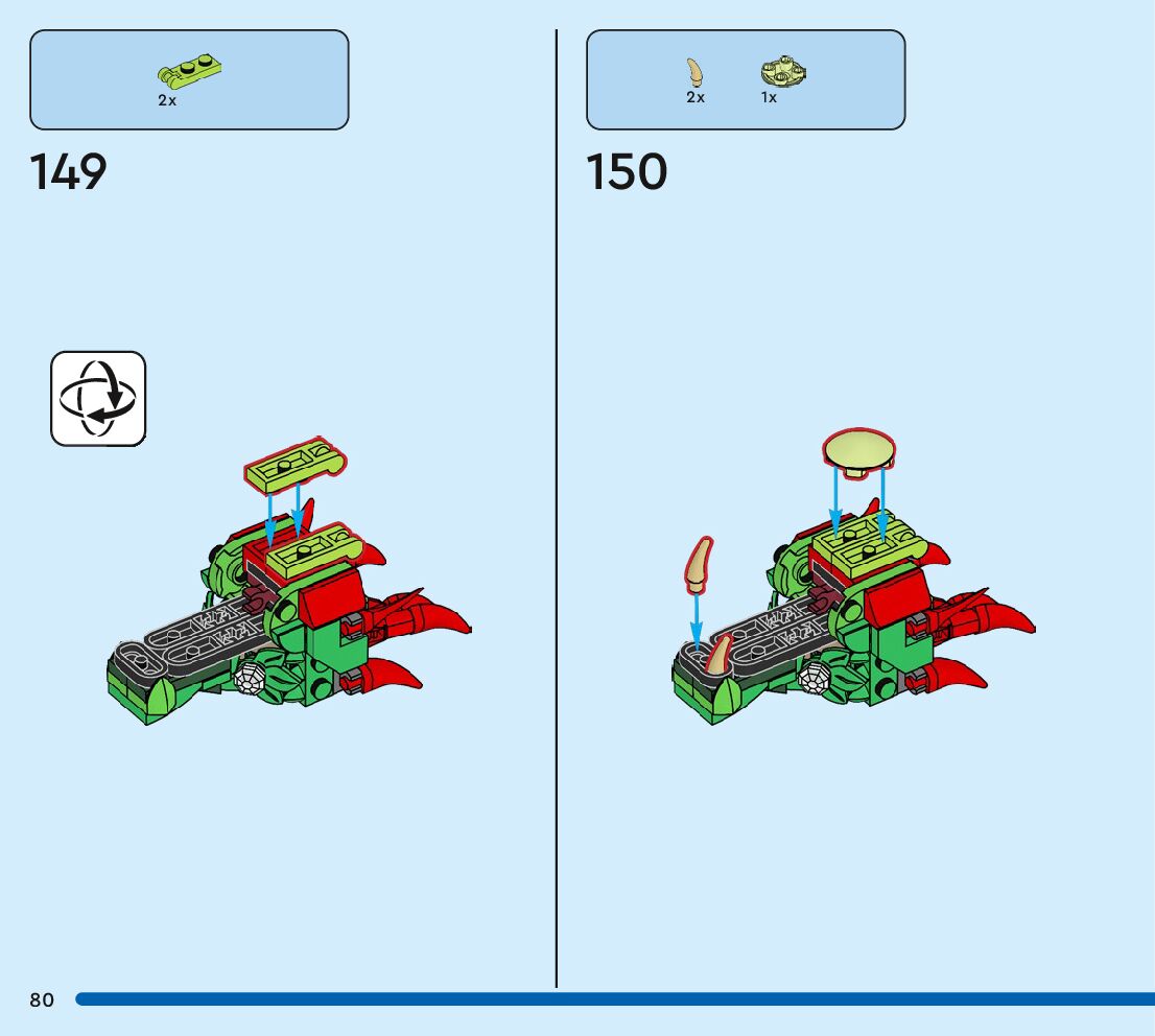 The assembly guide is prepared in a very understandable way for children and adult LEGO enthusiasts. A total of 312 picture galleries are shown, explaining the step-by-step construction stages for 3 different structures.