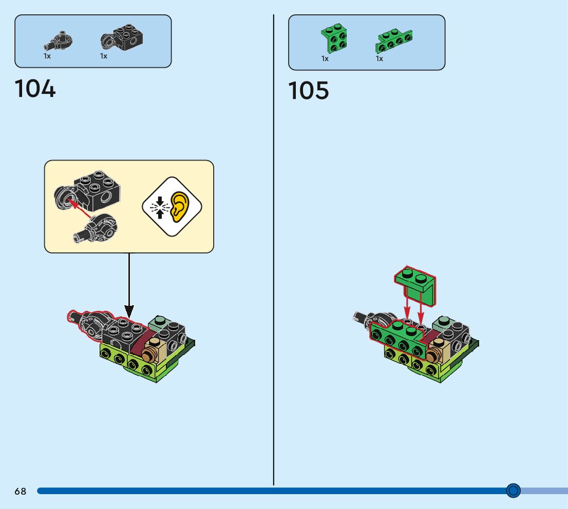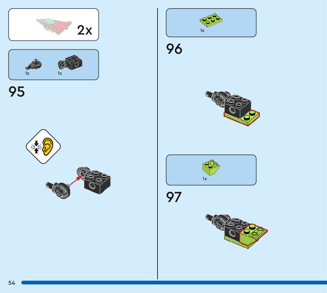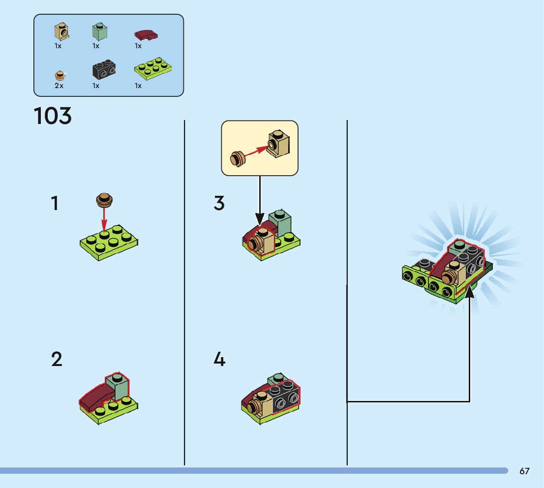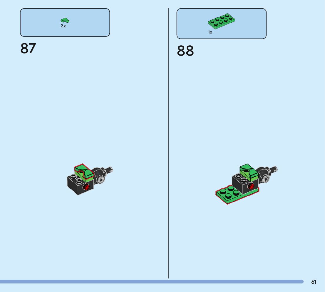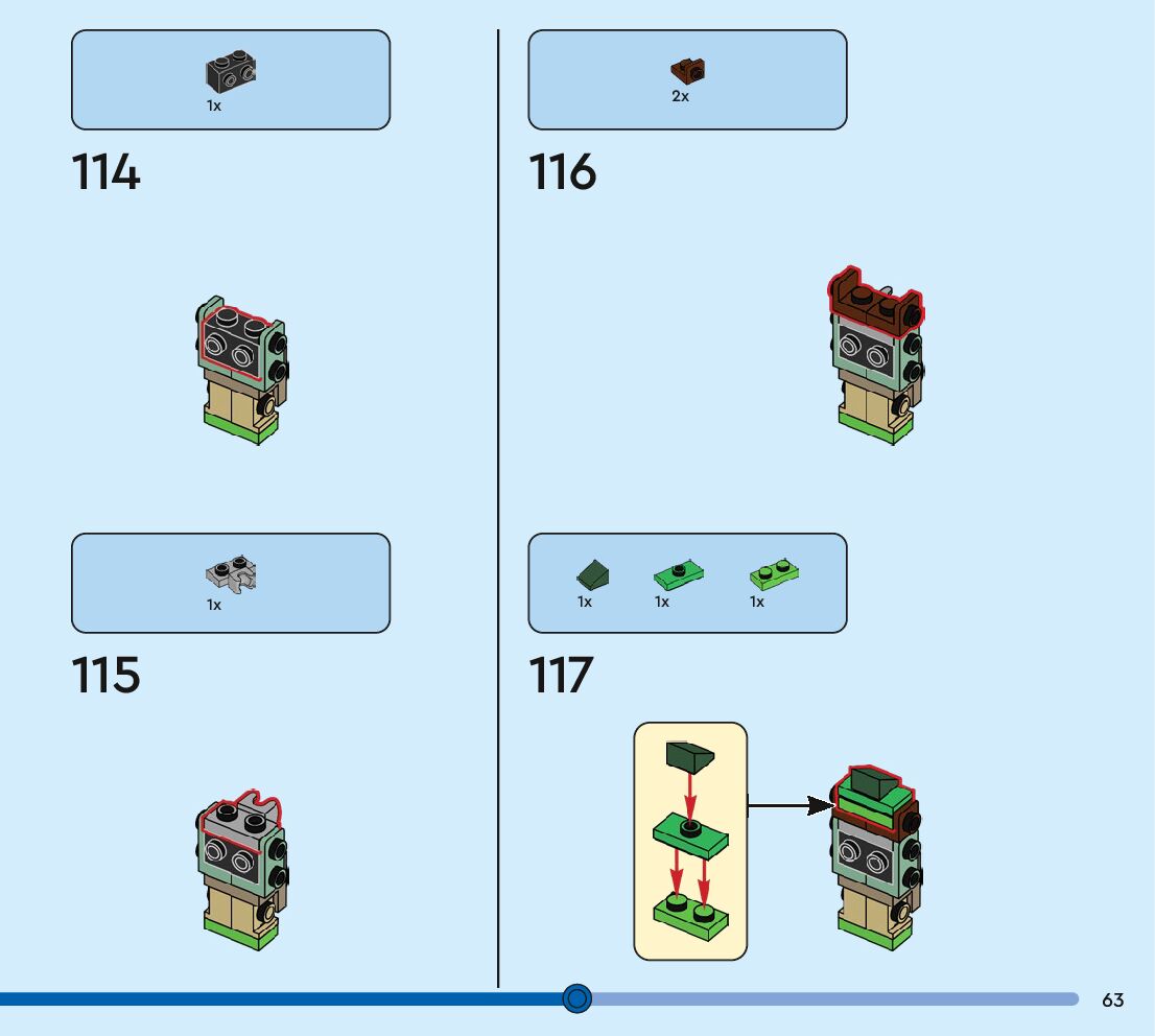 The assembly guide is prepared in a very understandable way for children and adult LEGO enthusiasts. A total of 312 picture galleries are shown, explaining the step-by-step construction stages for 3 different structures.