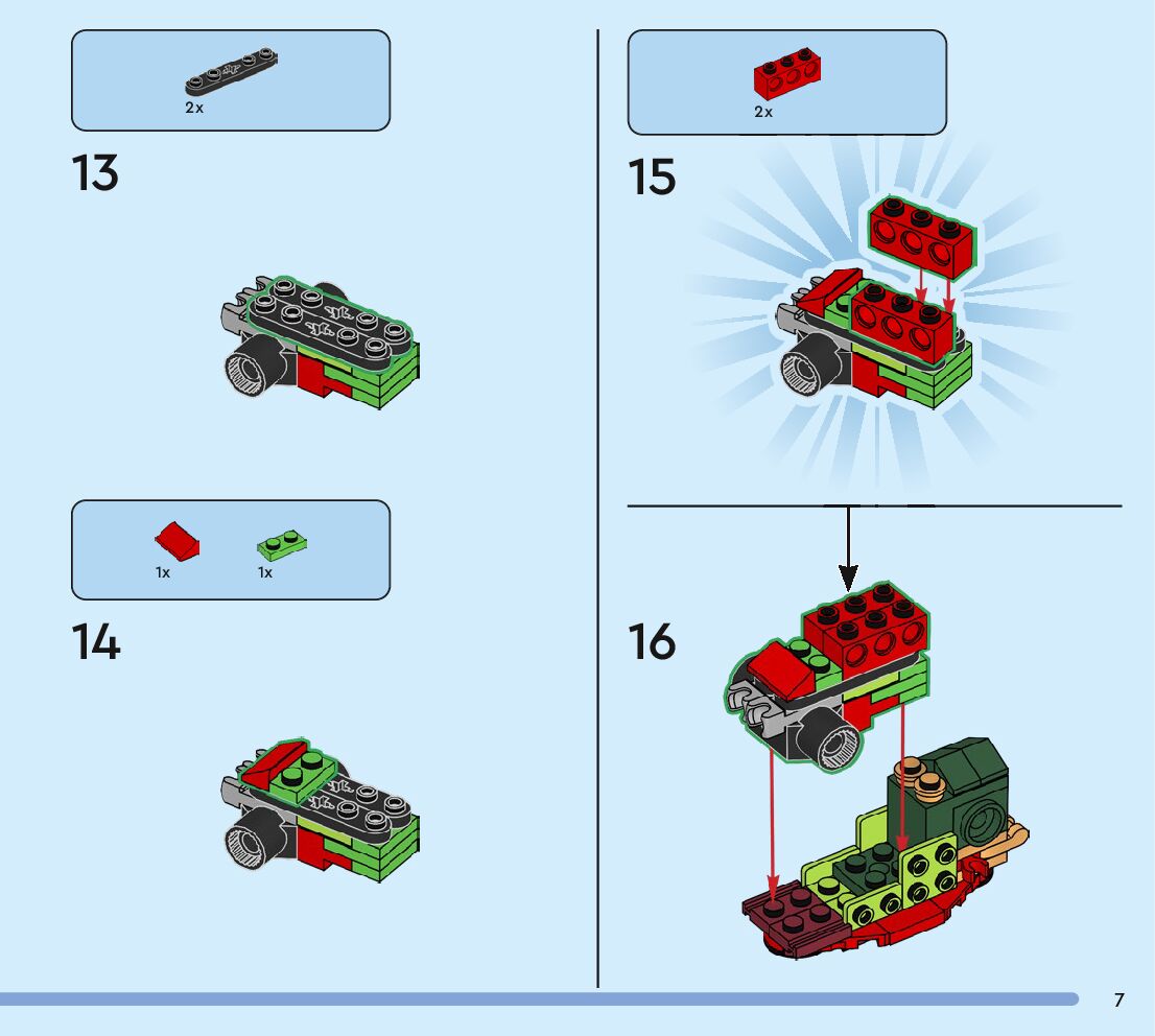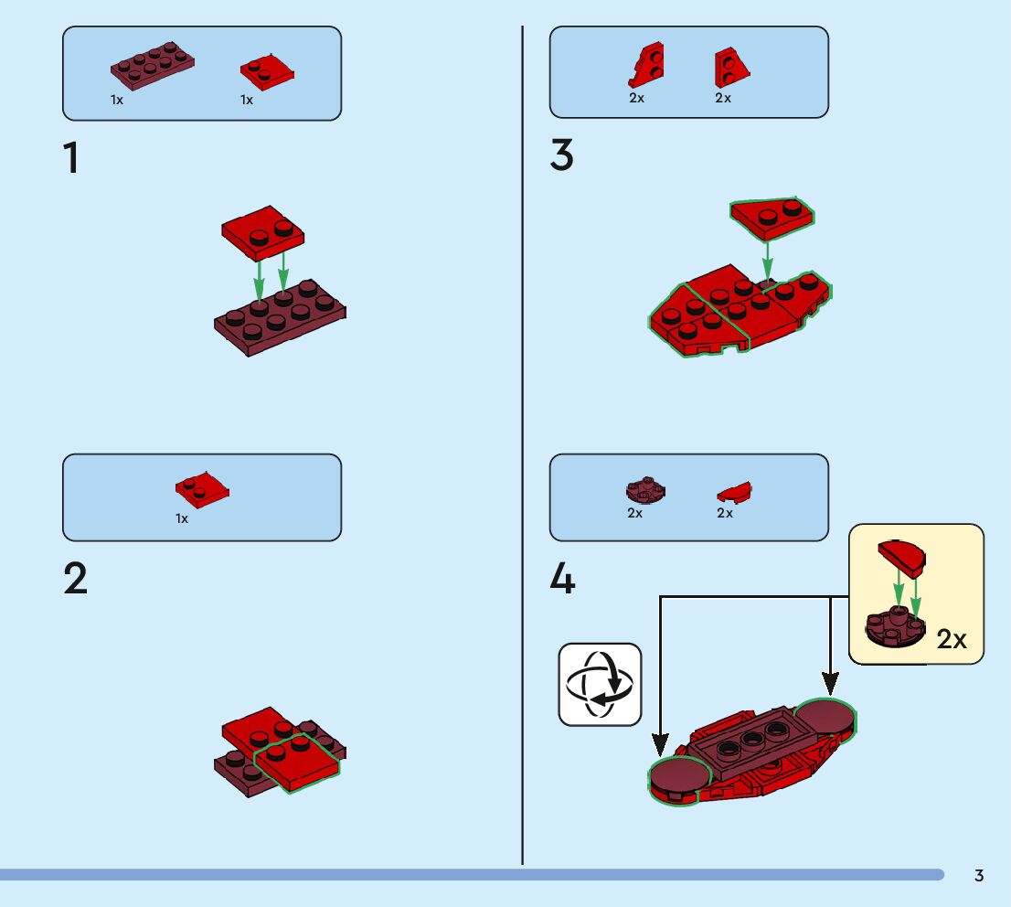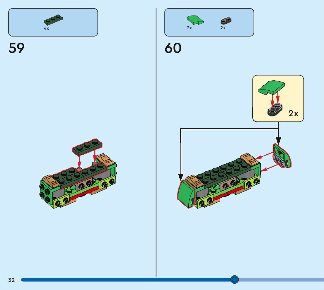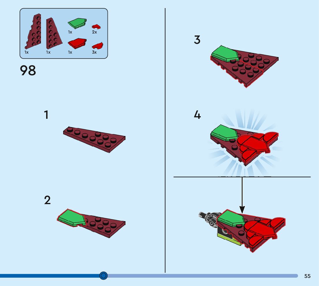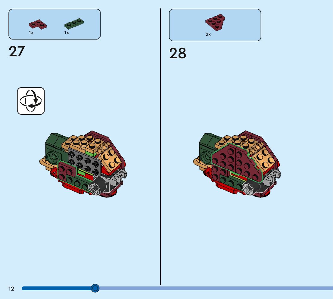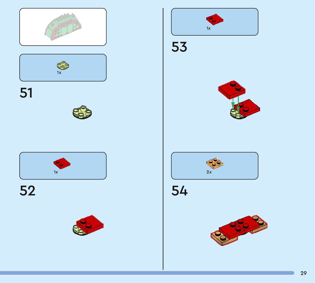 The assembly guide is prepared in a very understandable way for children and adult LEGO enthusiasts. A total of 312 picture galleries are shown, explaining the step-by-step construction stages for 3 different structures.