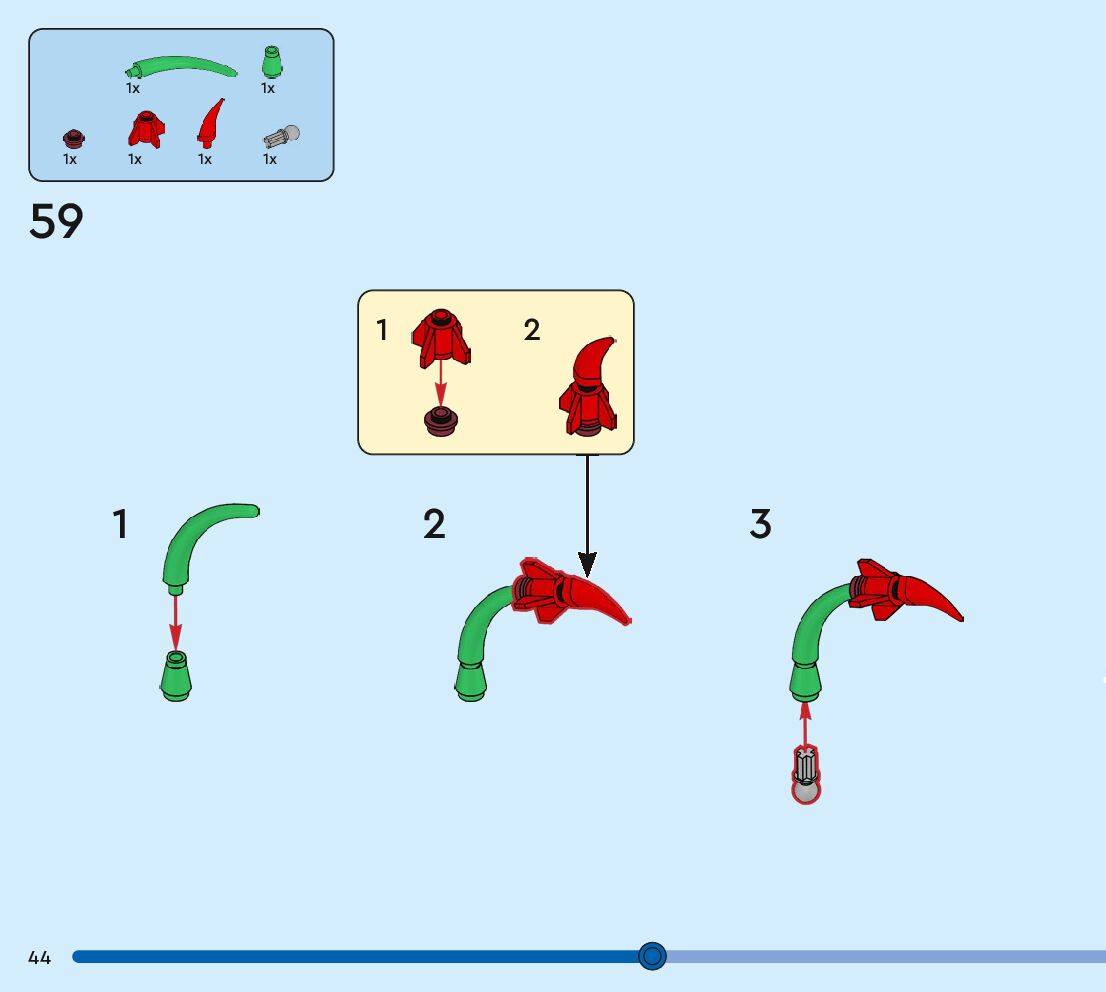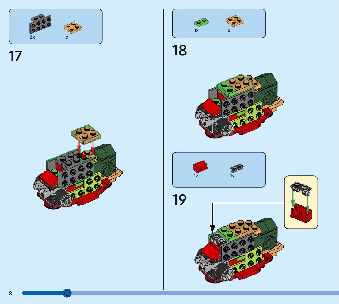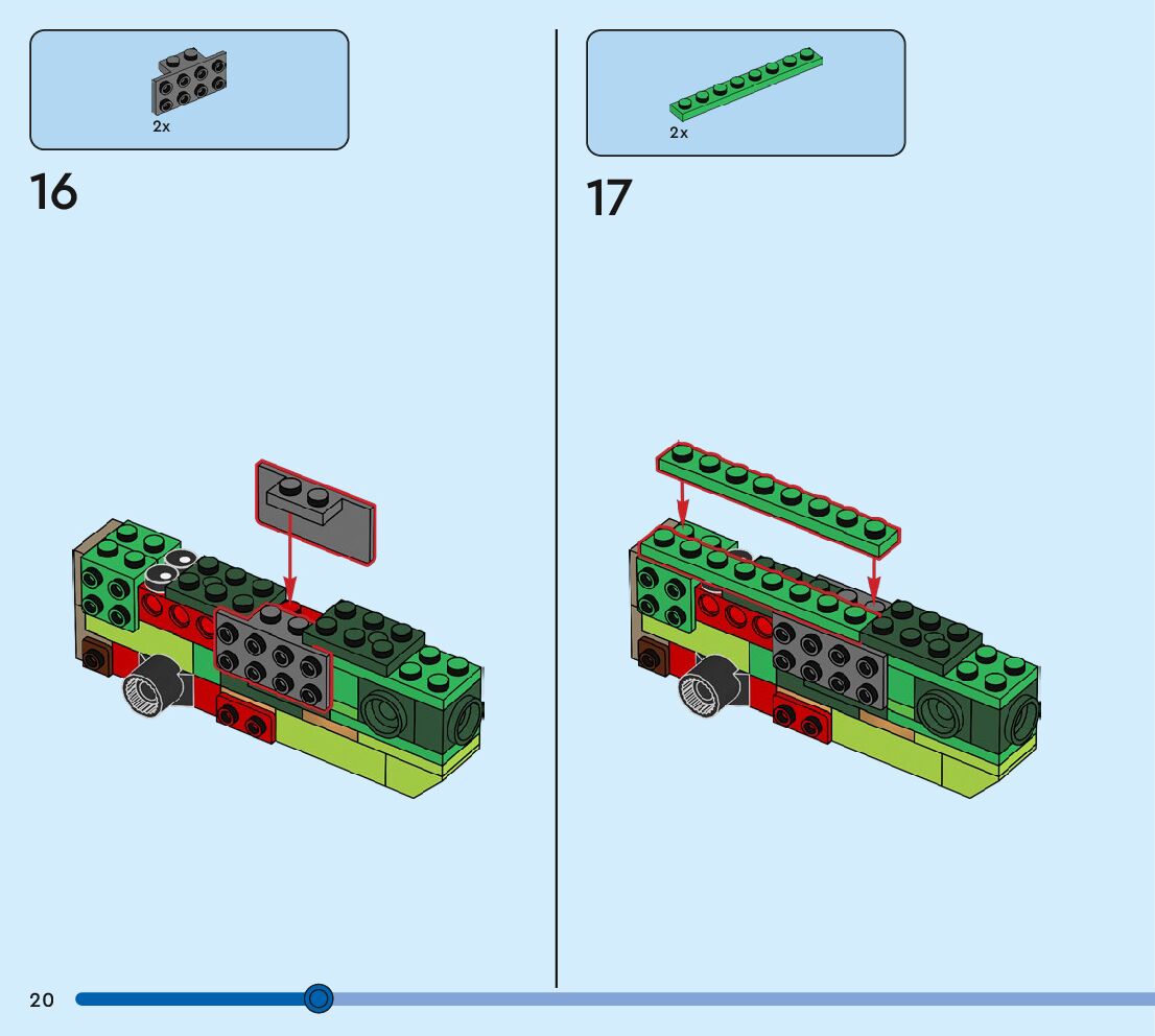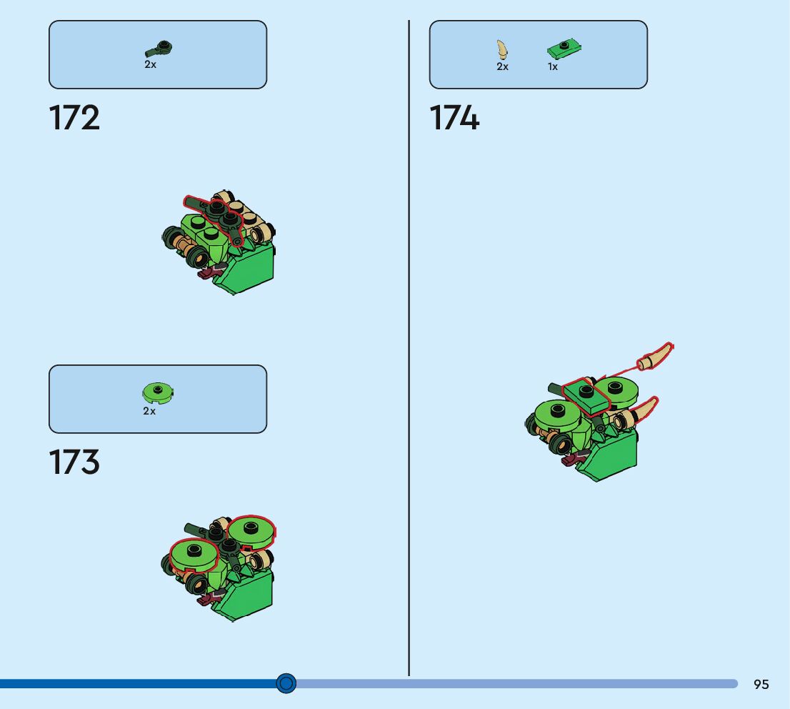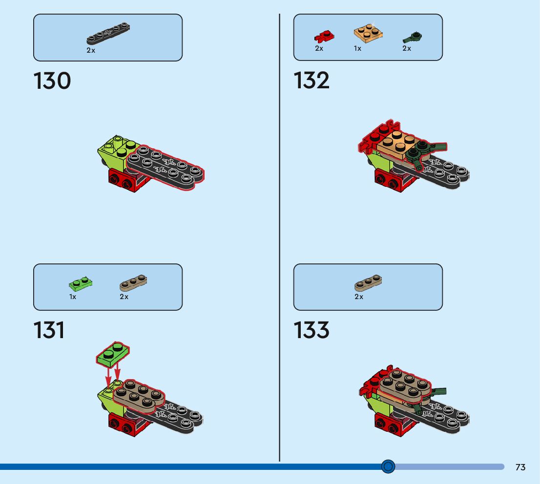The assembly guide is prepared in a very understandable way for children and adult LEGO enthusiasts. A total of 312 picture galleries are shown, explaining the step-by-step construction stages for 3 different structures.