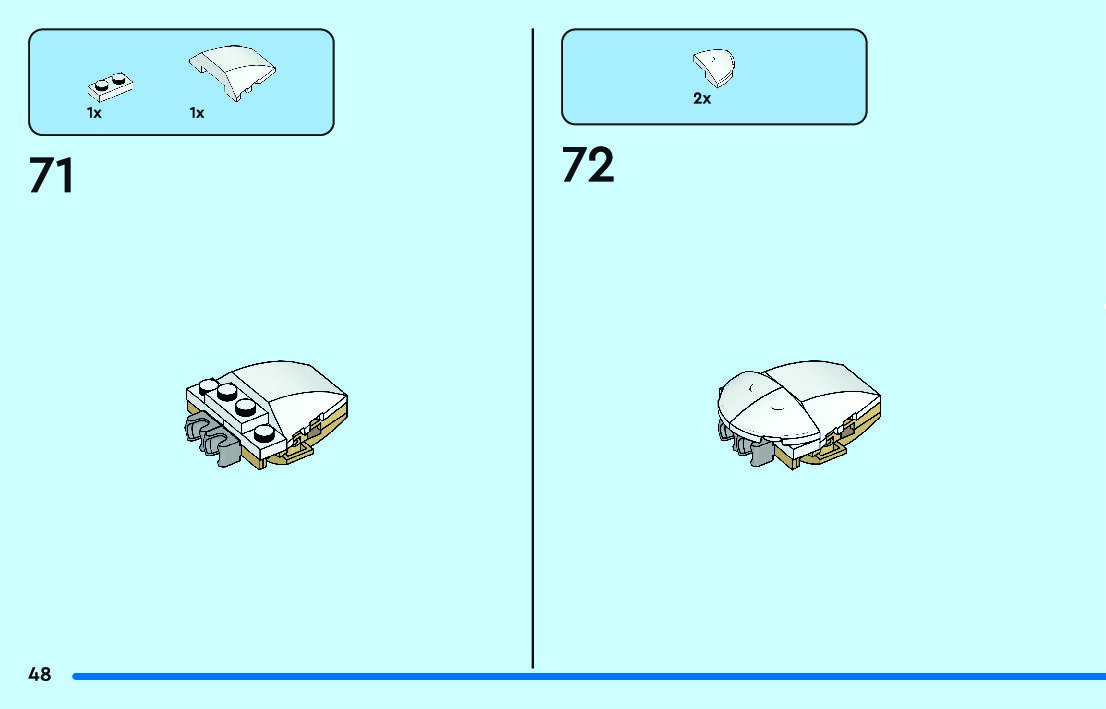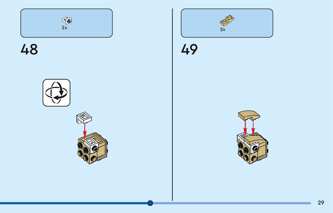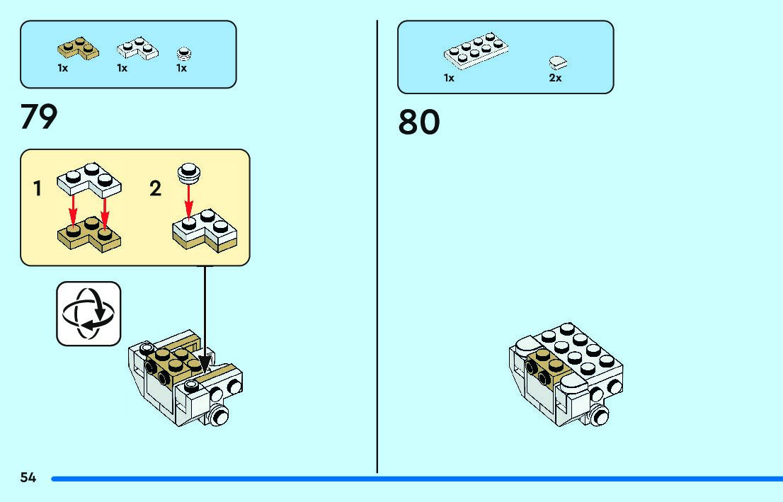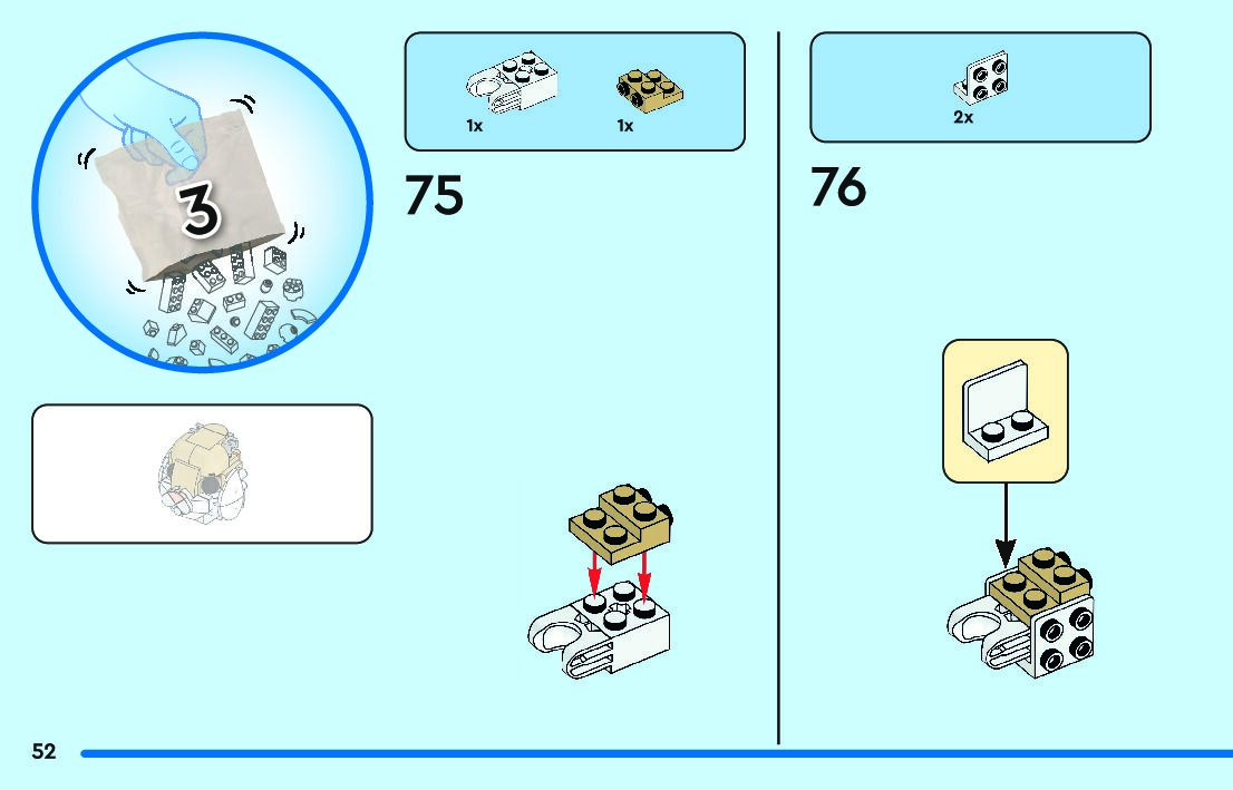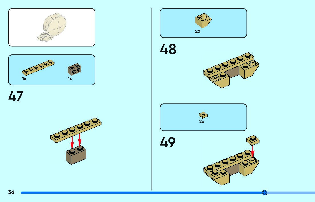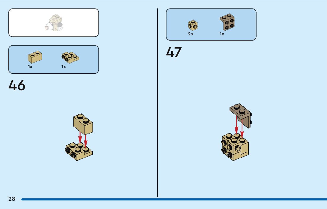 The assembly guide is prepared in a very understandable way for children and adult LEGO enthusiasts. A total of 152 picture galleries are shown, explaining the step-by-step construction stages for 3 different structures.