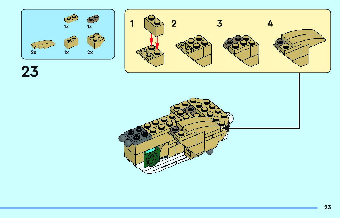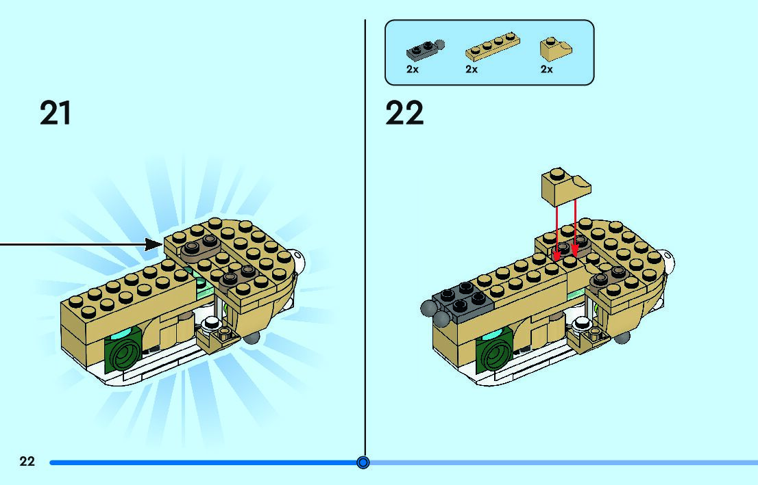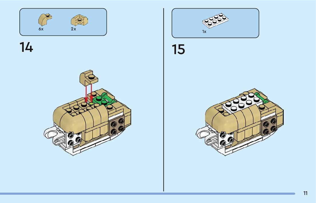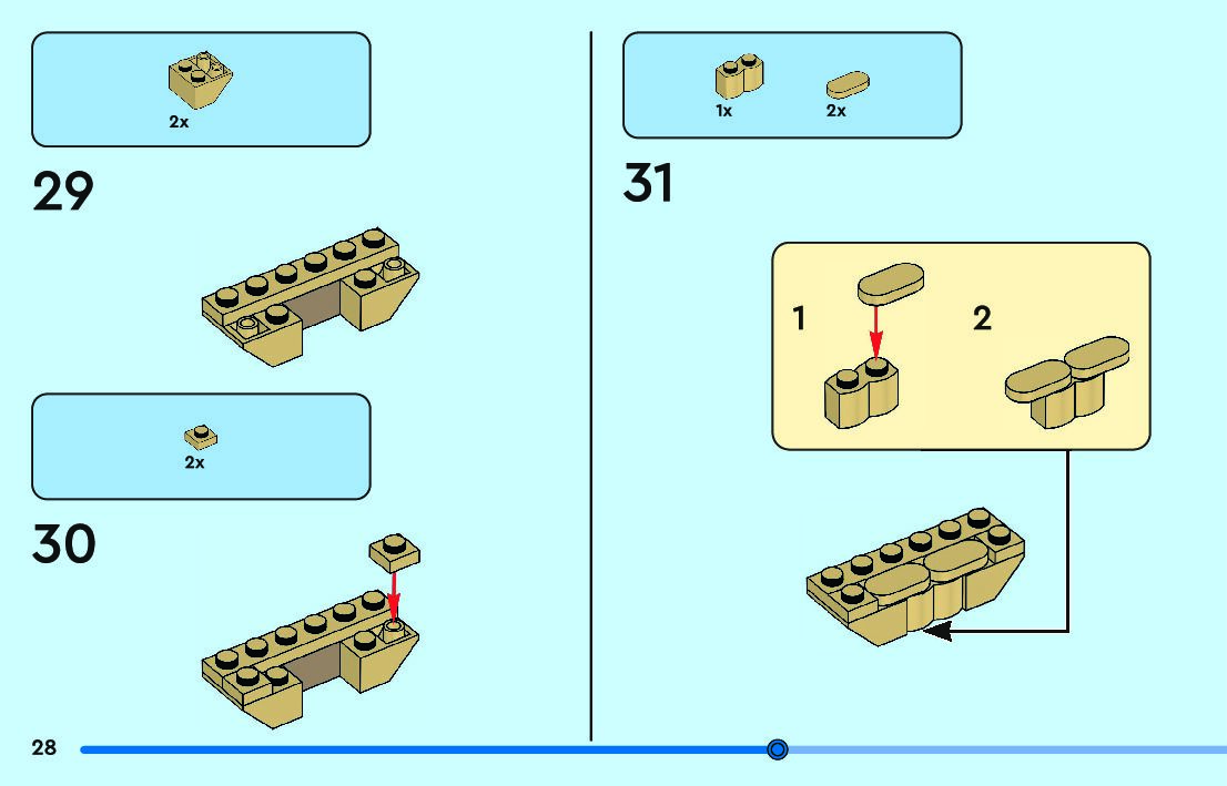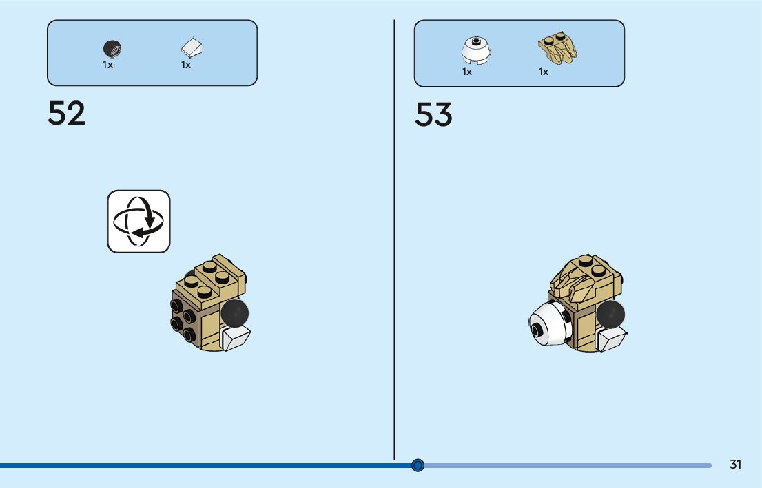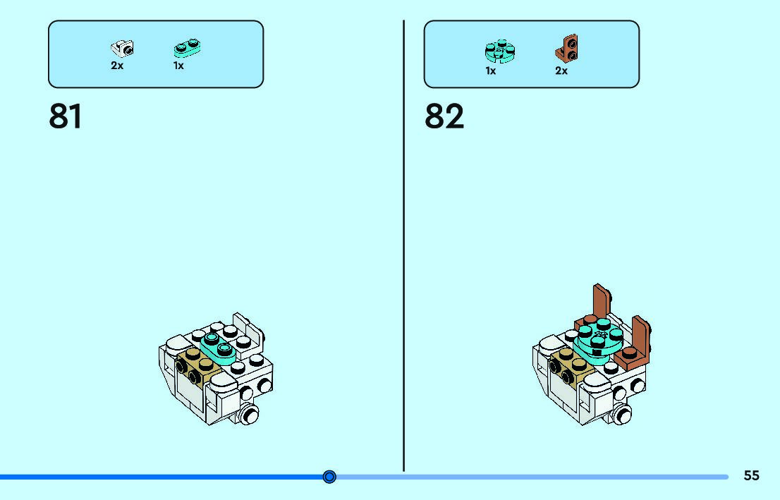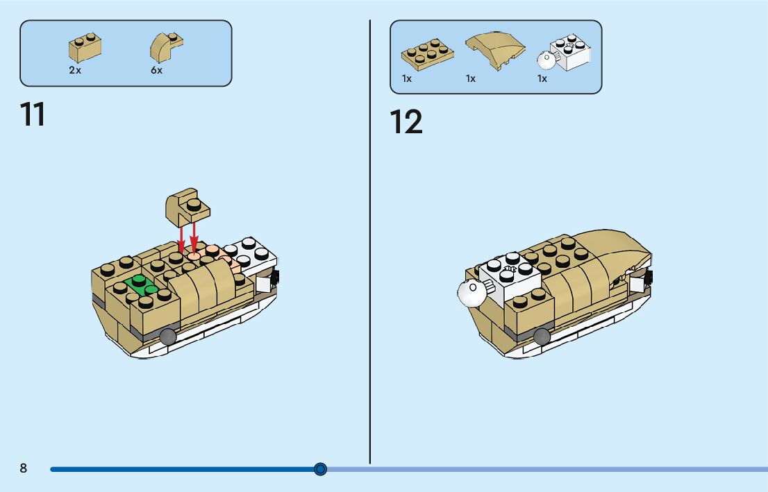 The assembly guide is prepared in a very understandable way for children and adult LEGO enthusiasts. A total of 152 picture galleries are shown, explaining the step-by-step construction stages for 3 different structures.