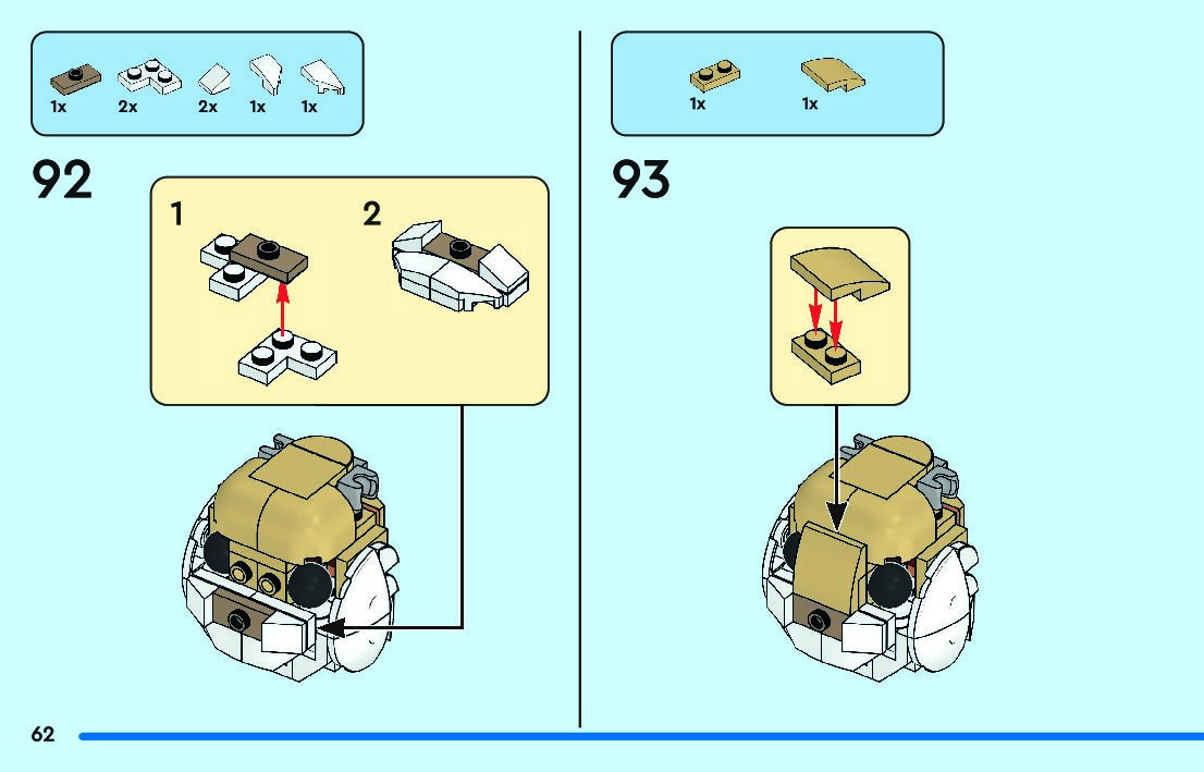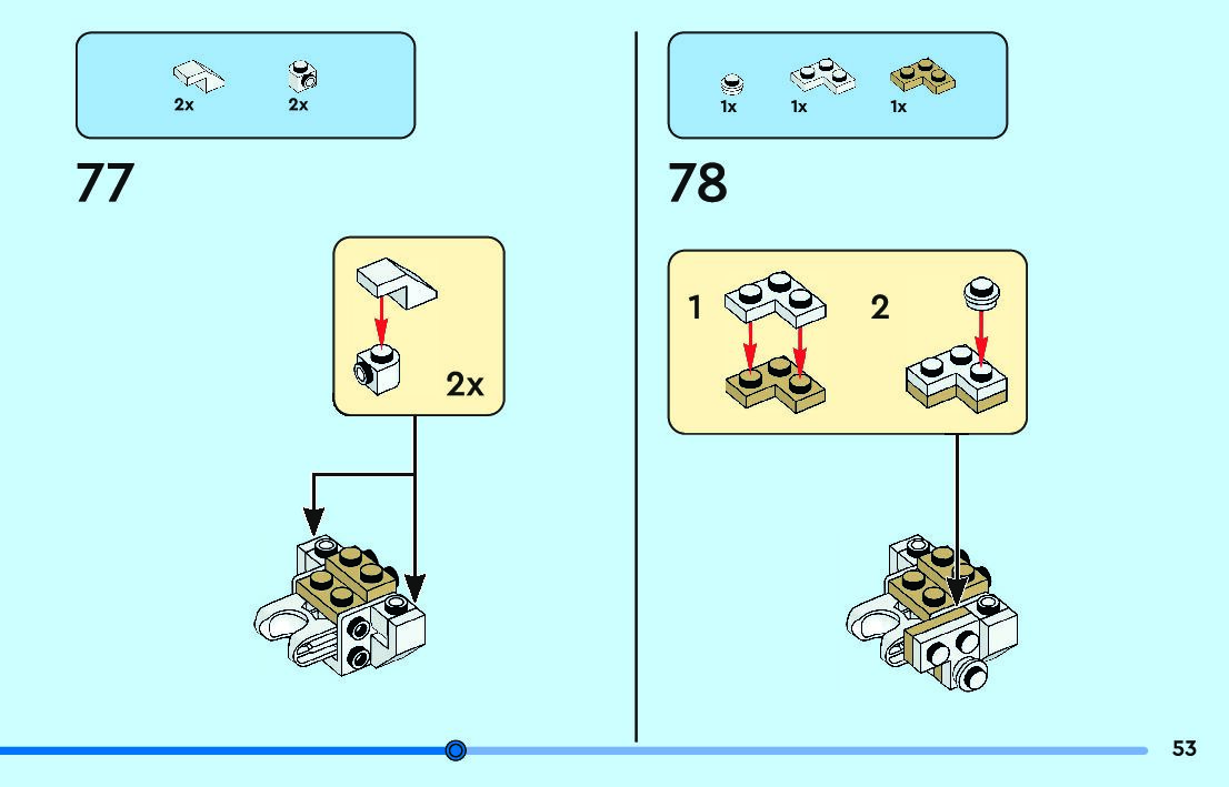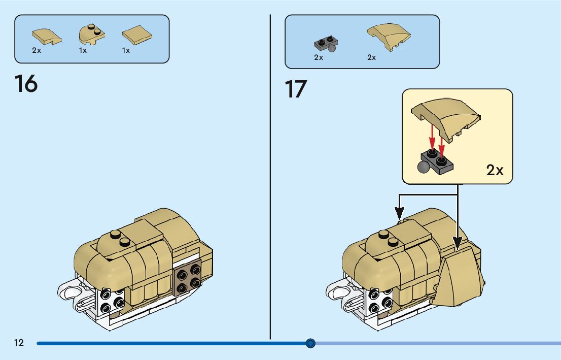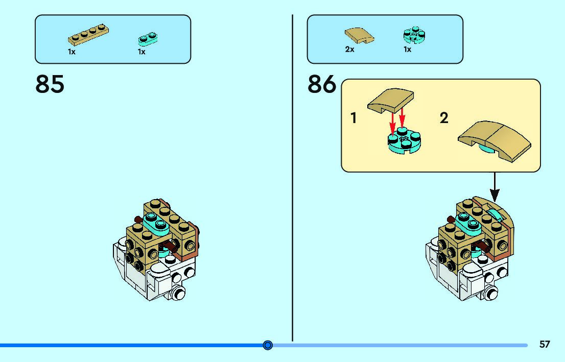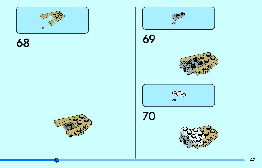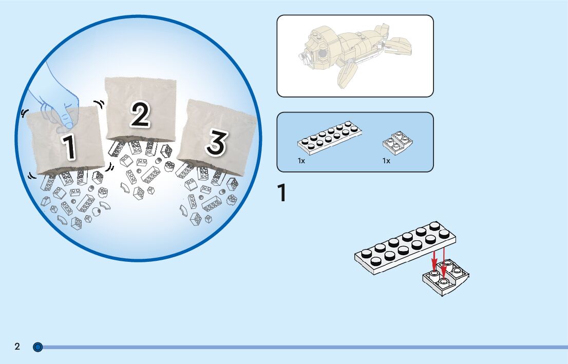 The assembly guide is prepared in a very understandable way for children and adult LEGO enthusiasts. A total of 152 picture galleries are shown, explaining the step-by-step construction stages for 3 different structures.