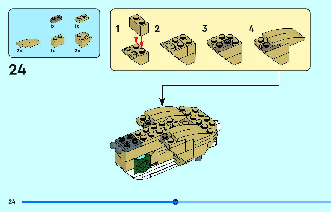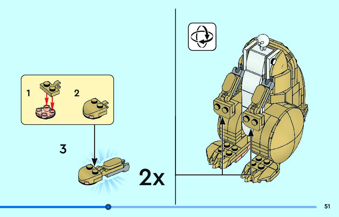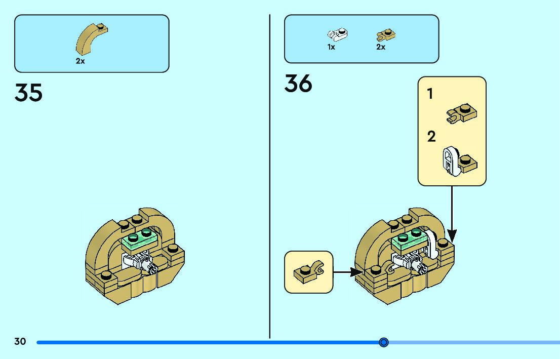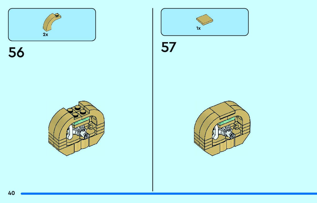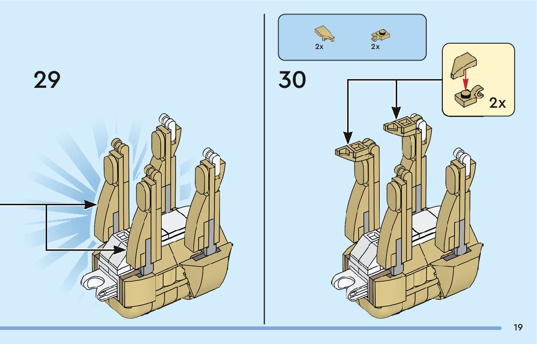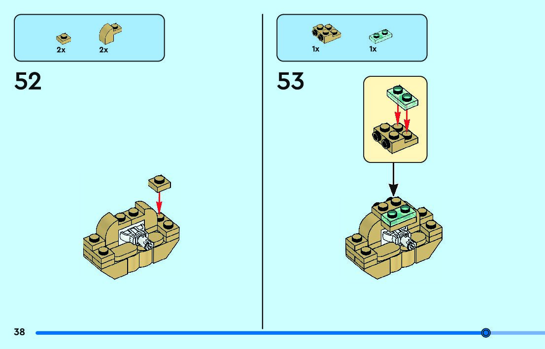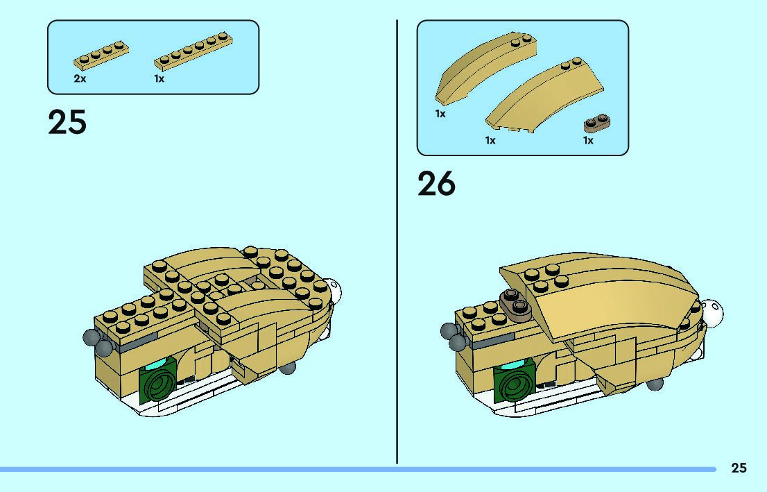 The assembly guide is prepared in a very understandable way for children and adult LEGO enthusiasts. A total of 152 picture galleries are shown, explaining the step-by-step construction stages for 3 different structures.