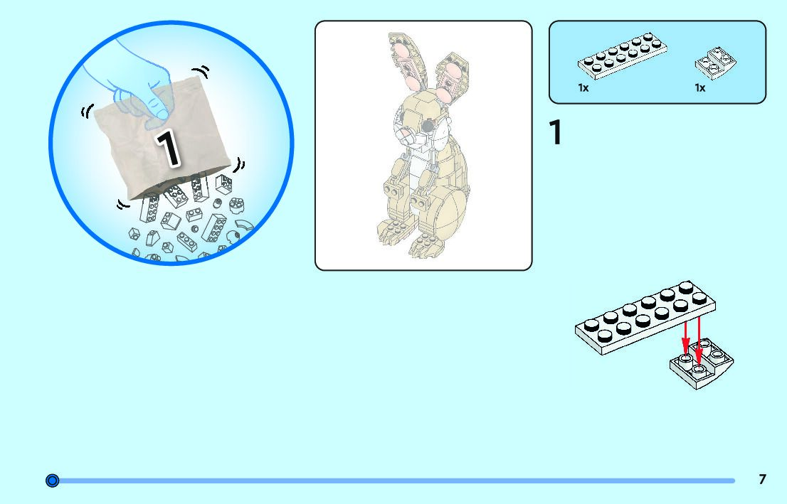 This page shares information about LEGO Cute Bunny manual, LEGO 31162 PDF instructions, LEGO Cute Bunny building guide online, How to build Cute Bunny LEGO.