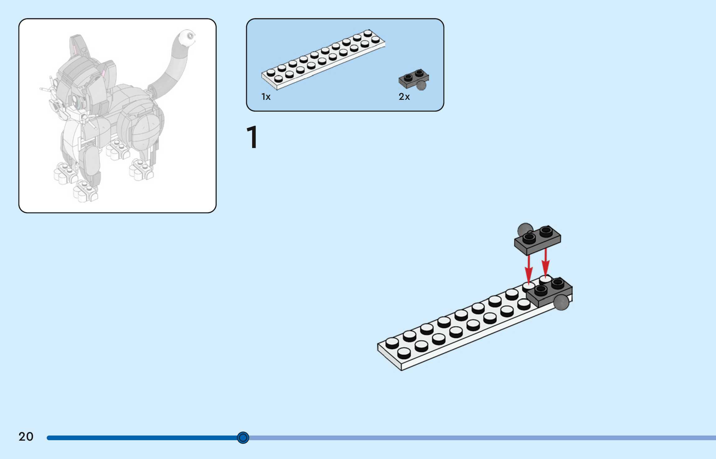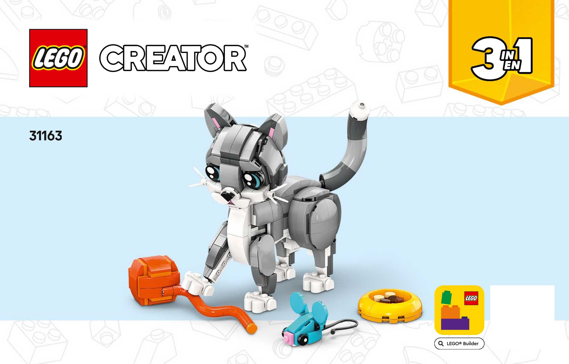 On this page you can find the original construction manual for the LEGO 31163 set. With the assembly manual you can easily learn how to build the Playful Cat step by step. The set was released in 2025.