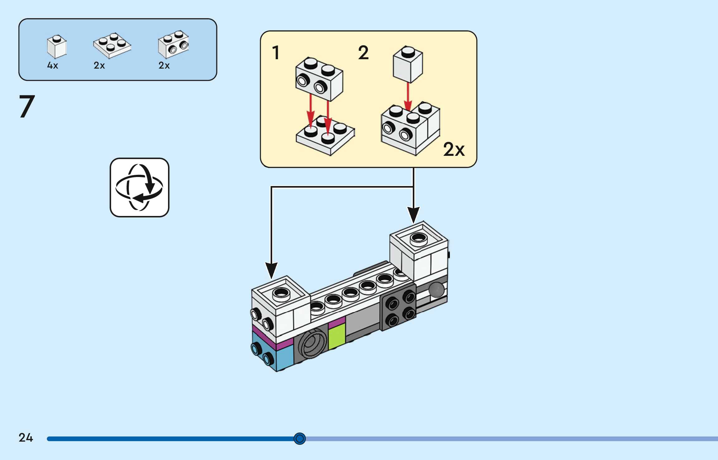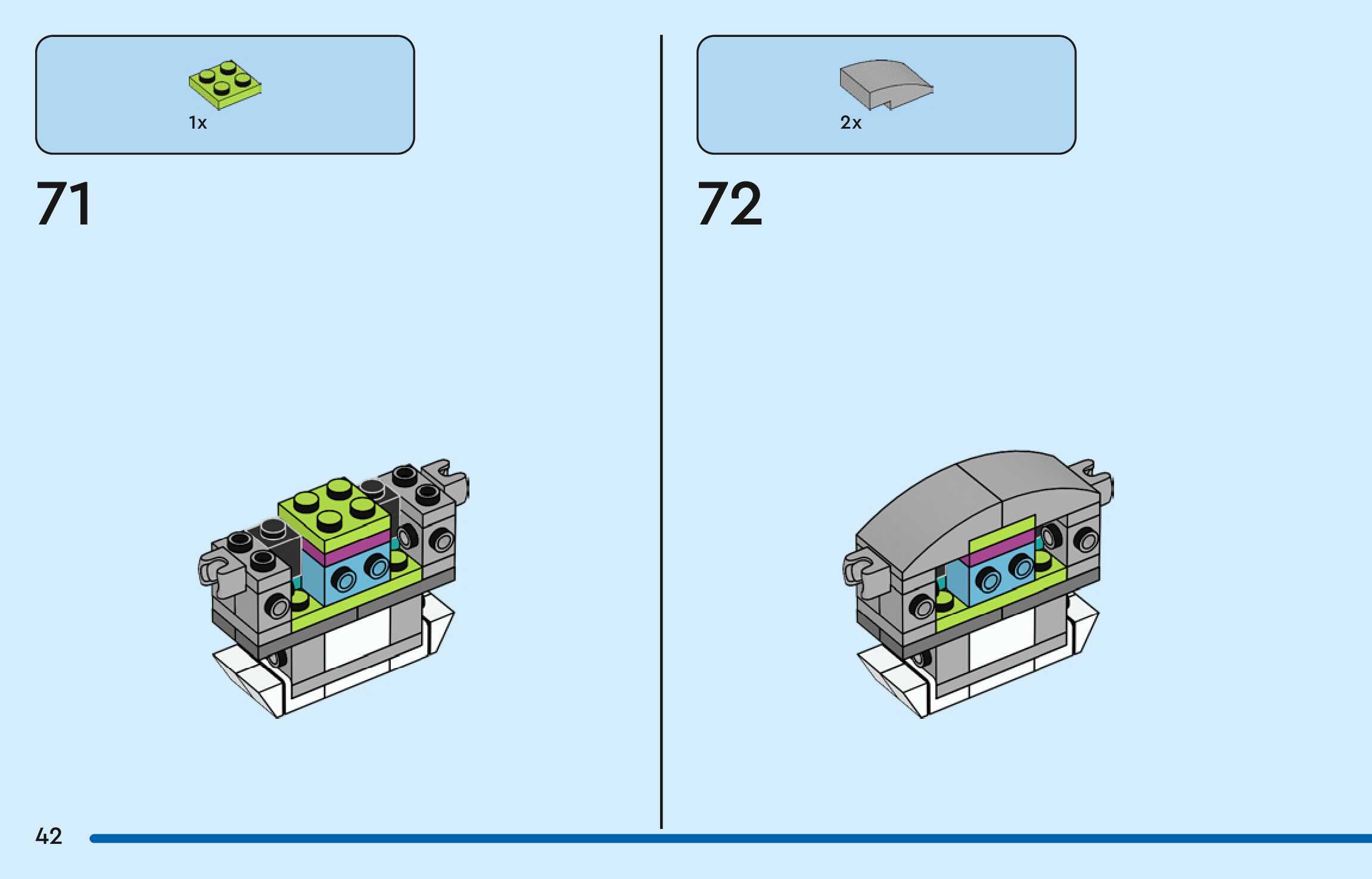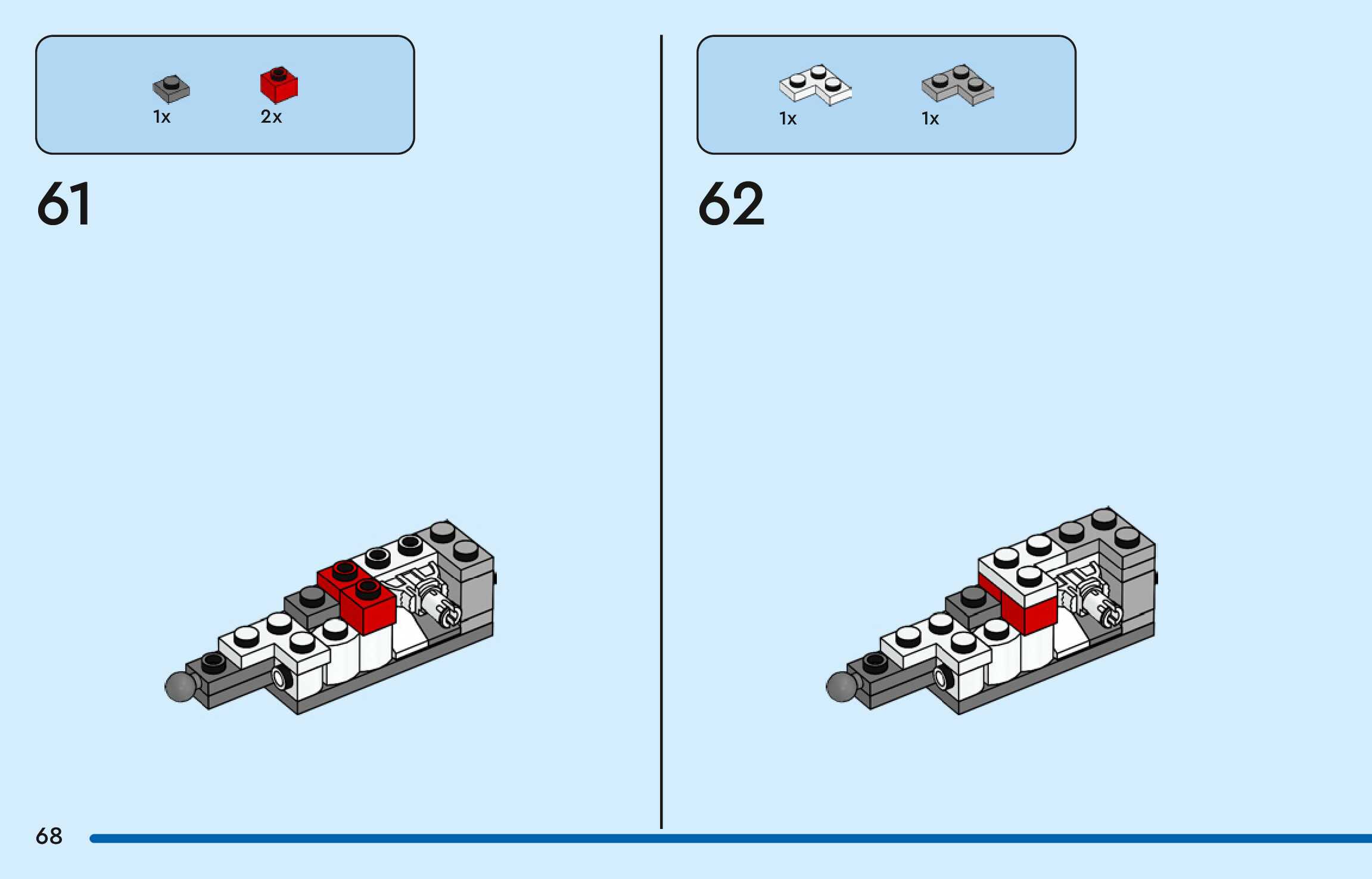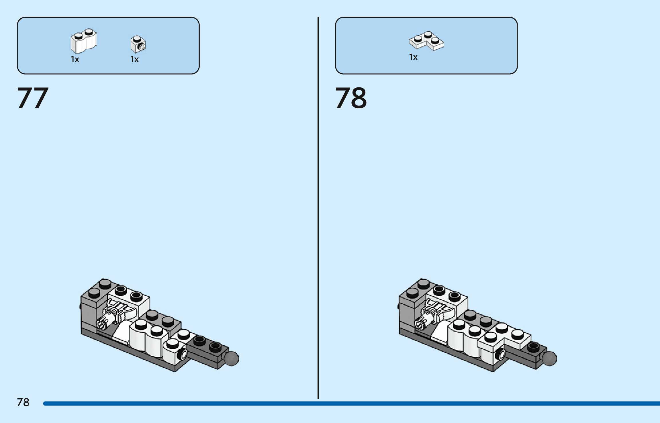The assembly guide is prepared in a very understandable way for children and adult LEGO enthusiasts. A total of 204 picture galleries are shown, explaining the step-by-step construction stages for 3 different structures.