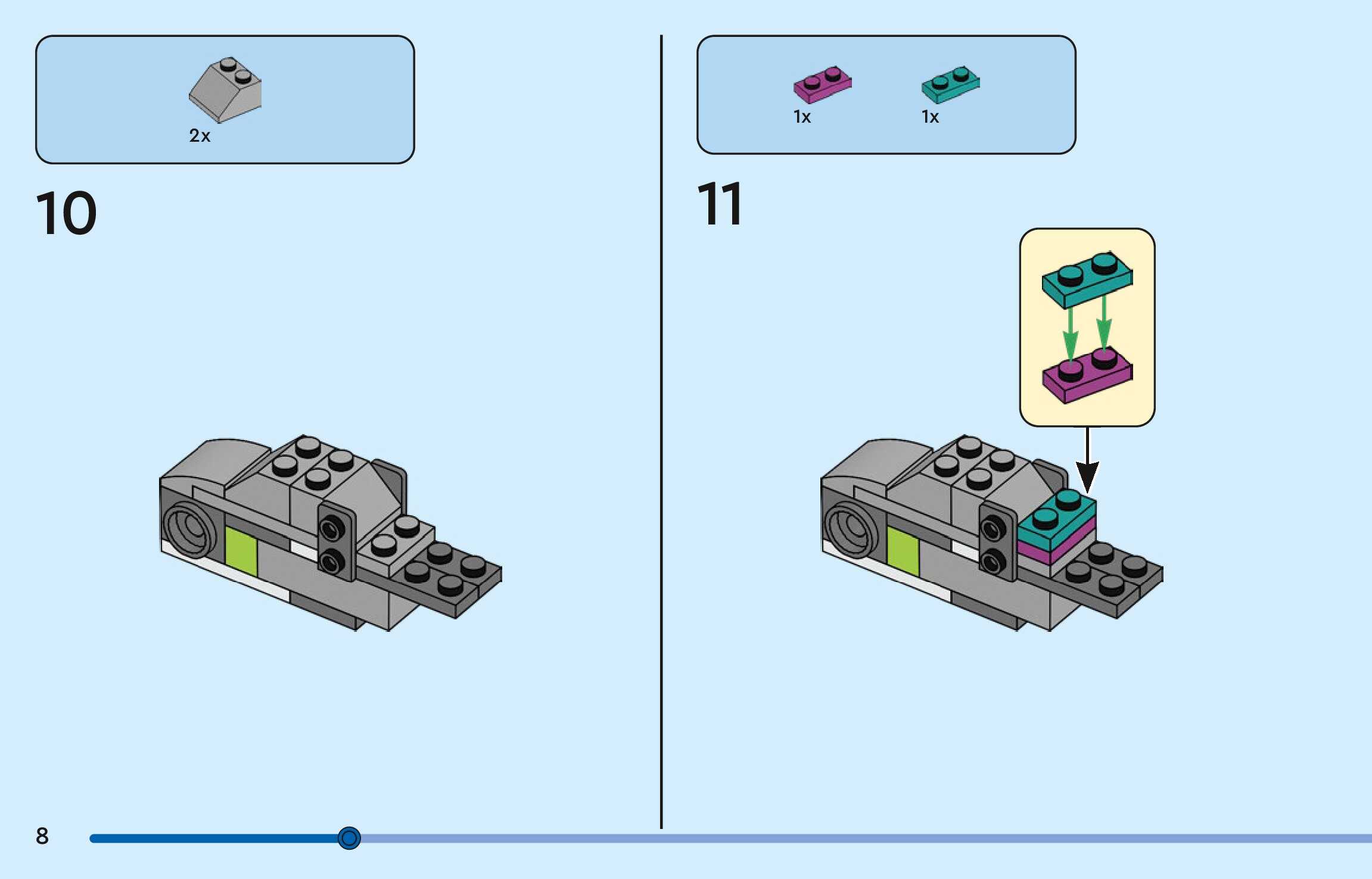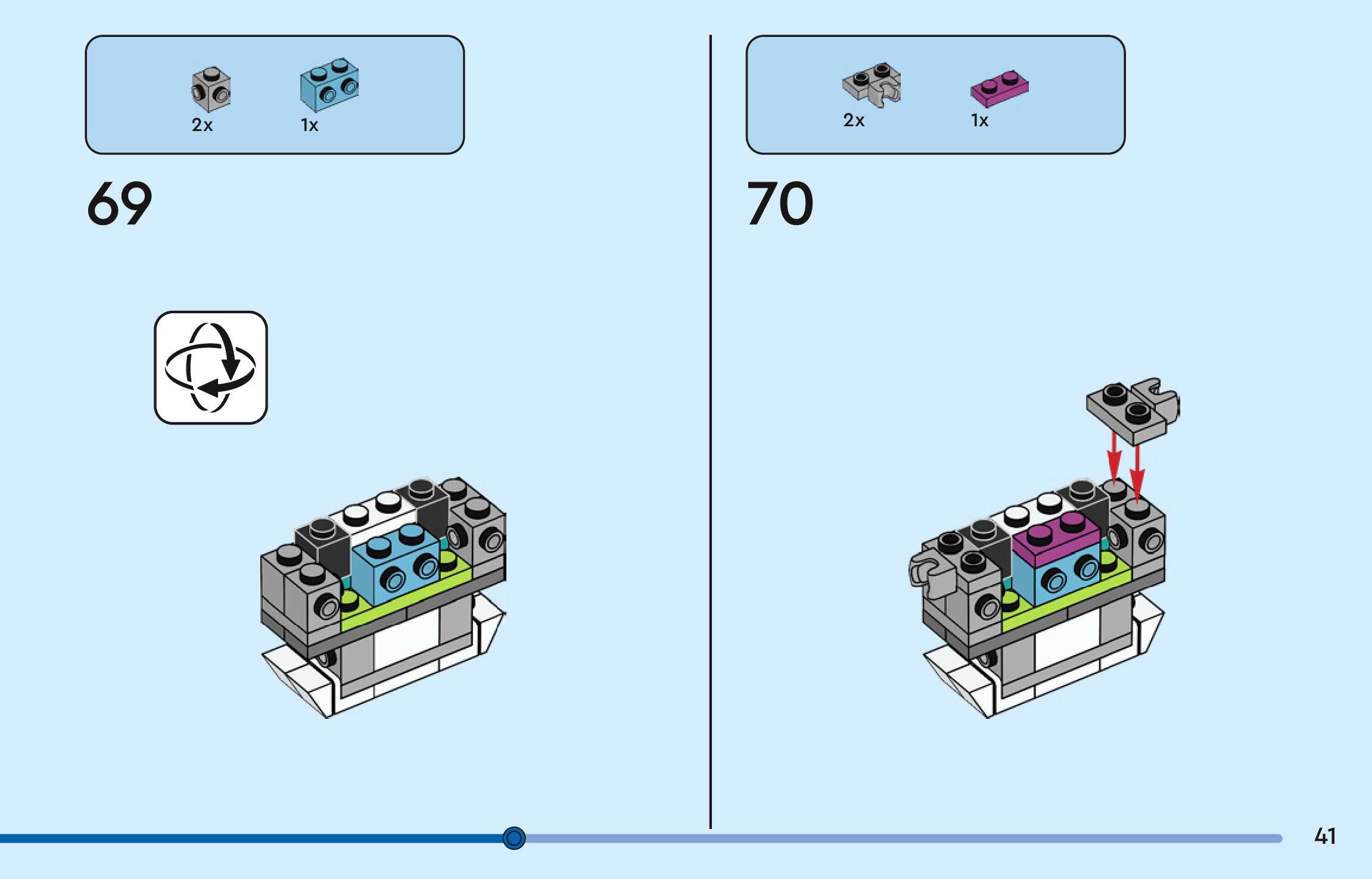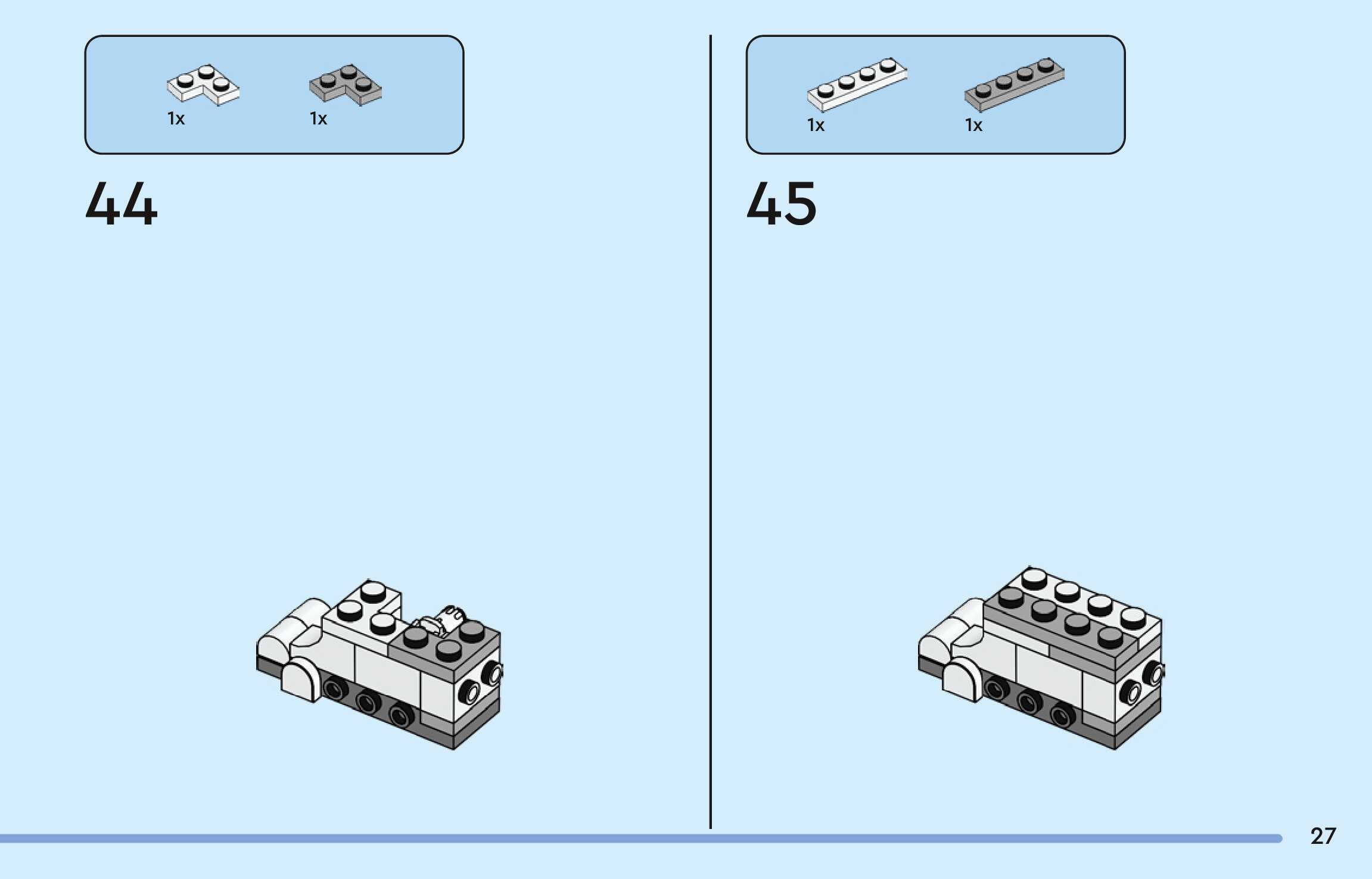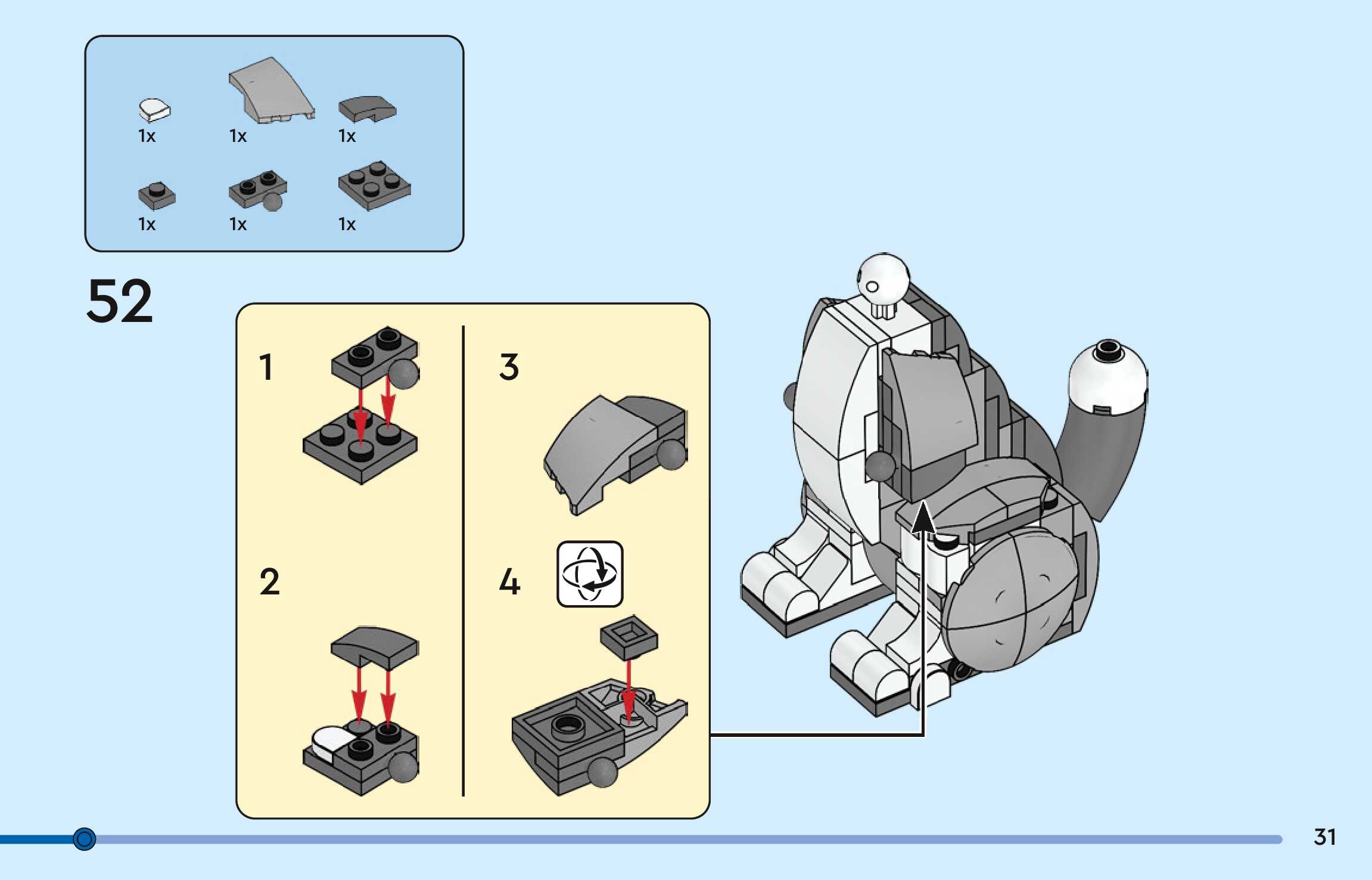 The assembly guide is prepared in a very understandable way for children and adult LEGO enthusiasts. A total of 204 picture galleries are shown, explaining the step-by-step construction stages for 3 different structures.