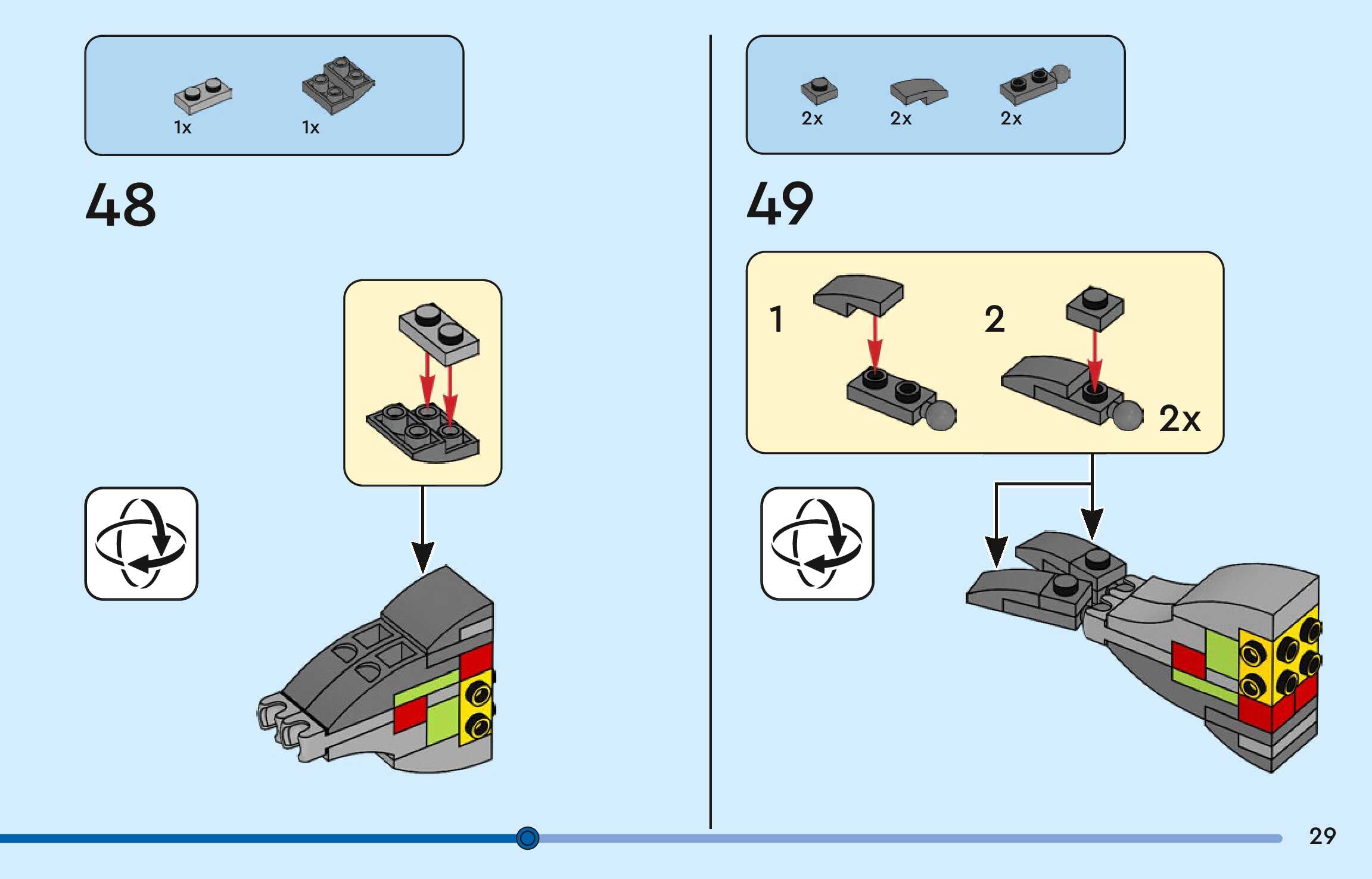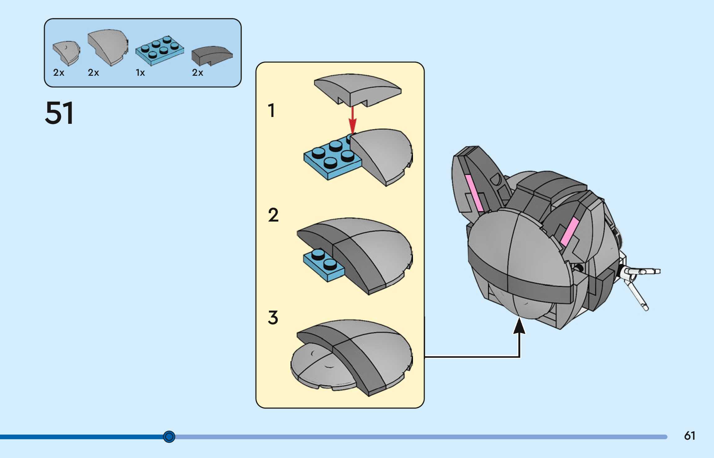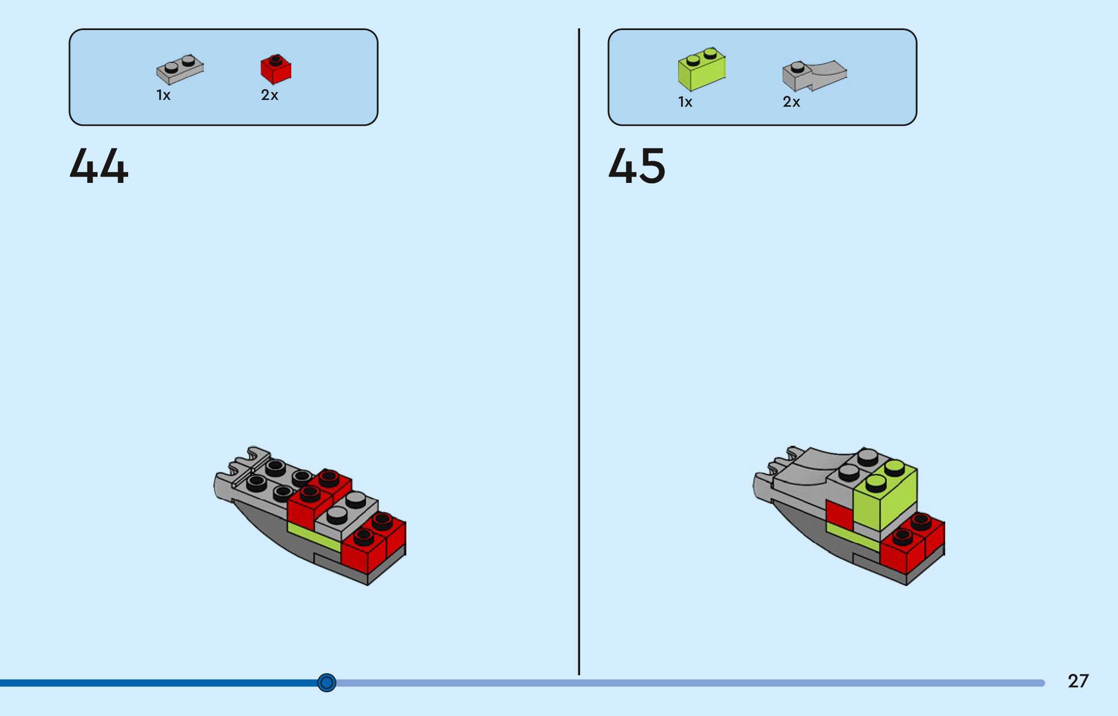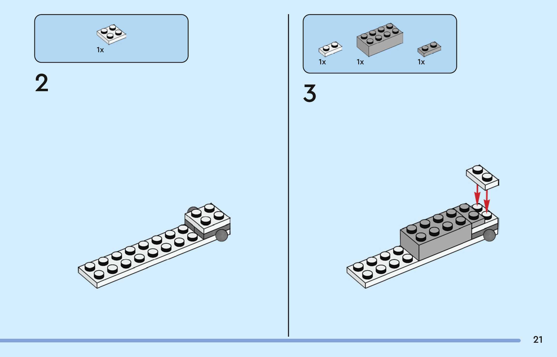 The assembly guide is prepared in a very understandable way for children and adult LEGO enthusiasts. A total of 204 picture galleries are shown, explaining the step-by-step construction stages for 3 different structures.