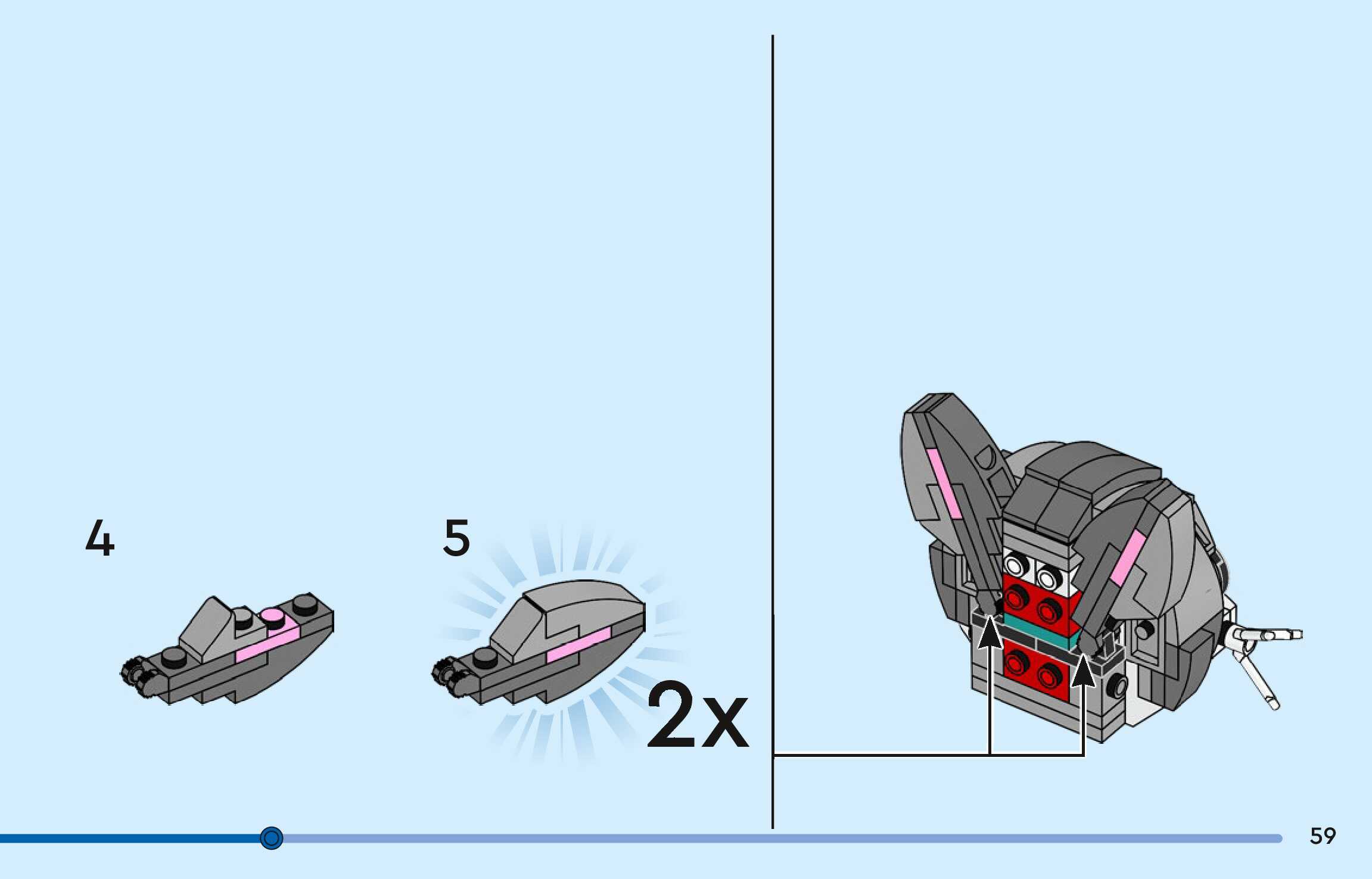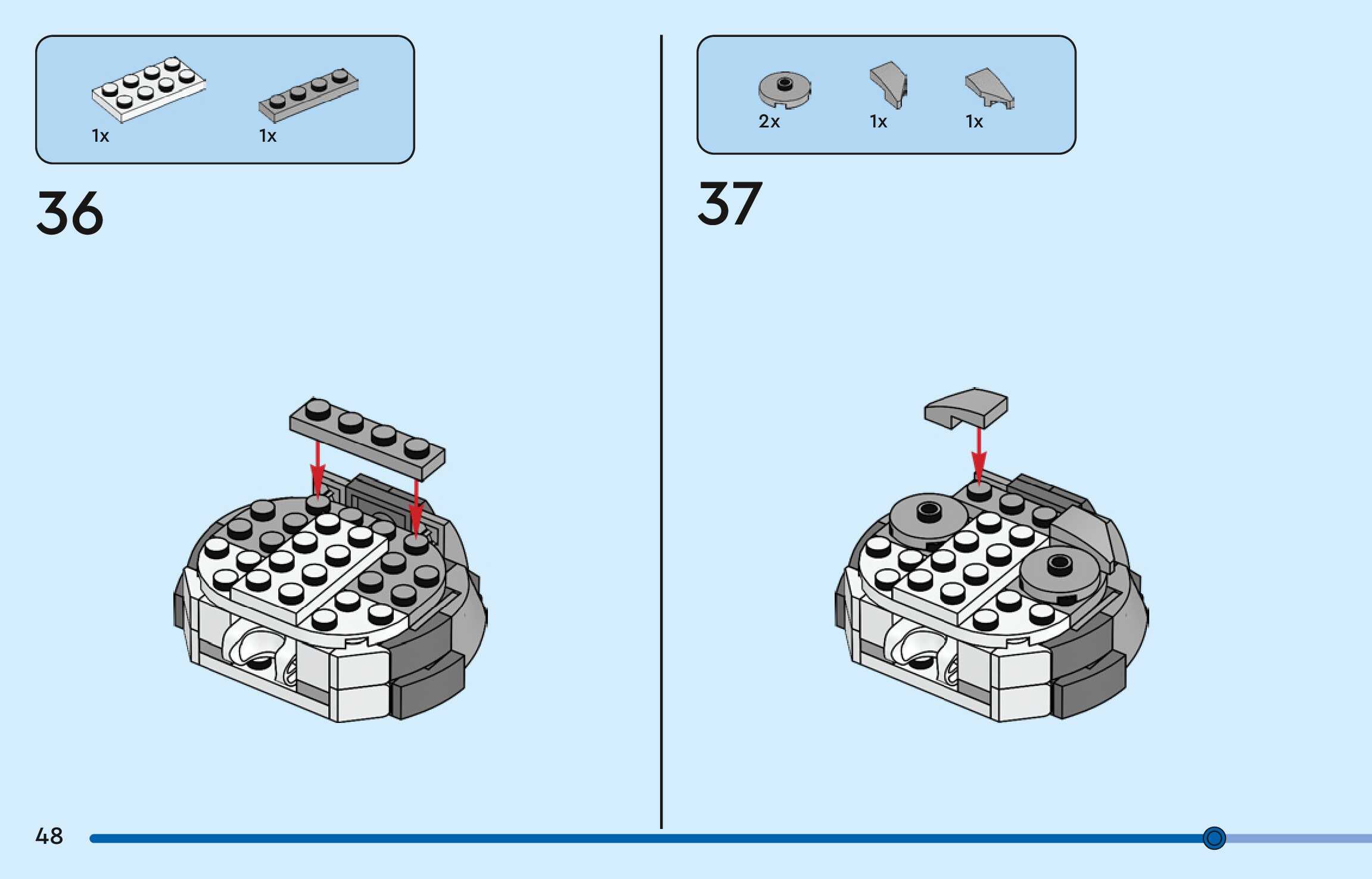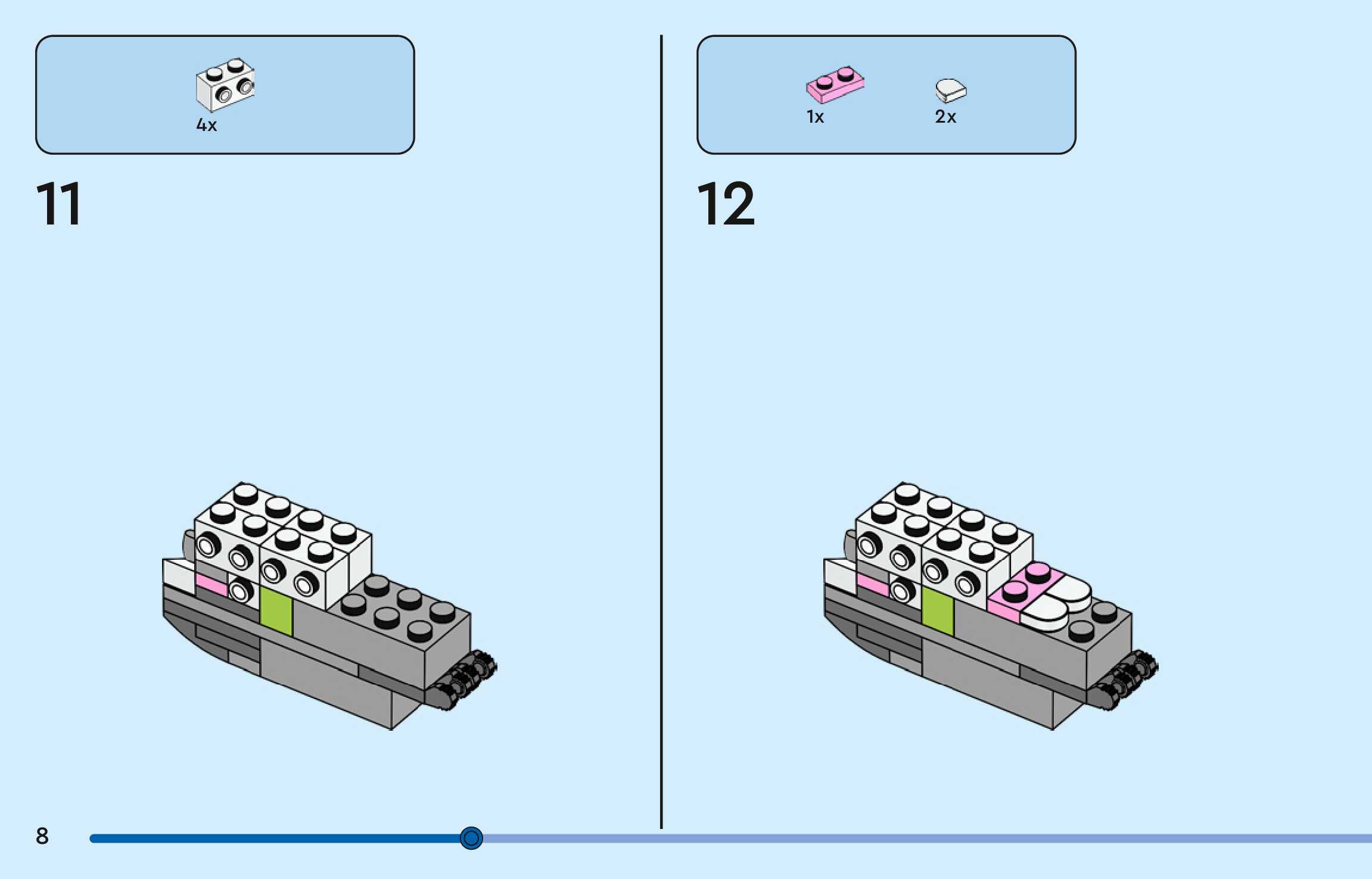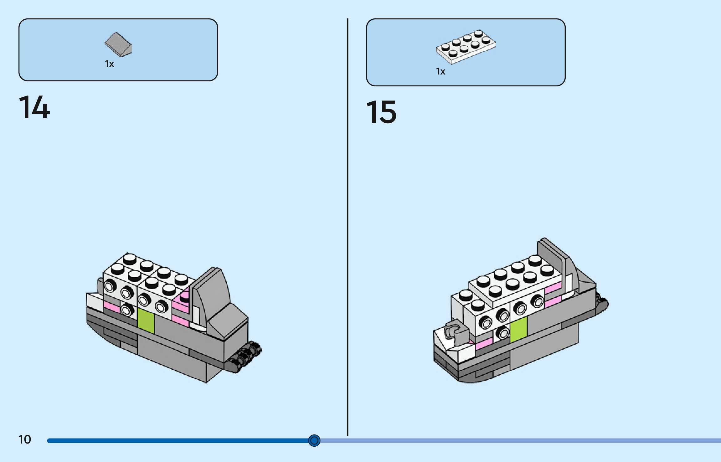 The assembly guide is prepared in a very understandable way for children and adult LEGO enthusiasts. A total of 204 picture galleries are shown, explaining the step-by-step construction stages for 3 different structures.