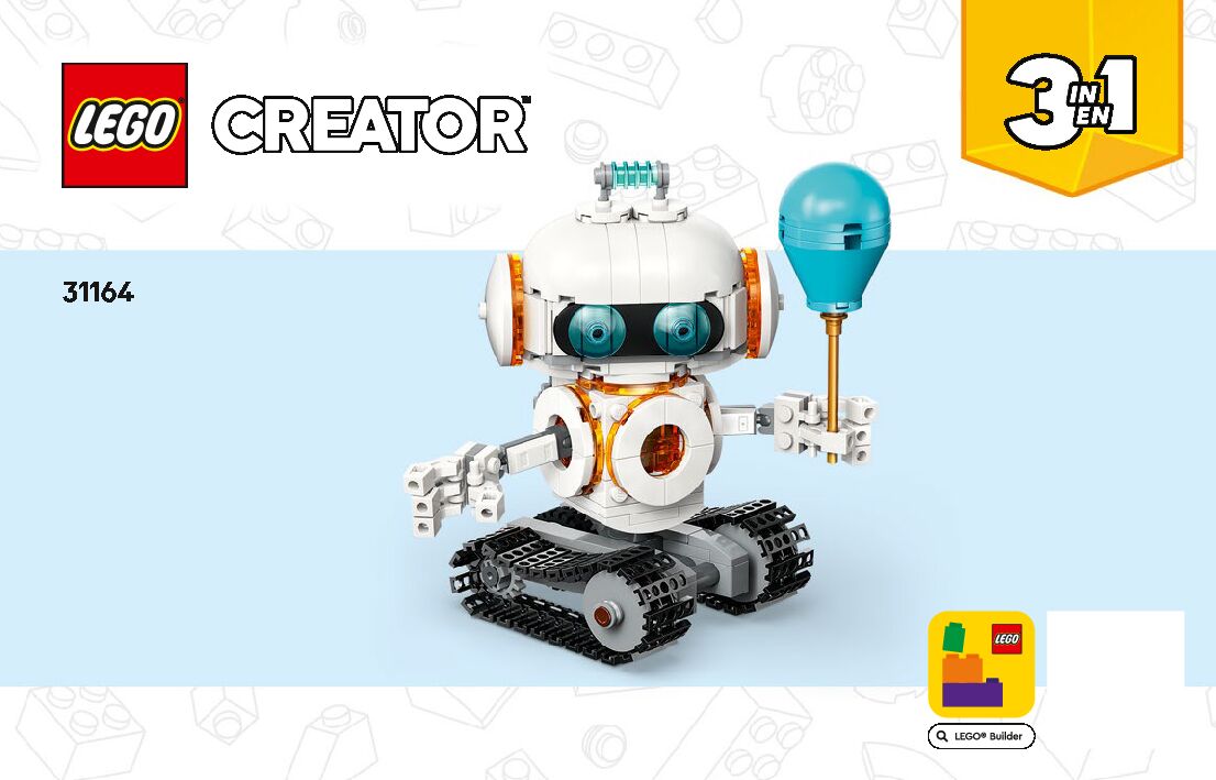 This page shares information about LEGO Space Robot manual, LEGO 31164 PDF instructions, LEGO Space Robot building guide online, How to build Space Robot LEGO.
