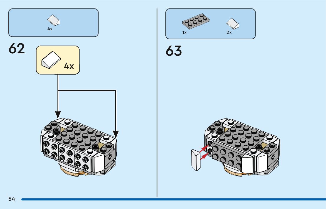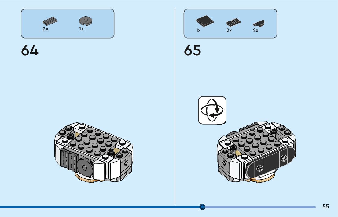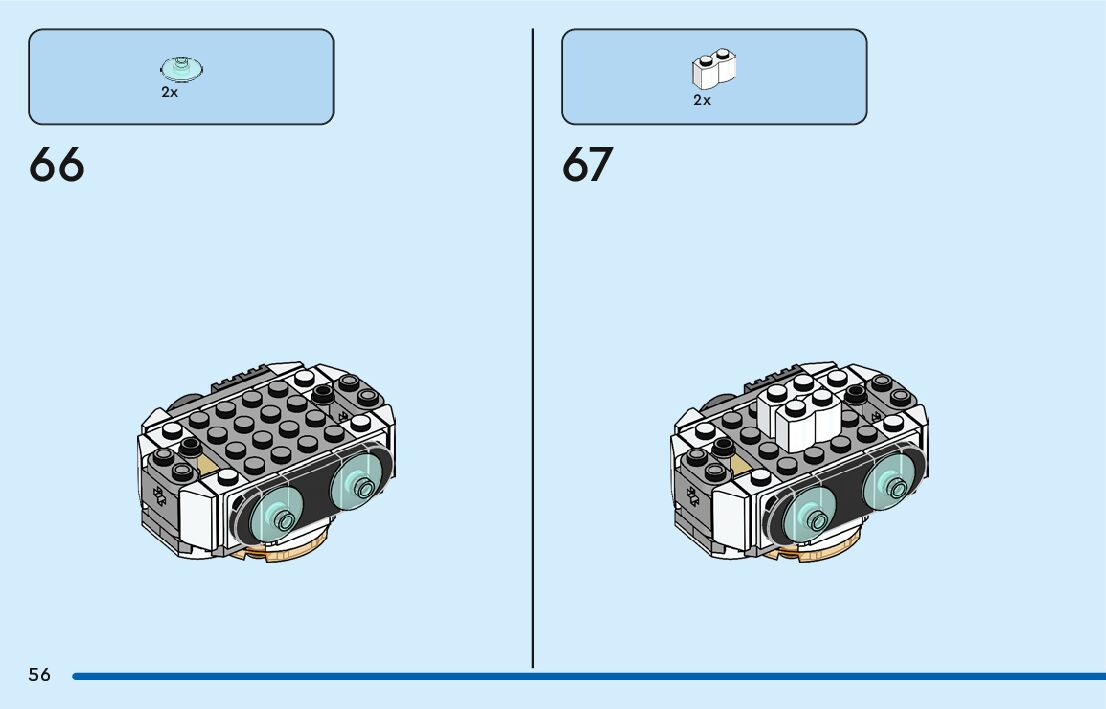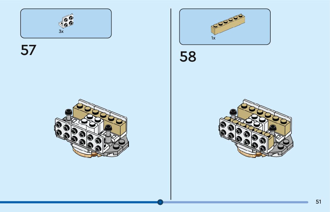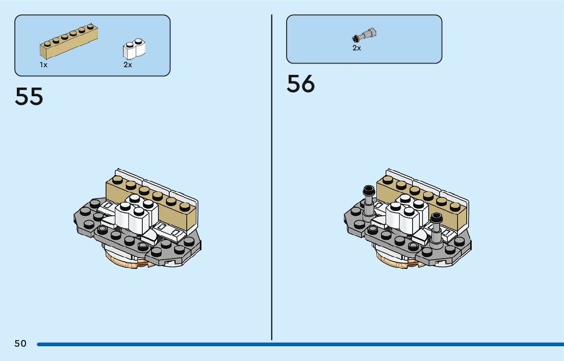 The assembly guide is prepared in a very understandable way for children and adult LEGO enthusiasts. A total of 164 picture galleries are shown, explaining the step-by-step construction stages for 3 different structures.