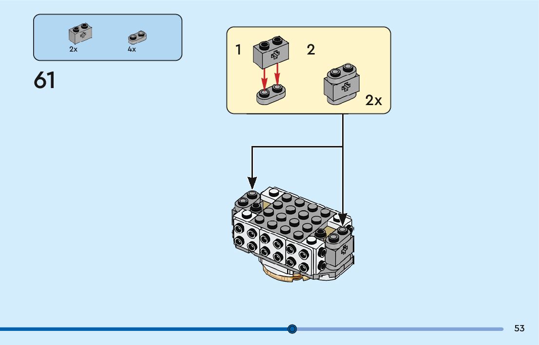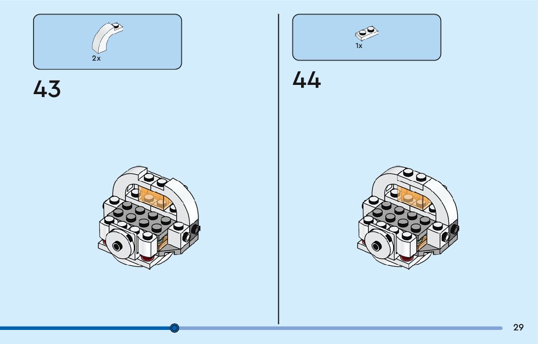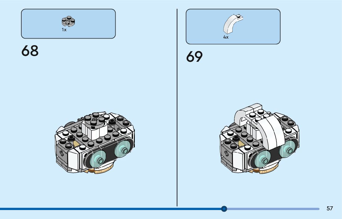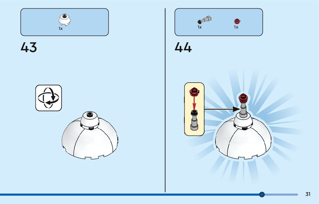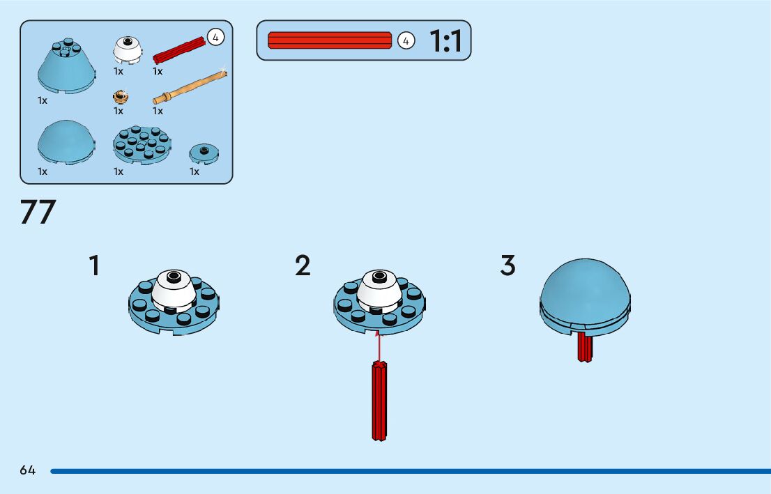 The assembly guide is prepared in a very understandable way for children and adult LEGO enthusiasts. A total of 164 picture galleries are shown, explaining the step-by-step construction stages for 3 different structures.