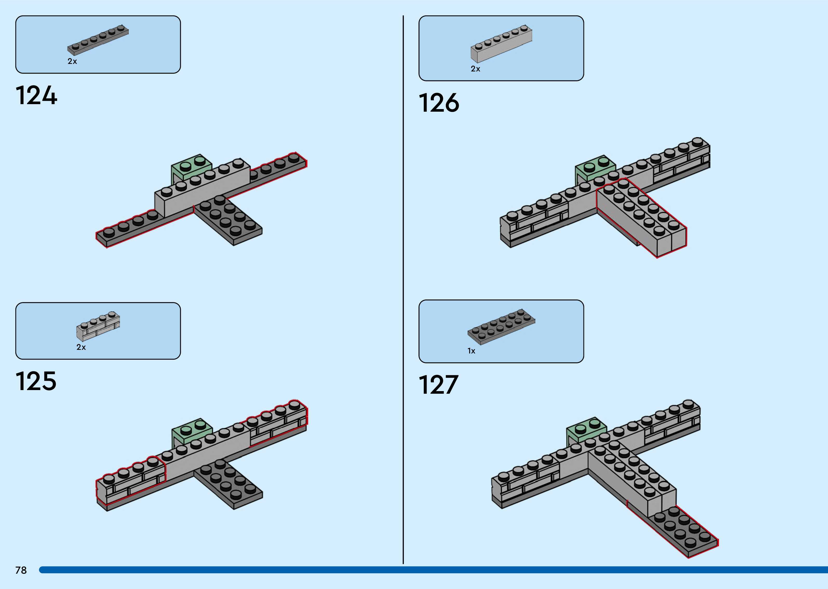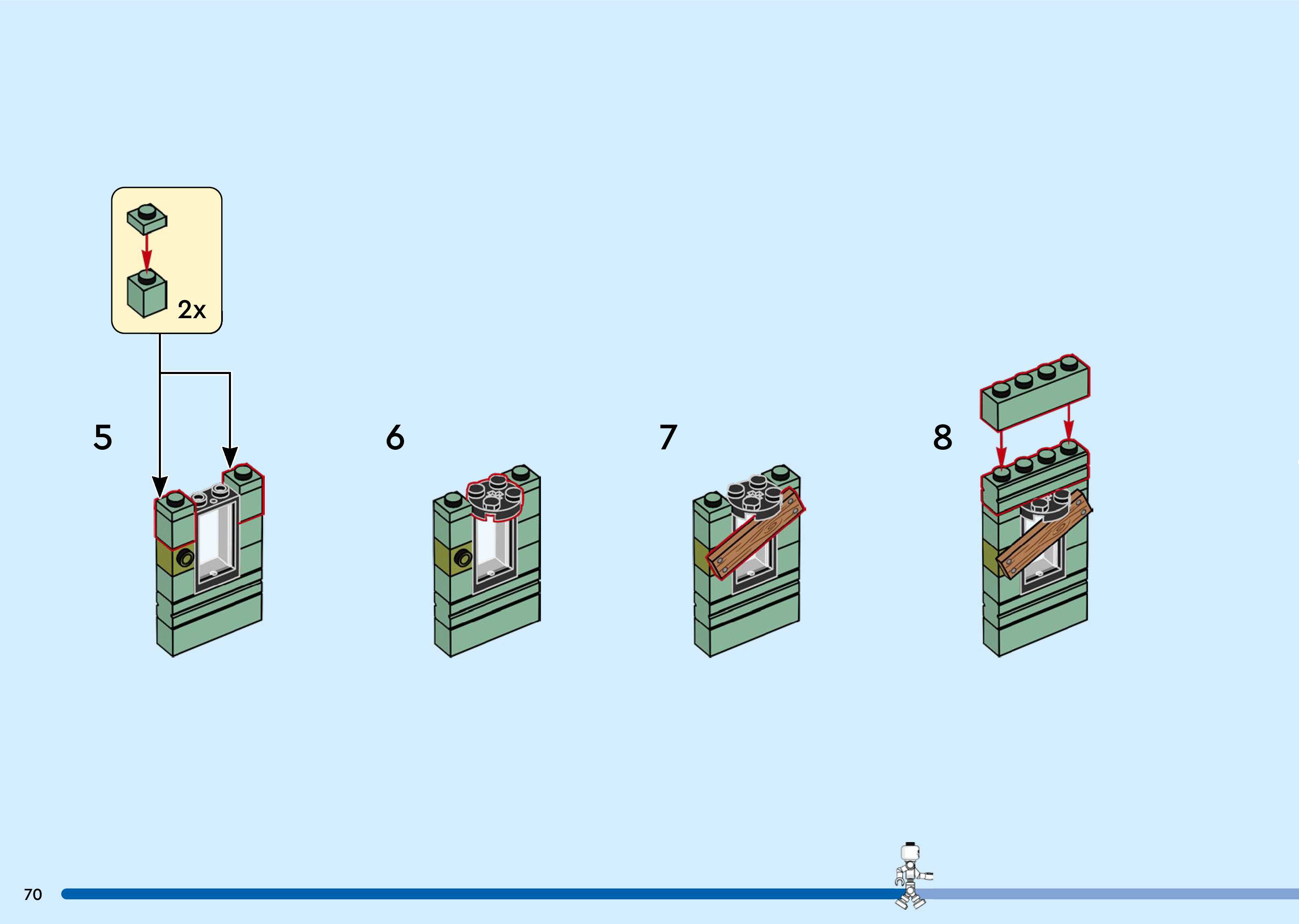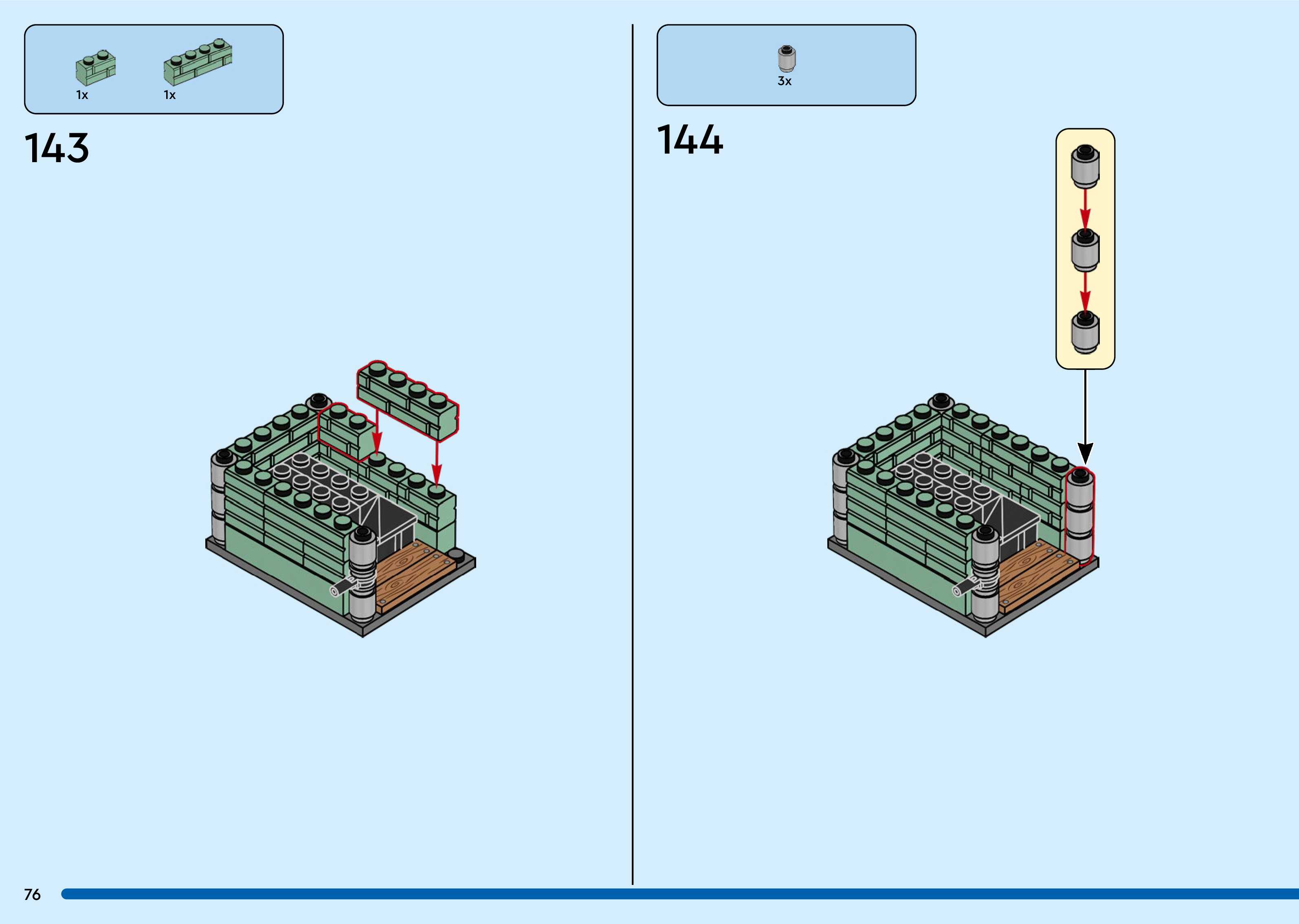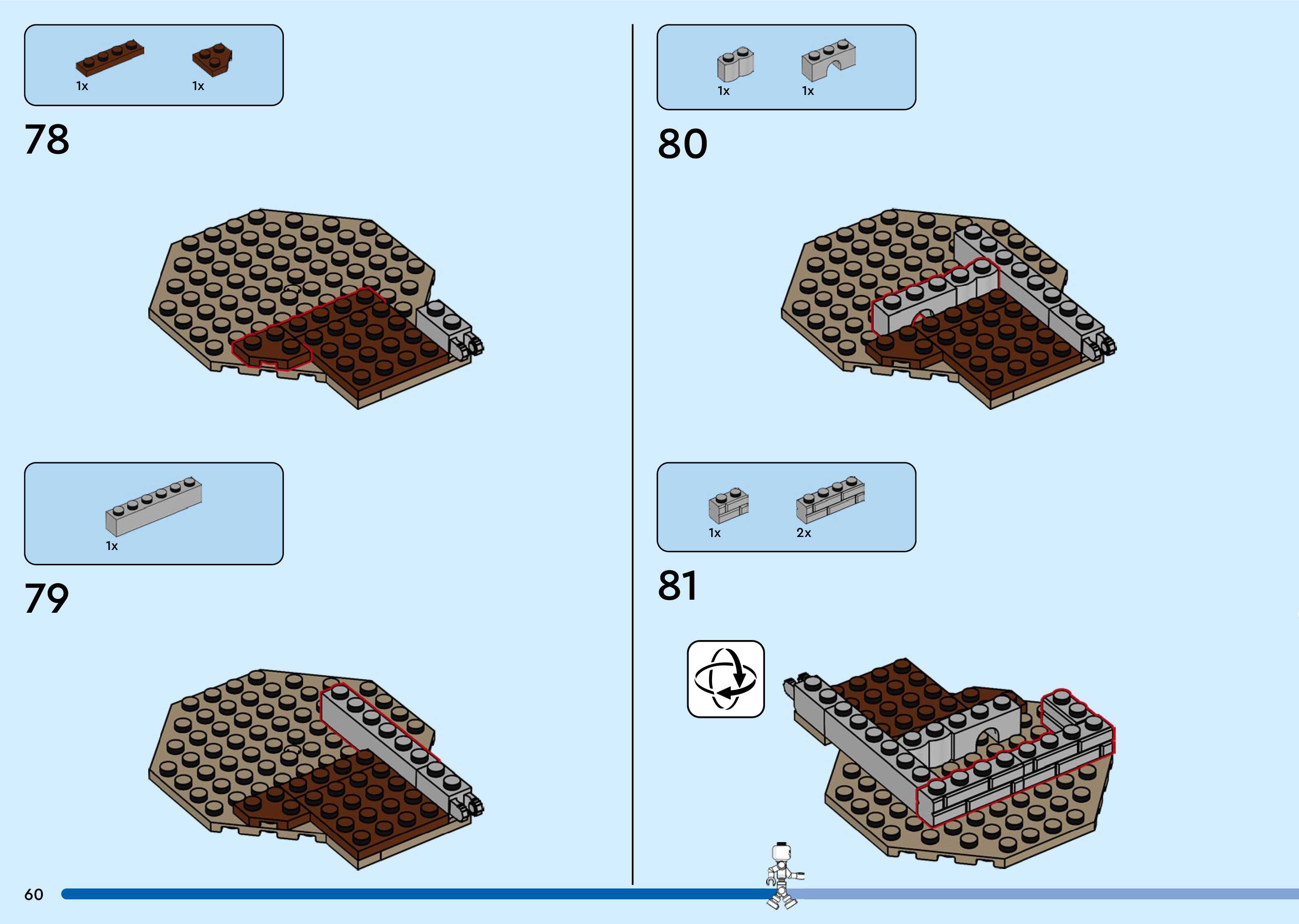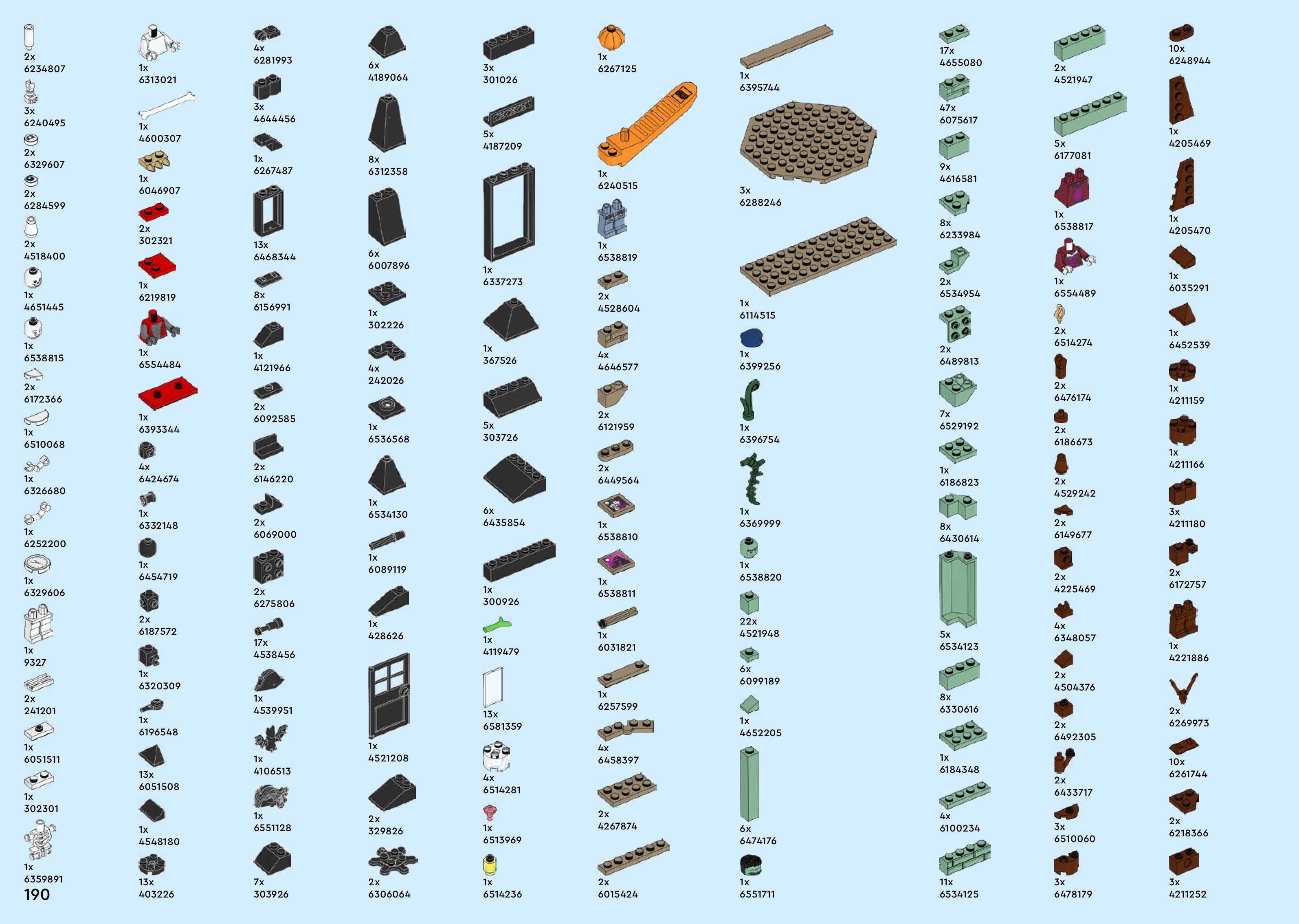 The assembly guide is prepared in a very understandable way for children and adult LEGO enthusiasts. A total of 368 picture galleries are shown, explaining the step-by-step construction stages for 3 different structures.