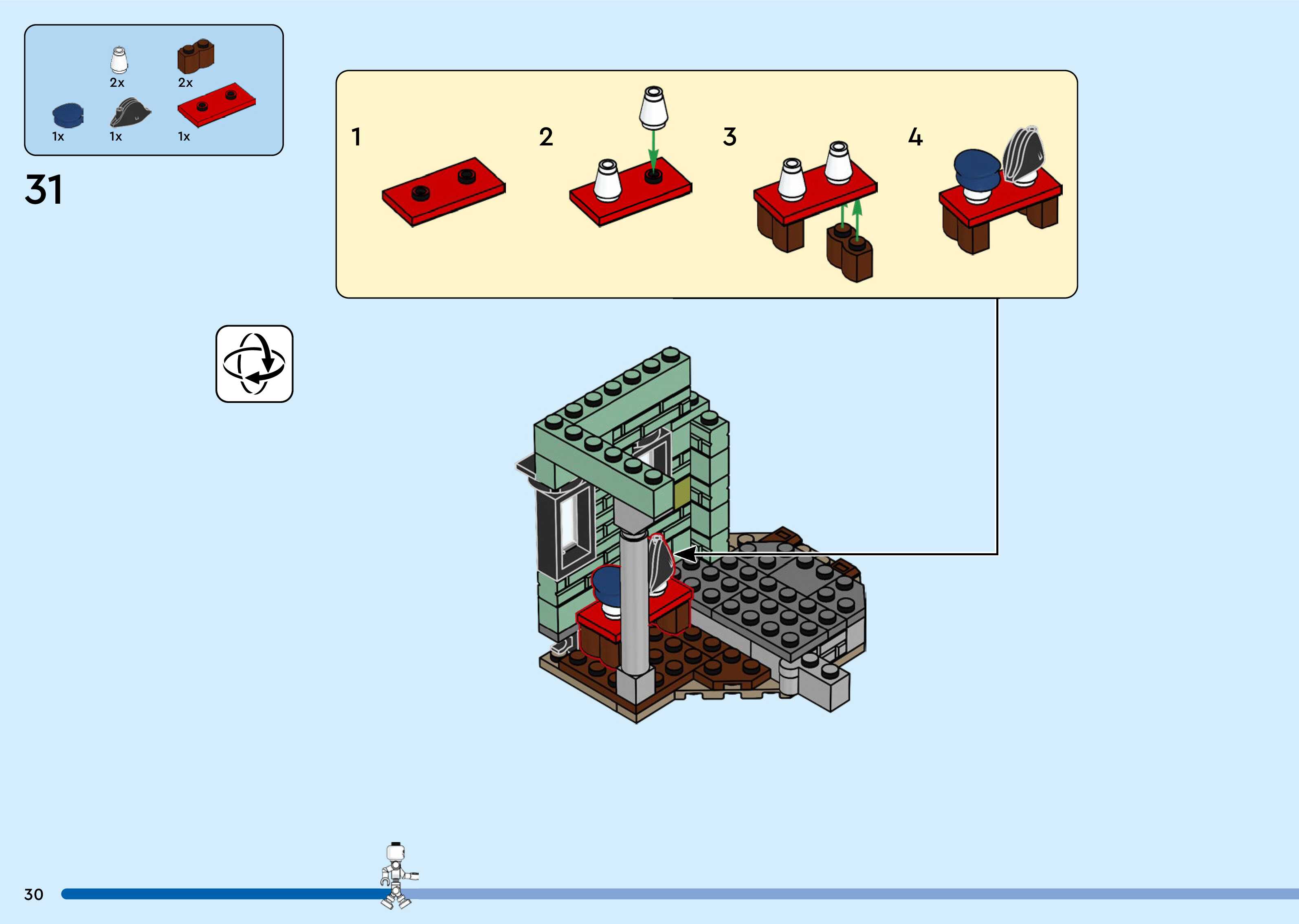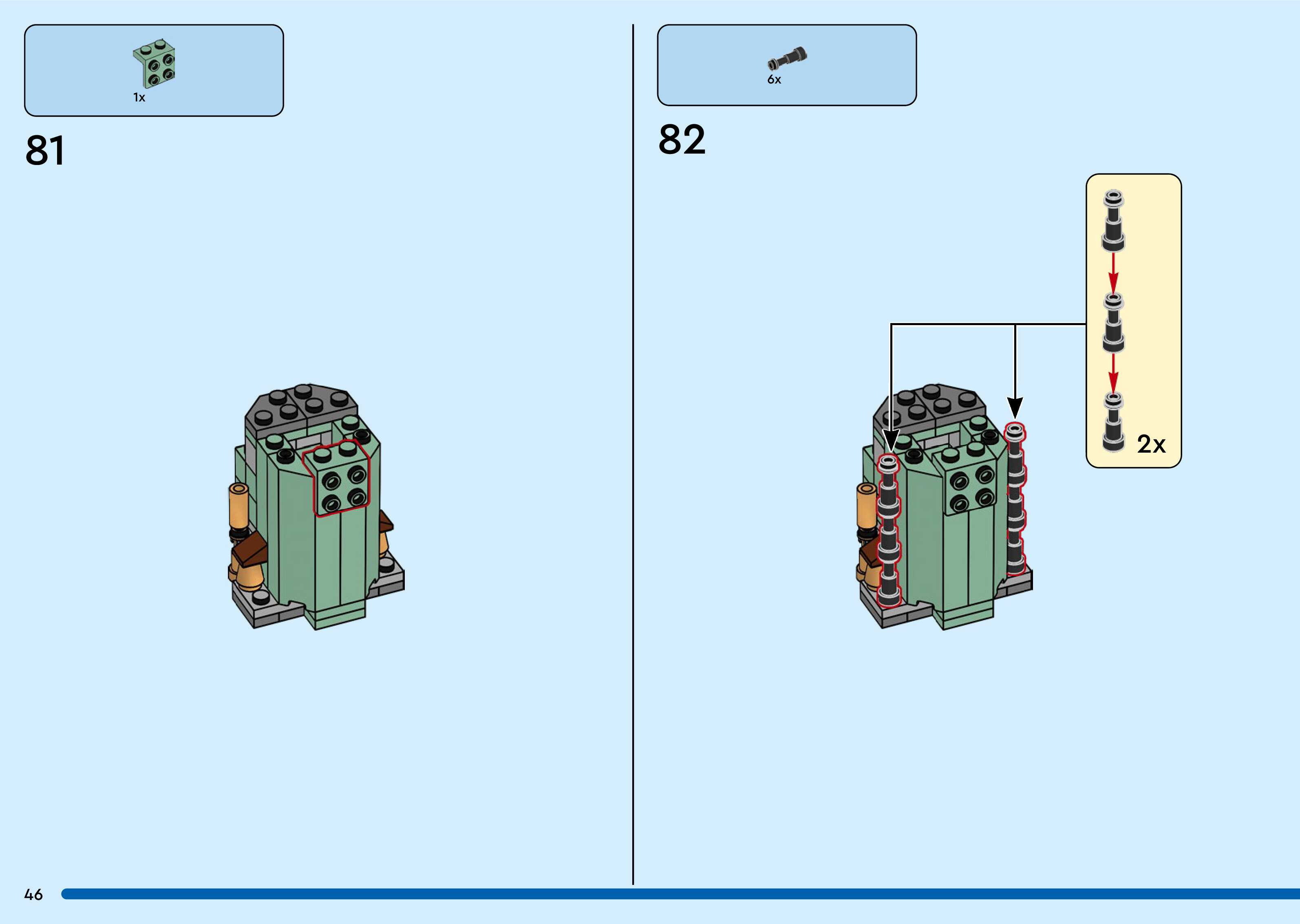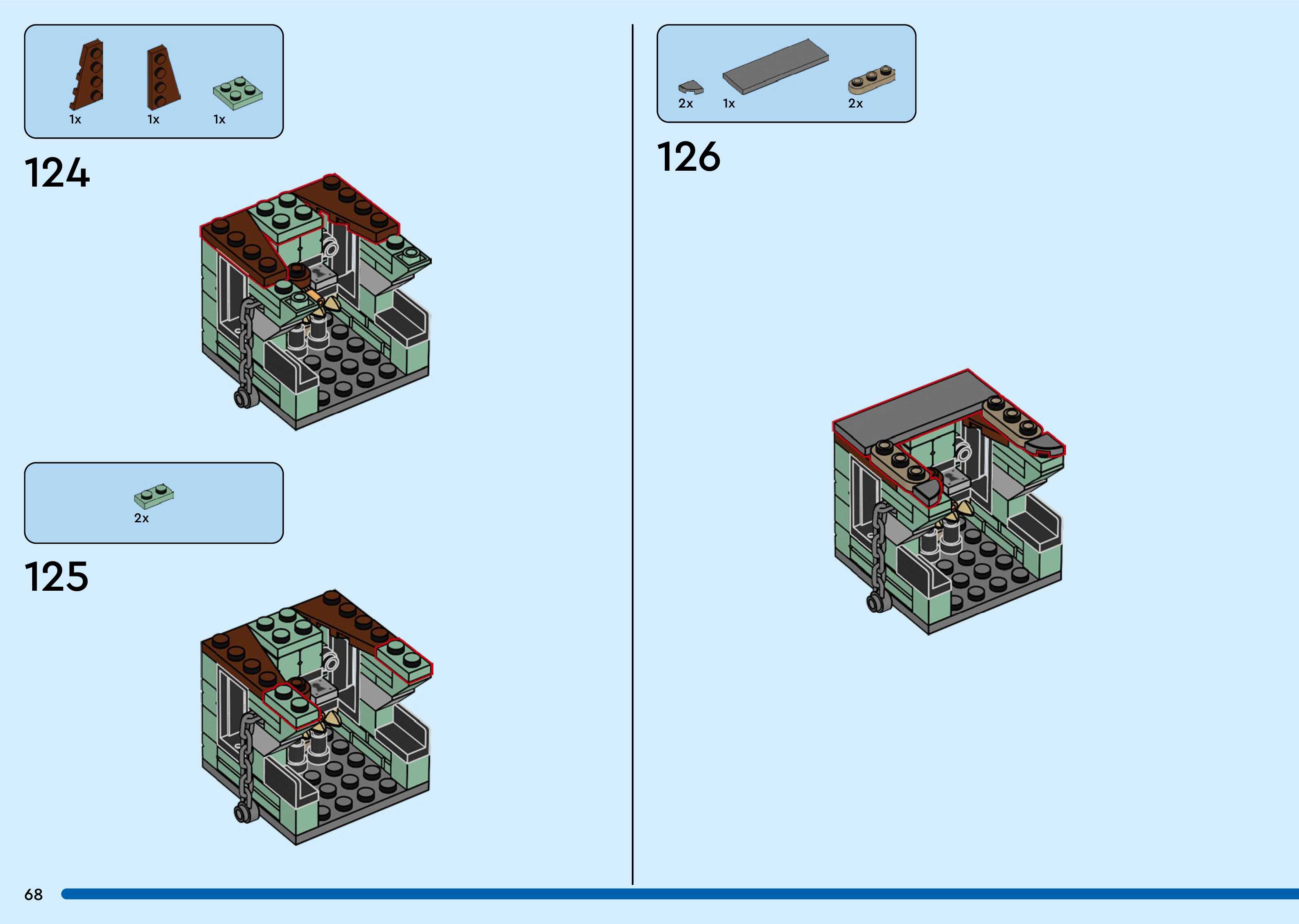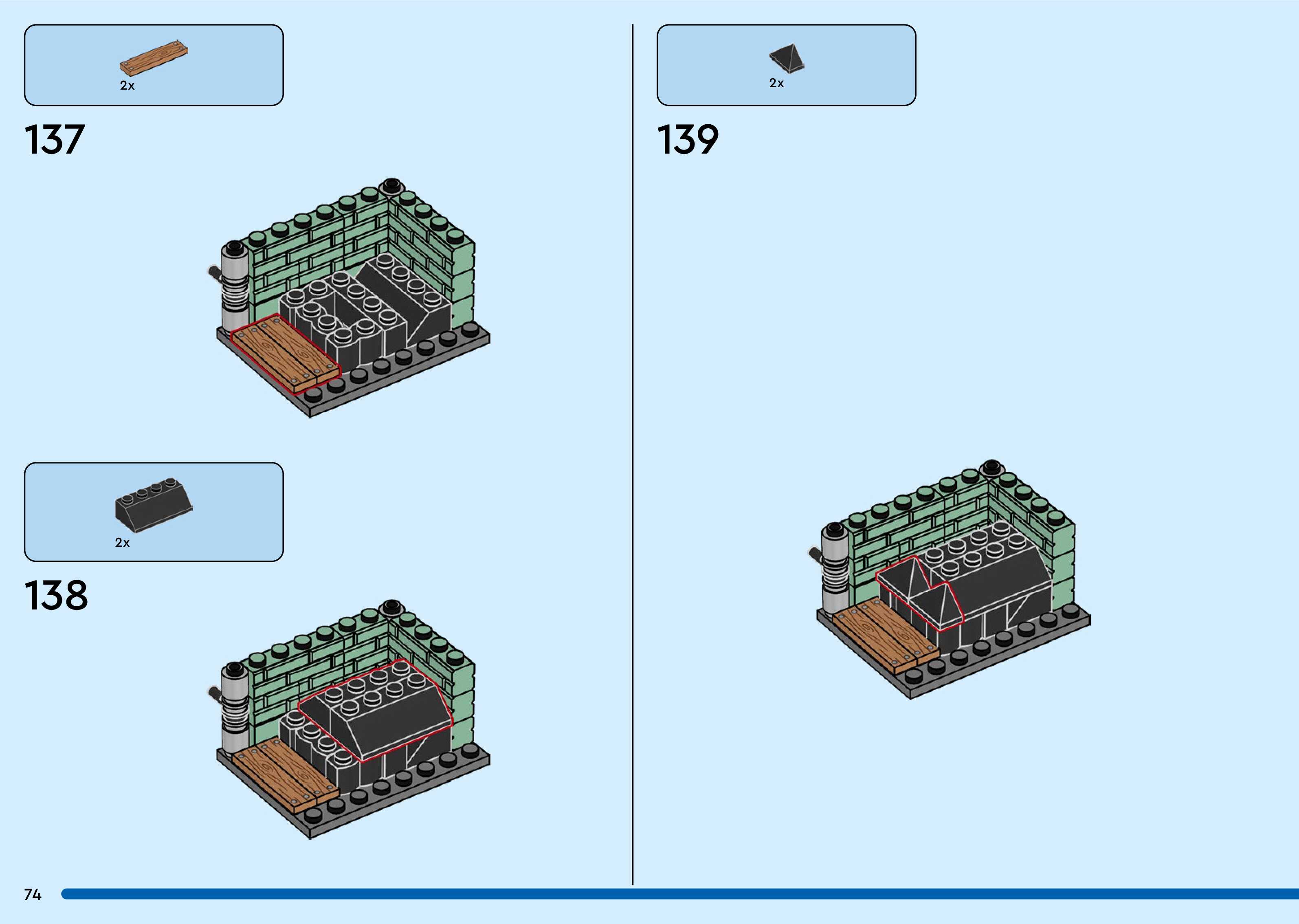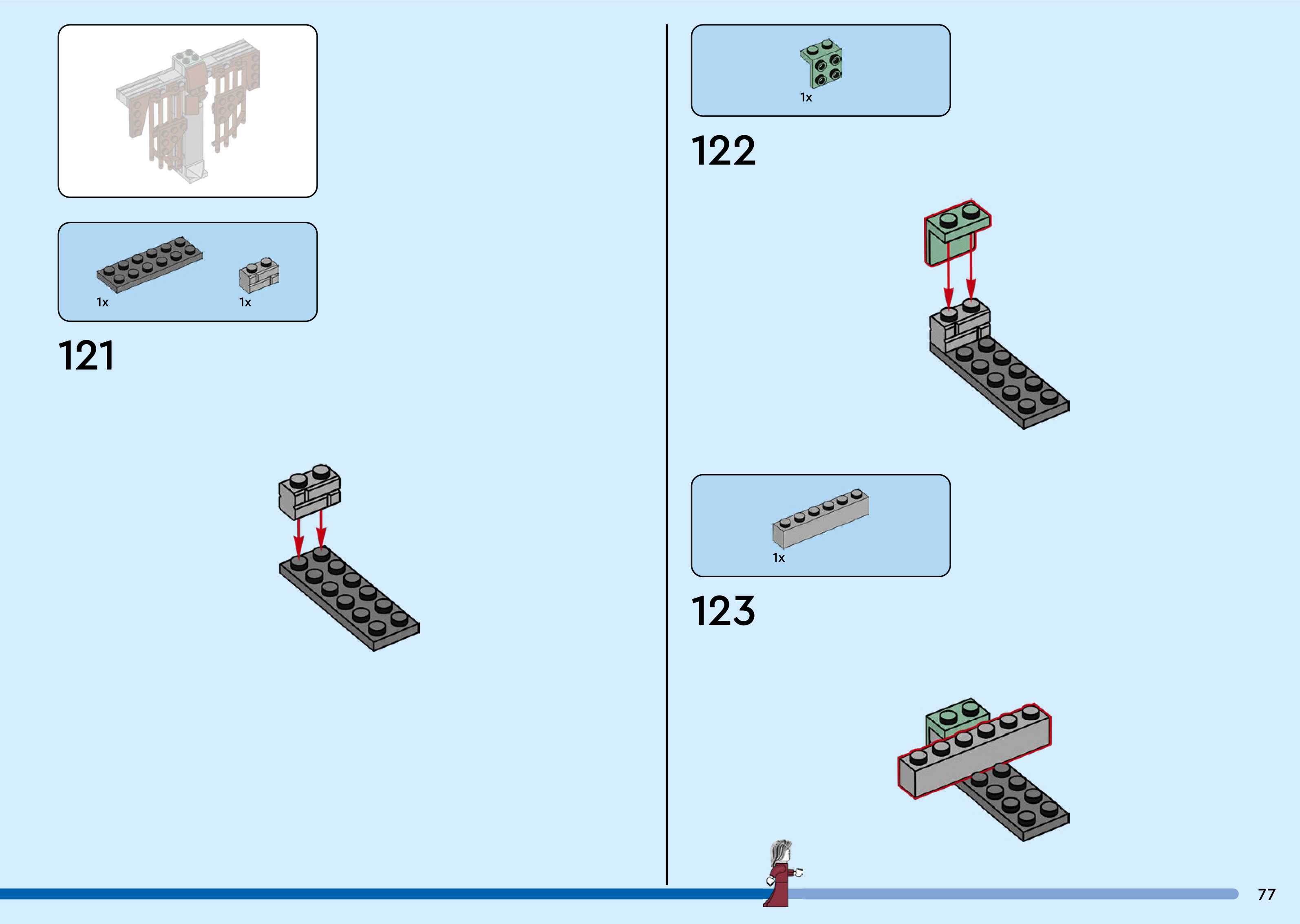 The assembly guide is prepared in a very understandable way for children and adult LEGO enthusiasts. A total of 368 picture galleries are shown, explaining the step-by-step construction stages for 3 different structures.