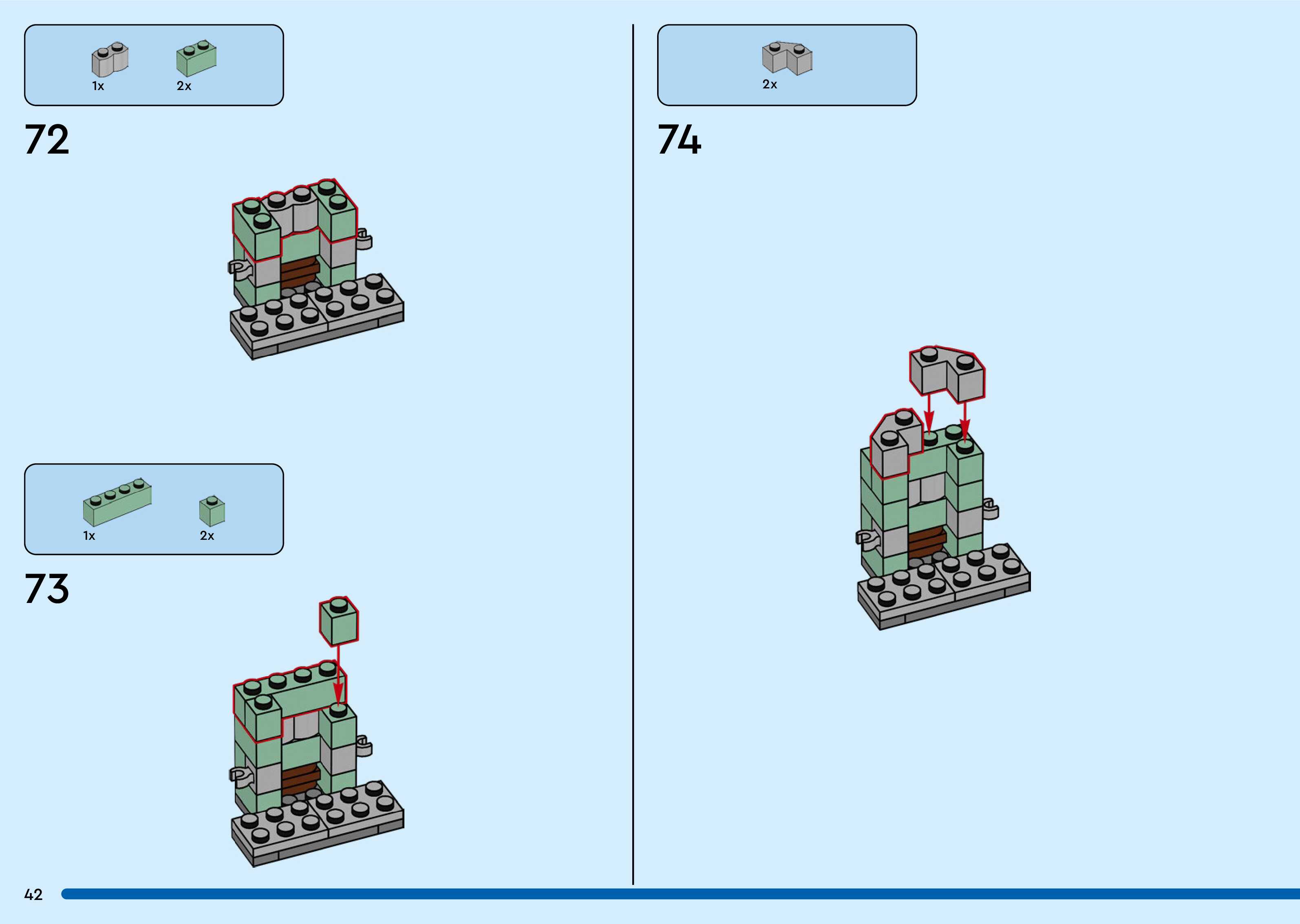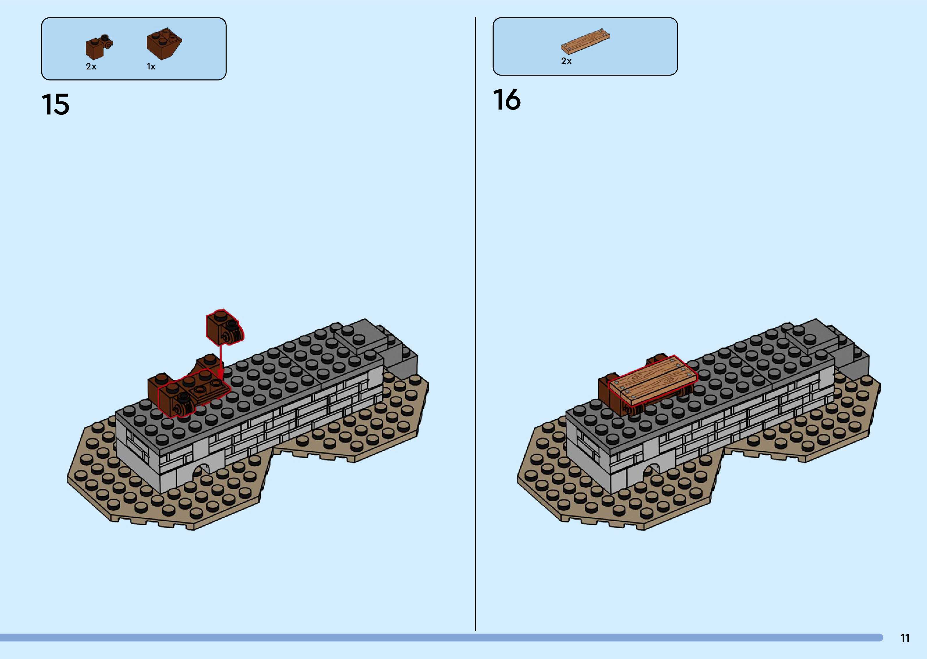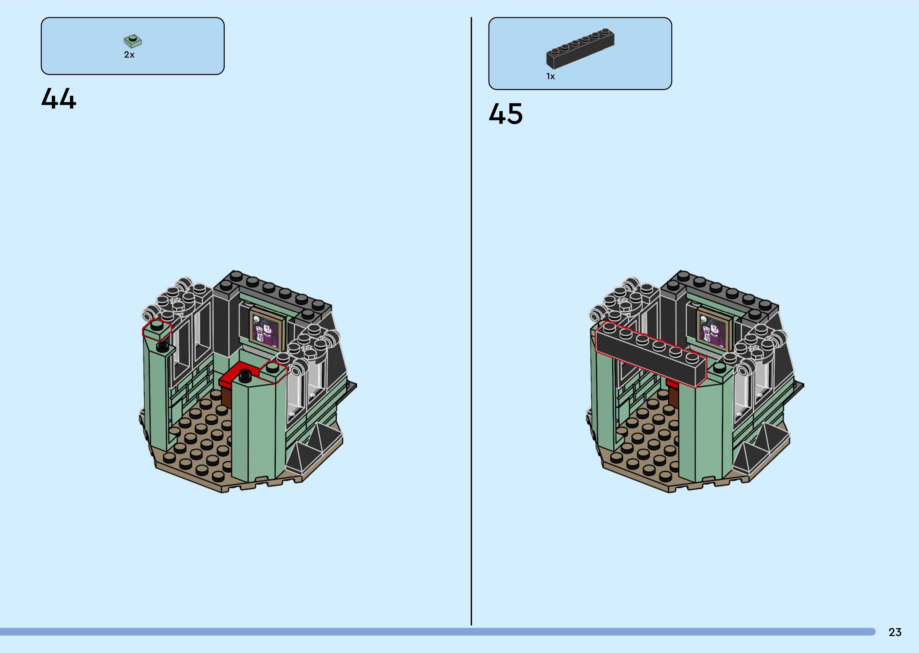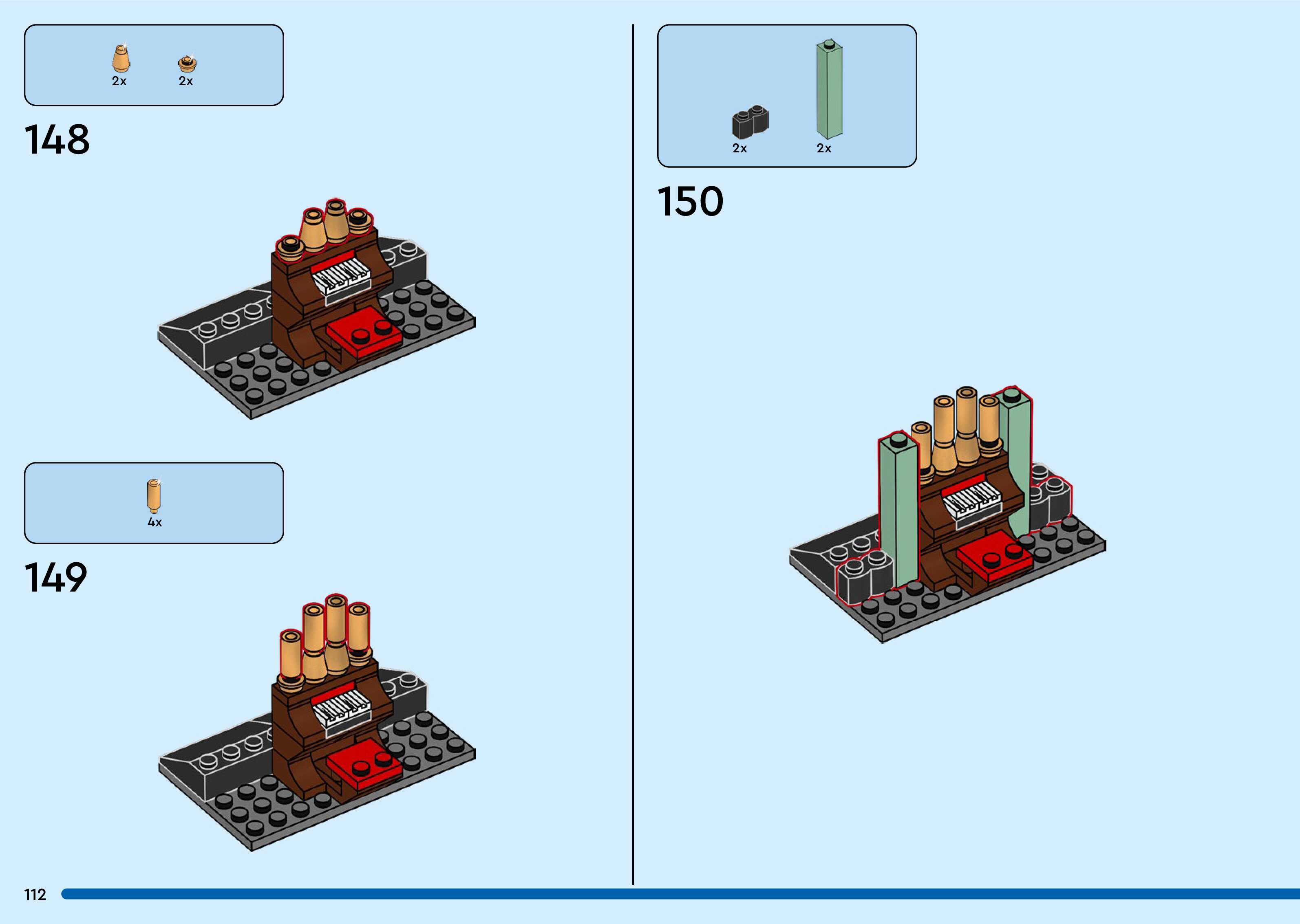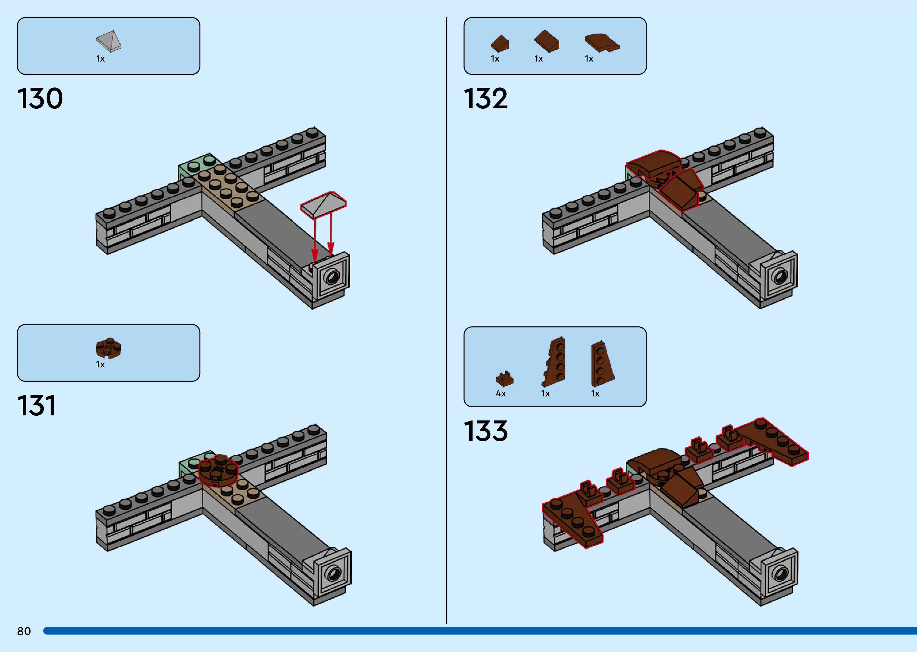 The assembly guide is prepared in a very understandable way for children and adult LEGO enthusiasts. A total of 368 picture galleries are shown, explaining the step-by-step construction stages for 3 different structures.