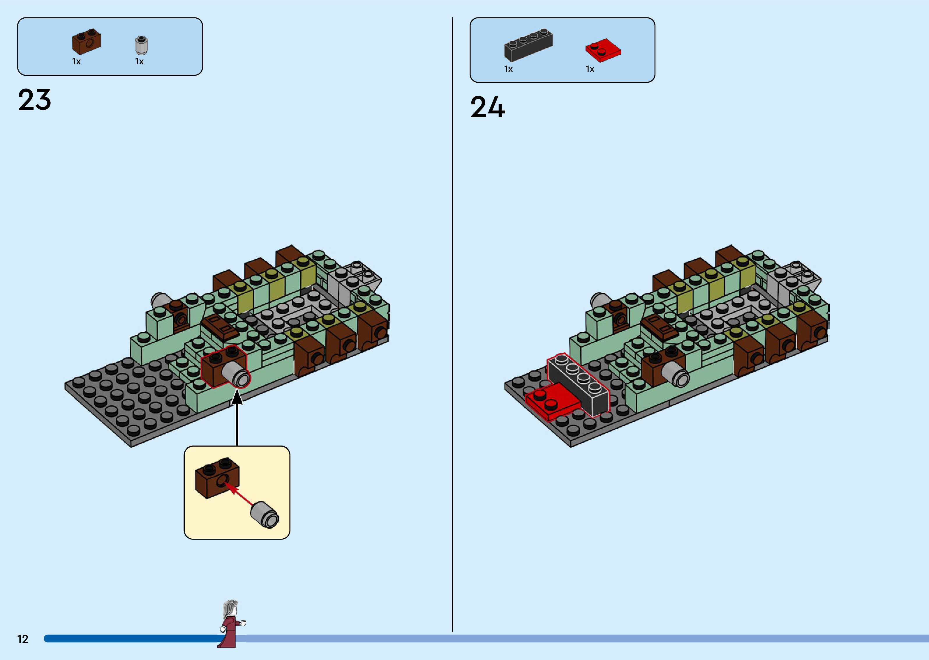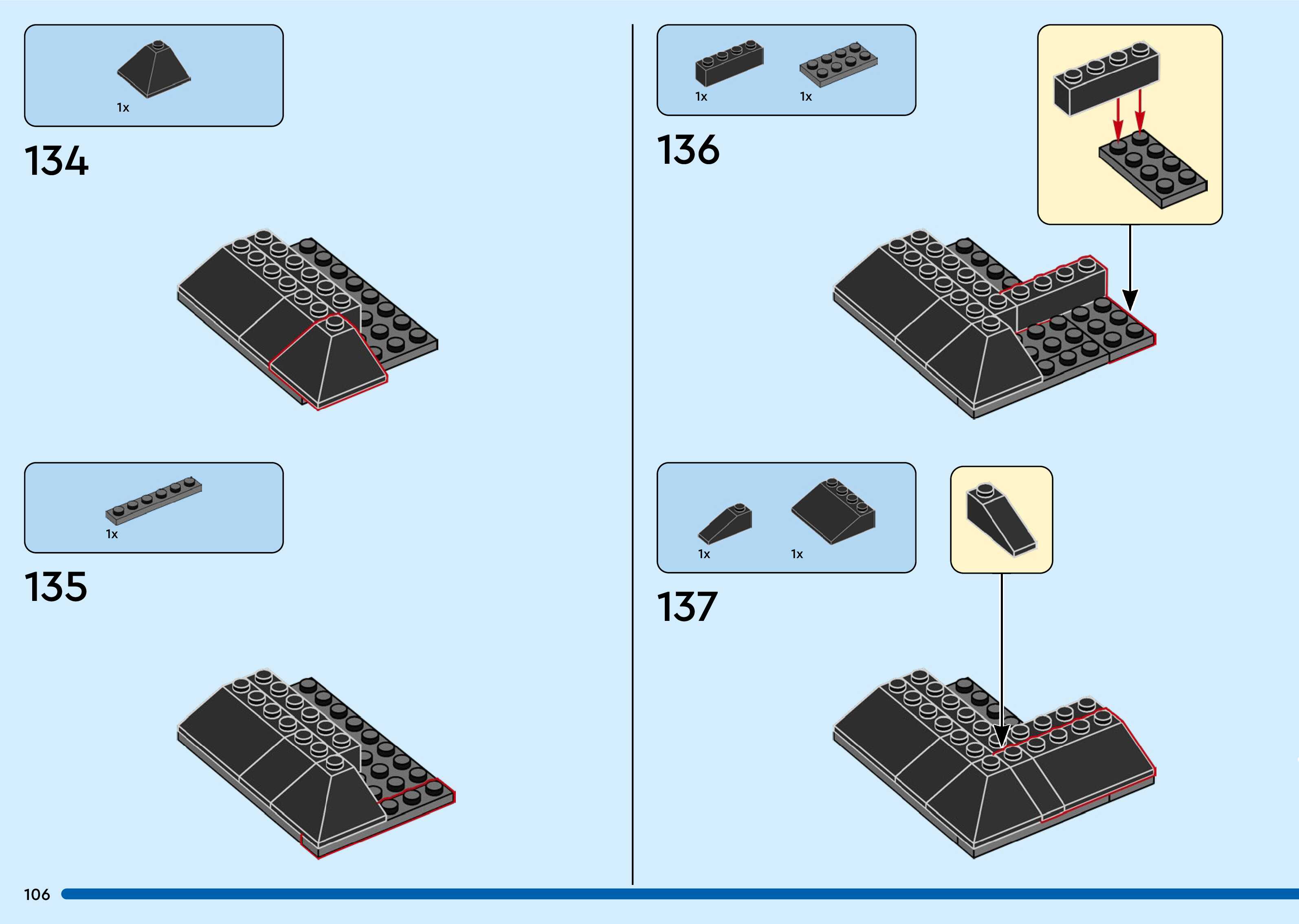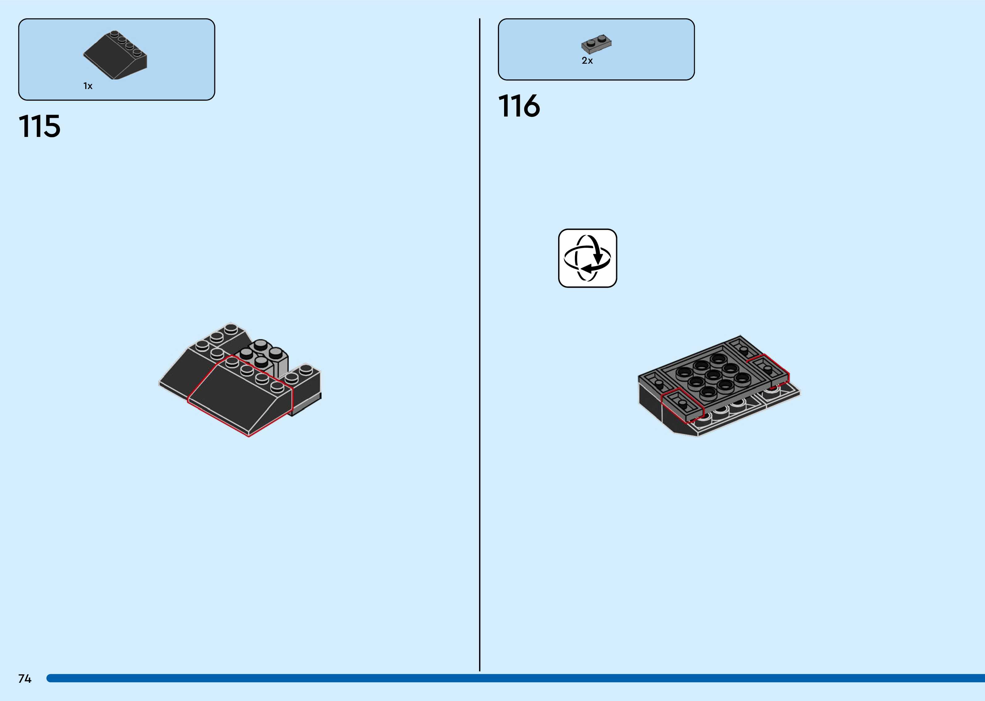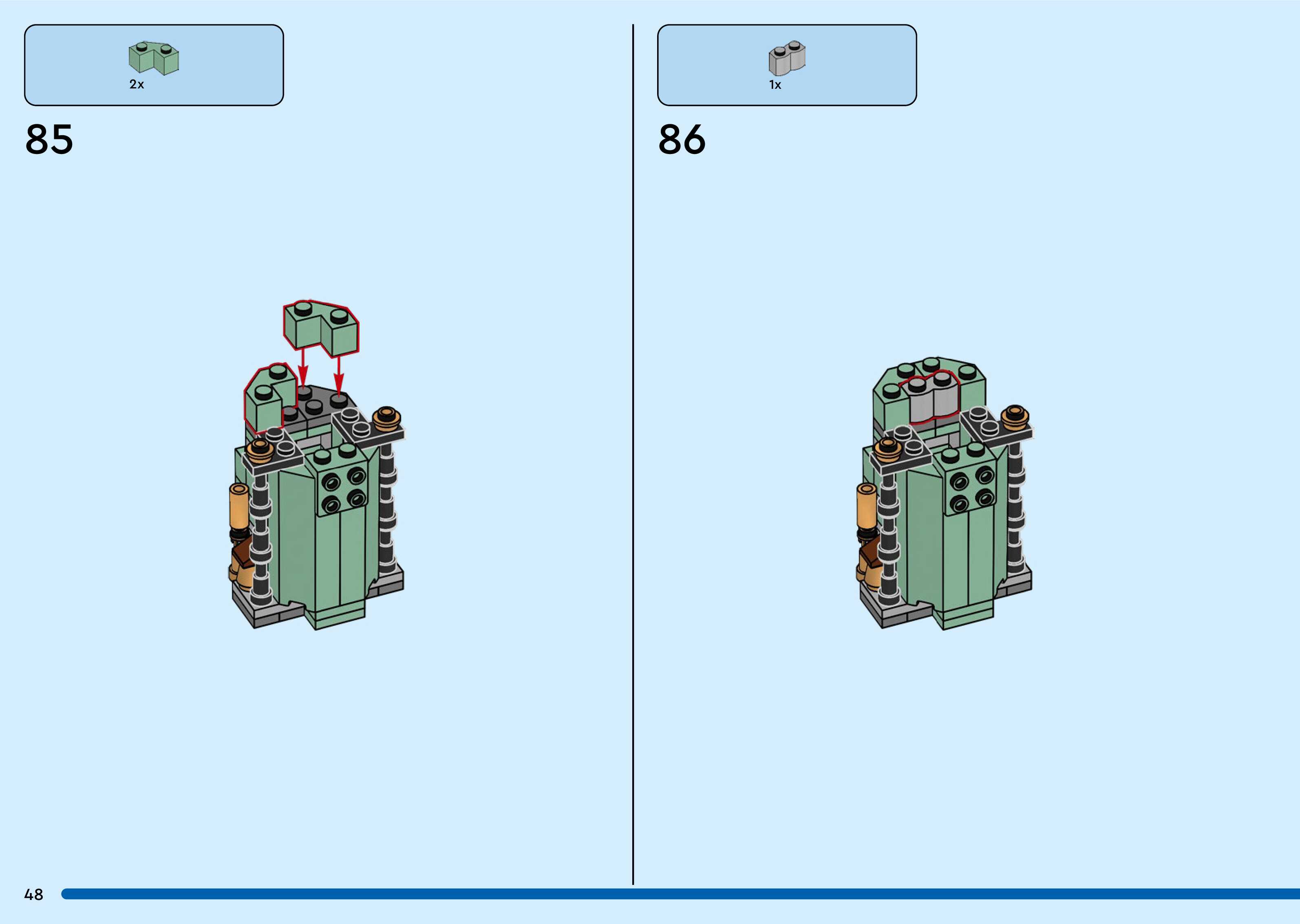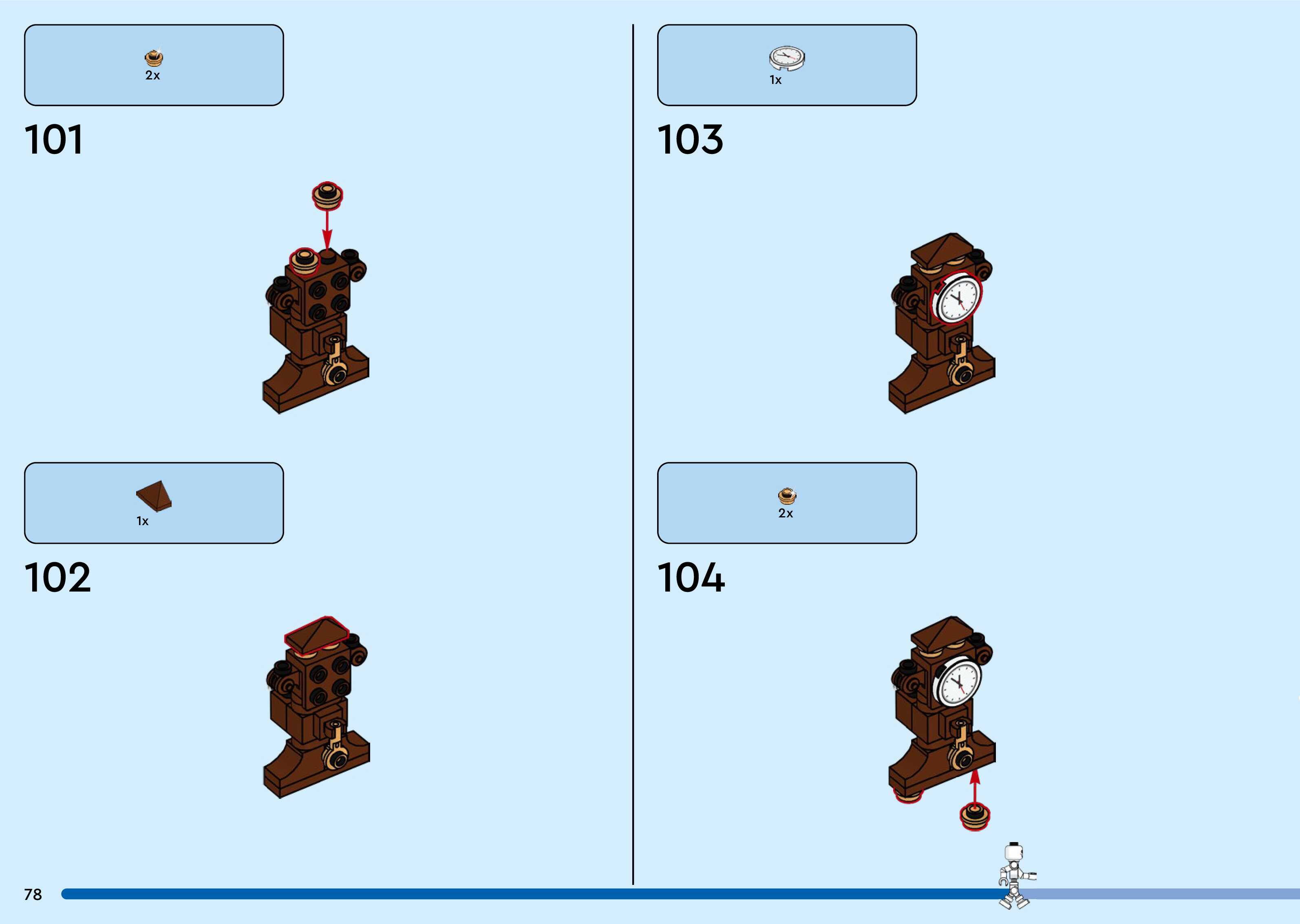 The assembly guide is prepared in a very understandable way for children and adult LEGO enthusiasts. A total of 368 picture galleries are shown, explaining the step-by-step construction stages for 3 different structures.