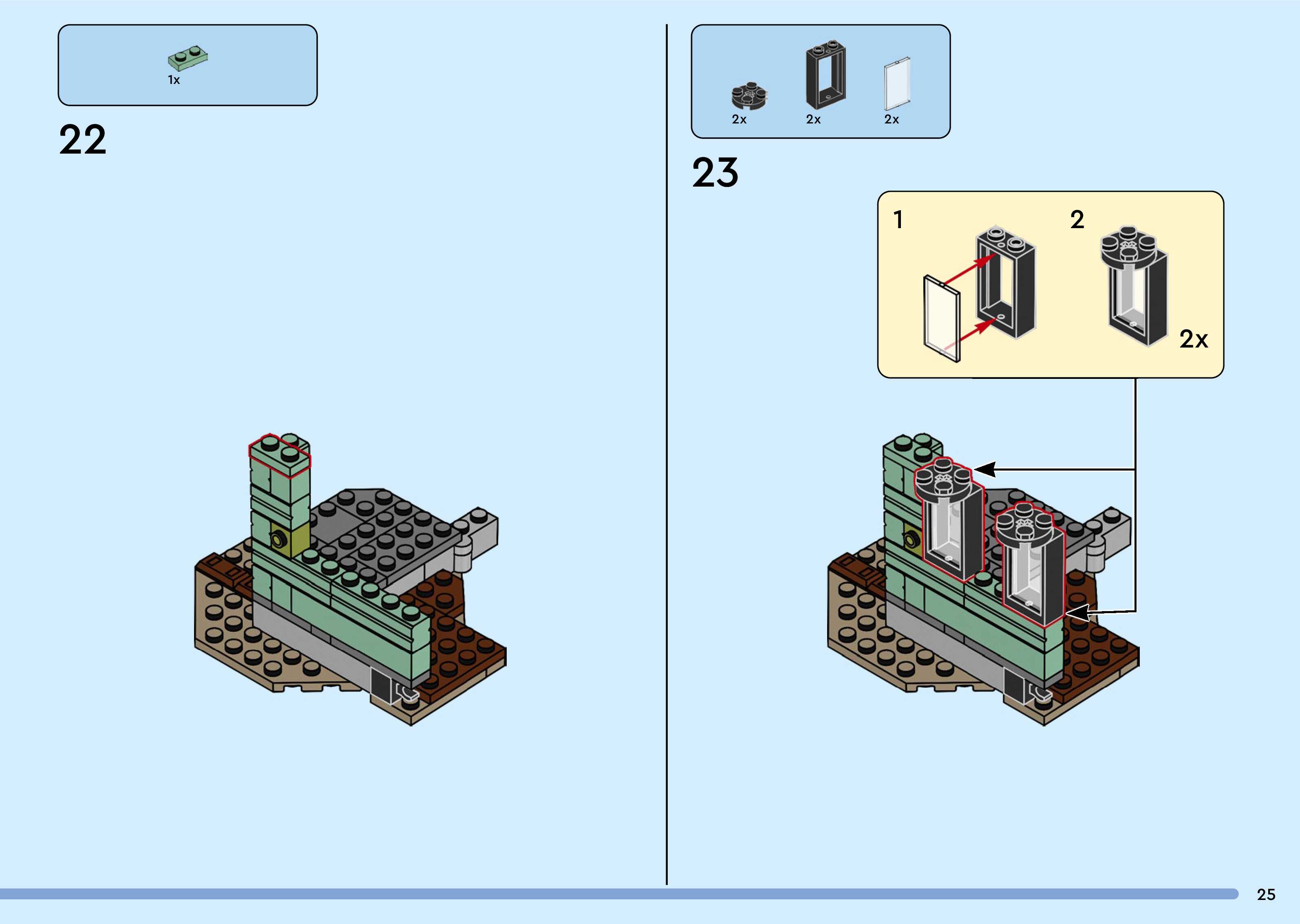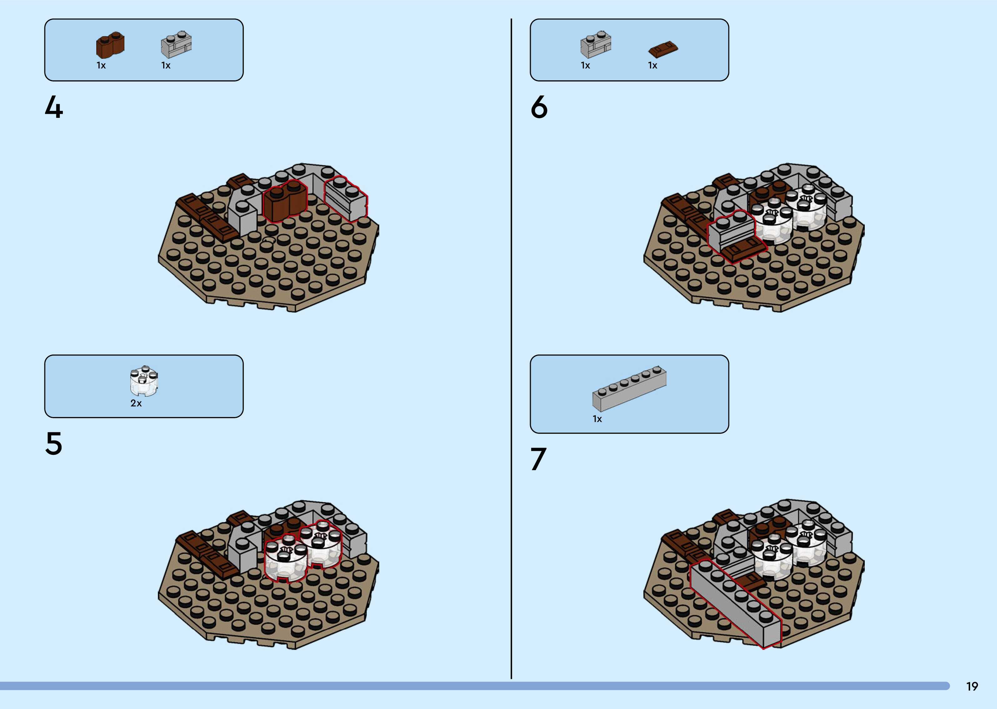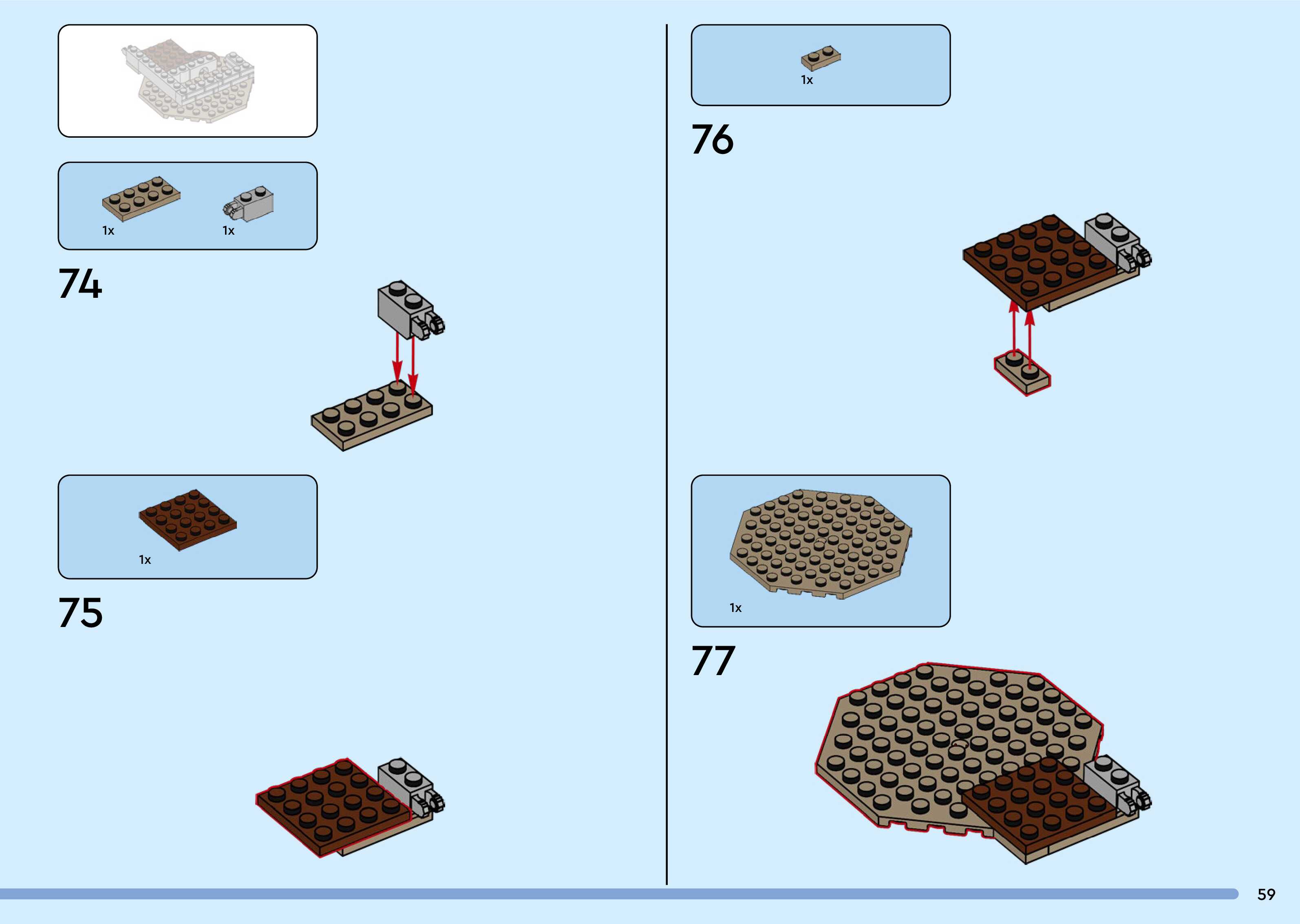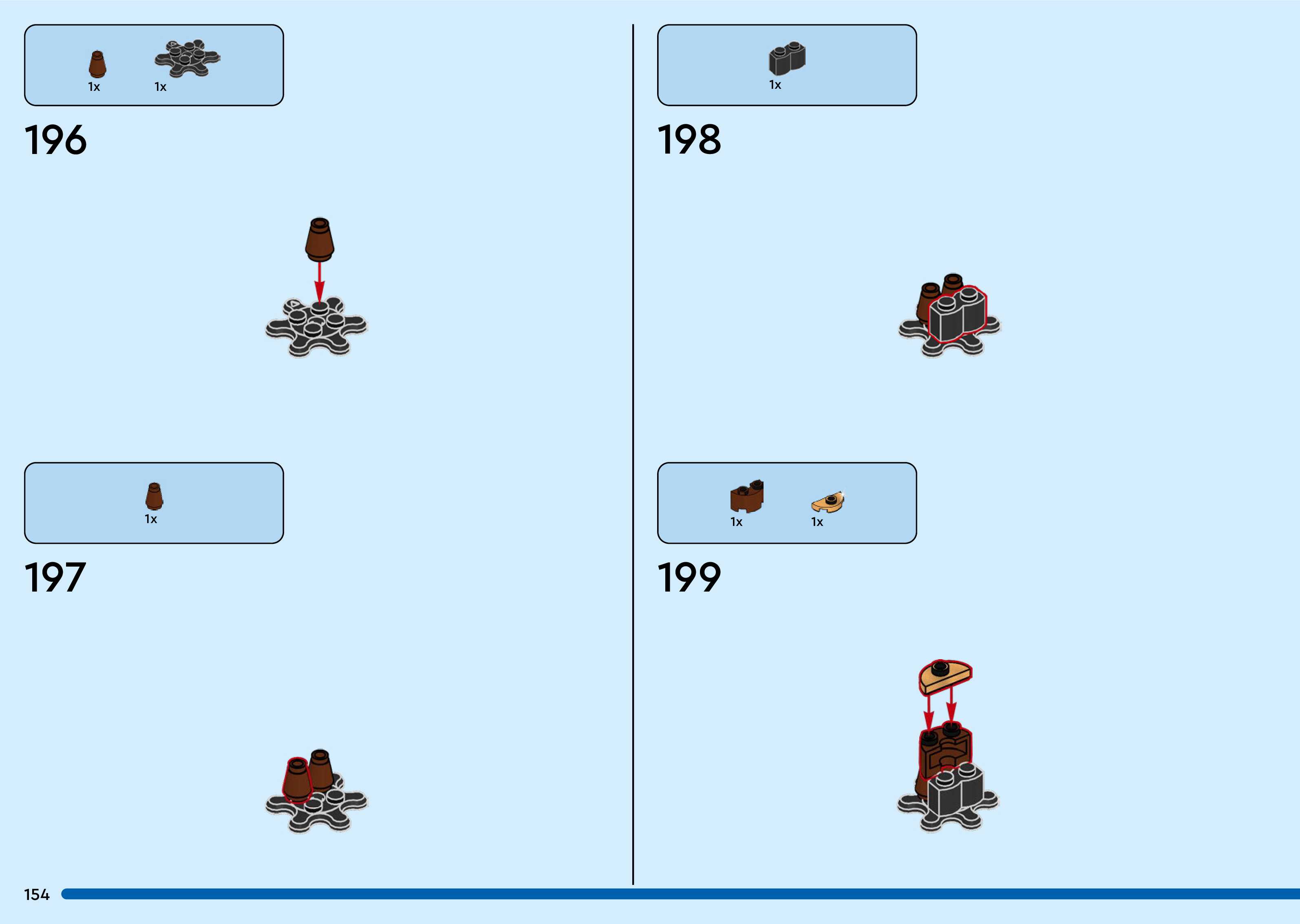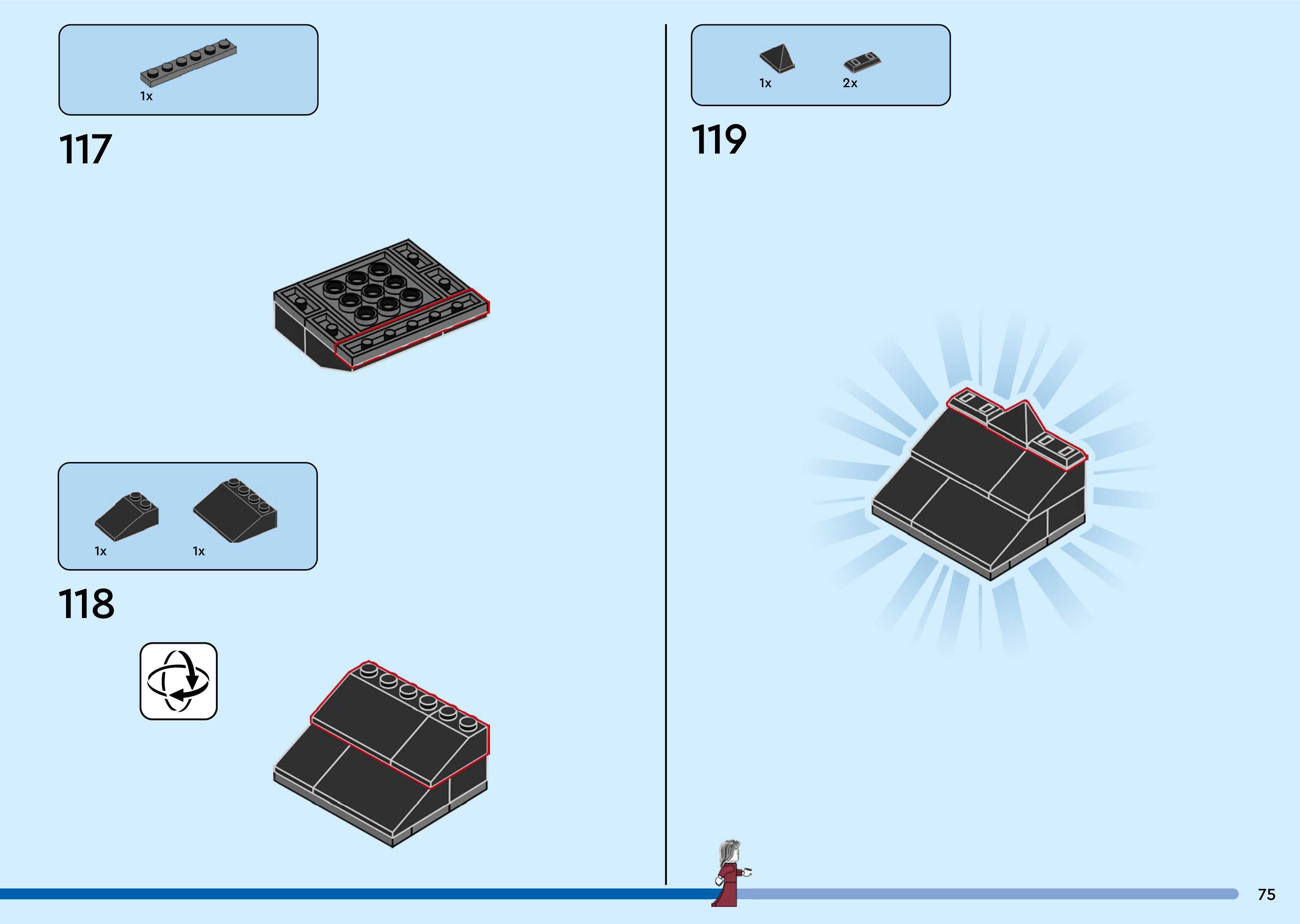 The assembly guide is prepared in a very understandable way for children and adult LEGO enthusiasts. A total of 368 picture galleries are shown, explaining the step-by-step construction stages for 3 different structures.