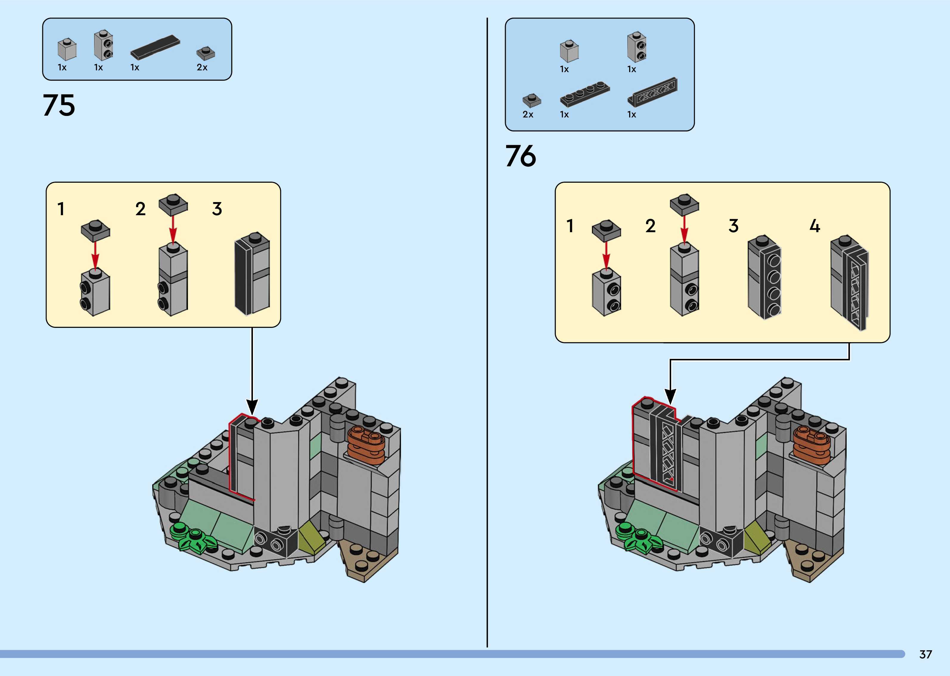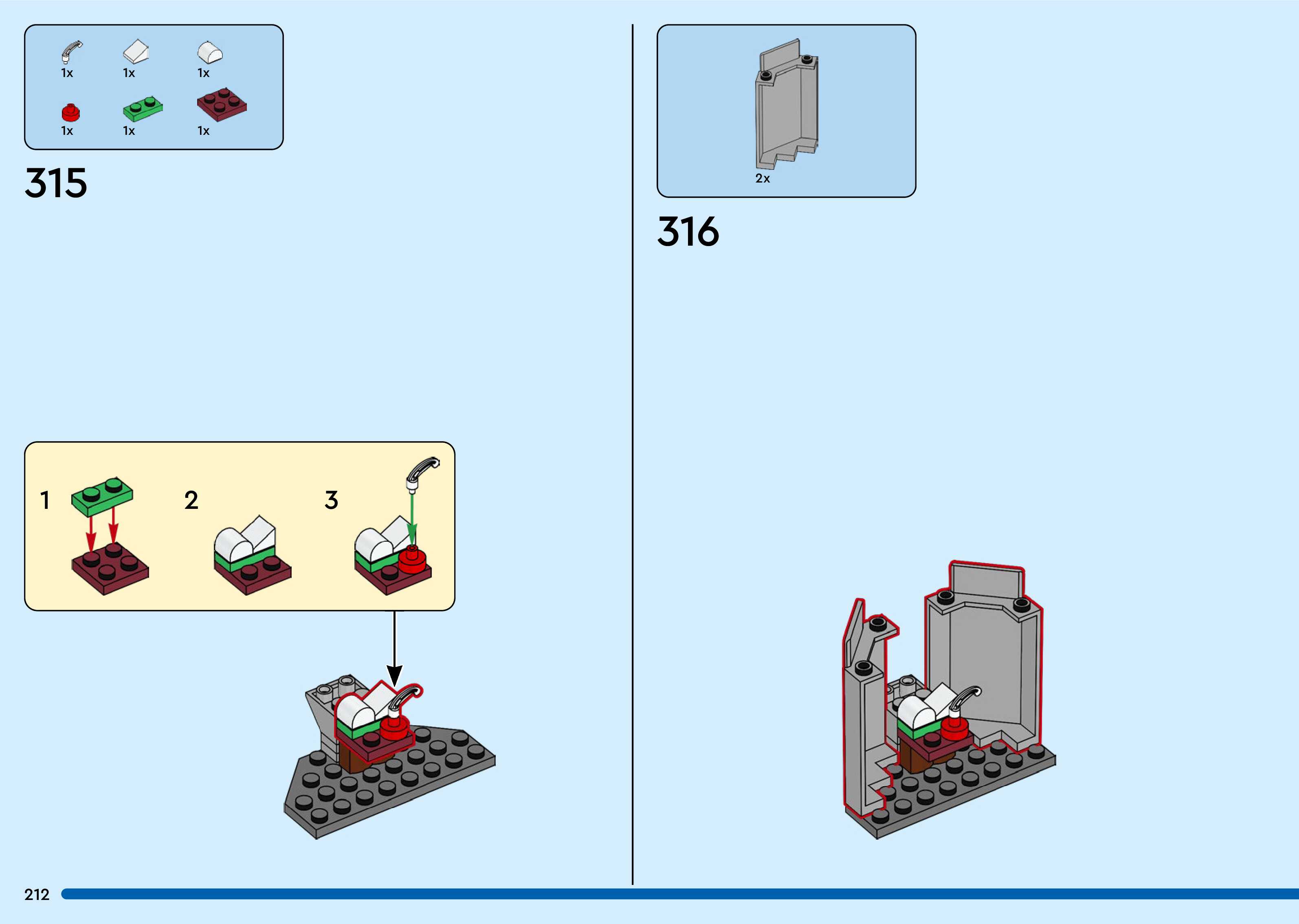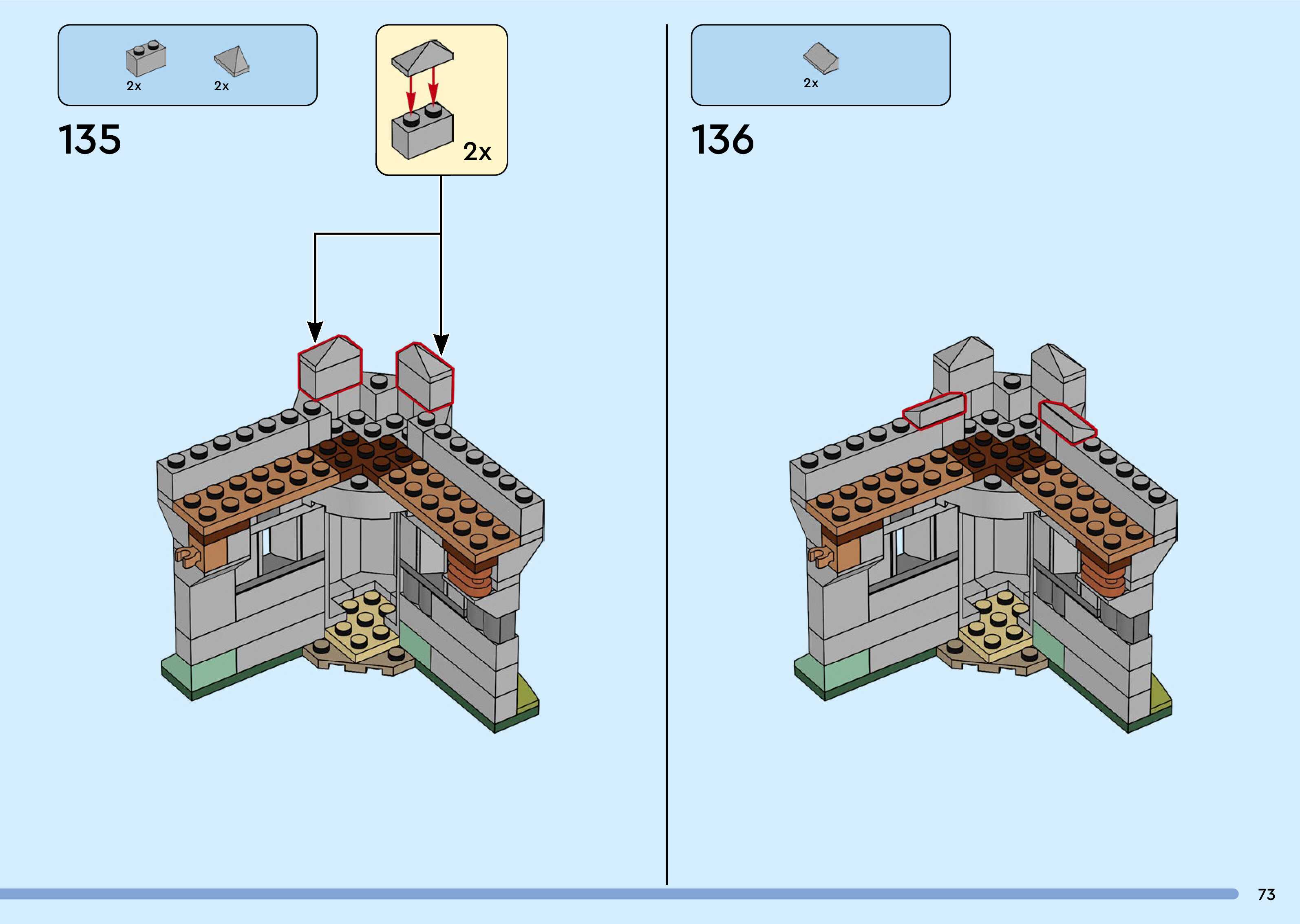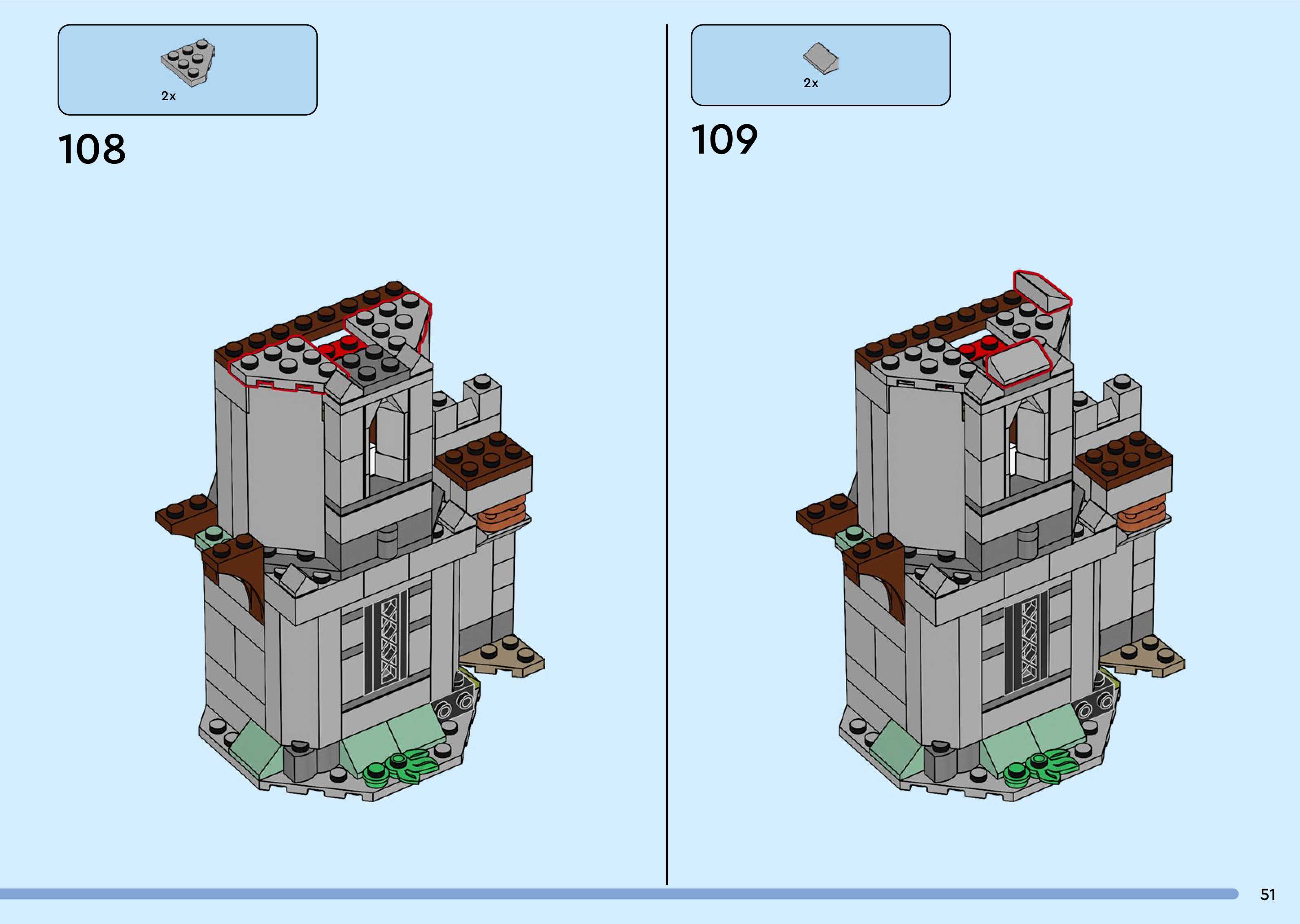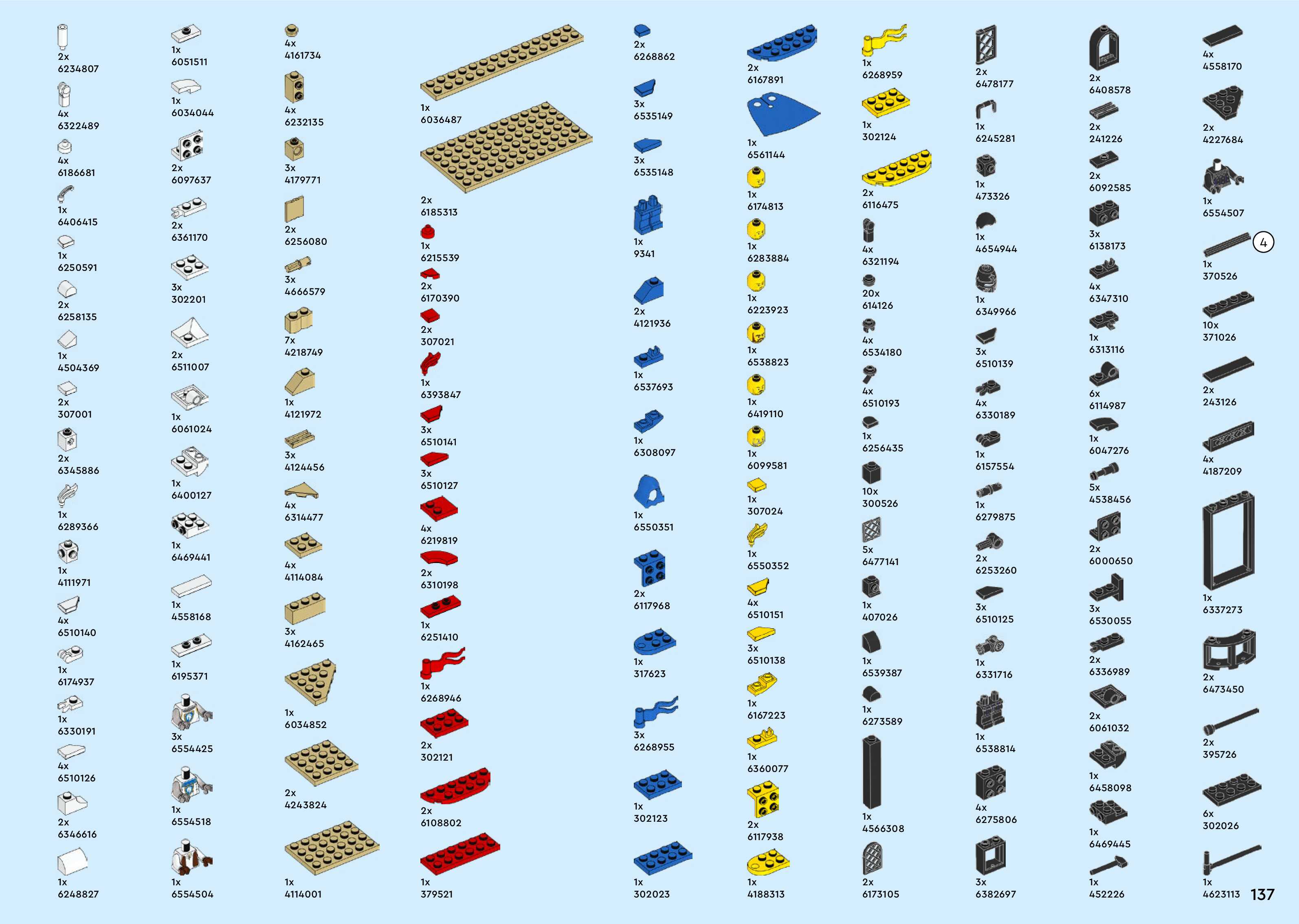 The assembly guide is prepared in a very understandable way for children and adult LEGO enthusiasts. A total of 532 picture galleries are shown, explaining the step-by-step construction stages for 3 different structures.