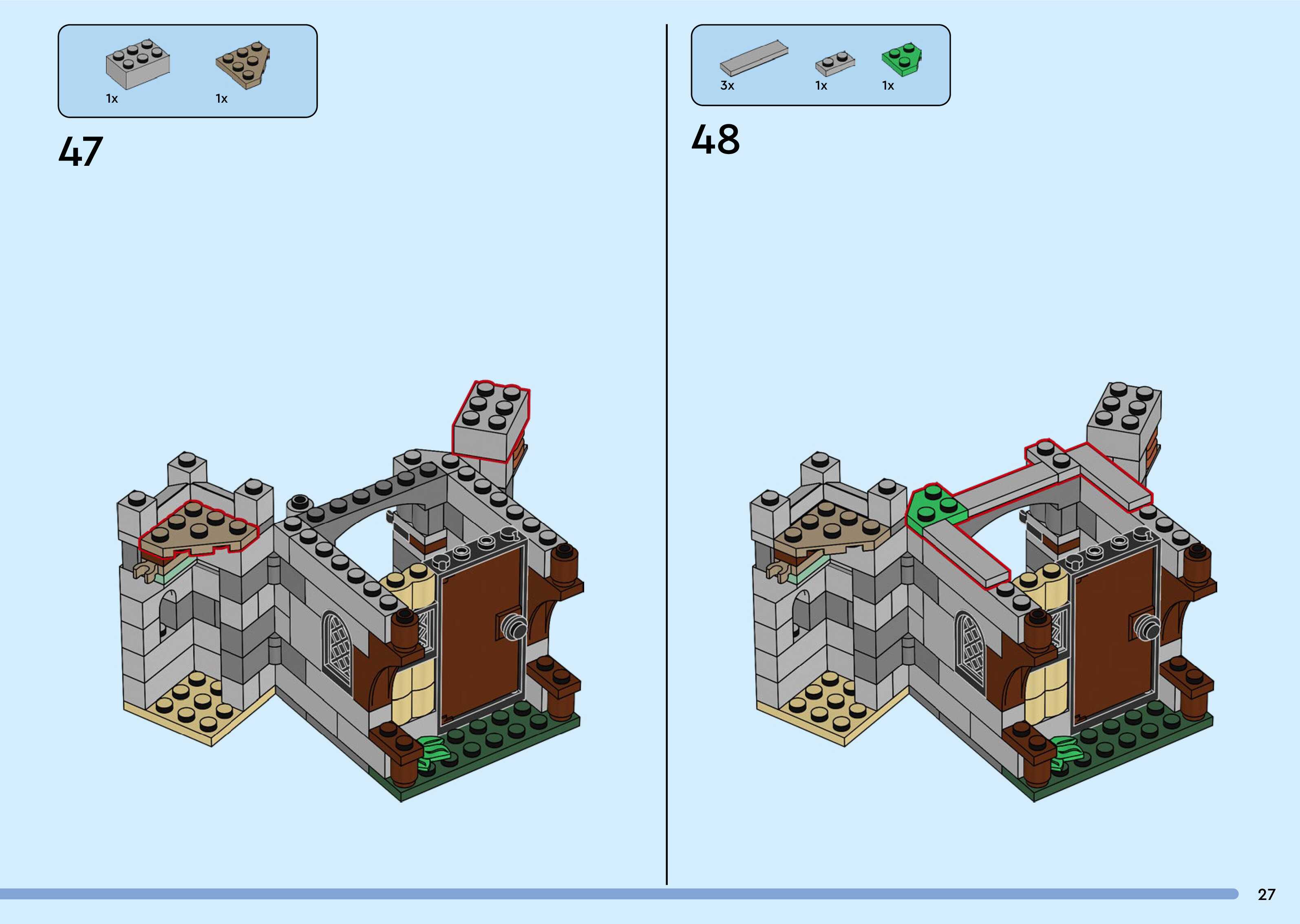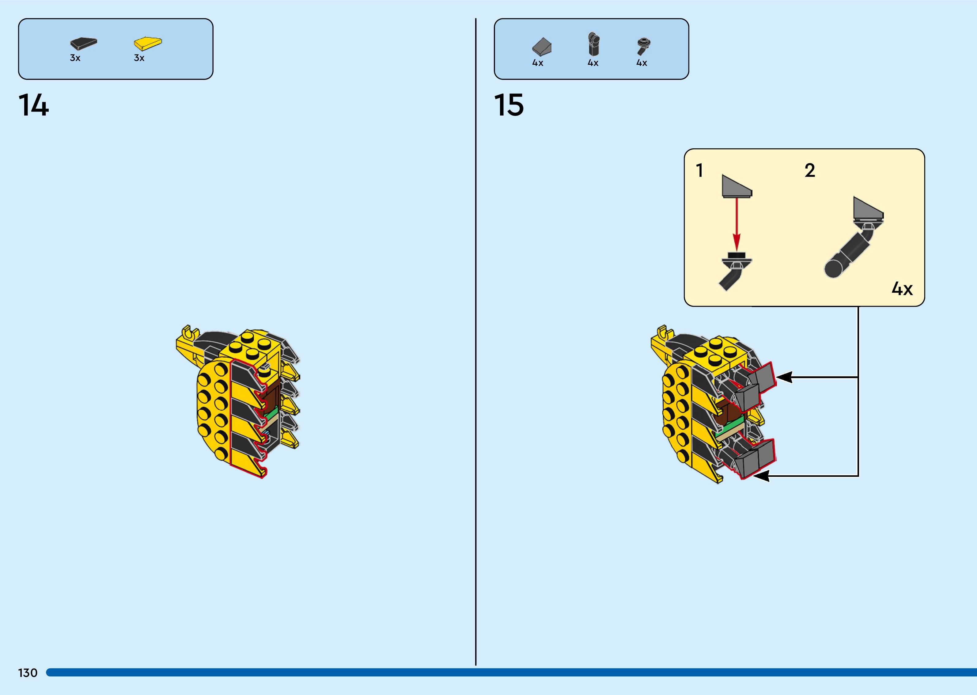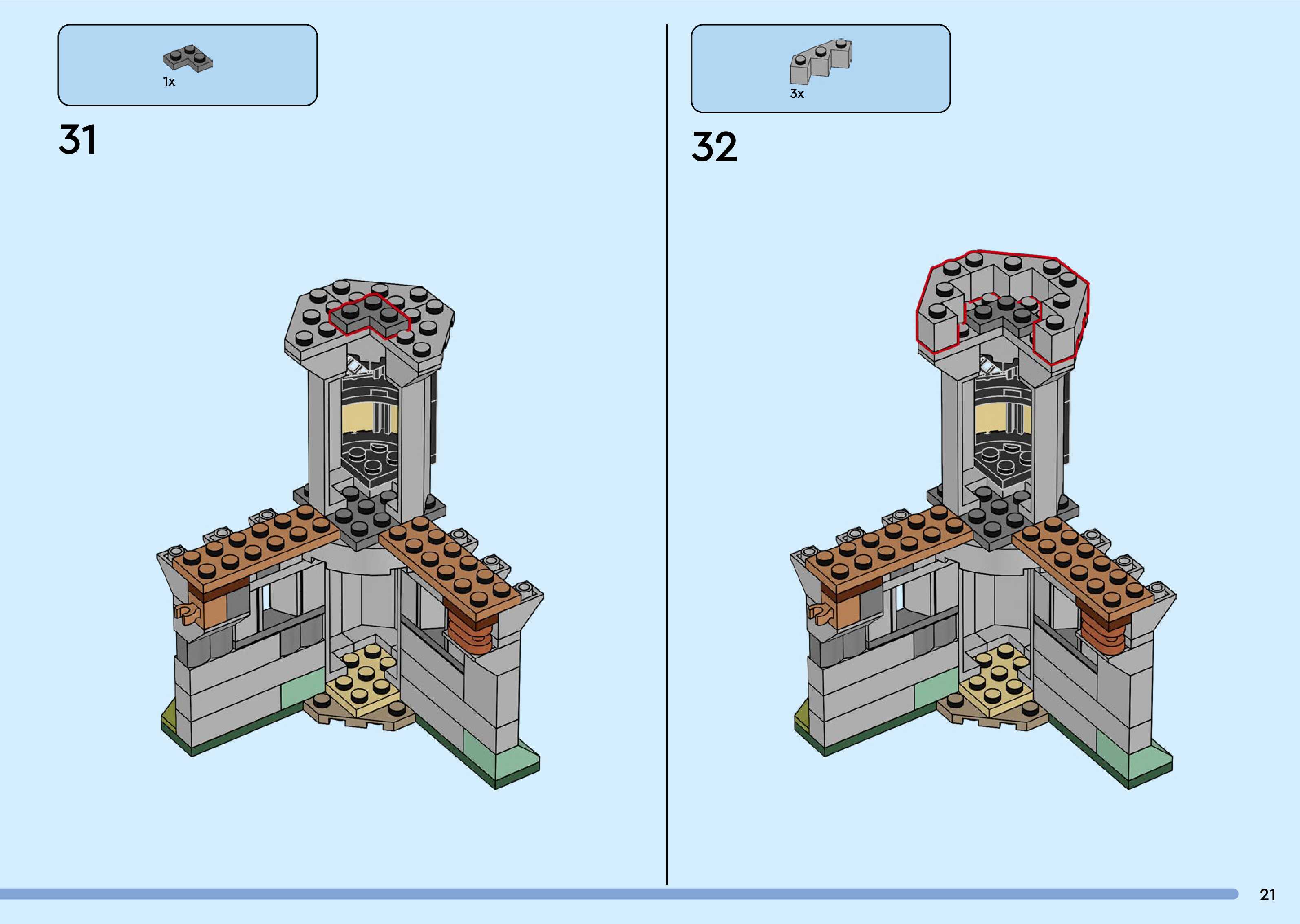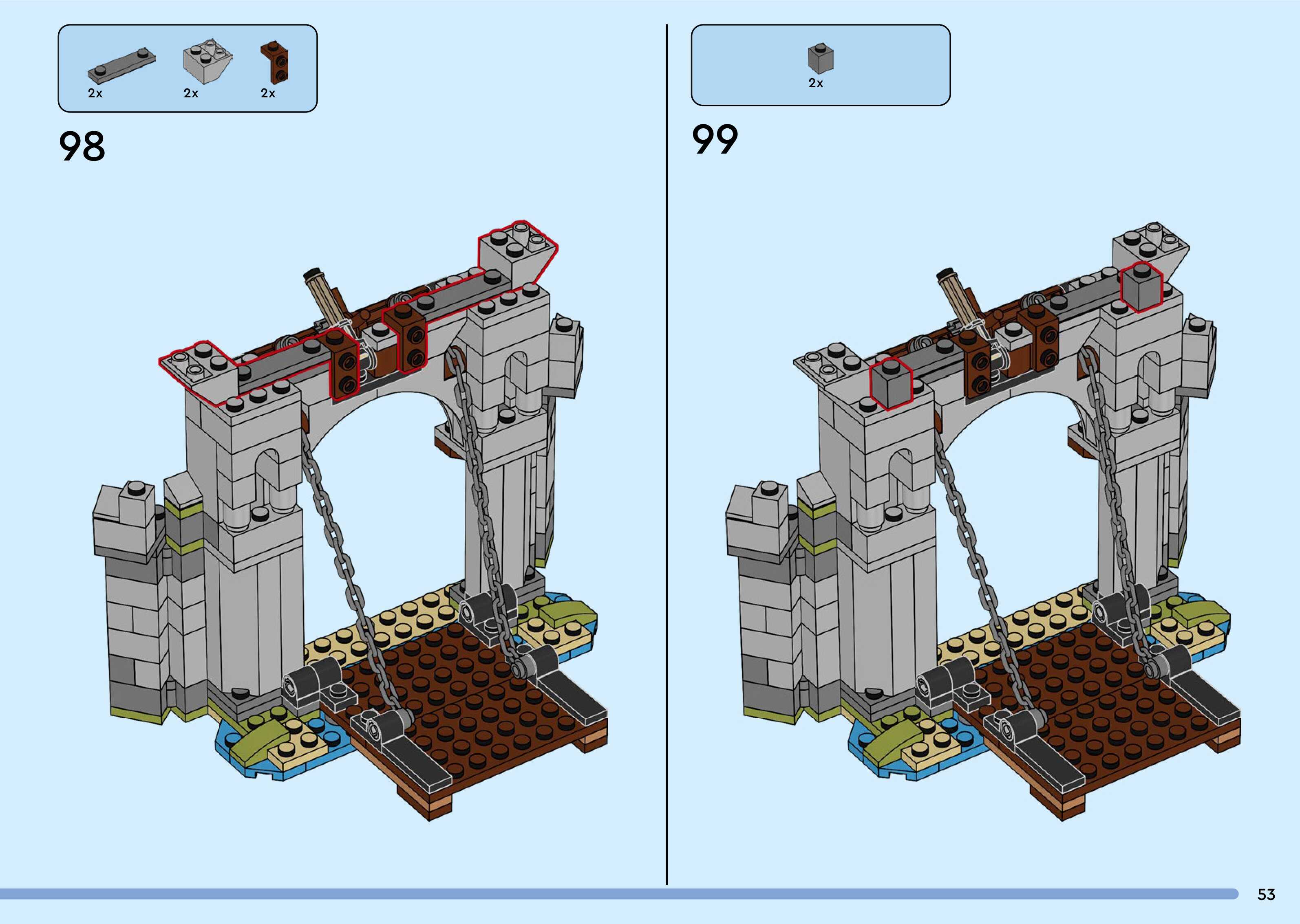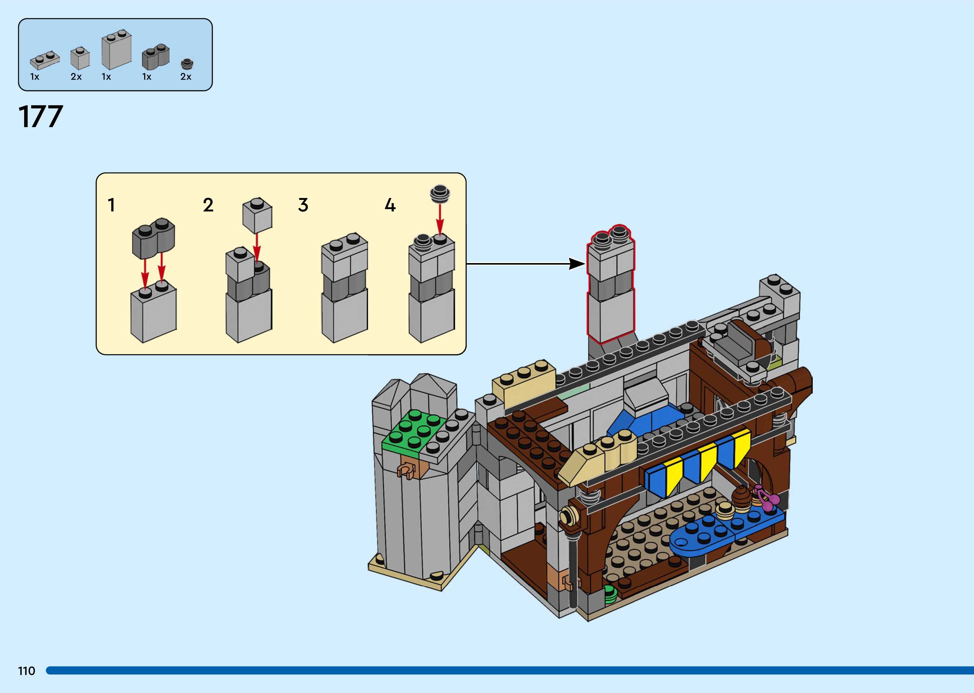 The assembly guide is prepared in a very understandable way for children and adult LEGO enthusiasts. A total of 532 picture galleries are shown, explaining the step-by-step construction stages for 3 different structures.