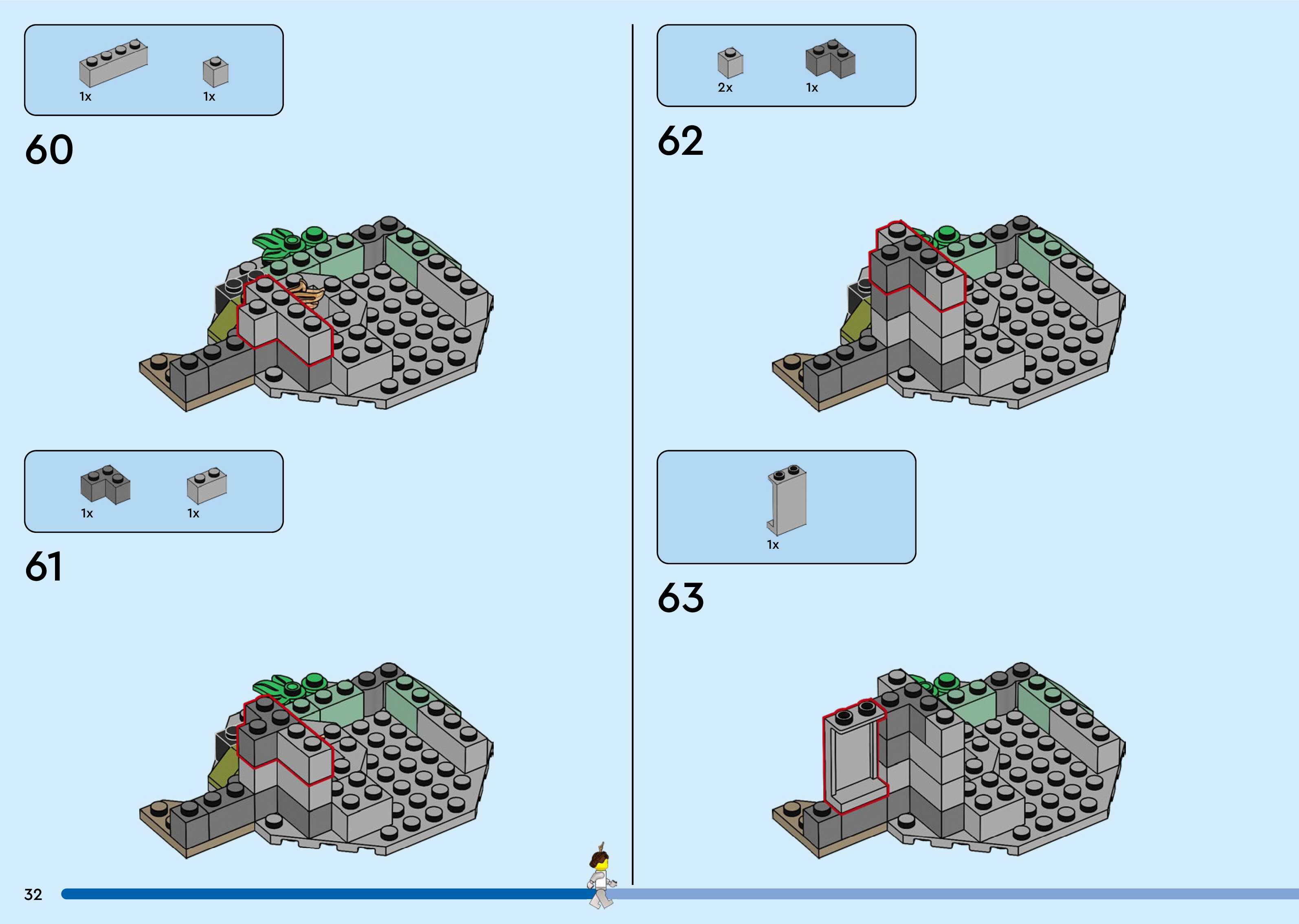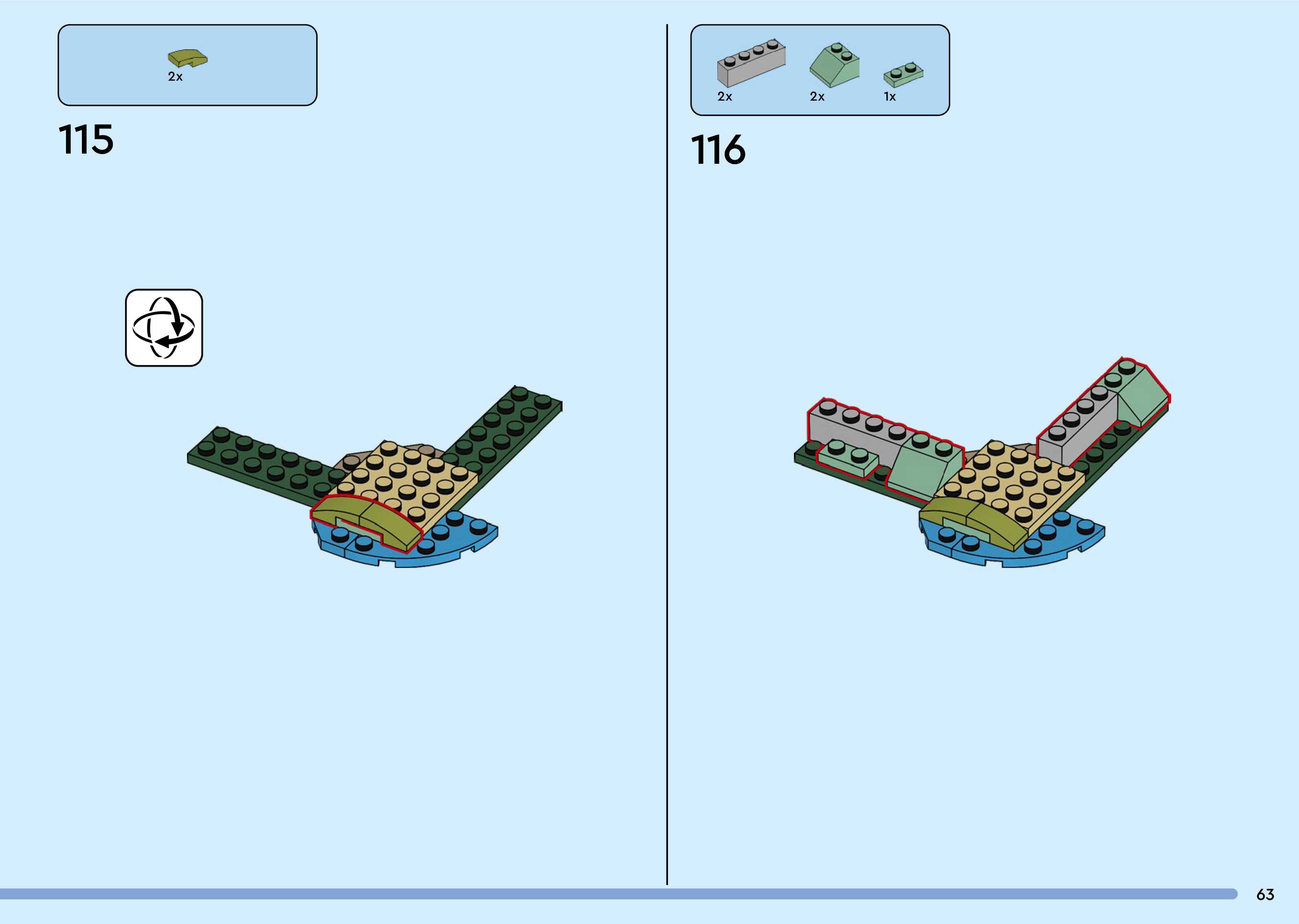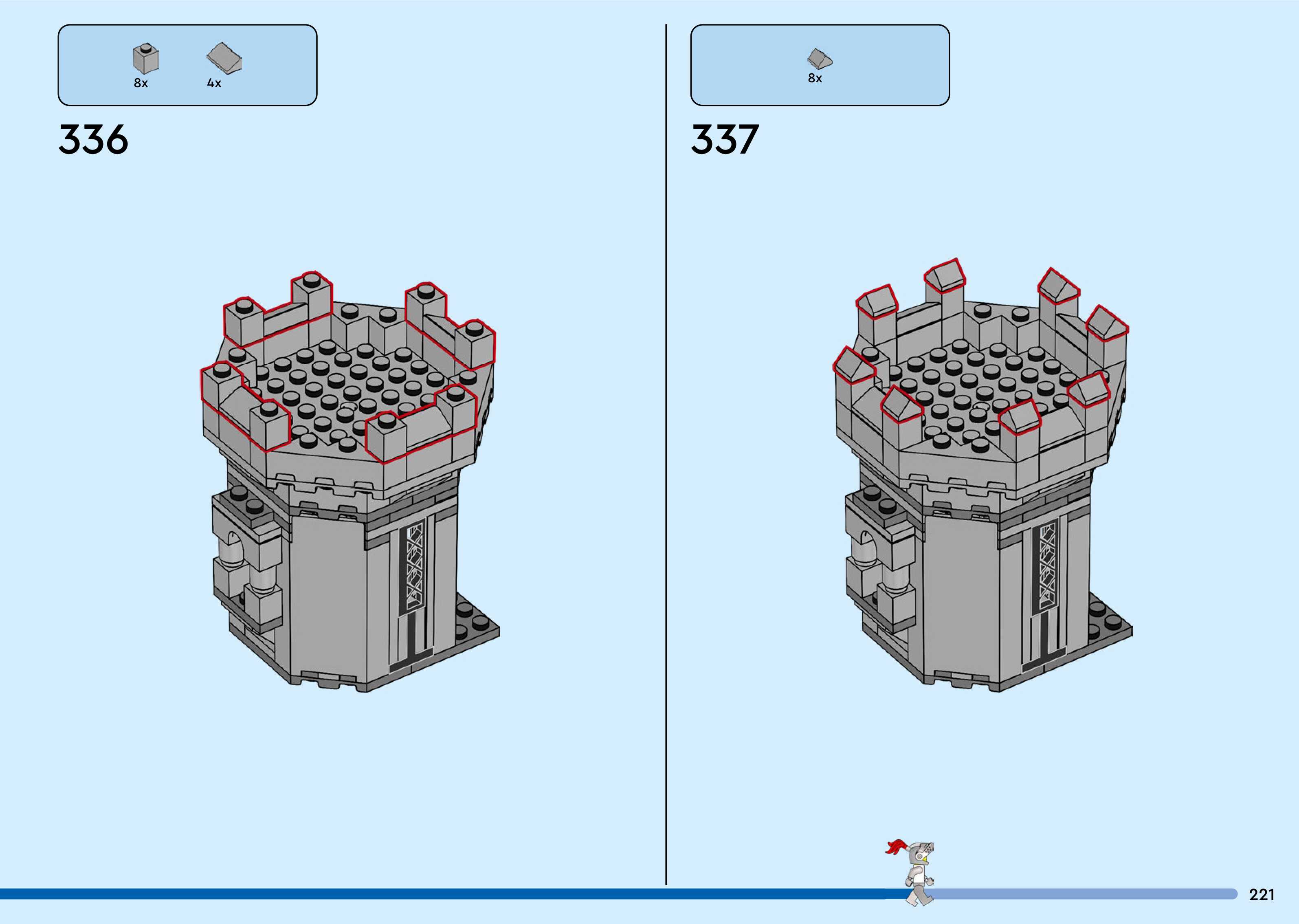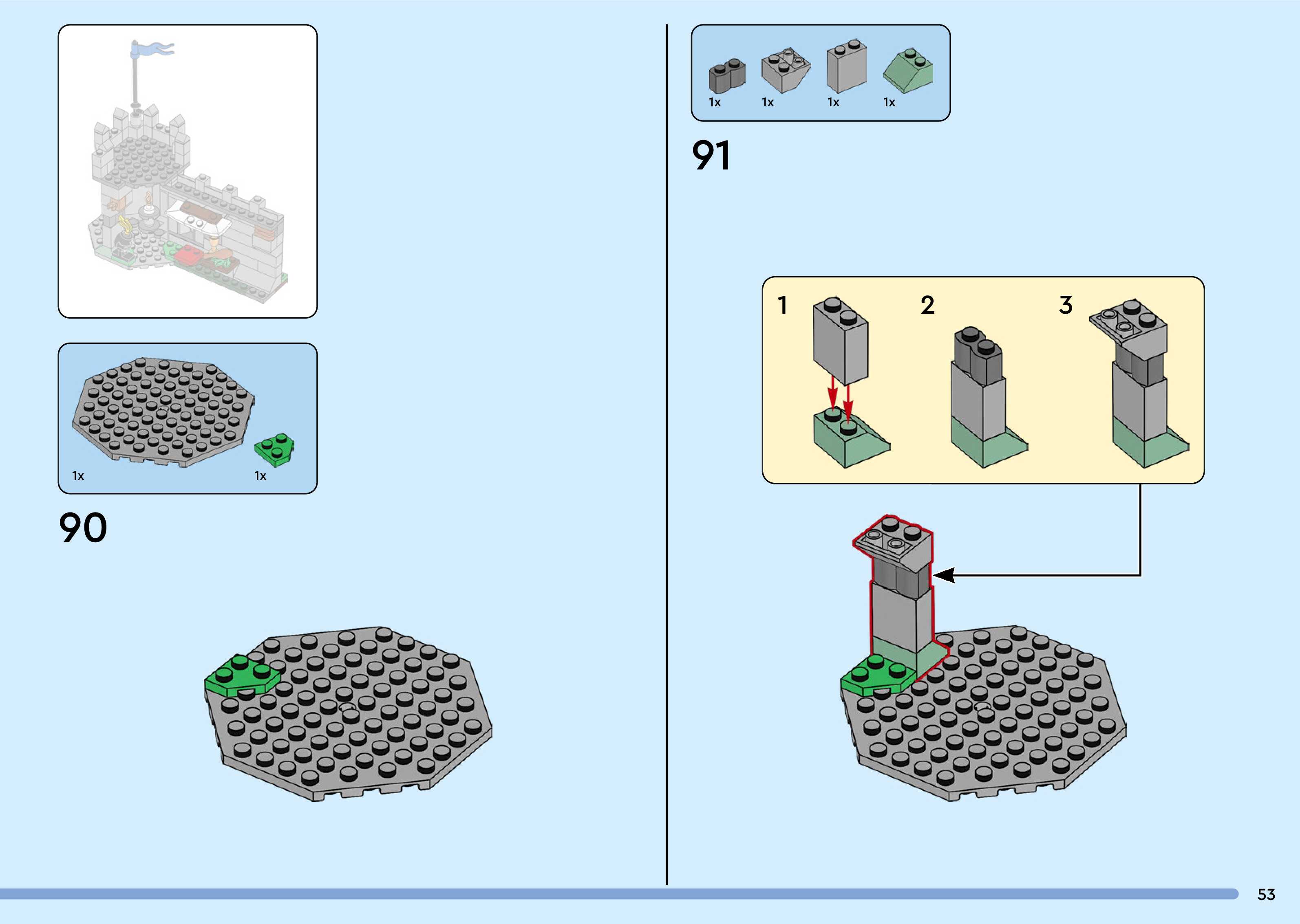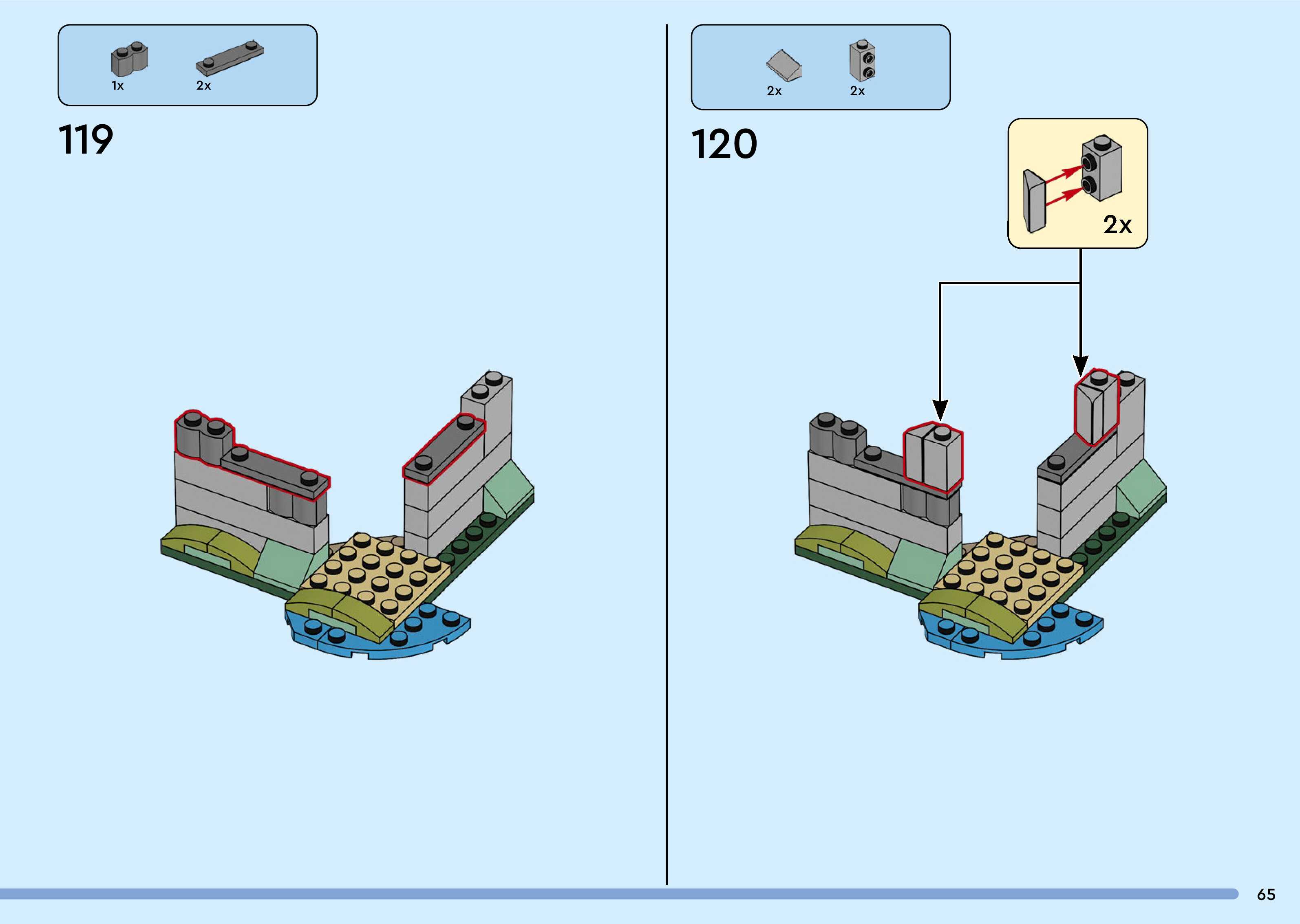 The assembly guide is prepared in a very understandable way for children and adult LEGO enthusiasts. A total of 532 picture galleries are shown, explaining the step-by-step construction stages for 3 different structures.