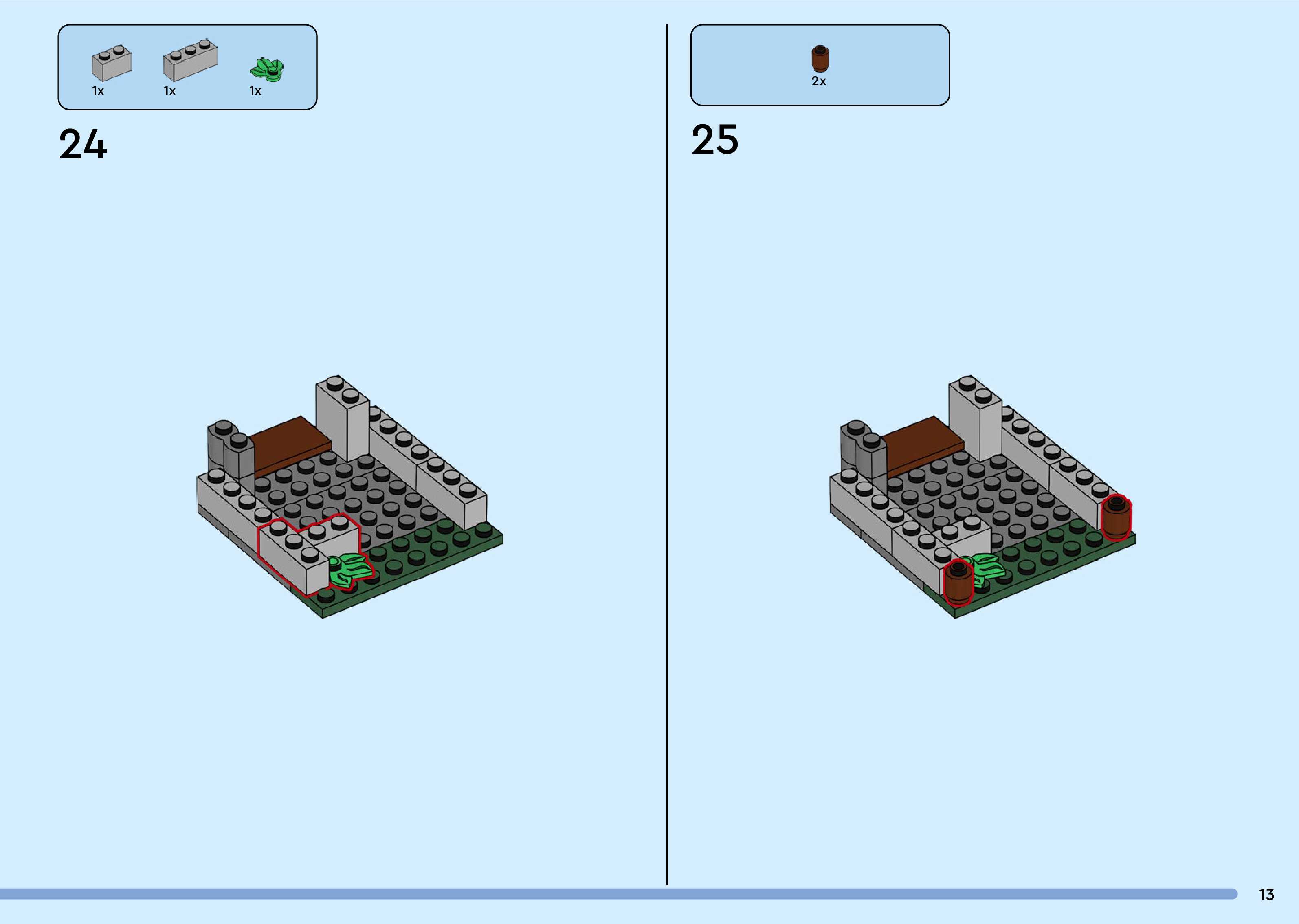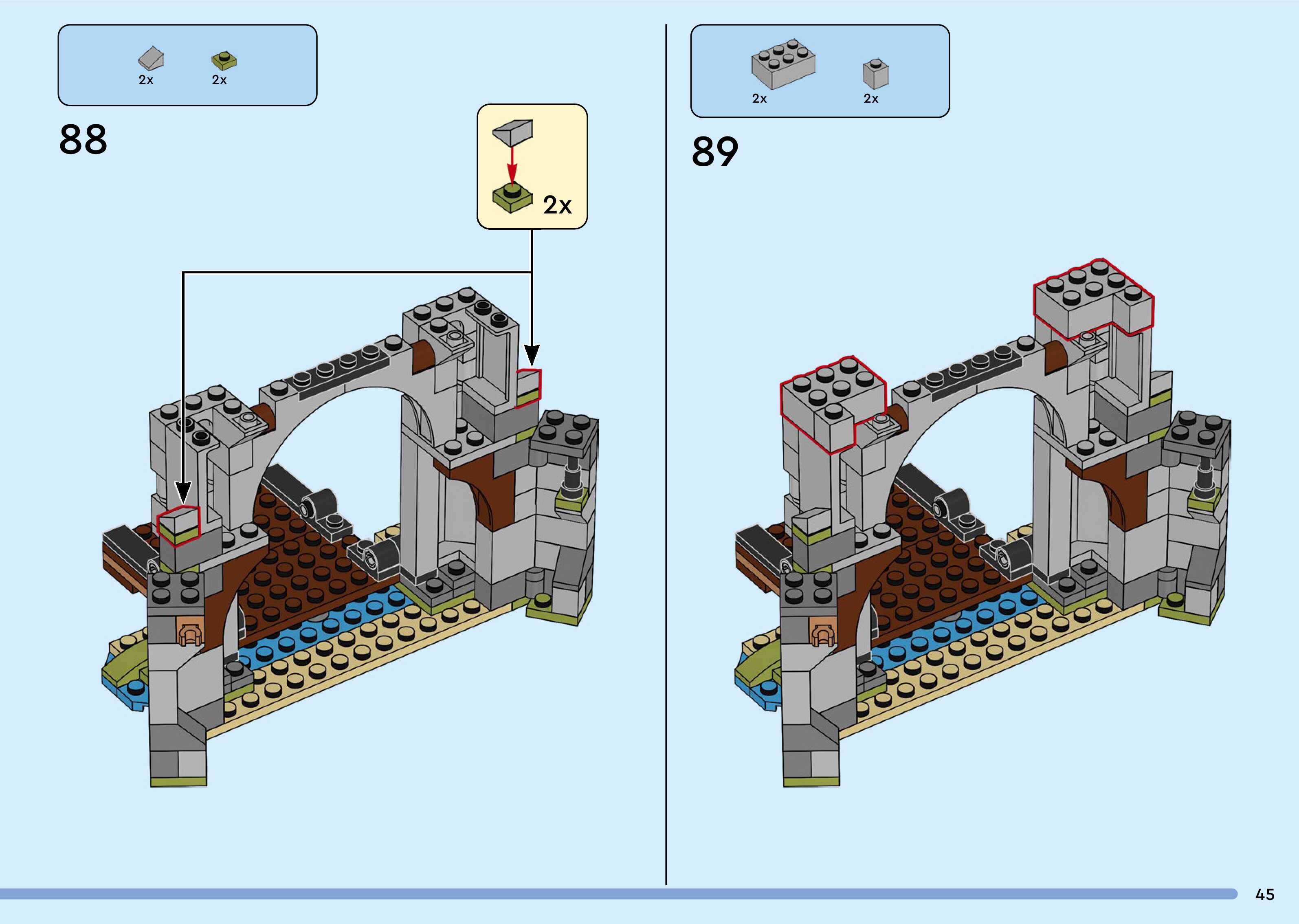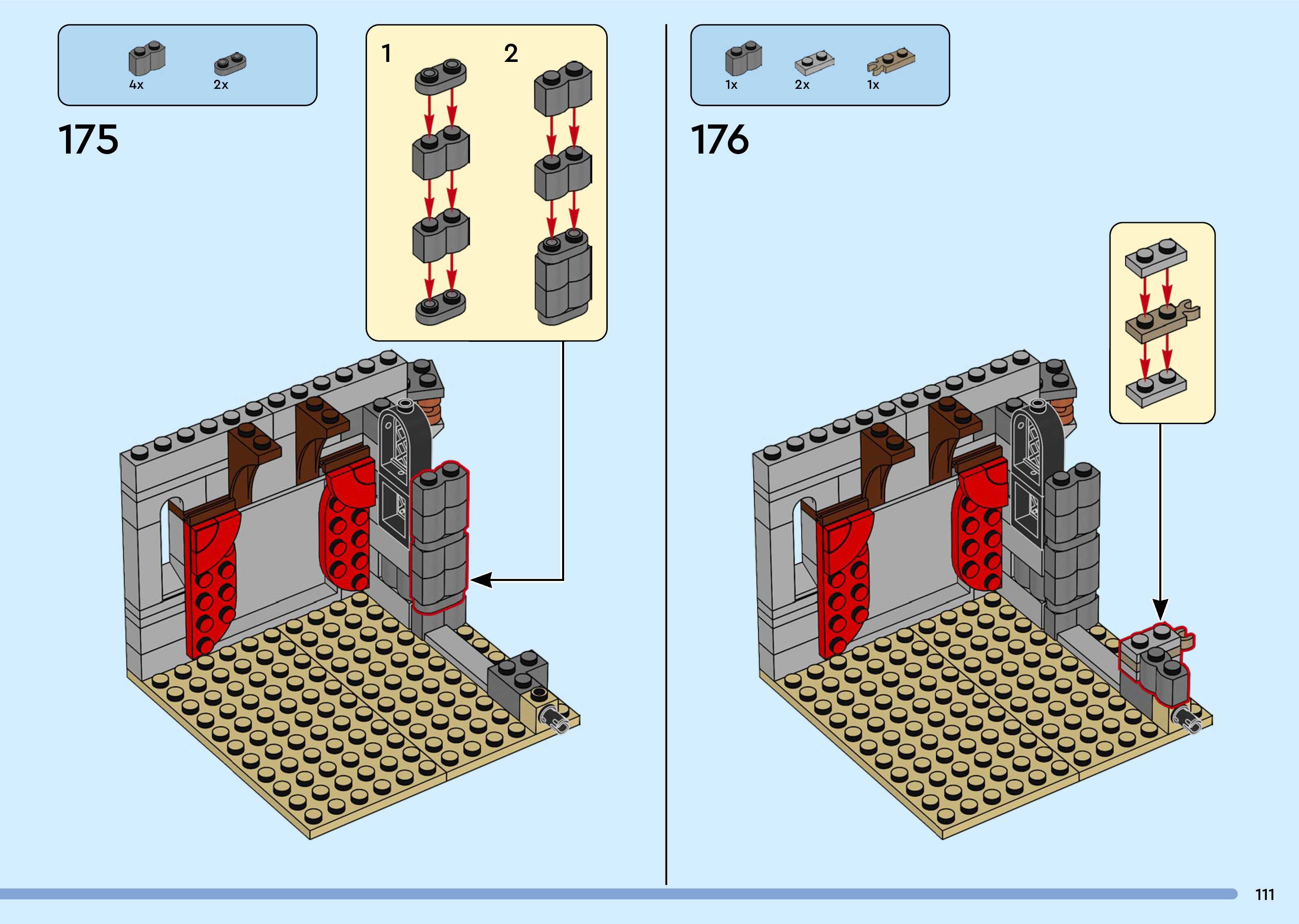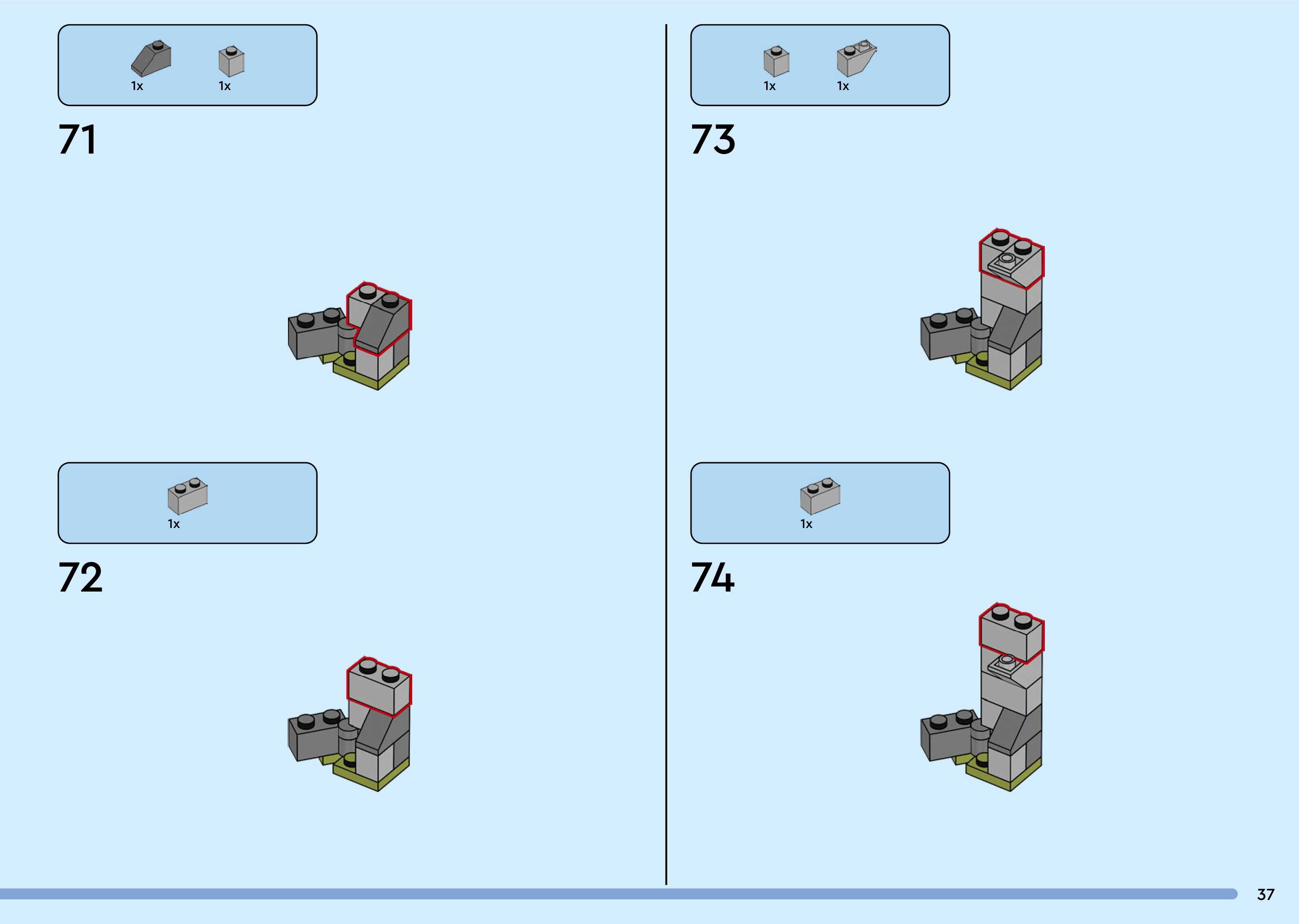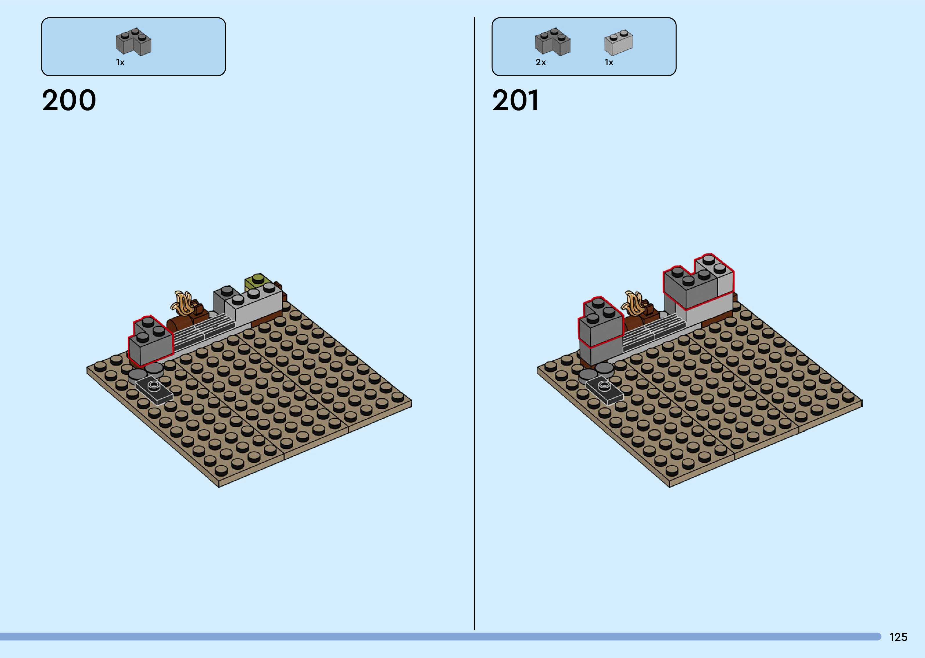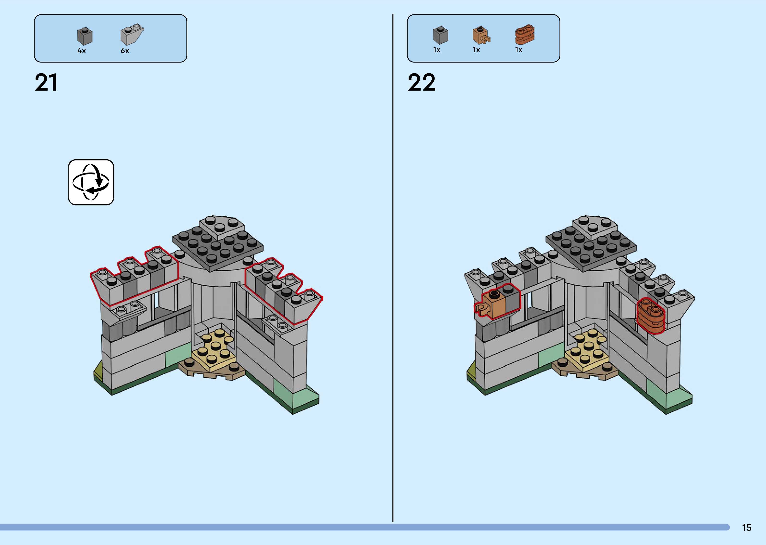 The assembly guide is prepared in a very understandable way for children and adult LEGO enthusiasts. A total of 532 picture galleries are shown, explaining the step-by-step construction stages for 3 different structures.